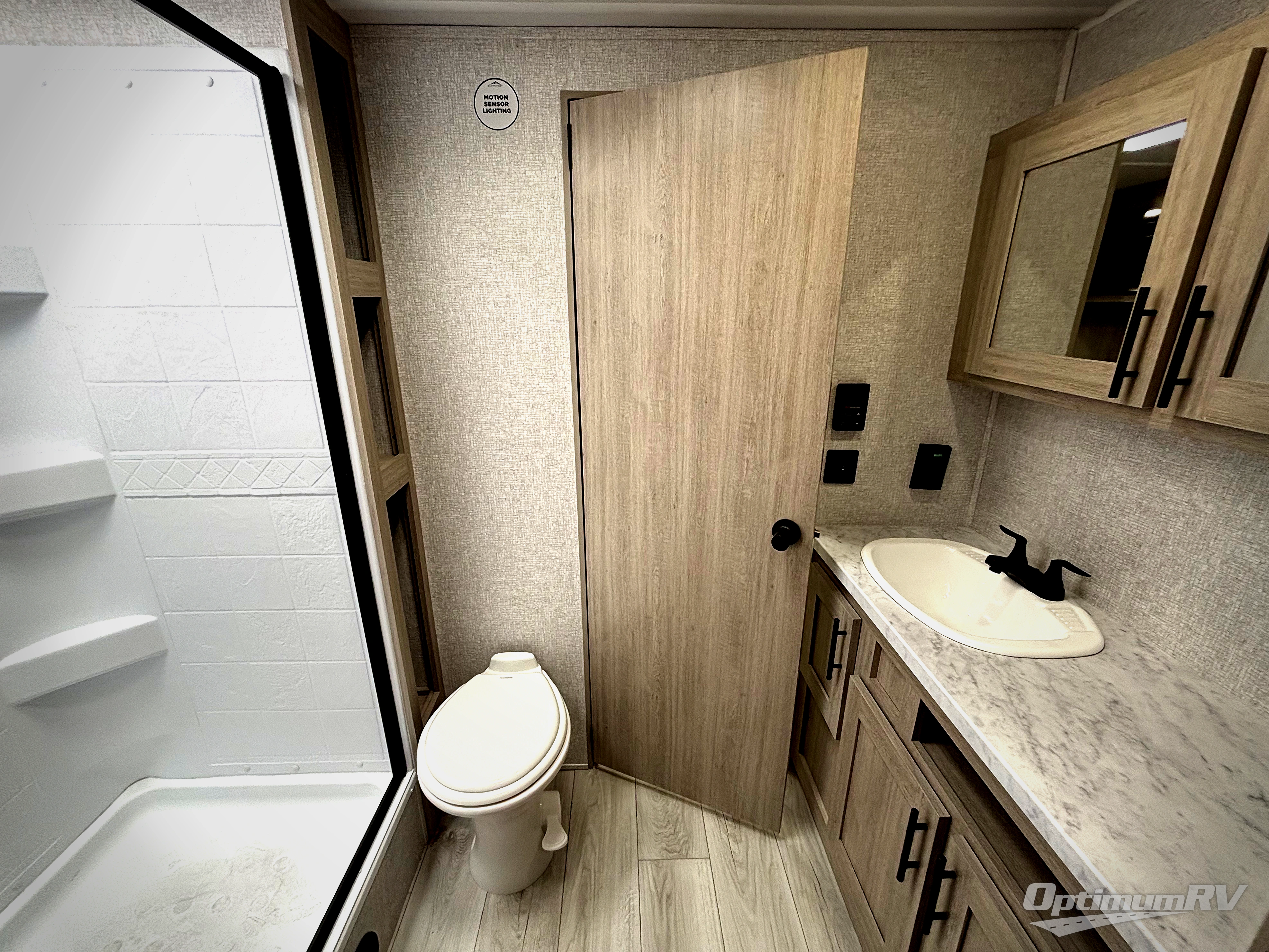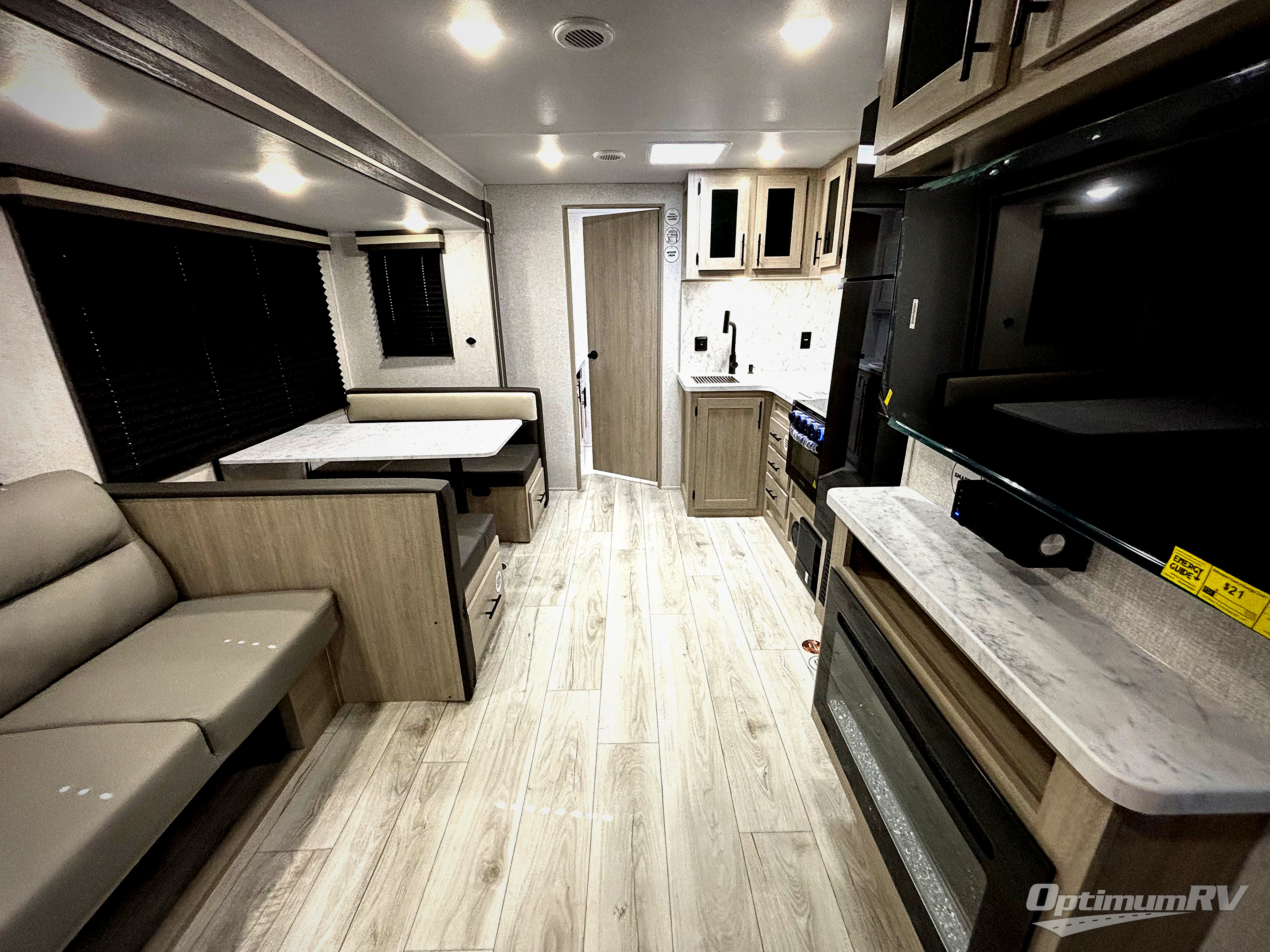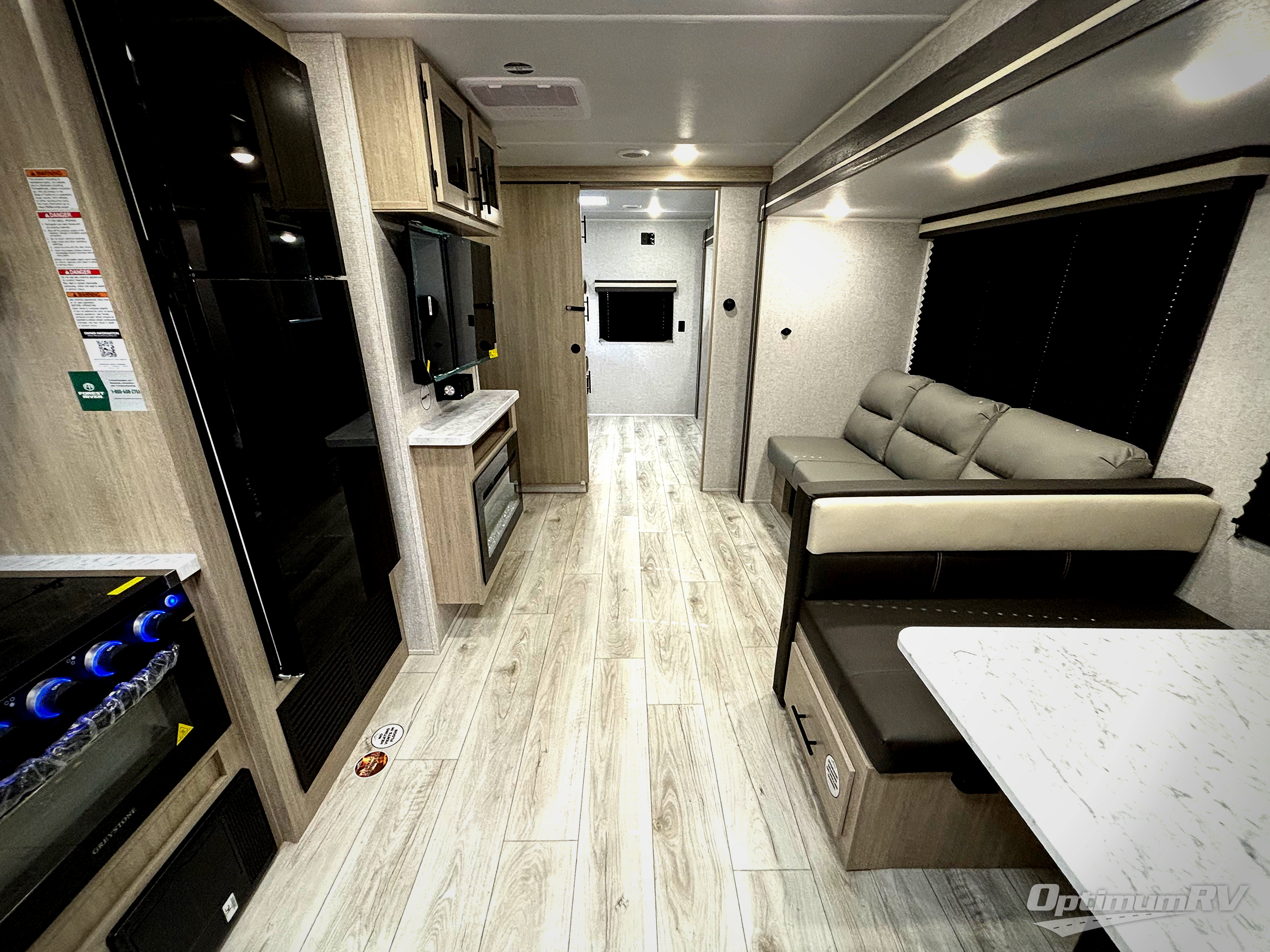 Head to the RV park for a long-weekend or week-long break from your everyday routine with this trailer at your favorite campsite. After setting up the two slide outs and the 15' power awning, you can relax inside on the jack knife sofa, dine at the oversized booth dinette or whip up a meal in the L-shaped kitchen. Everyone will enjoy the fireplace no matter what you are doing. The walk-through bathroom is super convenient, and the front bedroom allows you to live like royalty in privacy. The rear bunkhouse also offers privacy and includes three bunk beds and a sofa, plus storage. Your kids or guests will love having their own room. And the exterior offers an optional outdoor kitchen, an oversized pass-through storage for your larger gear like fishing poles, outdoor tables and bags of charcoal, plus there are two spray ports to easily rinse off dirty bikes, shoes and such.