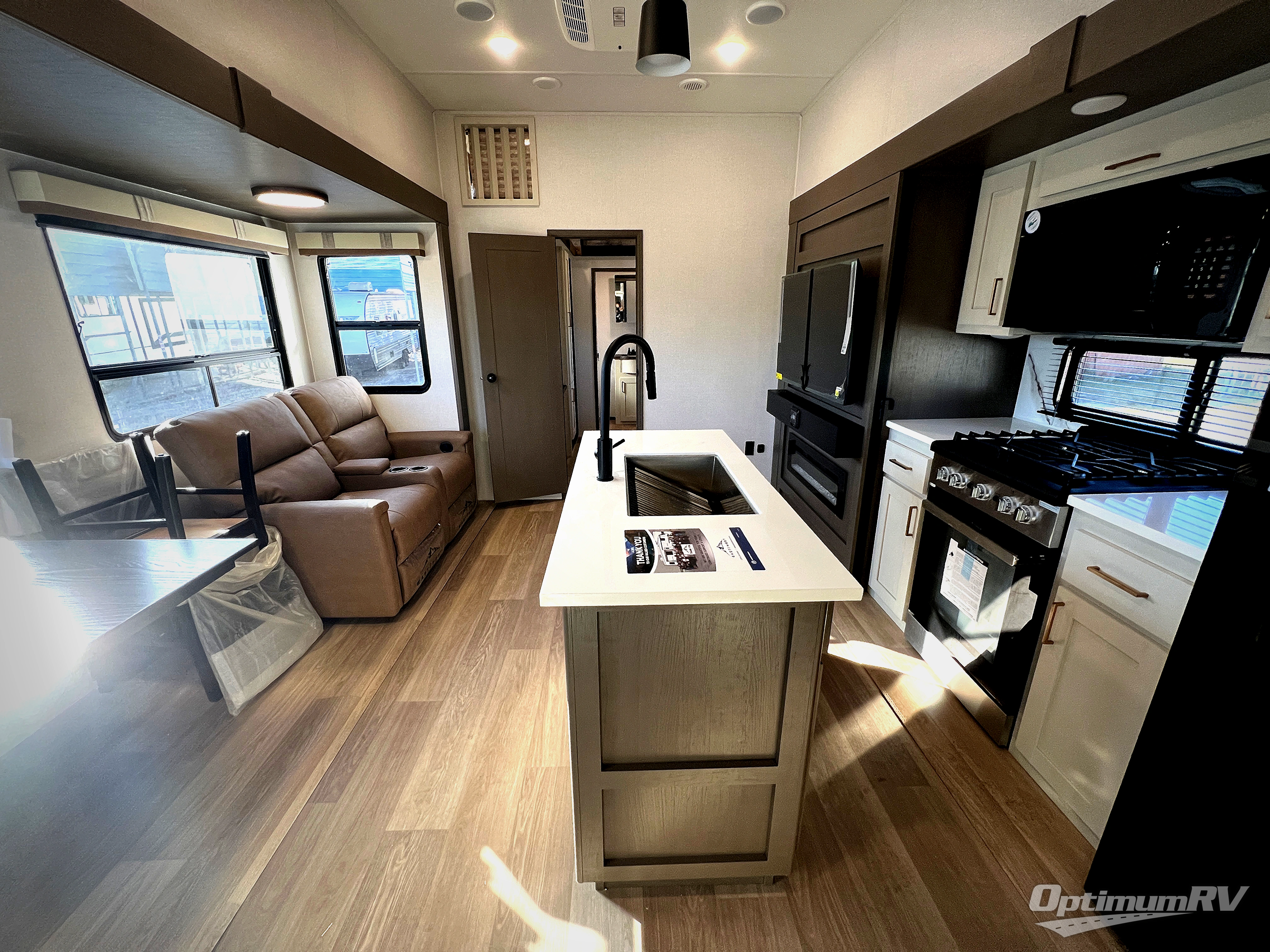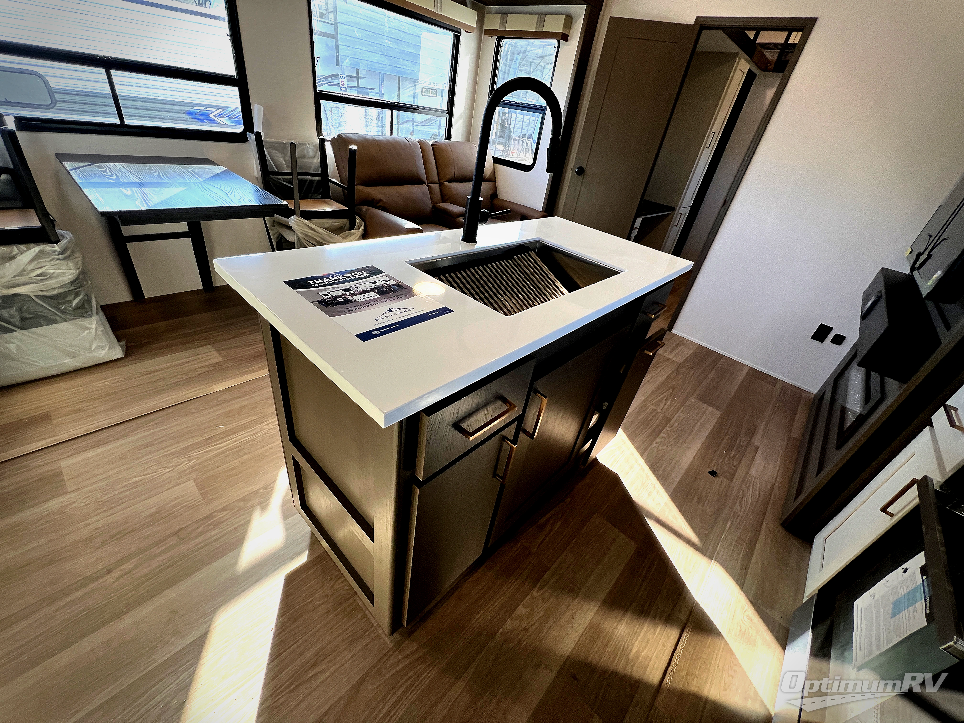 With any Tandara fifth wheel by EAST TO WEST, you will enjoy many standard features to make each trip enjoyable. The Tandara Exterior Luxury Package includes a universal all-in-one docking station, an automatic leveling system, metal slam latch cargo doors, and a 200W solar panel for off-grid capabilities. You will also appreciate the Tandara Climate Package with ductless flooring, dual attic vents, plus a heated and enclosed underbelly for added protection. Inside, you'll find a flush floor kitchen slide, Slow Rise roller shades, solid surface kitchen countertops, and more stand-out features included in the Tandara Interior Luxury Package.