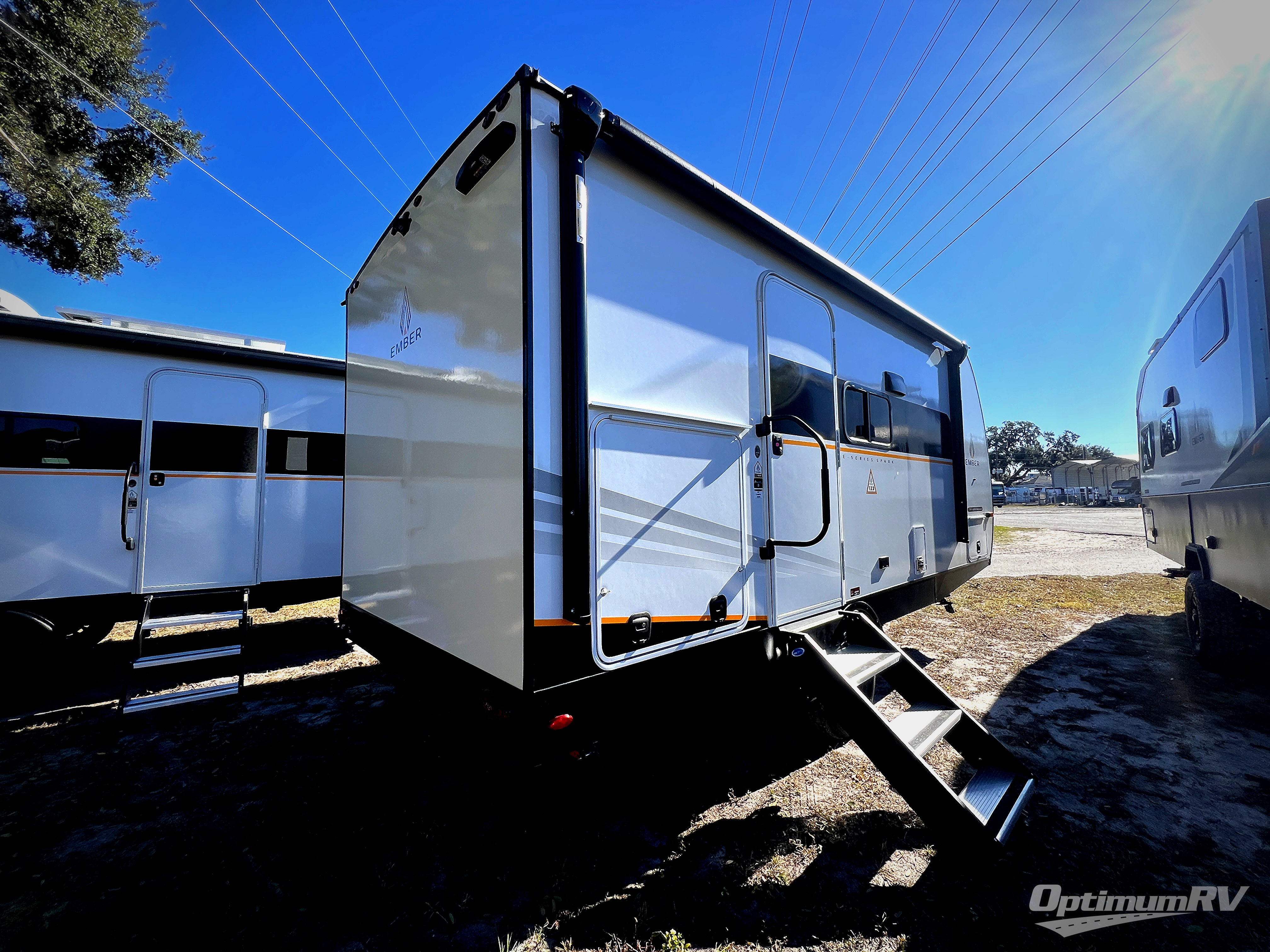 With any E-Series travel trailer by Ember RV you will enjoy a lightweight RV with all the "Essentials" needed for memorable trips in the great outdoors! Each model is constructed with durable laminated Azdel Onboard composite walls, a full walkable roof with a one-piece Tufflex PVC roofing material, and a gel-coated fiberglass exterior. The Dexter axles with E-Z lube hubs and forward self-adjusting electric brakes plus Goodyear Endurance tires will provide a smooth tow from home to campground. You will appreciate the Congoleum DiamondFlor "carpetless" interior that is easy to clean, and the hardwood framed cabinet doors will create a more residential feel. Each model includes a tankless on-demand water heater for endless hot showers and an 18,000 BTU Max Cool "Whisper Quiet" A/C, which is the largest single A/C in its class! If you're looking for off-grid capabilities, you might want to choose the optional Off-Grid Solar Package with 400 total watts of solar panels, a 2,000W Pure Sine wave inverter, and a Victron MPPT solar controller!