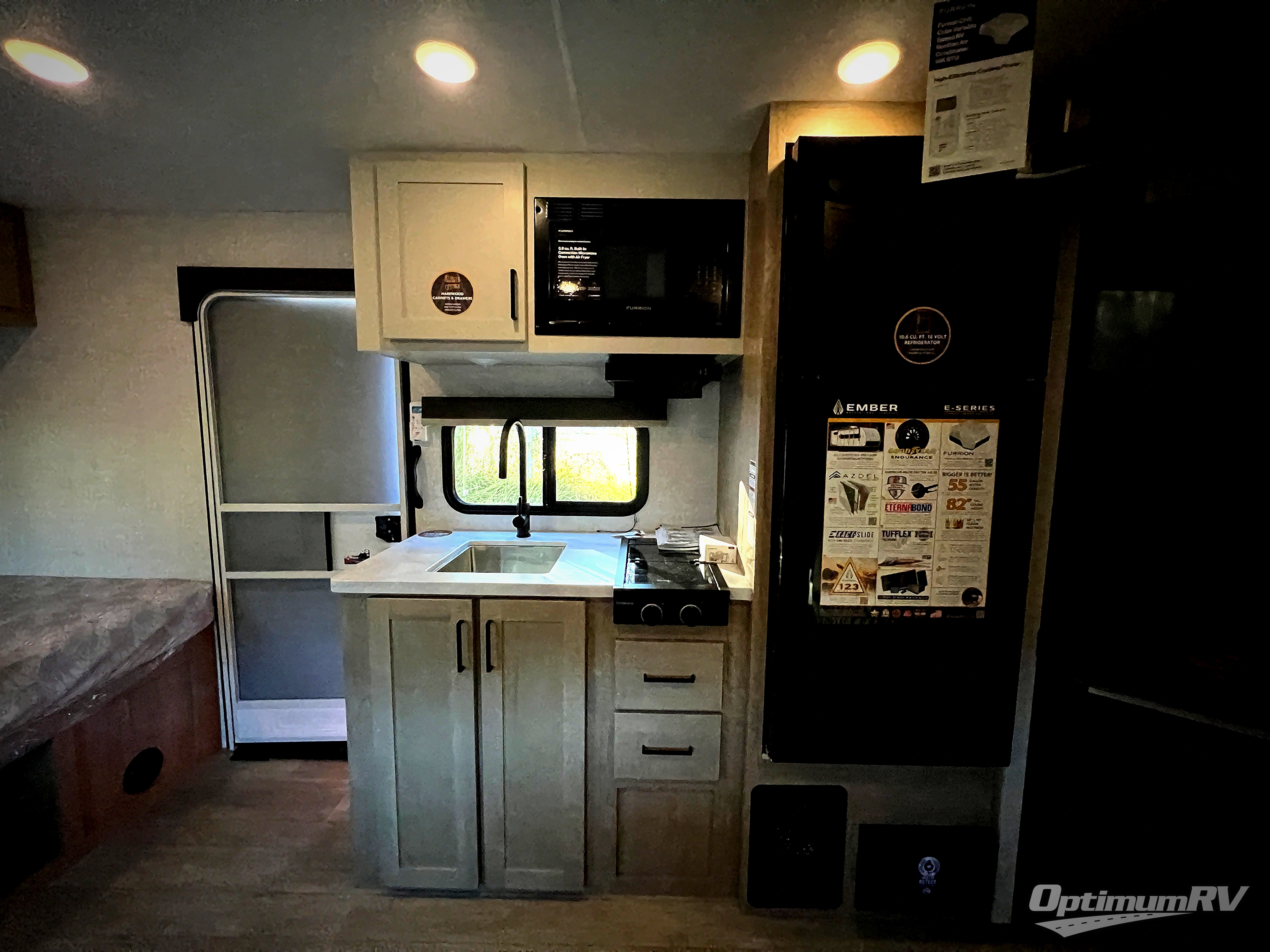 With any E-Series travel trailer by Ember RV you will enjoy a lightweight RV with all the "Essentials" needed for memorable trips in the great outdoors! Each model is constructed with durable laminated Azdel Onboard composite walls, a full walkable roof with a one-piece Tufflex PVC roofing material, and a gel-coated fiberglass exterior. The Dexter axles with E-Z lube hubs and forward self-adjusting electric brakes plus Goodyear Endurance tires will provide a smooth tow from home to campground. You will appreciate the Congoleum DiamondFlor "carpetless" interior that is easy to clean, and the hardwood framed cabinet doors will create a more residential feel. Each model includes a tankless on-demand water heater for endless hot showers and an 18,000 BTU Max Cool "Whisper Quiet" A/C, which is the largest single A/C in its class! If you're looking for off-grid capabilities, you might want to choose the optional Off-Grid Solar Package with 400 total watts of solar panels, a 2,000W Pure Sine wave inverter, and a Victron MPPT solar controller!