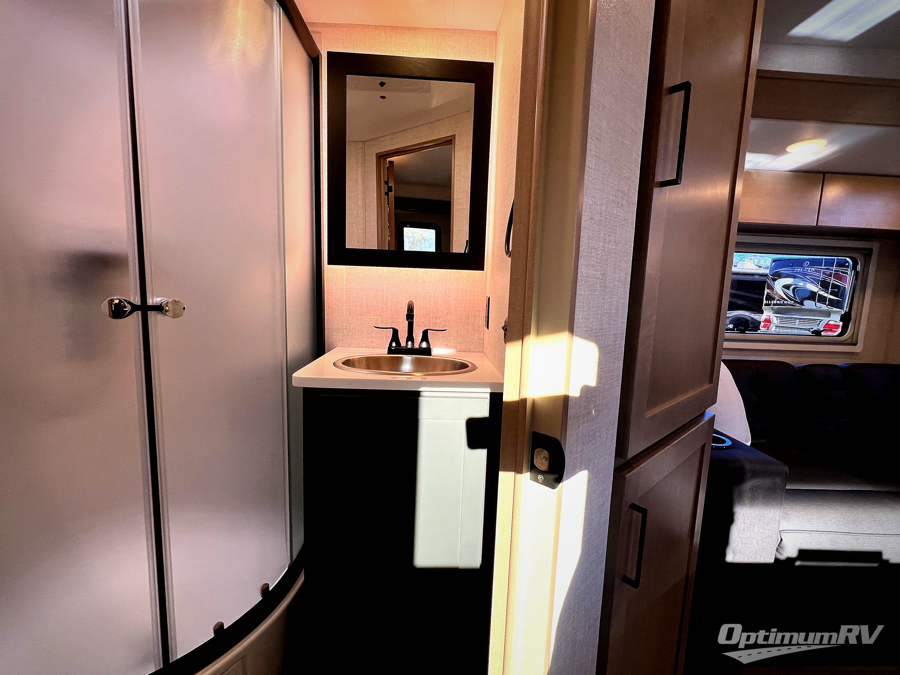 Head to your favorite campgrounds in this travel trailer! It features a front queen bed to lay your head on at night with nightstands and wardrobes on either side, plus an additional wardrobe and another hidden wardrobe behind the 12V HDTV/AV system on hinge. Prepare your best home cooked meals with the two burner cooktop and enjoy them at the jackknife sofa slide with a removable table. Behind the sofa are dual storage cubbies to keep your items out of the way too. With two pantries, you can bring all of your favorite snacks. You also have a rear corner bathroom with a 32" radius shower to rinse the sand out of your hair after a fun day at the beach!