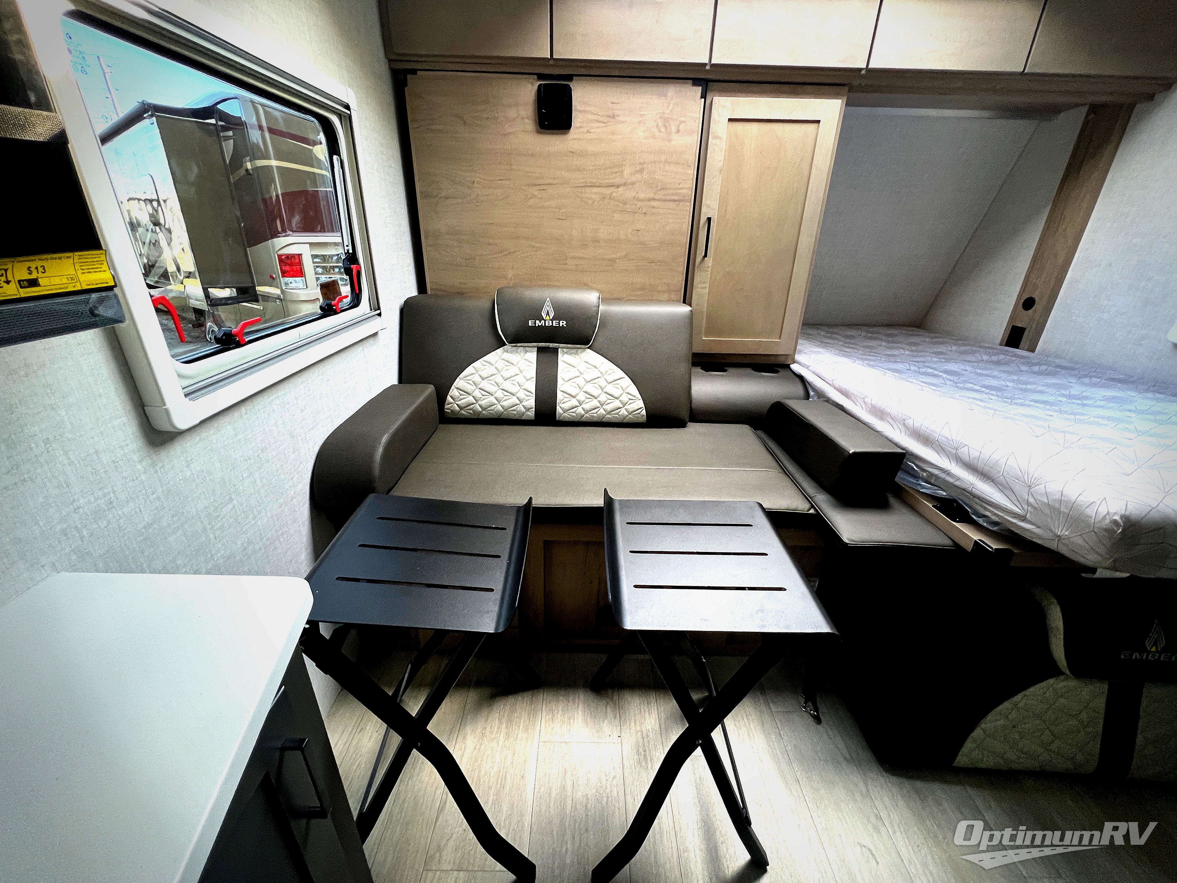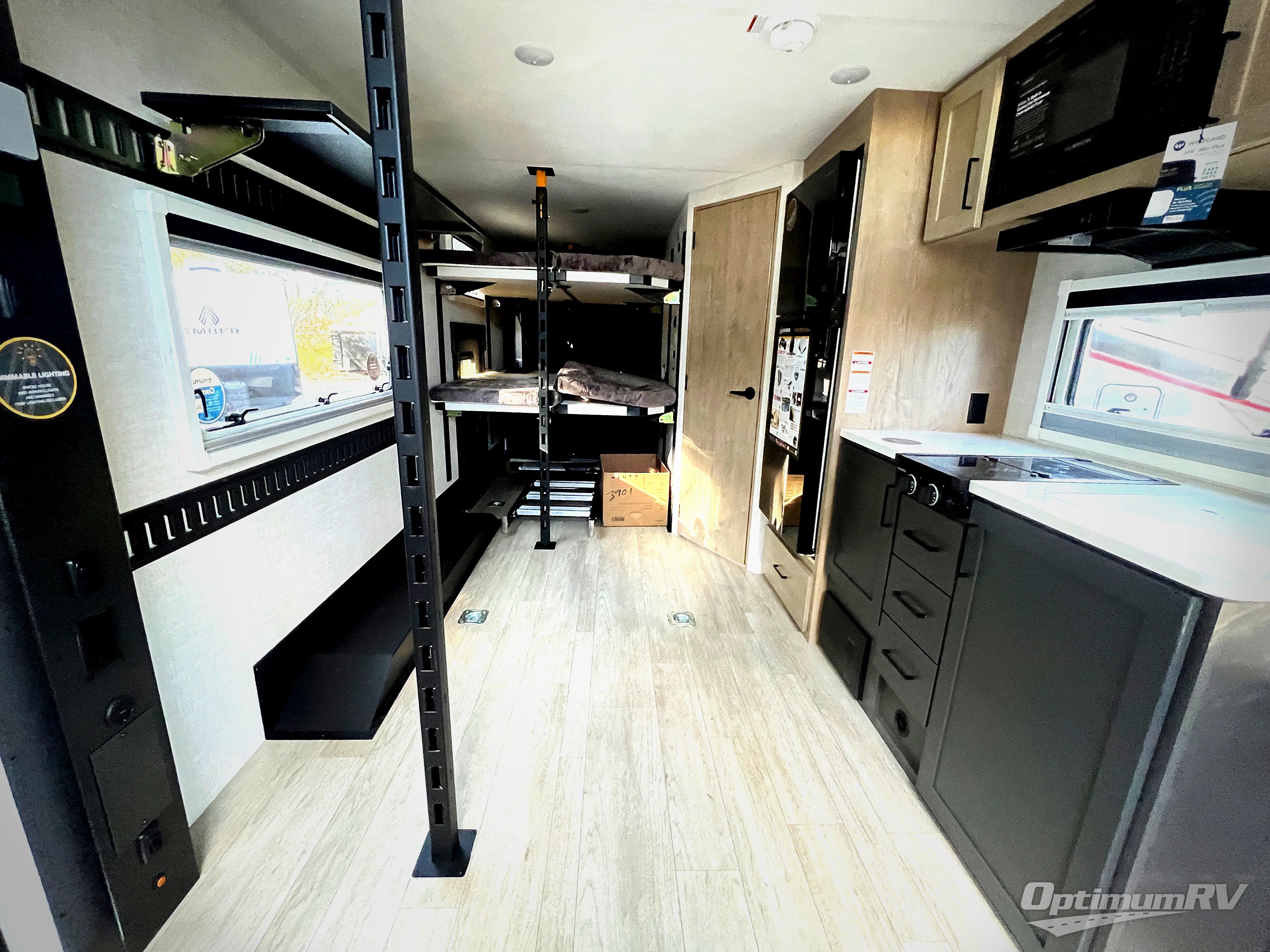 Each one of these Ember RV Overland Series travel trailers and toy hauler were built to meet the needs of today's most discerning RVers with layouts to fit couples and families! The CURT independent suspension comes with heavy-duty coil springs with dual shock absorbers on each wheel, and the 5-sided aluminum frame construction is sure to hold up through whatever adventure you throw its way. Laminated Azdel Onboard composite walls and rooftop prevent rotting or molding of the unit. Their chic interior design comes with structural composite flooring that is durable and easy to clean, dual pane caravan windows with integrated thermal shades/screens for added privacy, and an EmberLink smart RV control system to use at the touch of a finger. The Off-Grid Solar package lets you go further into the woods and the Safety First package helps you arrive safely to each destination.