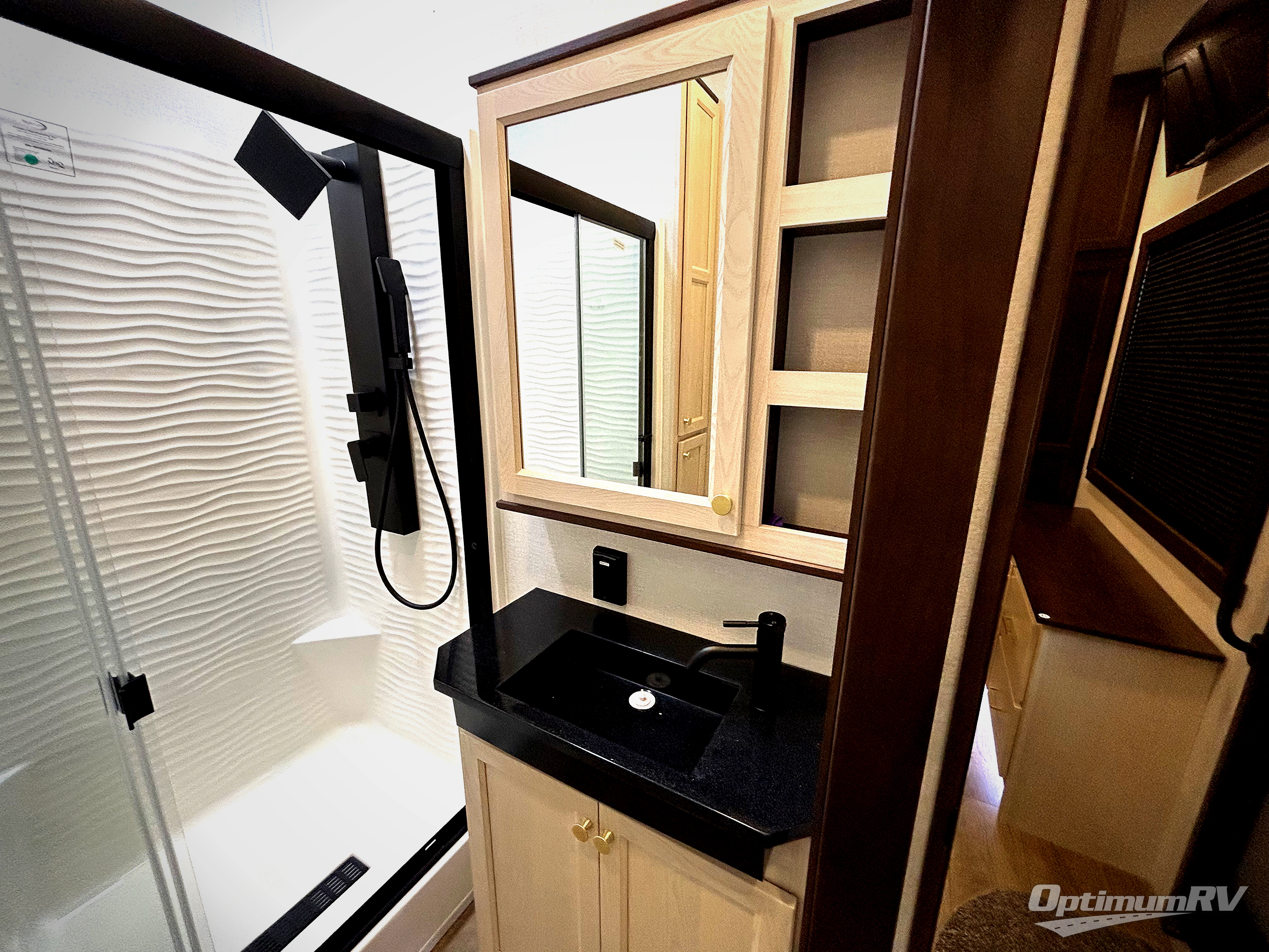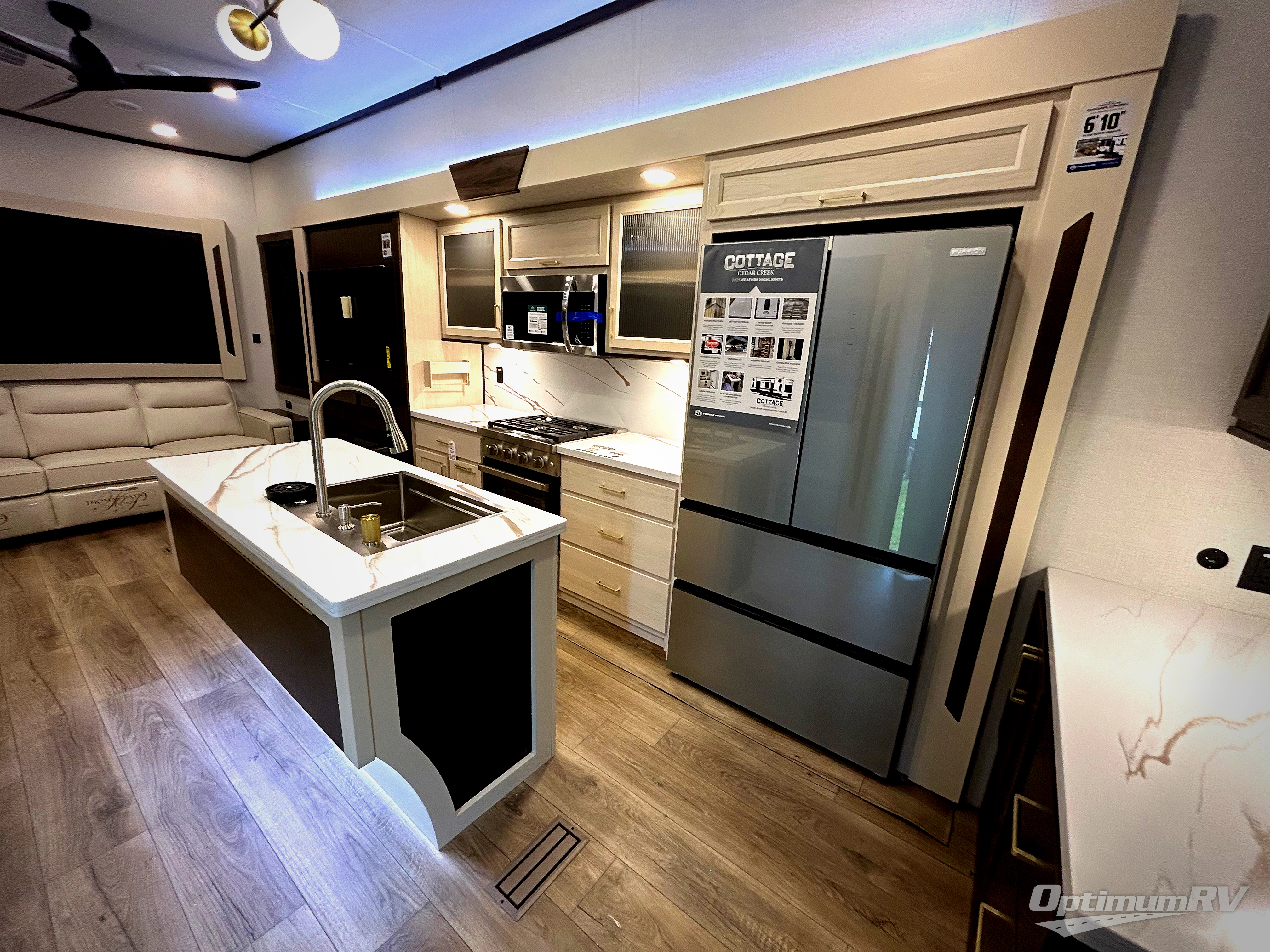 With any Cedar Creek Cottage destination trailer by Forest River, you can enjoy extended stays with residential features at the location of your choice! Each model is built with 3M bonded sidewalls that grow stronger with age and are resistant to UV, heat, oil, moisture, and more. There is also an AlphaPly TPO roof membrane, detachable entry steps, and new waterproof and bug proof Vixenite slide room floor panels for added durability. Head inside where you'll find residential dovetail, self-closing drawers, flush floor slides in the kitchen and living area, a residential style headboard and luxurious bedding decor, and extra storage for linens in the bedroom and bath. Each model is also pre-wired for satellite to the roof, and you can stay connected with the new Cradle Point WiFi/5G antenna and Day 1 connectivity.