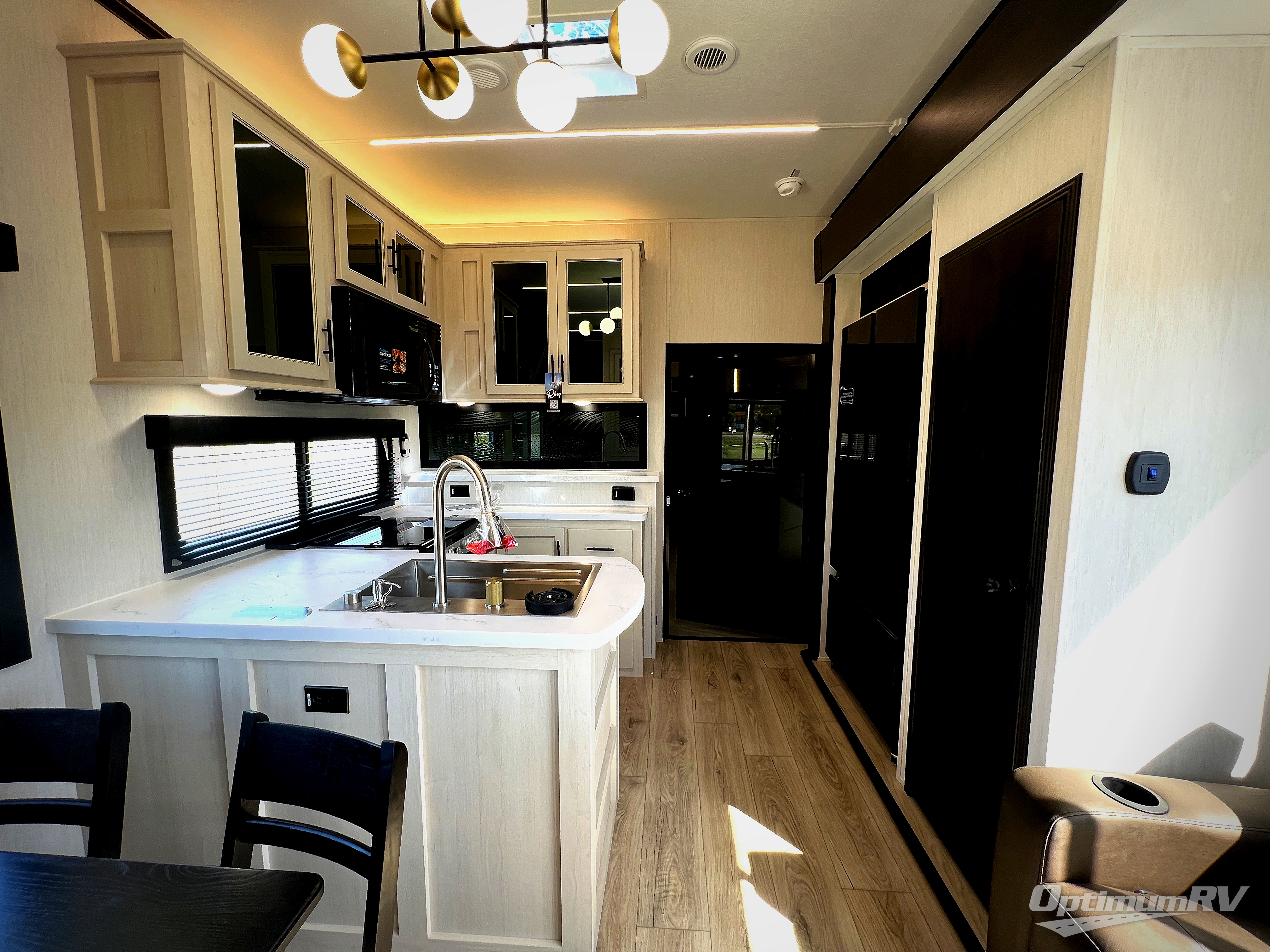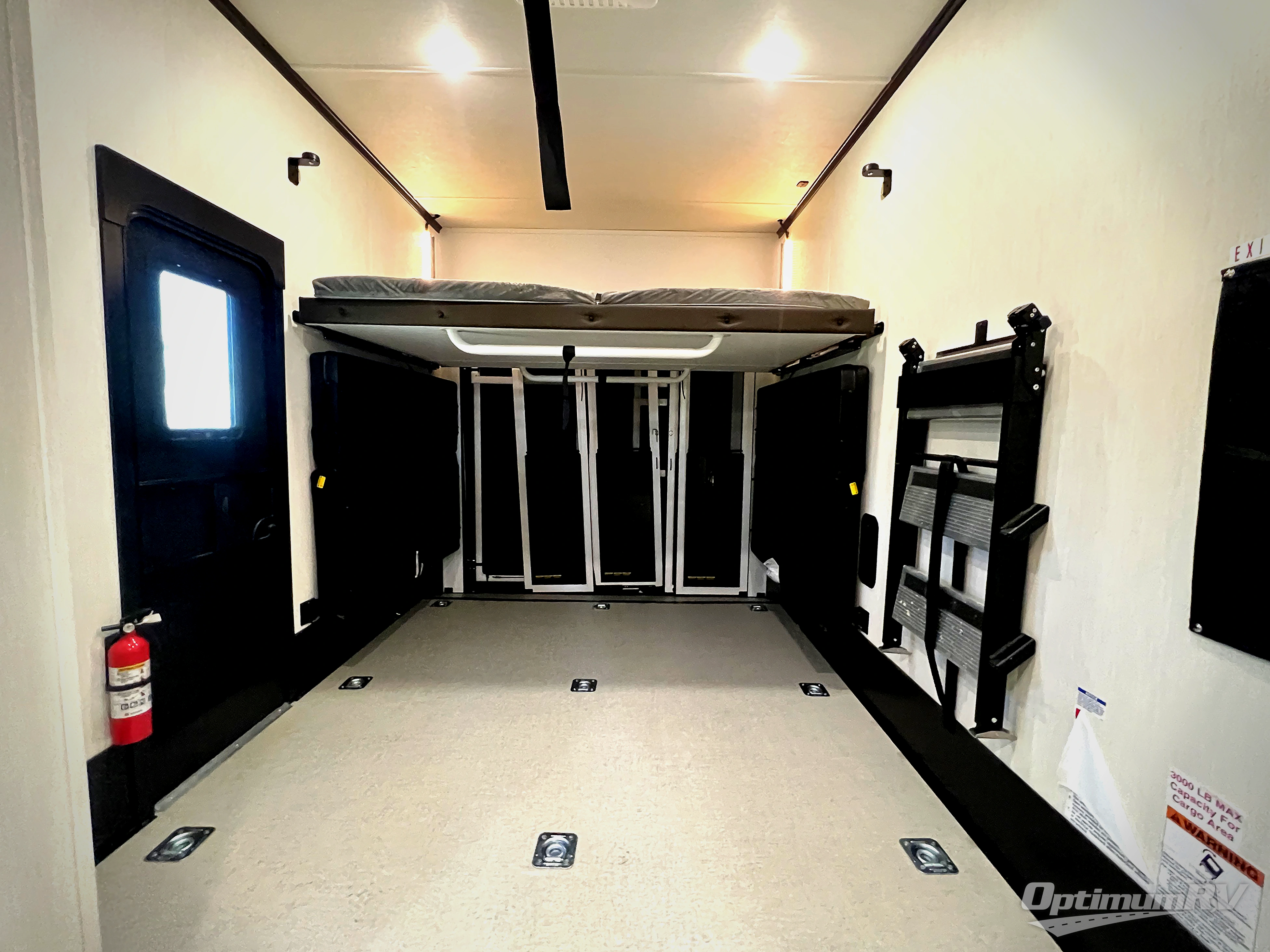 This toy hauler is perfect for a larger group since it can sleep up to eight with the added loft in the garage. There are also dual flip-up sofas here, along with a queen bed above and a half bath for added convenience! The dual entry full bath is up front, creating a master bedroom you are sure to love. There is a king bed slide out, a front wardrobe, and a dresser to keep your things organized. Head to the middle kitchen and living room to relax on the sofa within the large slide out, dine at the table with four chairs, and cook in the full kitchen. This unit also includes a fireplace to make it cozier, a large pantry to keep snacks stocked, and dual power awnings to expand your living space outdoors!