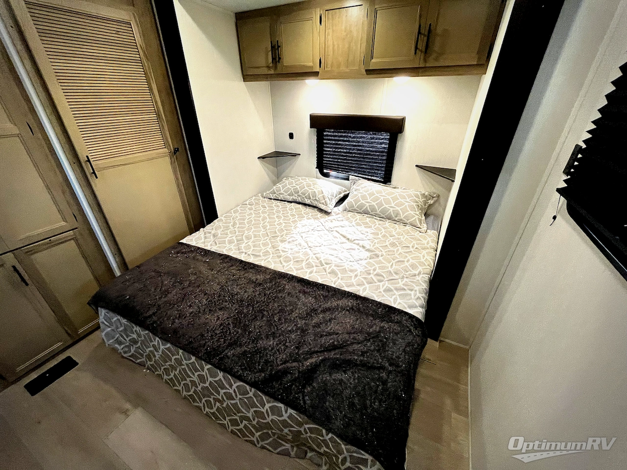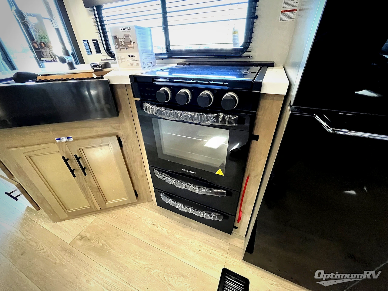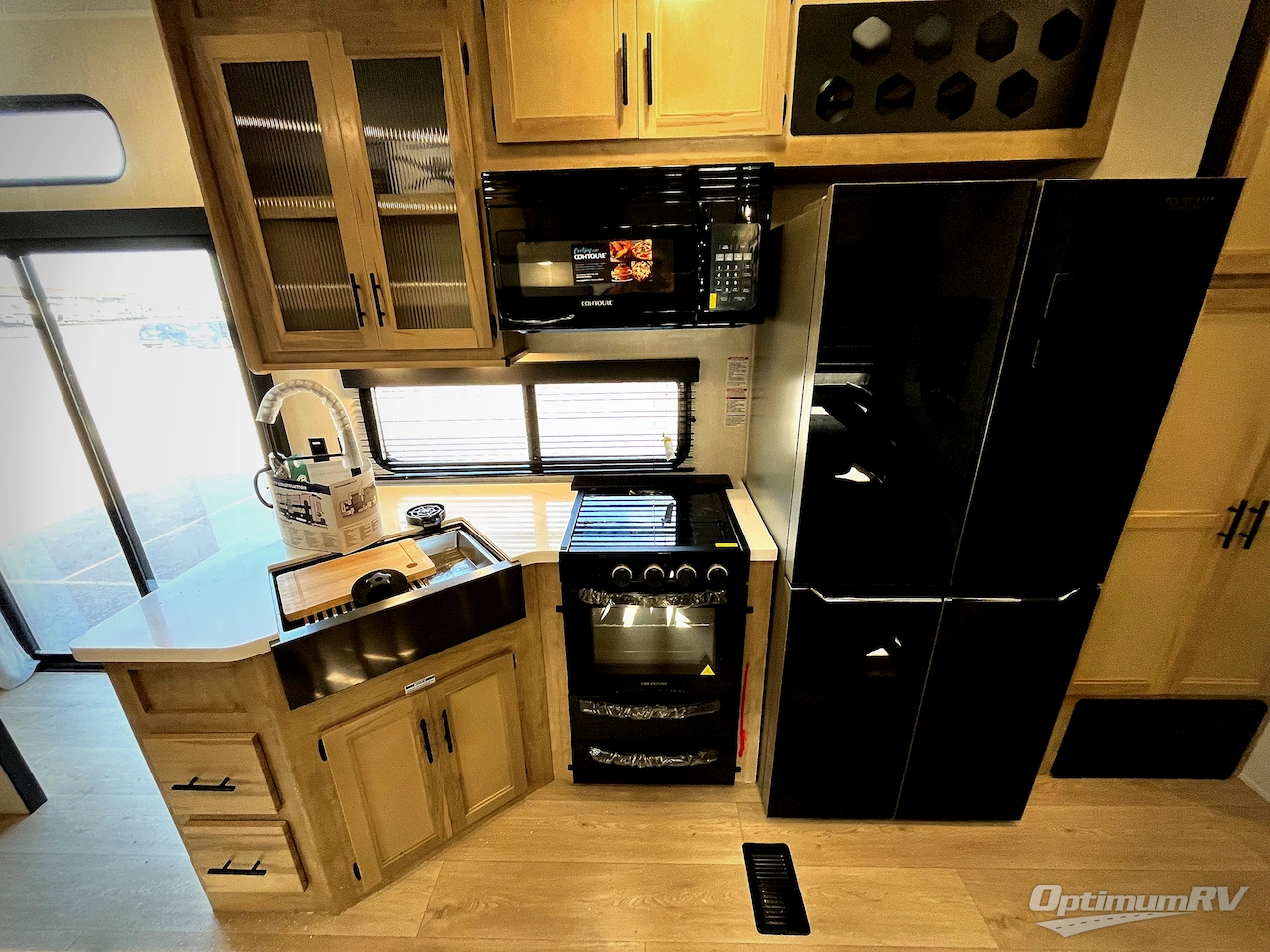 Spacious and comfortable is how you will describe this destination travel trailer featuring triple slides, two full baths, and a spacious combined kitchen and living area thanks to the large slide here featuring a free standing dinette and sofa. The kitchen includes everything you need to comfortably cook while you are away, and allows you to make meals for your family just like at home. There is a large pantry where you can keep plenty of snacks and dry goods for your trip. In the rear of the coach, there is a private bedroom featuring a queen bed slide for added space, comfortable sleeping, as well as ample storage between a dresser and wardrobe for your clothing. In the very back, a master suite bath featuring a vanity with sink, a shower with a seat, and linen storage for your towels and toiletries. This front bedroom also features a king bed slide!