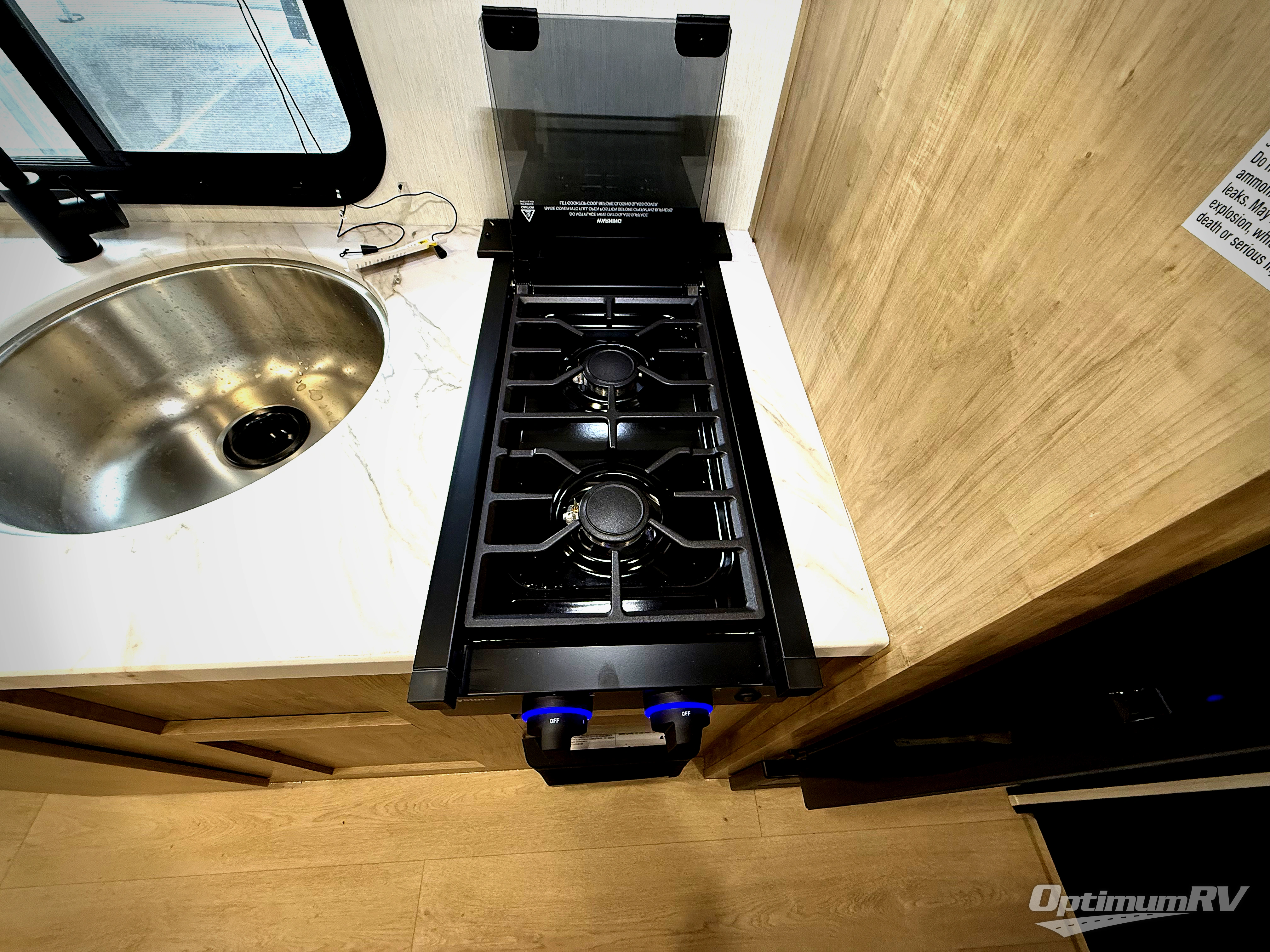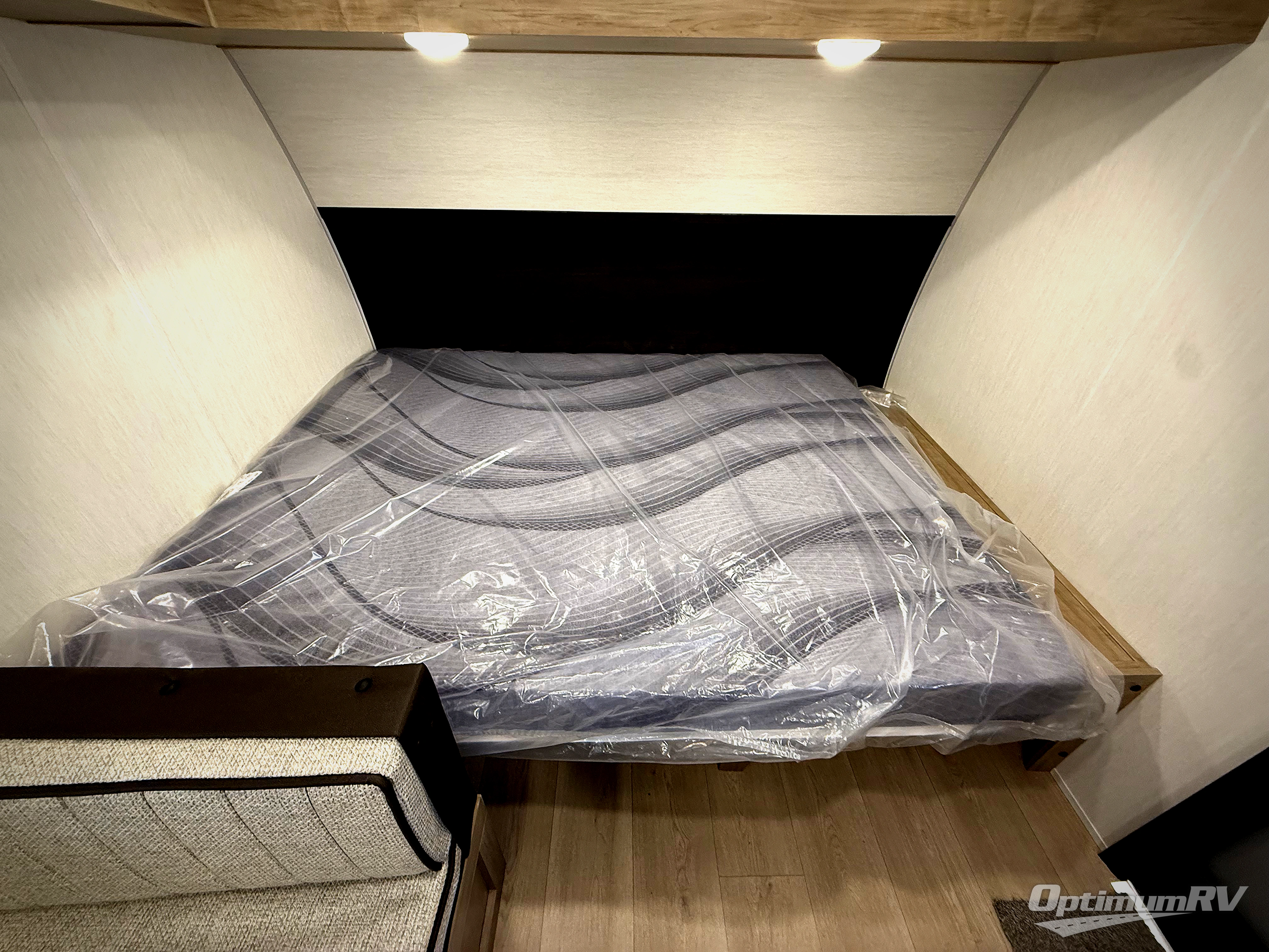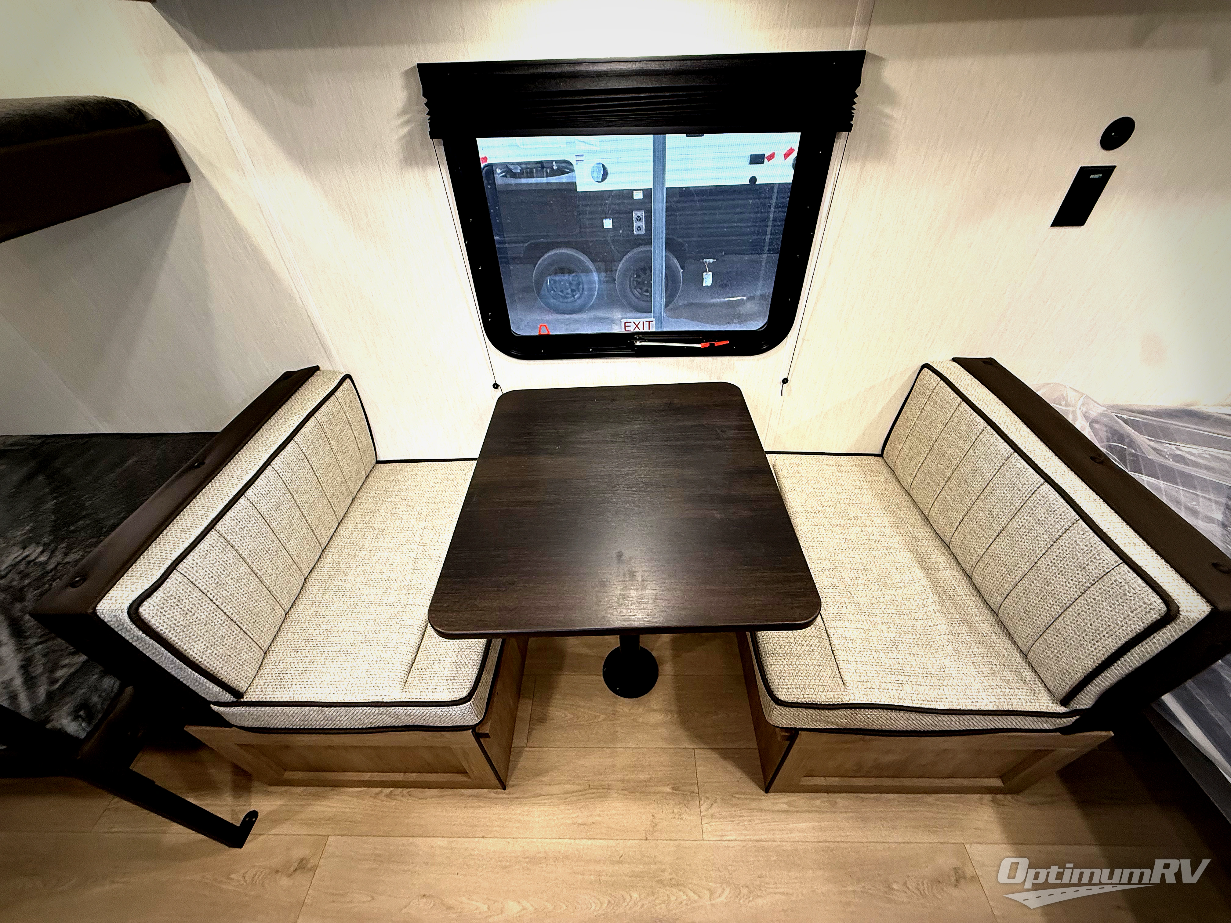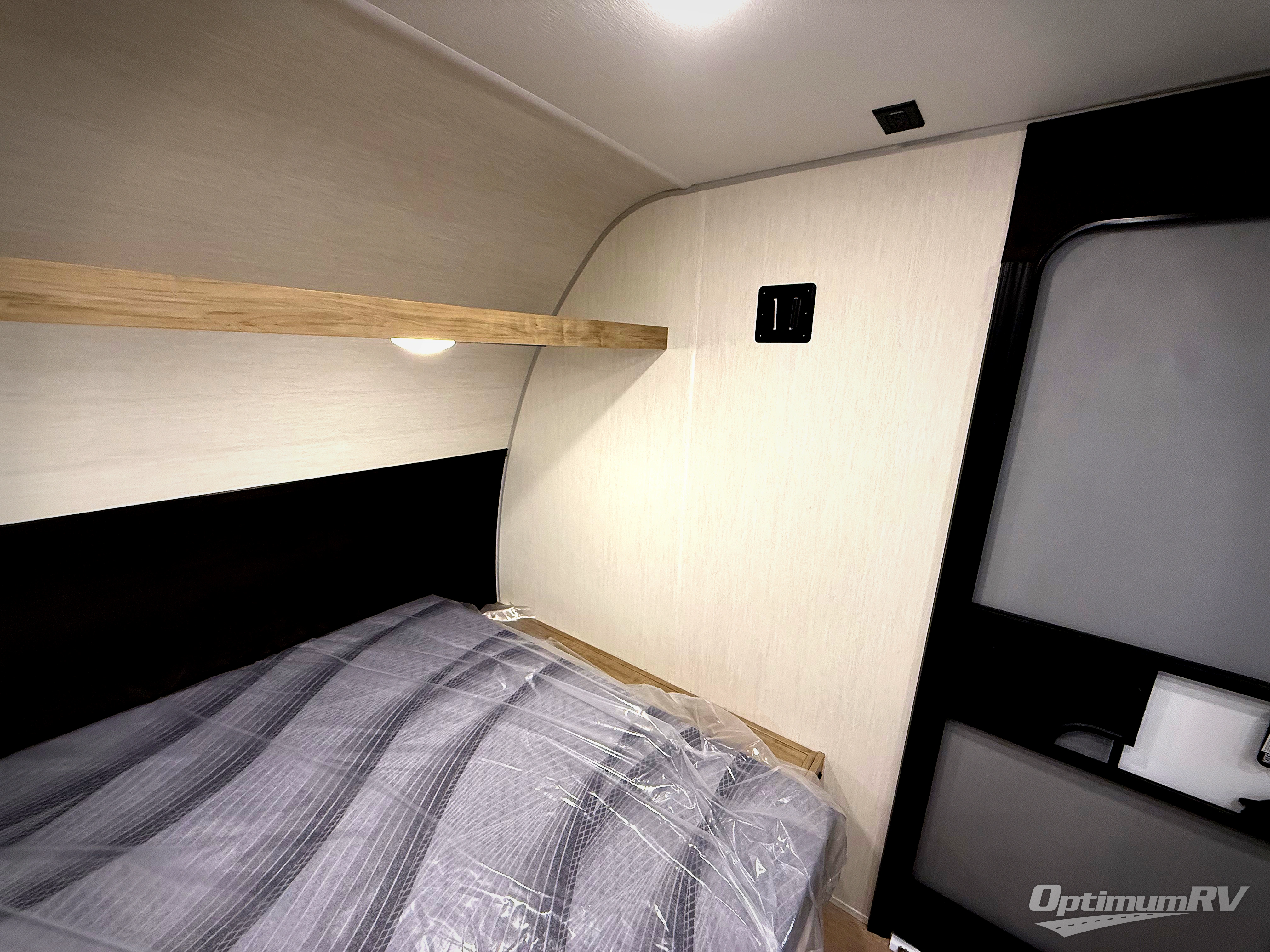 The whole family can sleep comfortably in this travel trailer! It has a set of bunk beds for the kids to sleep on, and you can sleep comfortably on the front queen bed with overhead cabinets and a shelf. The chef will enjoy preparing their best home cooked meals with the cooktop, and you can dine at the booth dinette. And the private bath onboard means you won't have to leave your camper in the middle of the night!
