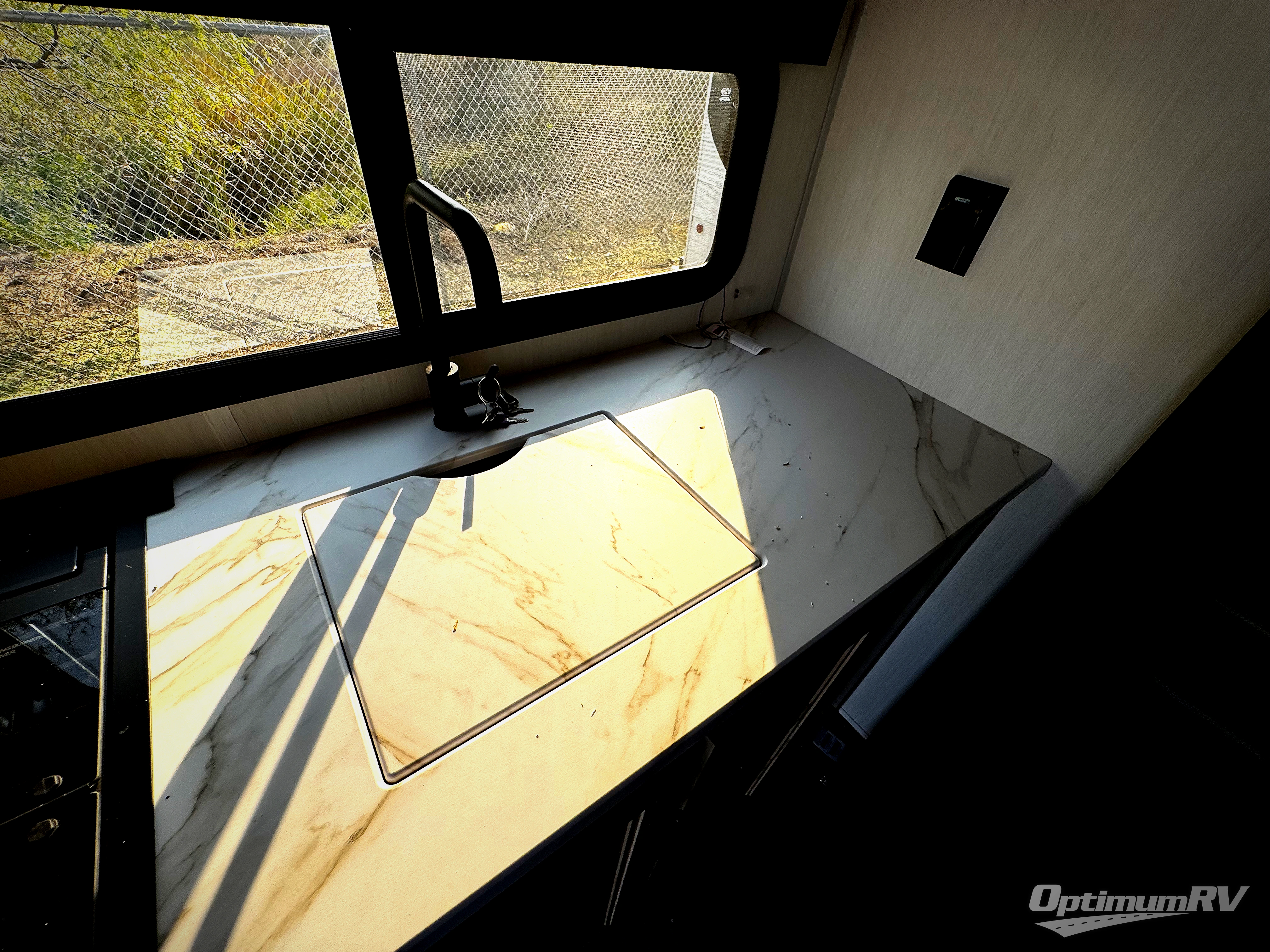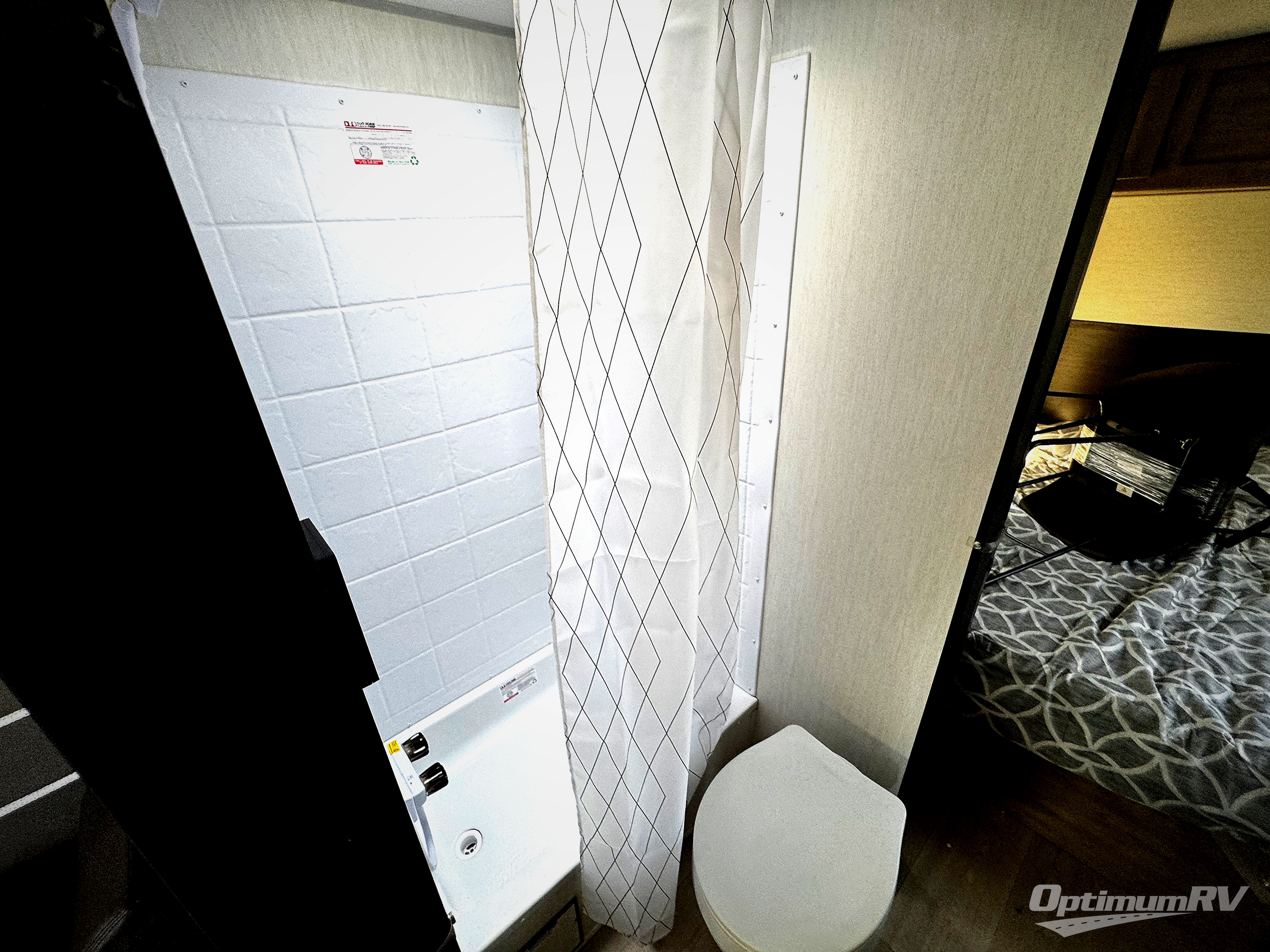 Convenient camping is found with this lightweight travel trailer! Once you arrive at your destination, put out the power awning, then make lunch on the exterior mini kitchen. Inside, you can dine at the bar top with stools, freshen up in the tub/shower, and sleep soundly on the queen bed in the master bedroom. There is also a sofa slide out to provide additional seating, sleeping, and interior space! And you're sure to find plenty of storage spaces both inside and outside, including a rear storage rack!