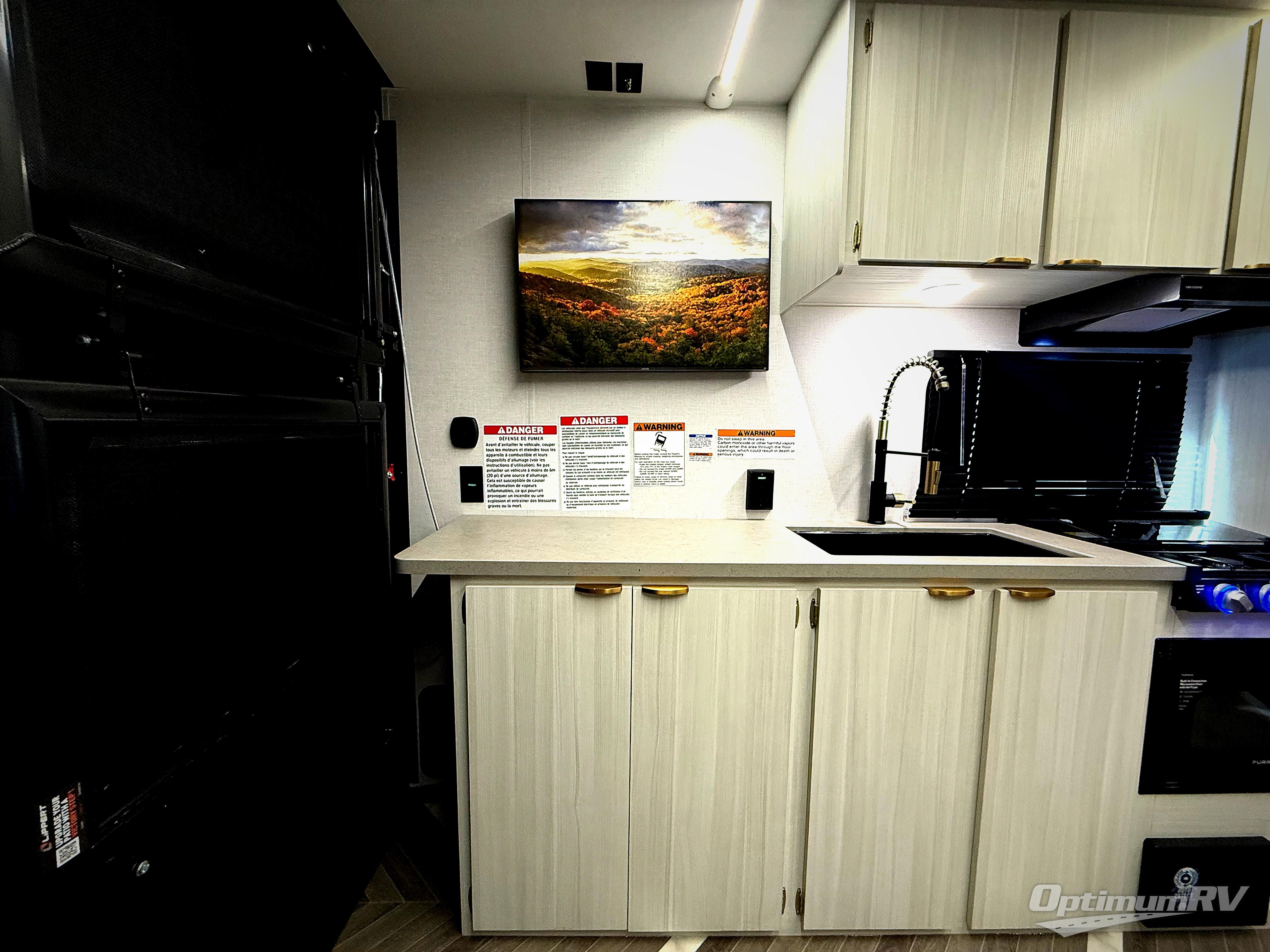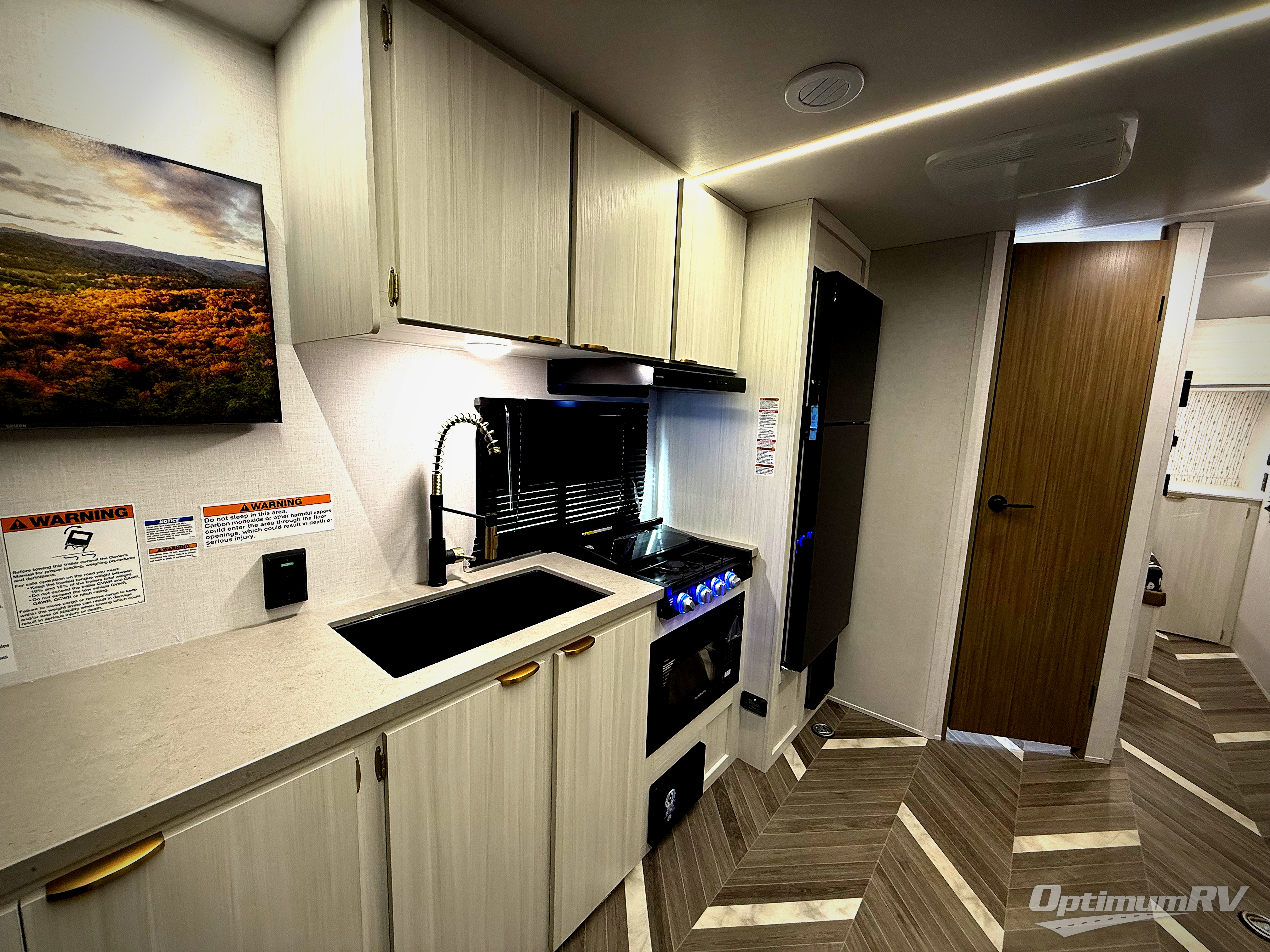 Load up your off-road toys with the ramp door into the 10' 5" garage area in this Ozark toy hauler! Once you reach your destination, unhook your toys from the tie-downs and rest on the comfortable bunk beds. The kitchen has everything you need to prepare your best home cooked meals including the deep stainless steel sink for an easy clean up and the 12V refrigerator. The full bathroom has a large shower pan so you can easily step in without worrying about a tub. Enjoy a good night's rest on the front queen bed, and there is a wardrobe to keep your clothes looking nice.