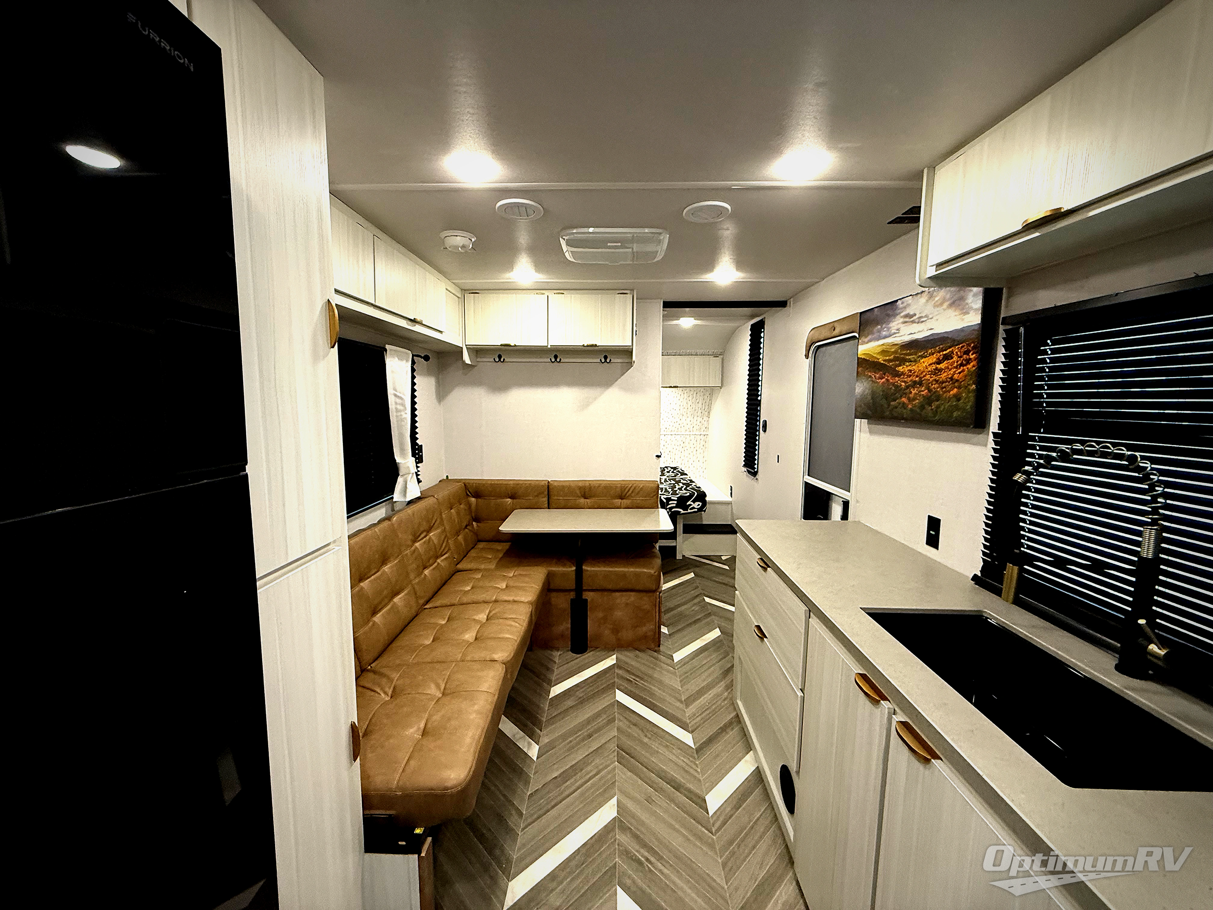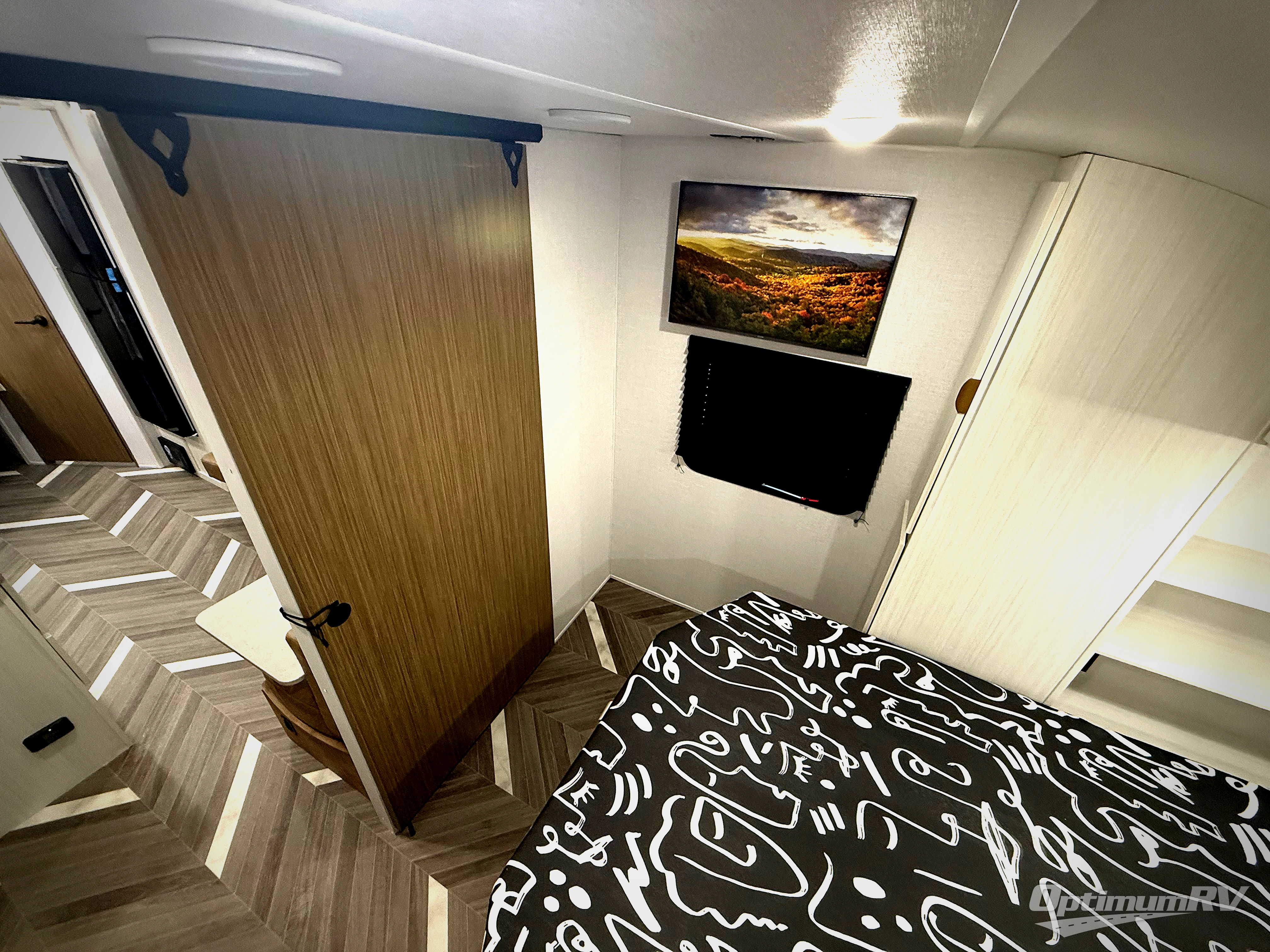 This trailer resembles the layout of 2300RB, but you'll enjoy added double-size bunks in the rear corner, with a full bath in the other rear corner! You'll have the front private bedroom all to yourselves with a king bed and dual wardrobes, and other guests can sleep on the L-shaped sofa when it's not being used to relax on. The kitchen on this Ozark includes a 3-in-1 cooktop with a convection microwave, and a window by the sink so you can have open views as you clean up. There is also a pantry and a 12V refrigerator to keep food stocked!