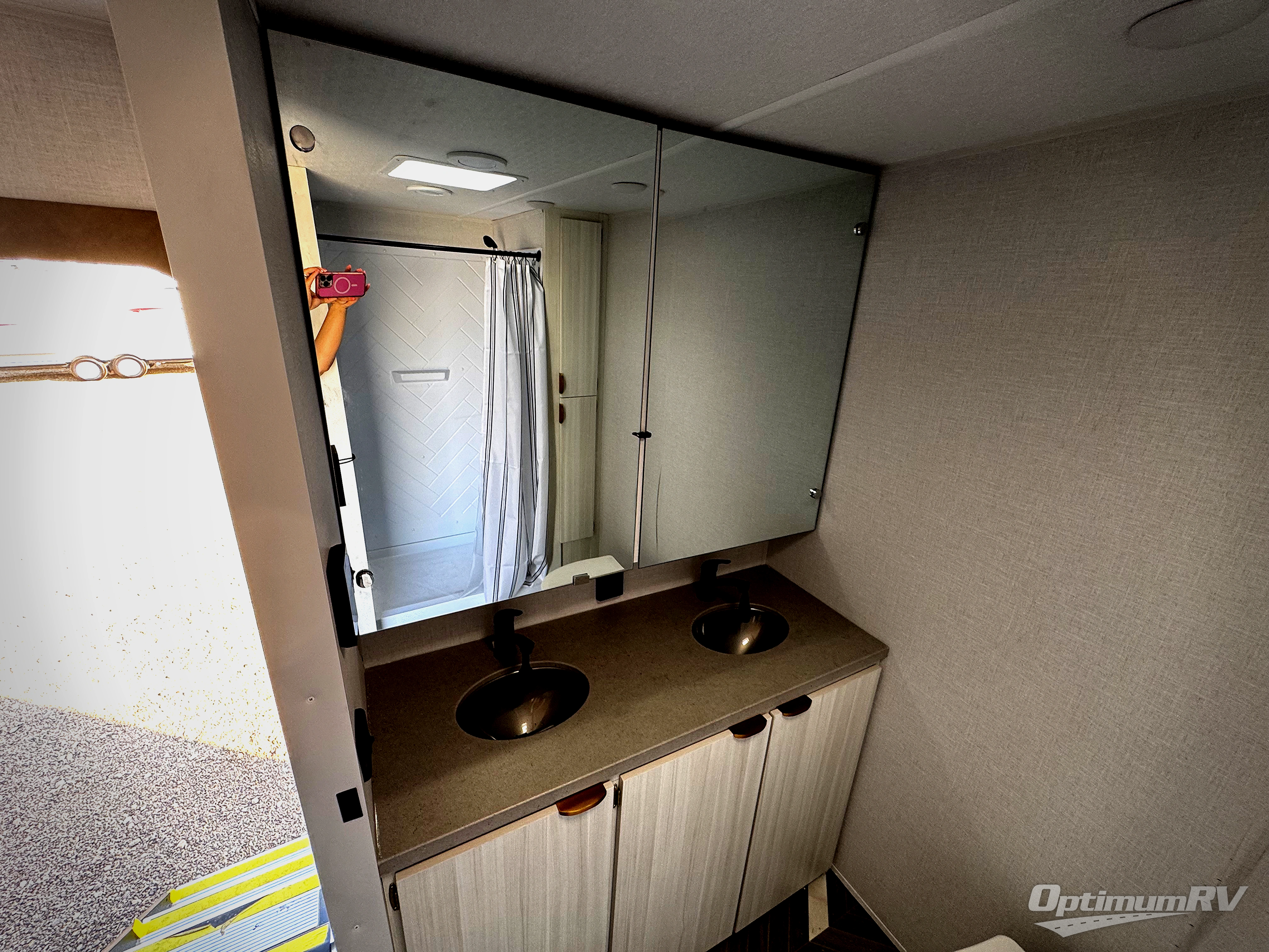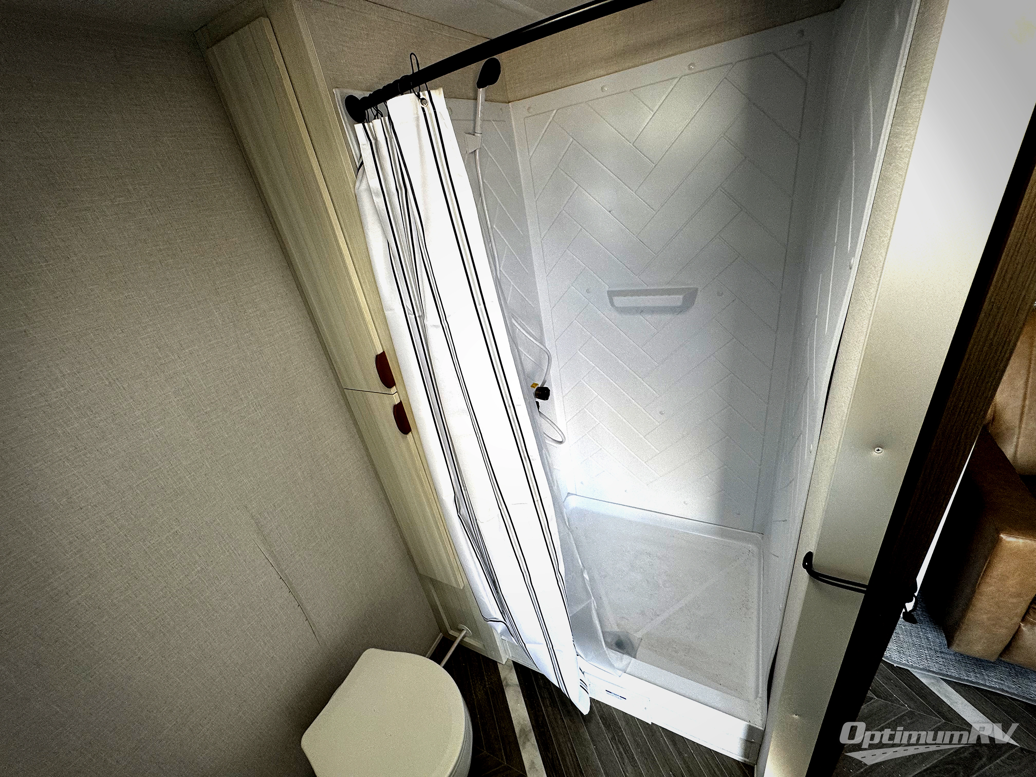 Whether you're camping in your own back yard or across the country, you'll find comfort in this spacious travel trailer. The full rear bath is not only spacious, but it's tucked away in the back for privacy. Your crew can get comfortable on the theater seating or head outdoors to relax under the 18' power awning. There is also a bar top with stools and a fully-equipped kitchen to make meals each day, or you can head outdoors to utilize the outdoor Quick Connect and 2X size camp refrigerator! When you're ready to call it a night, head to the front private bedroom for a great night's rest on the king bed that includes wardrobes on either side for your clothes.