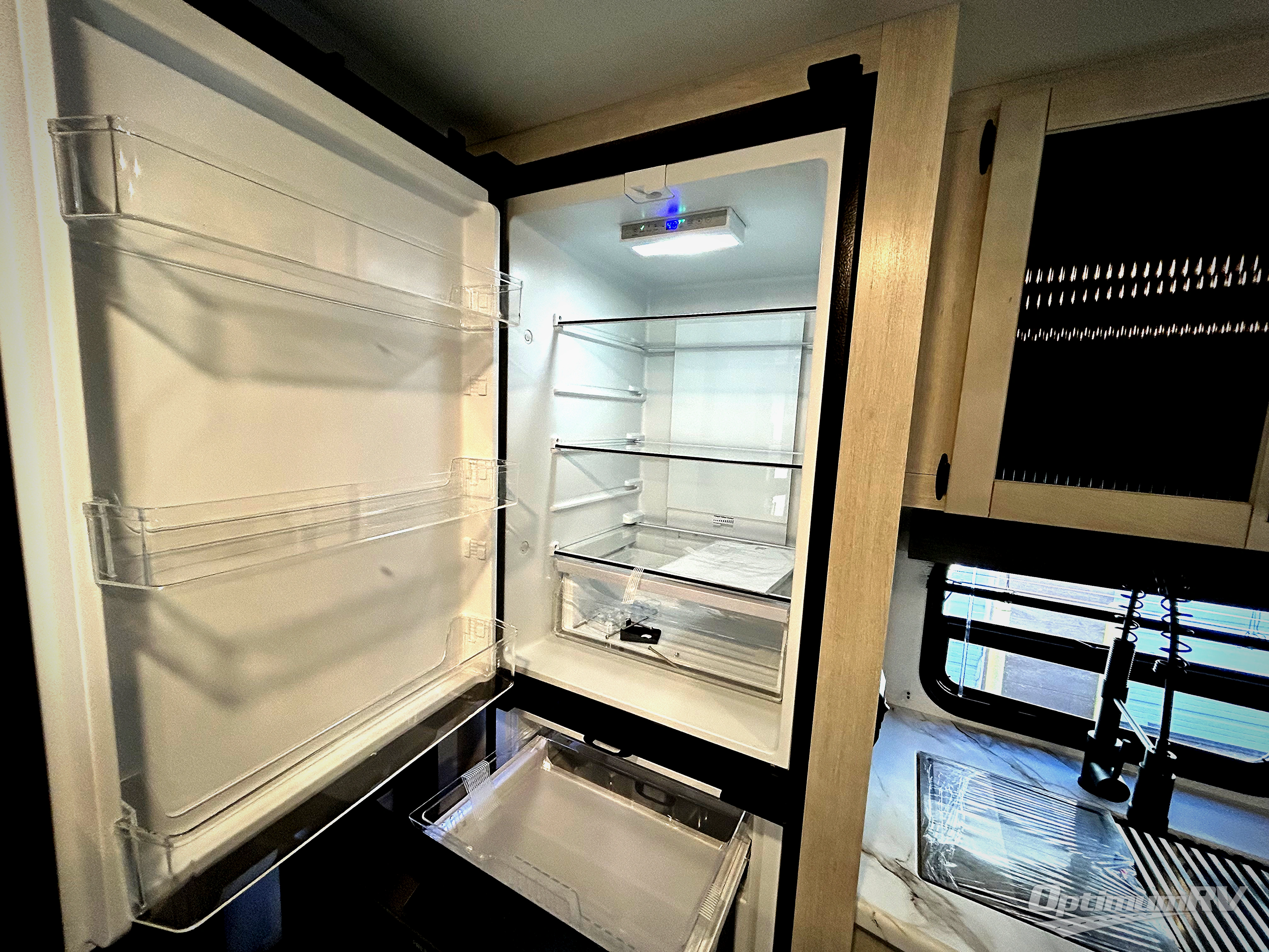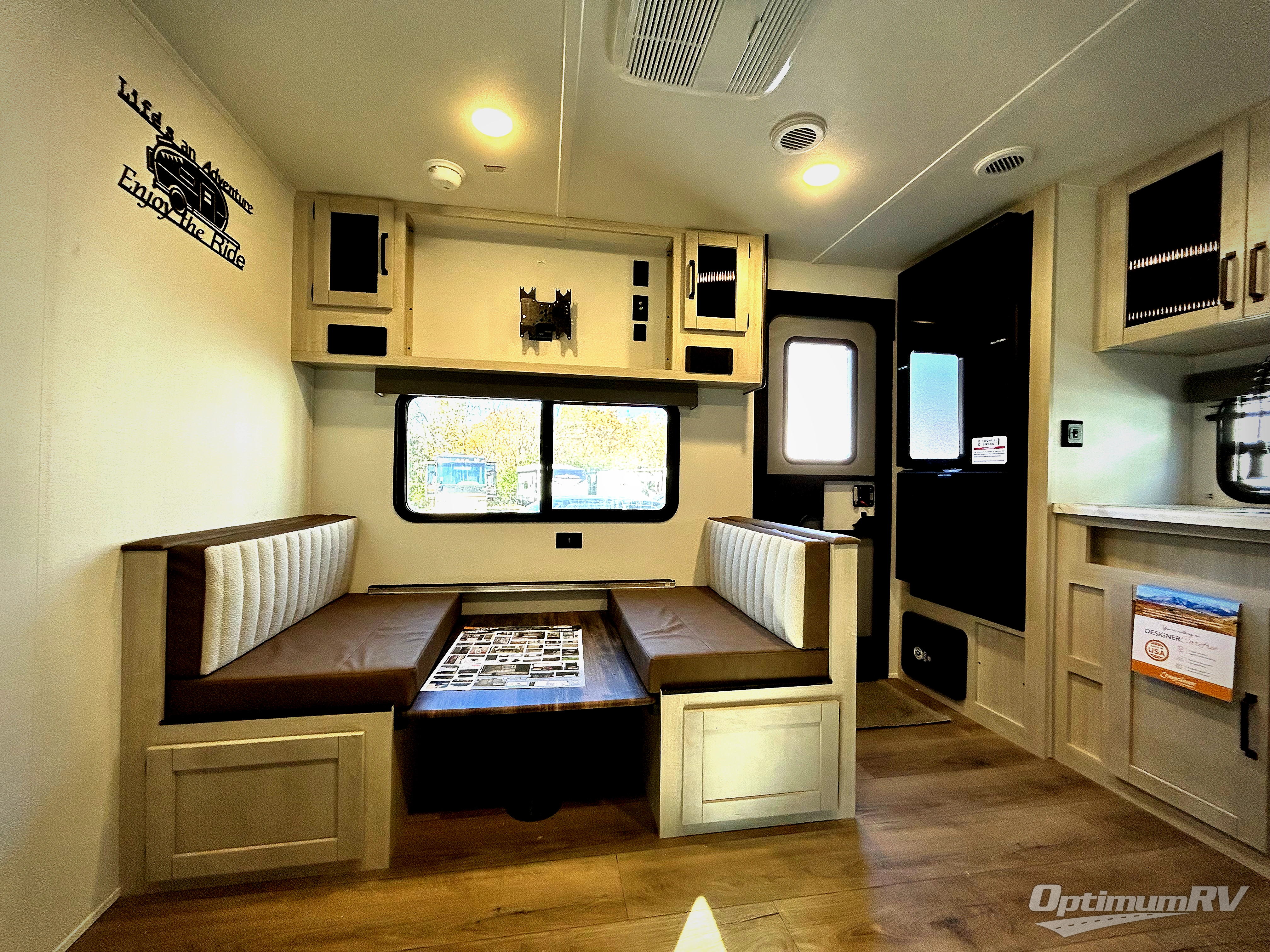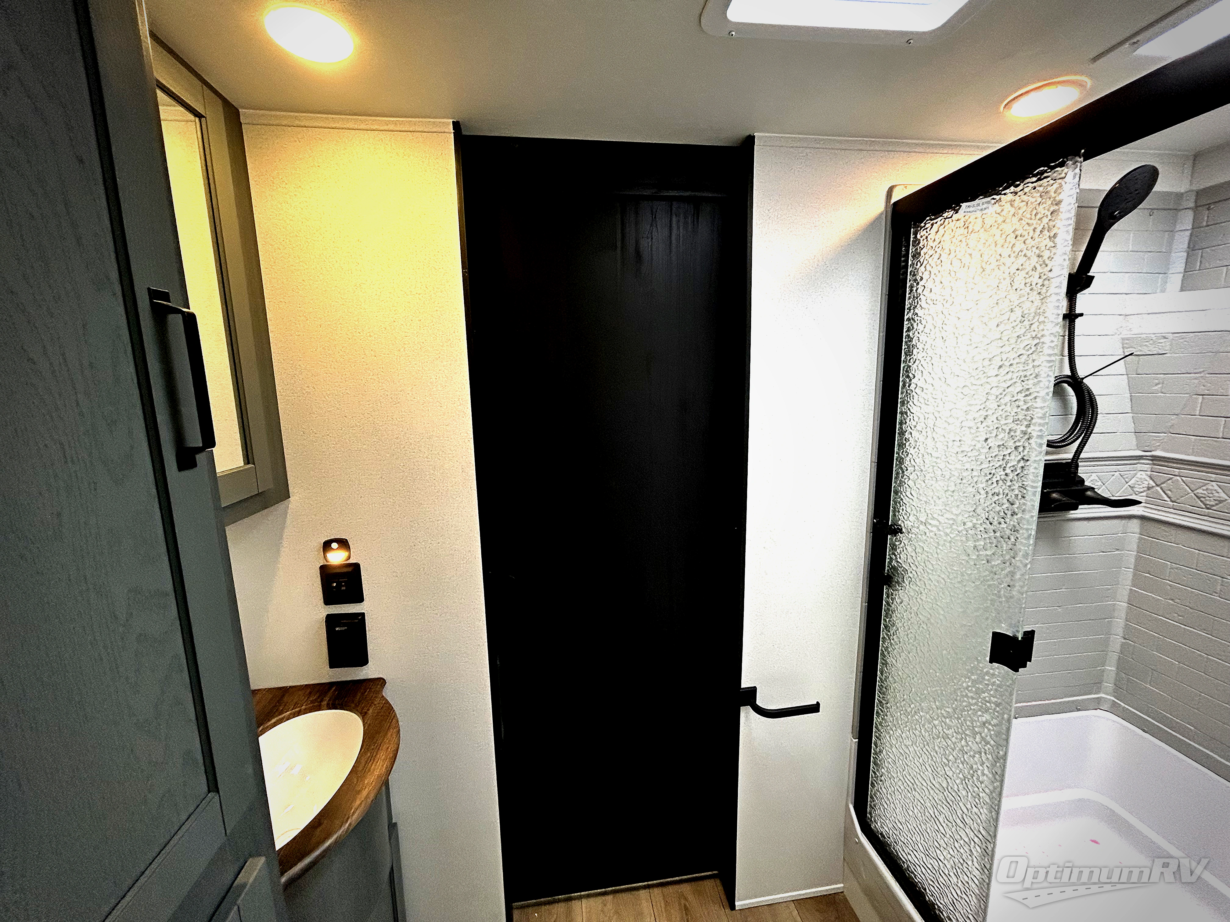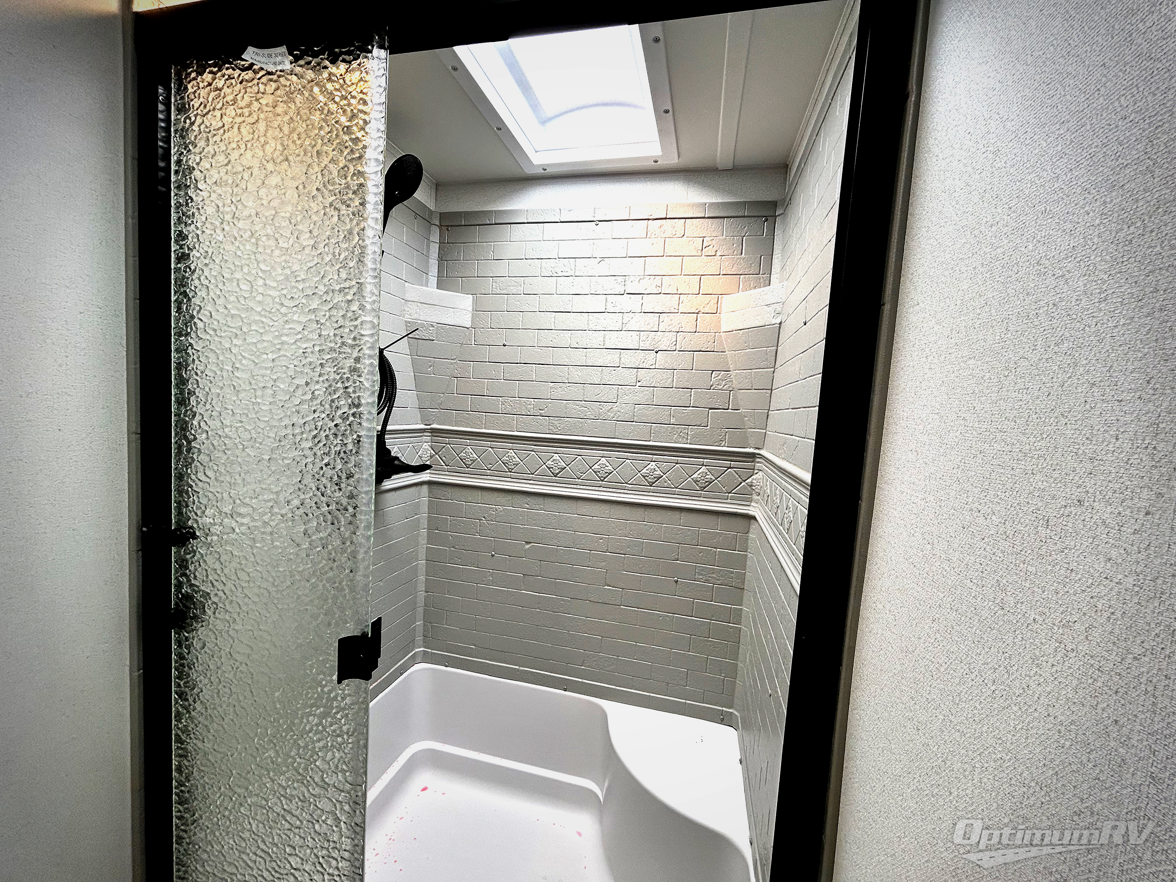 This rear kitchen travel trailer will be perfect for camping trips to the lake or woods! Once you've made breakfast on the stainless steel oven and range, you can dine at the booth dinette or take your plate outdoors to sit under the 18' electric awning. There is also a sofa slide out inside for a comfy place to relax. The walk-thru bath features a shower with a seat for added comfort, and you'll love having your own space in the front master bedroom. Here, you'll find a queen bed plus dual bedside closets to keep your things organized!