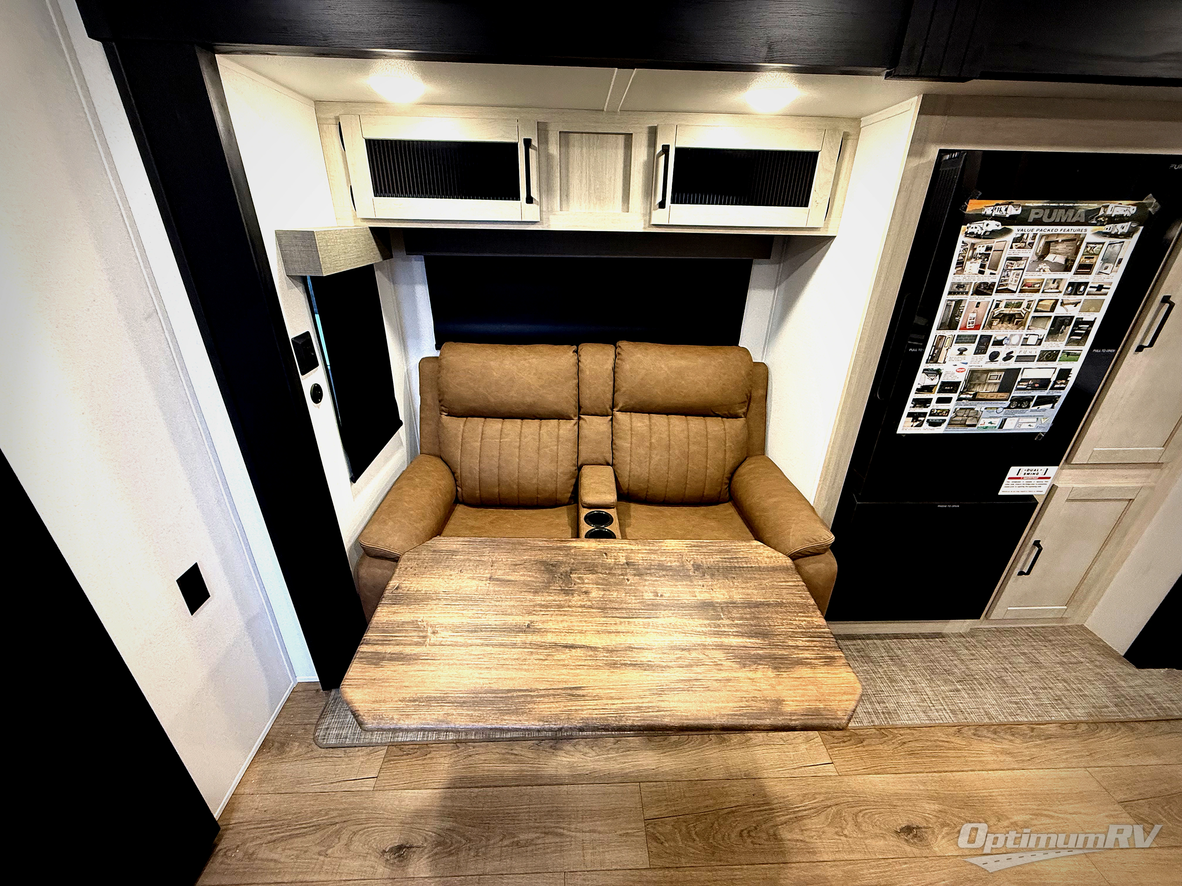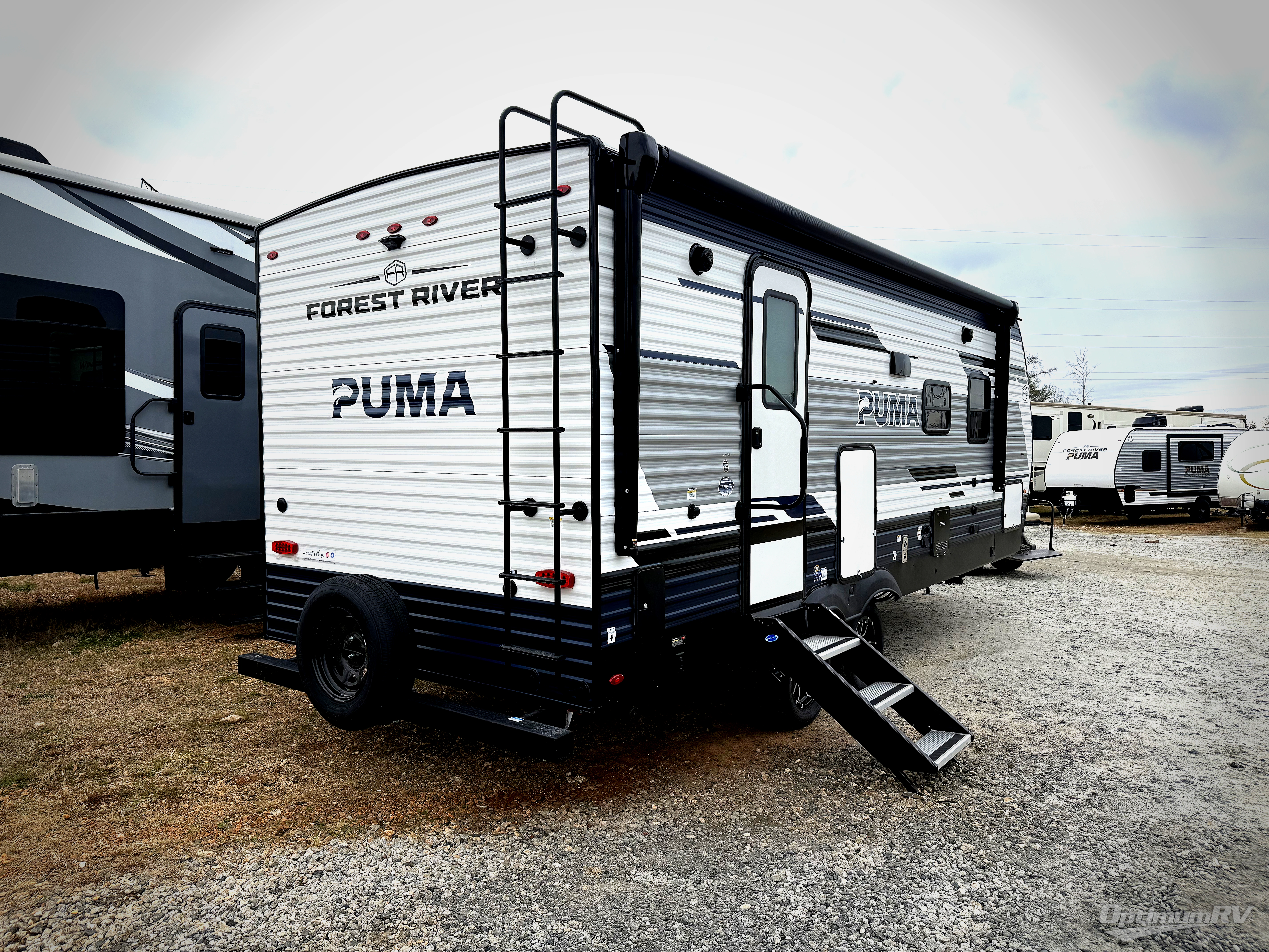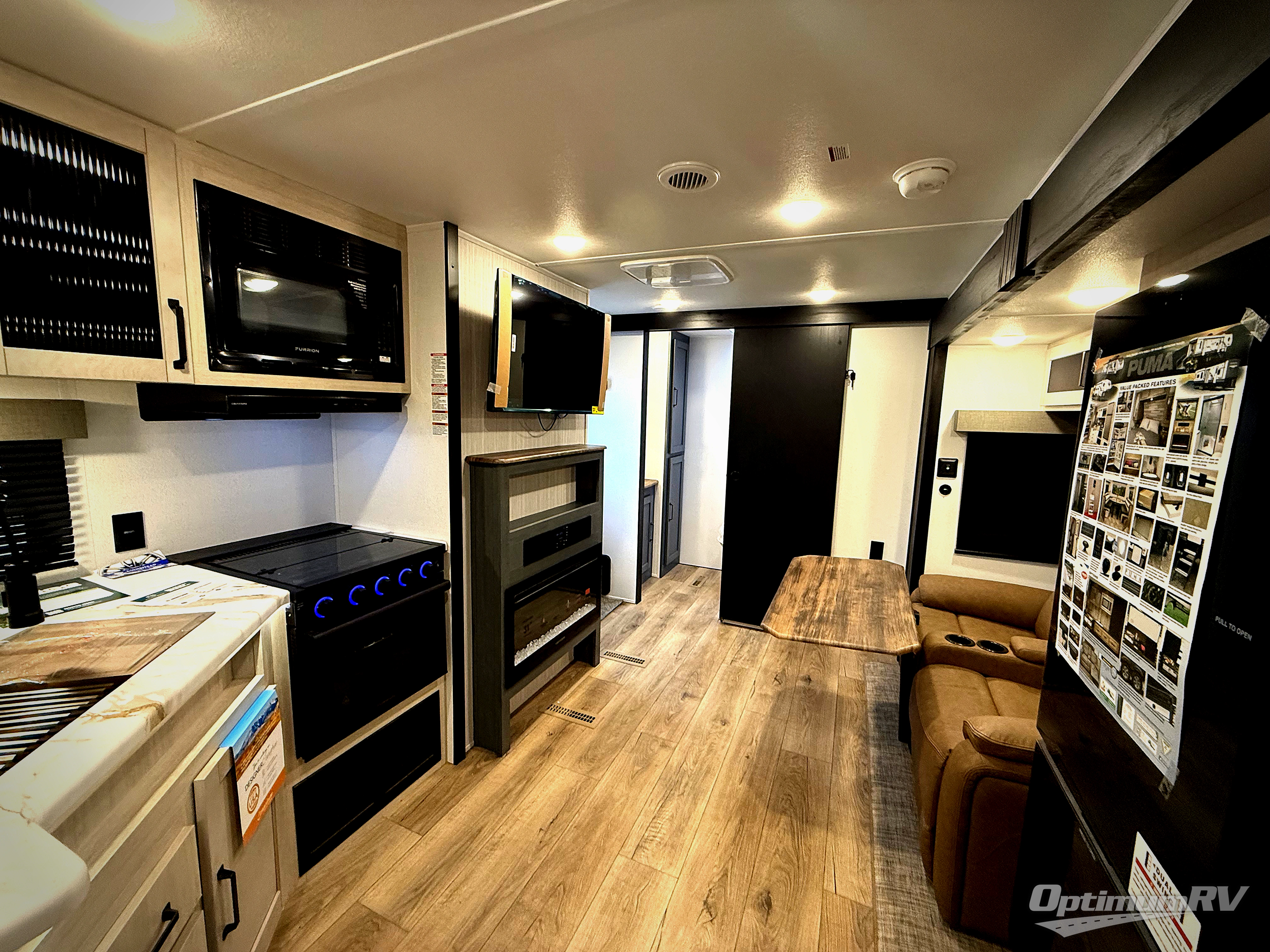 If you're looking for family-fun adventures then you need one of these Palomino Puma fifth wheels or travel trailers! They are built rugged, easy to tow, and jam packed with features. The Darco wrapped underbelly will protect your units vitals the AlphaPly roofing membrane covers it. They also have new aluminum wheels and a powder coated steel I-beam frame. Inside, the Congoleum linoleum will be easy to keep clean, and the night roller shades will provide privacy when it's time to turn in. You'll also enjoy an electric awning with an LED light strip plus an AM/FM/Bluetooth stereo and two outside speakers to keep the party going!
