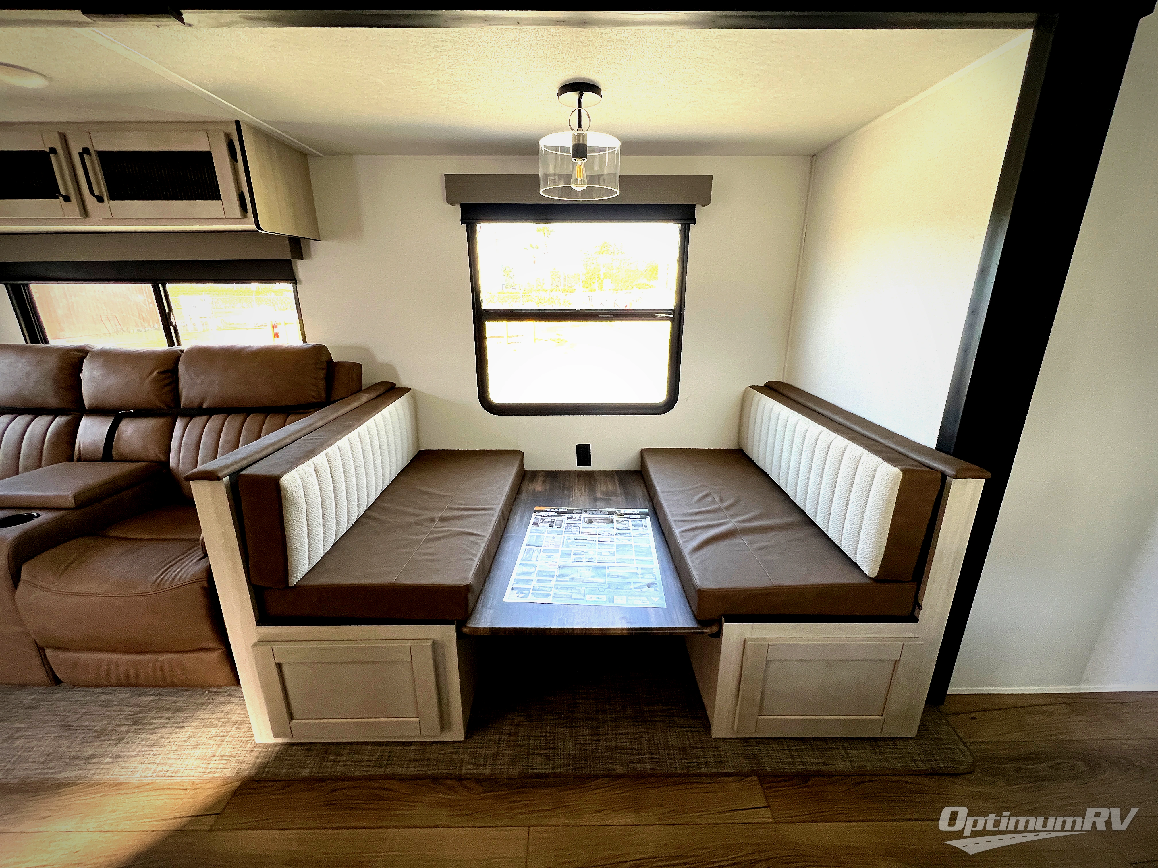 Head to the lake in this double slide out travel trailer that can sleep four to five each night. You will love having the front private bedroom all to yourselves that includes a queen bed slide out, a front wardrobe, a closet with washer and dryer prep, plus your own exterior entry door. Your guests can sleep on the sofa and booth dinette within the second slide out, and the full rear bath is tucked away for privacy. This model also includes an entryway closet/pantry for food storage and jackets, and the fireplace across from the sofa makes your space cozier. An optional outside micro kitchen is available also if you like to cook outdoors!