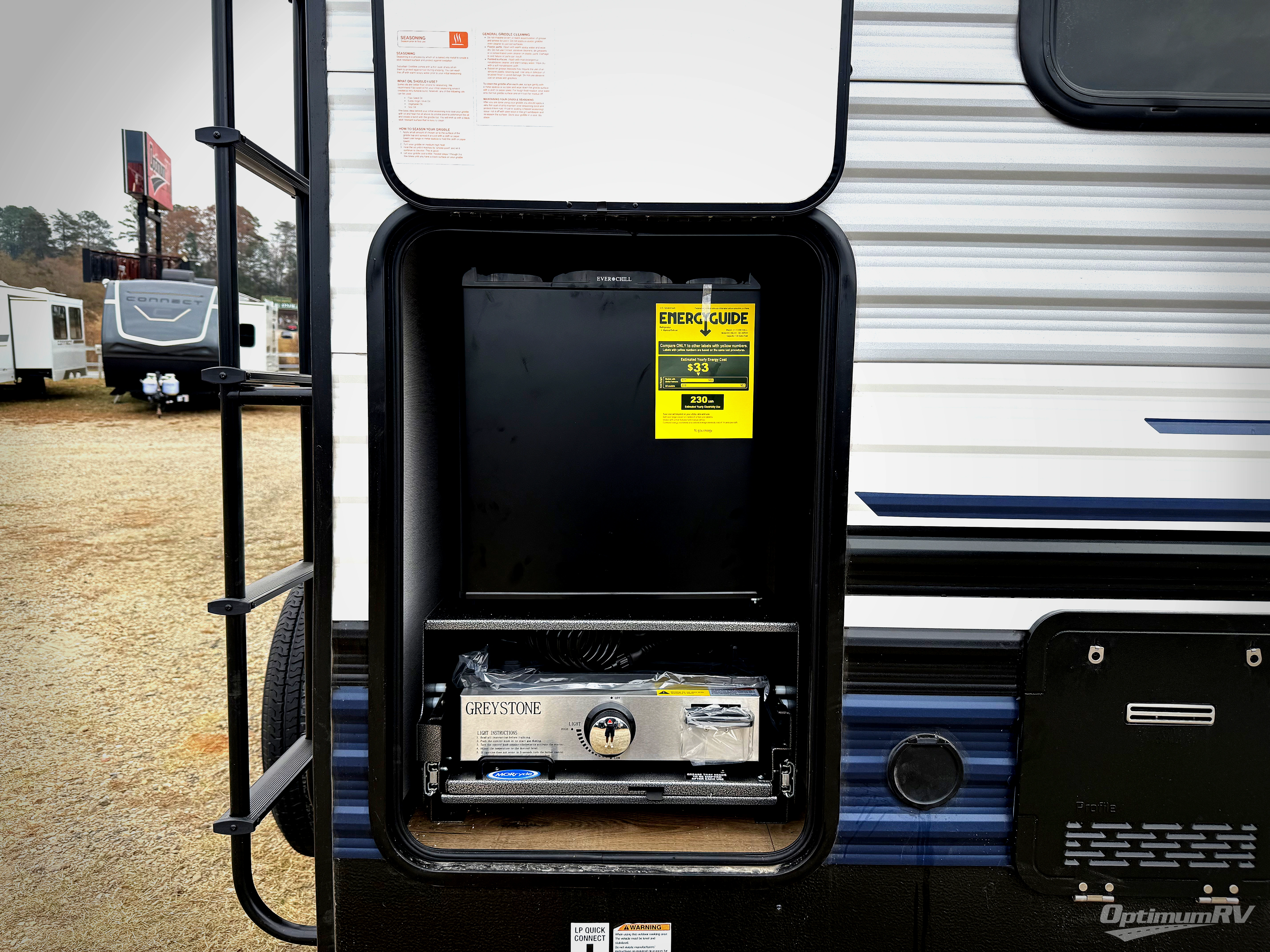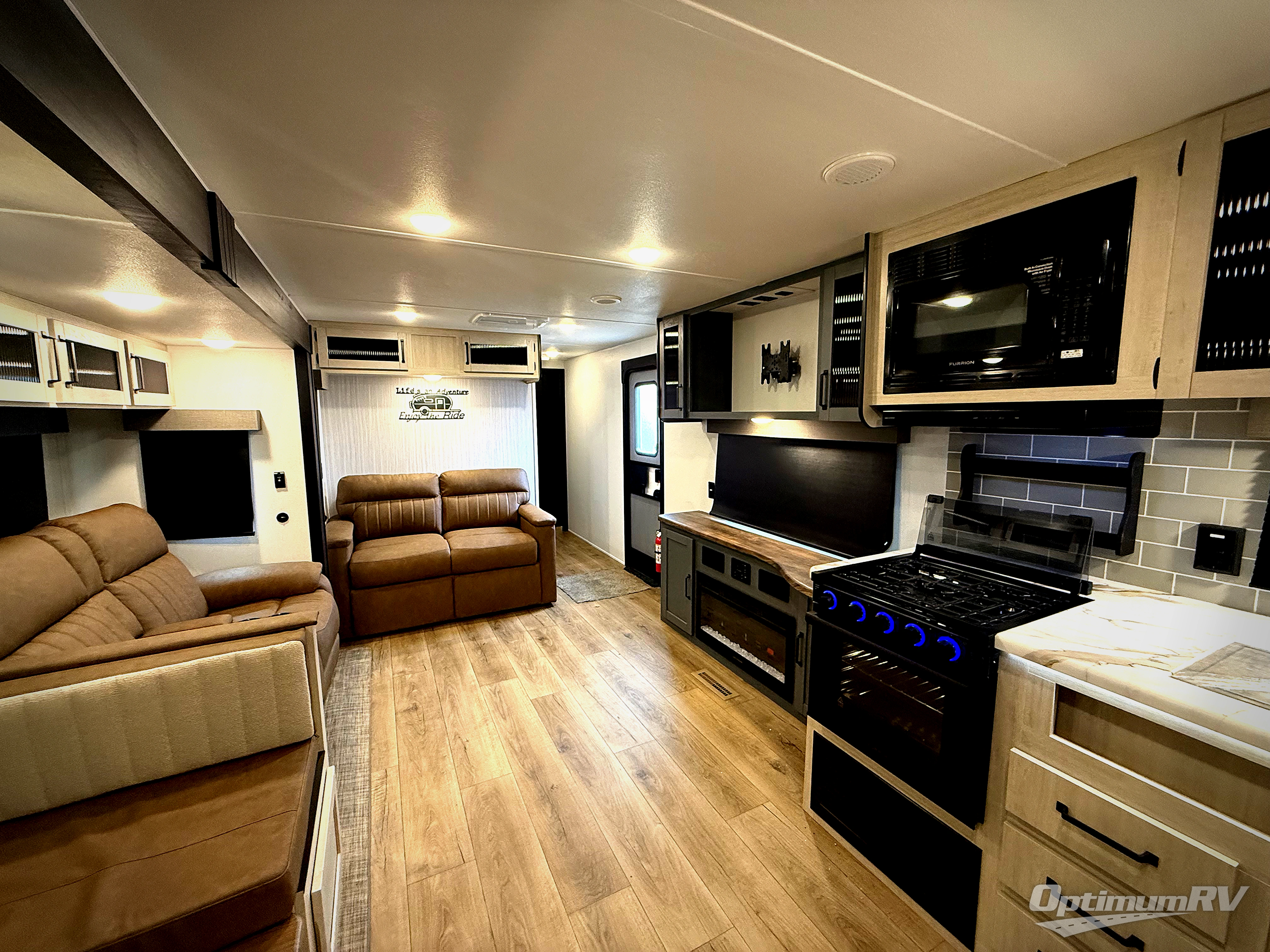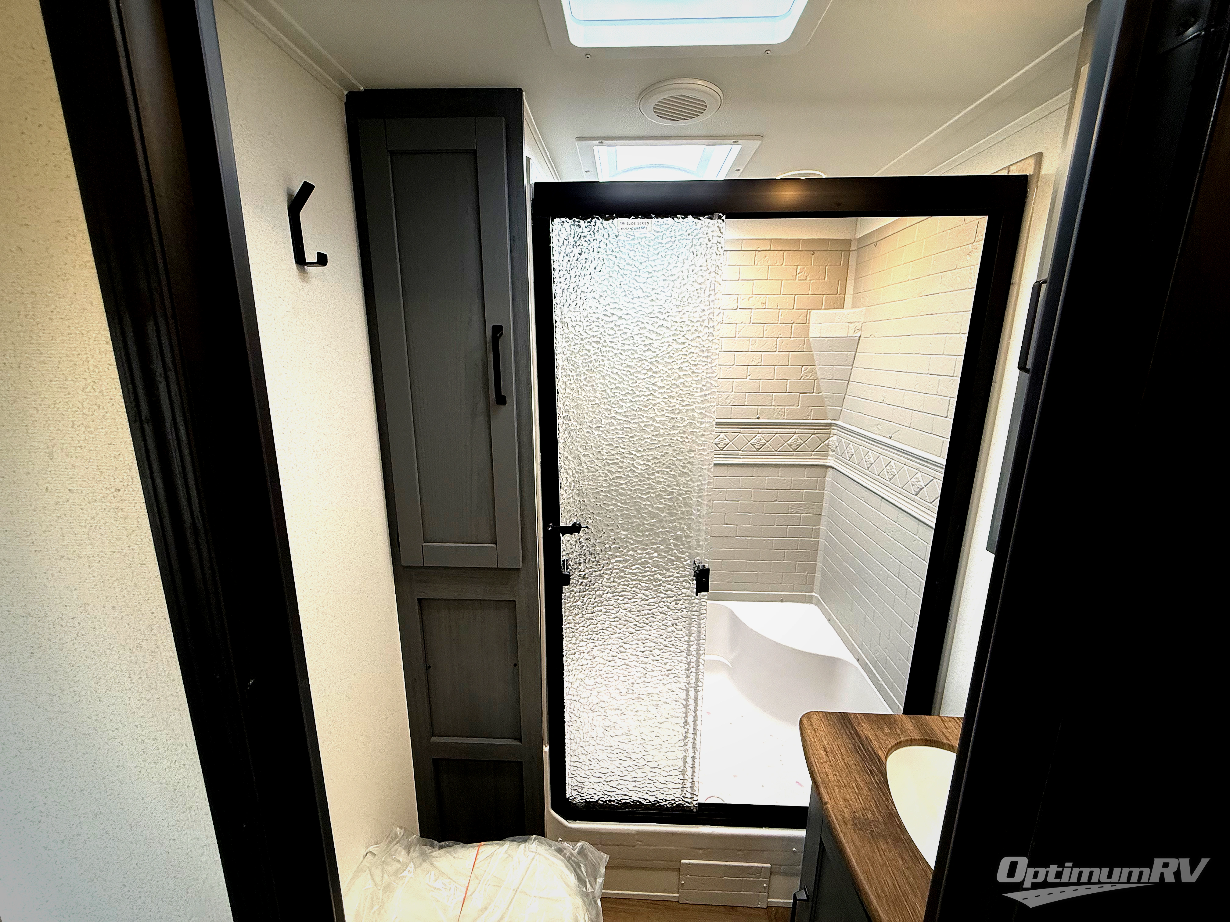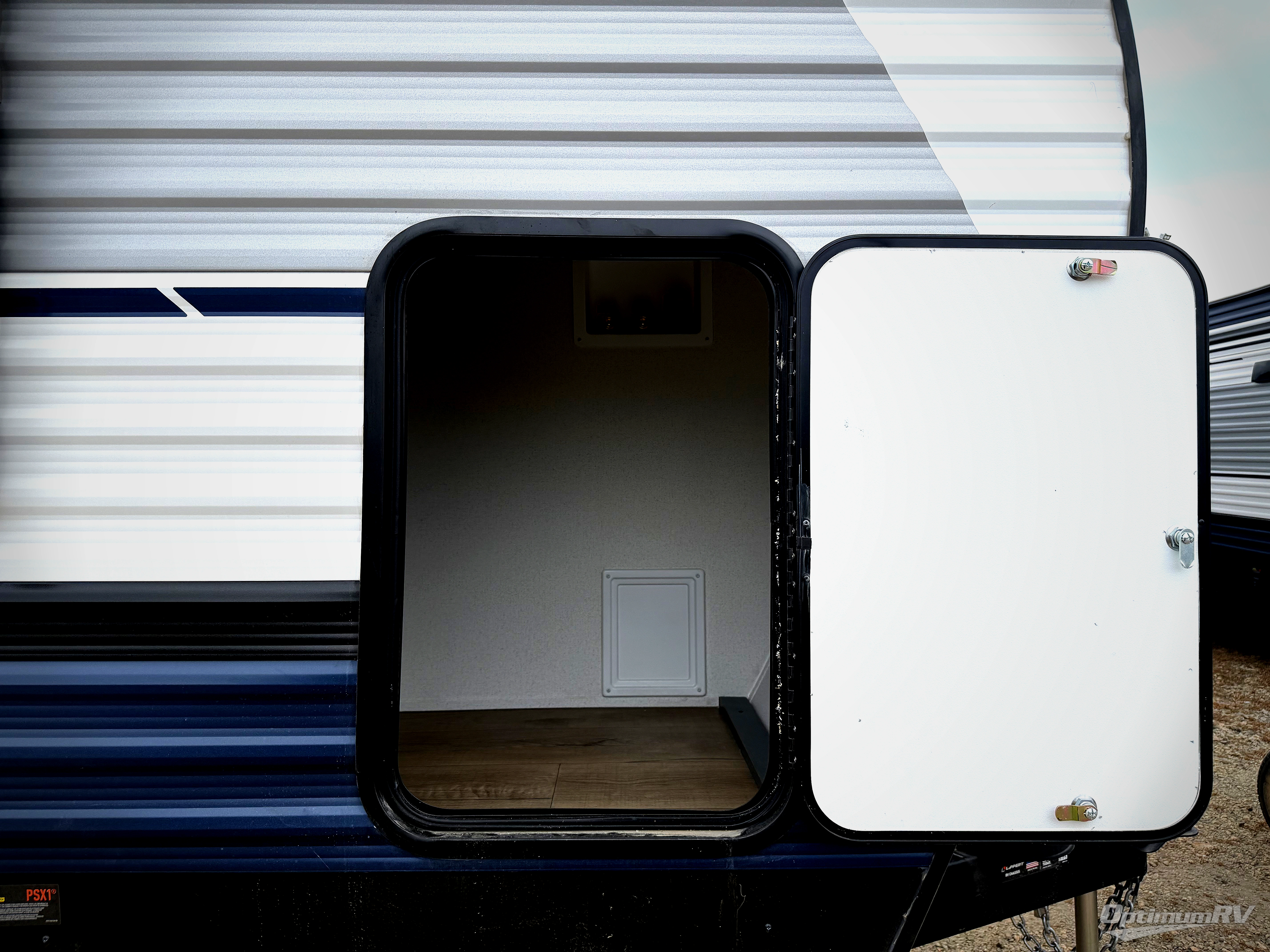 You won't want to camp any other way once you step inside this travel trailer! The rear kitchen has a stainless steel oven and range to prepare your best meals, a 12V refrigerator to keep your perishables fresh, and a walk-in pantry for your canned goods and snacks for movie night. After a fun day at the beach, you can play a card game at the booth dinette, relax in either one of the two recliners and sofa, or rinse the sand out of your hair in the 32" x 40" shower with a seat in the full bathroom. There is also a front private bedroom with a queen bed slide across from a dresser and a front closet with another closet with washer and dryer prep.
