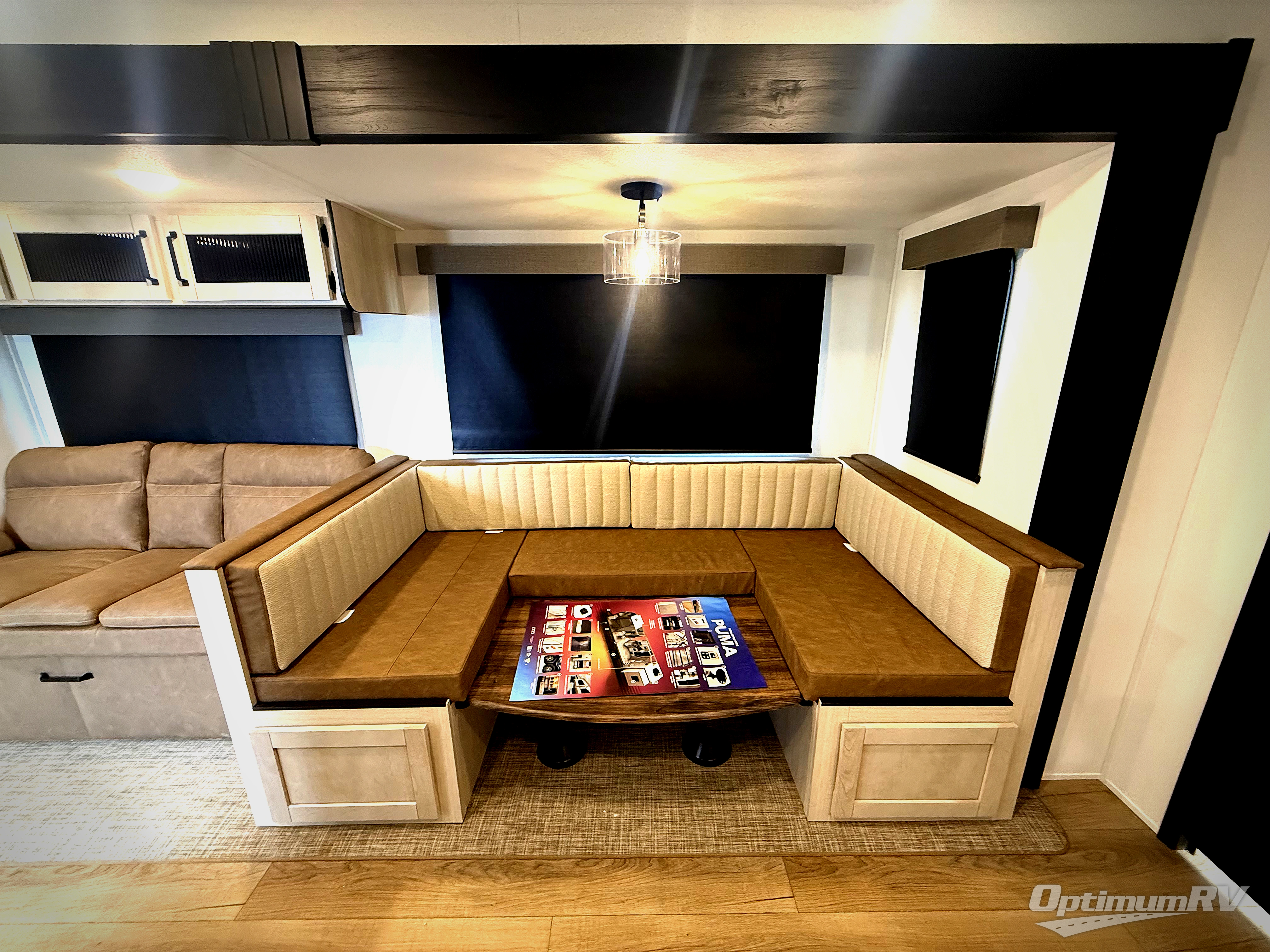 If you're looking for family-fun adventures, then you need one of these Forest River Puma travel trailers! They are built rugged, easy to tow, and jam packed with features. The Darco wrapped underbelly will help protect your unit, and the roof and side mount solar prep gives you the option to add off-grid power. Inside, the Congoleum linoleum will be easy to keep clean, and the night roller shades will provide privacy when it's time to turn in. You'll also enjoy an electric awning with an LED light strip plus an AM/FM/Bluetooth stereo and two outside speakers to keep the party going!