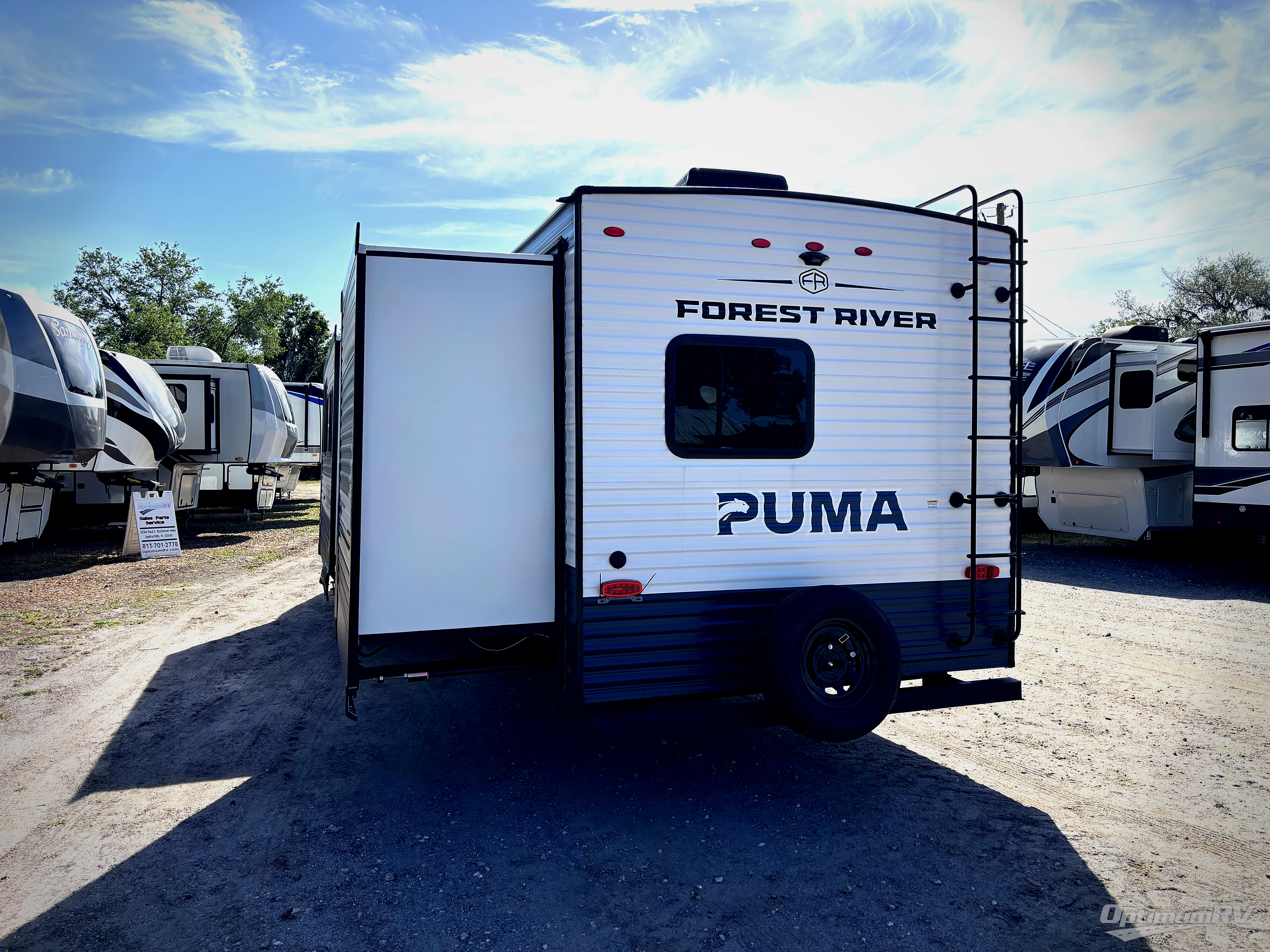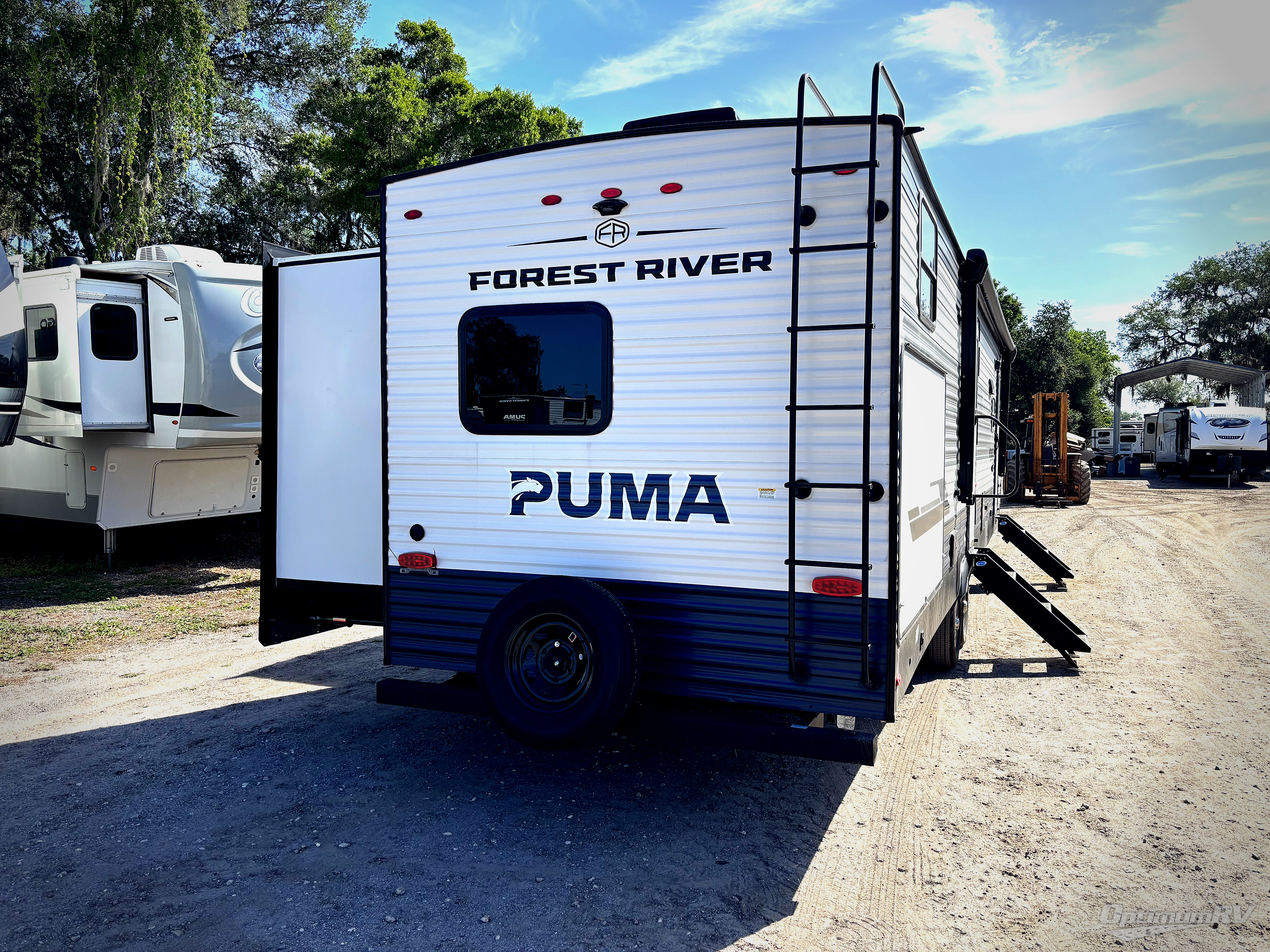 If you're looking for family-fun adventures, then you need one of these Forest River Puma travel trailers! They are built rugged, easy to tow, and jam packed with features. The Darco wrapped underbelly will help protect your unit, and the roof and side mount solar prep gives you the option to add off-grid power. Inside, the Congoleum linoleum will be easy to keep clean, and the night roller shades will provide privacy when it's time to turn in. You'll also enjoy an electric awning with an LED light strip plus an AM/FM/Bluetooth stereo and two outside speakers to keep the party going!