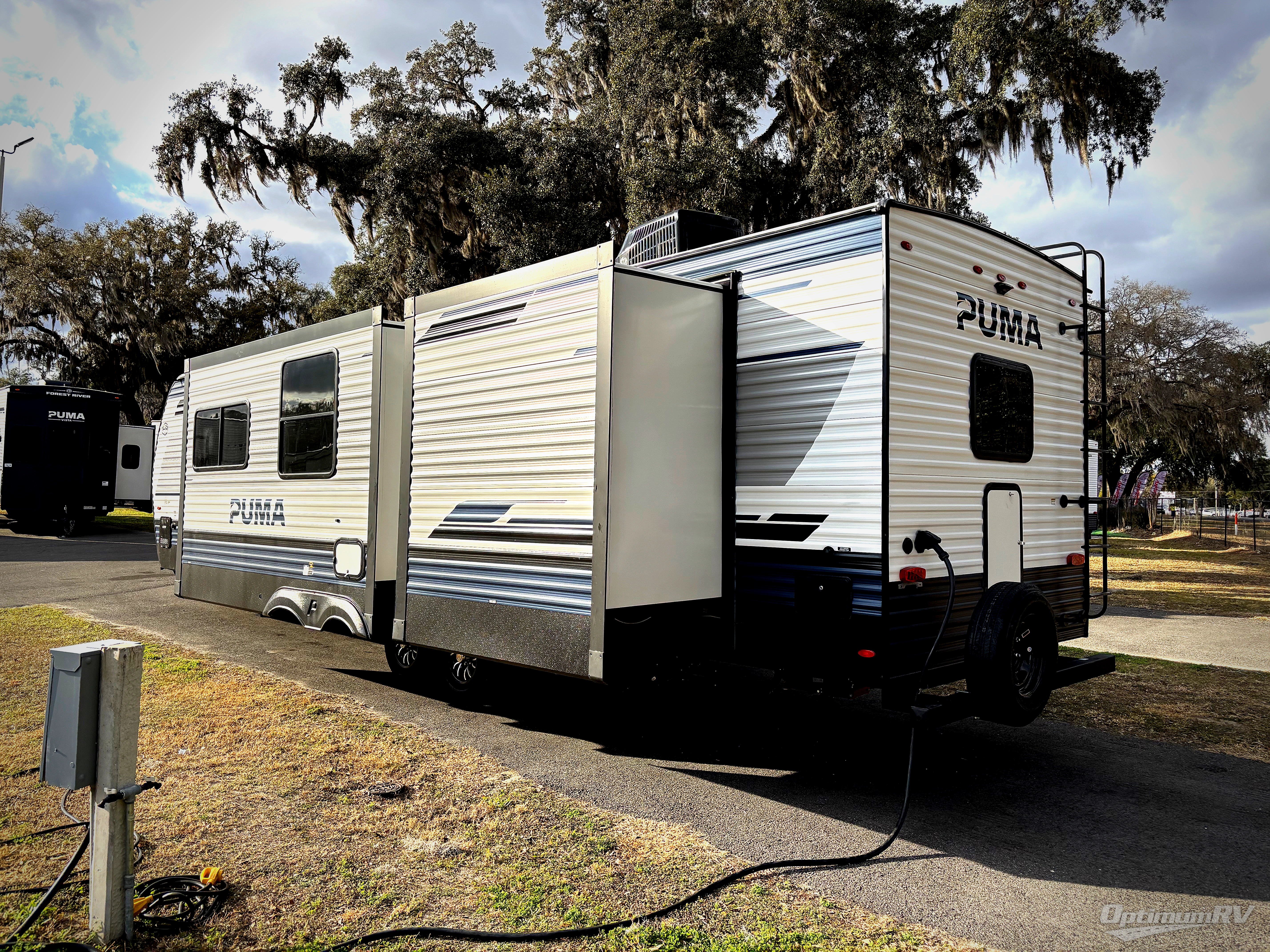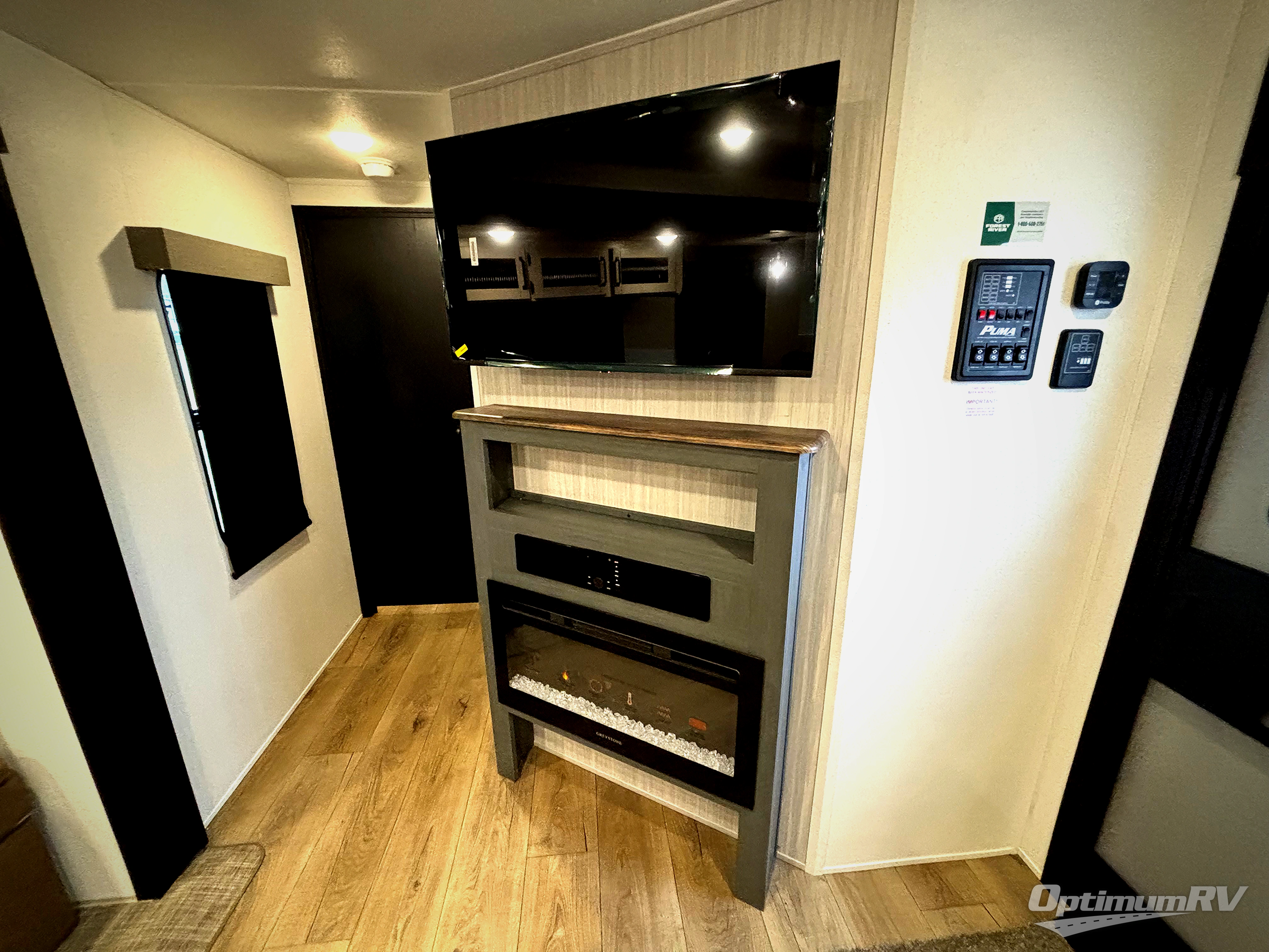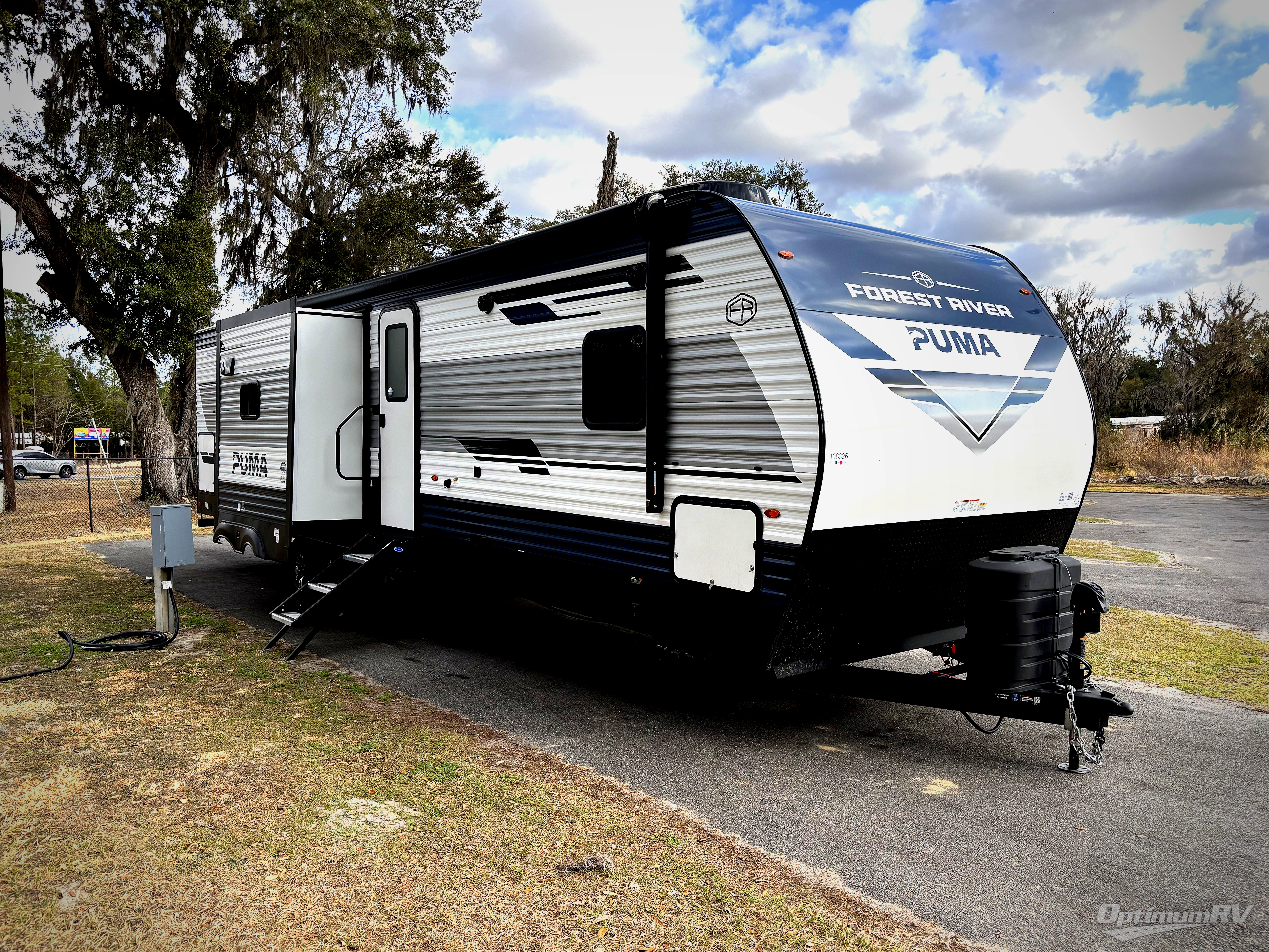 If you're looking for family-fun adventures, then you need one of these Forest River Puma travel trailers! They are built rugged, easy to tow, and jam packed with features. The Darco wrapped underbelly will help protect your unit, and the roof and side mount solar prep gives you the option to add off-grid power. Inside, the Congoleum linoleum will be easy to keep clean, and the night roller shades will provide privacy when it's time to turn in. You'll also enjoy an electric awning with an LED light strip plus an AM/FM/Bluetooth stereo and two outside speakers to keep the party going!