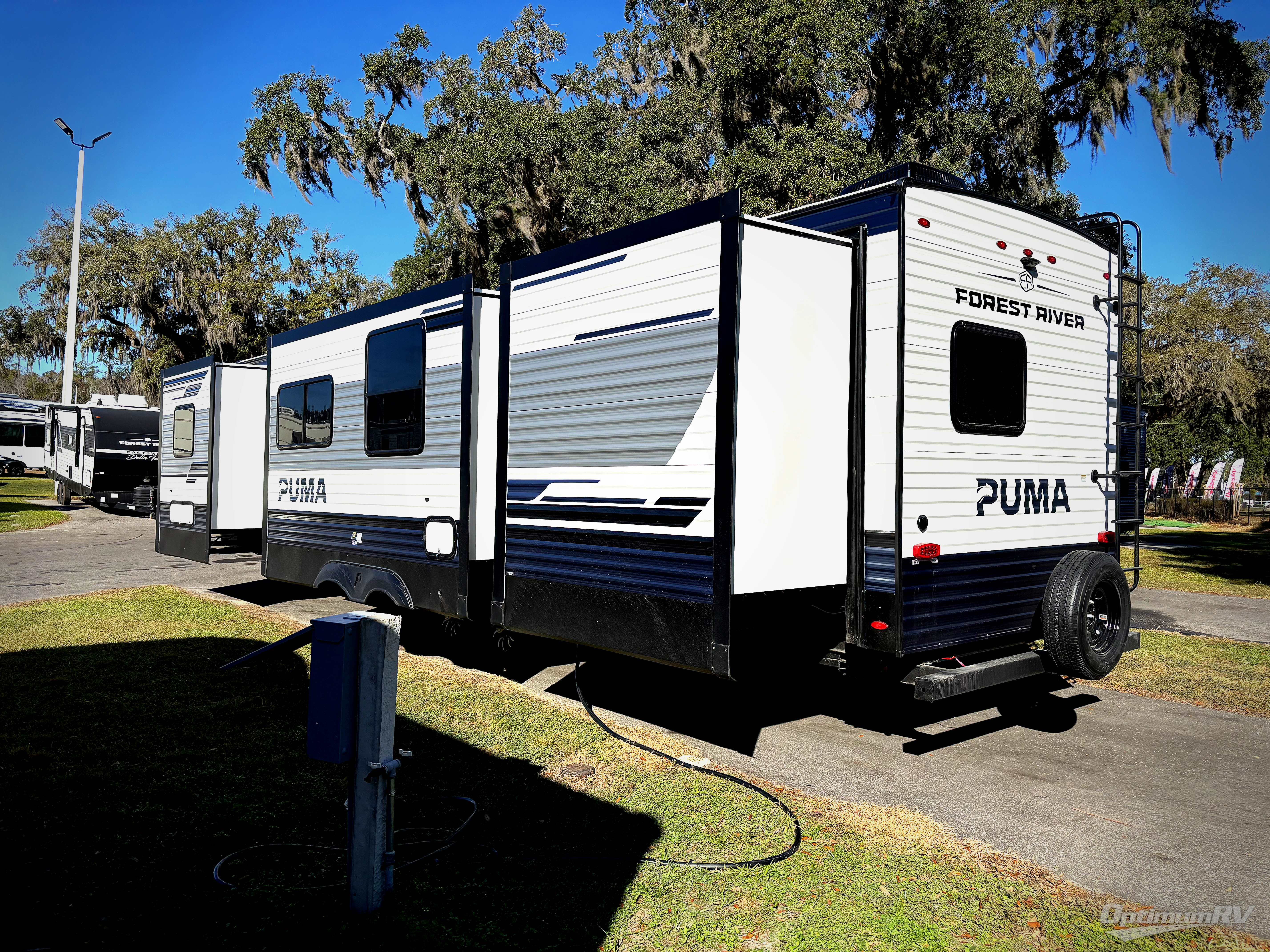 If you're looking for family-fun adventures, then you need one of these Forest River Puma travel trailers! They are built rugged, easy to tow, and jam packed with features. The Darco wrapped underbelly will help protect your unit, and the roof and side mount solar prep gives you the option to add off-grid power. Inside, the Congoleum linoleum will be easy to keep clean, and the night roller shades will provide privacy when it's time to turn in. You'll also enjoy an electric awning with an LED light strip plus an AM/FM/Bluetooth stereo and two outside speakers to keep the party going!