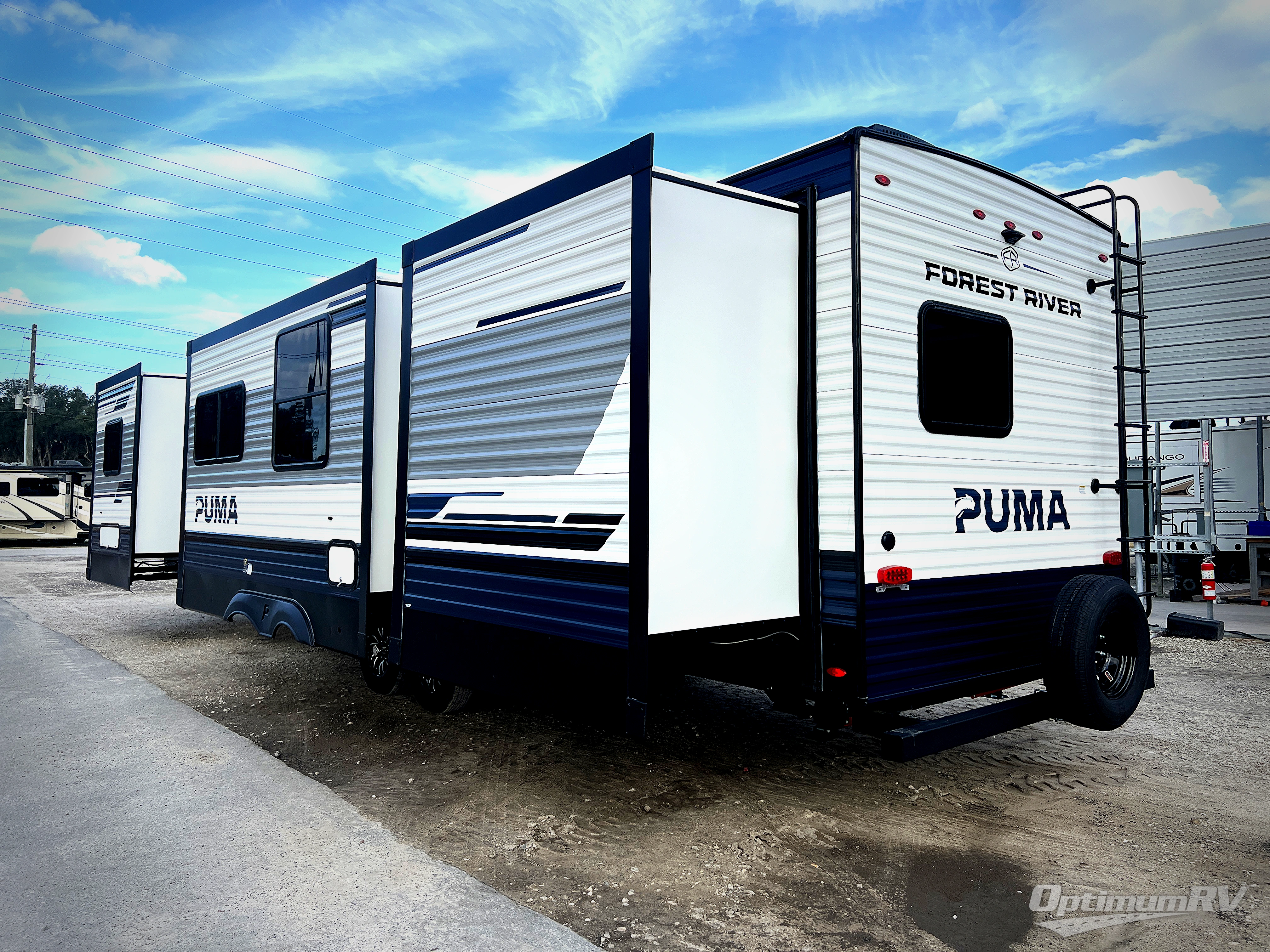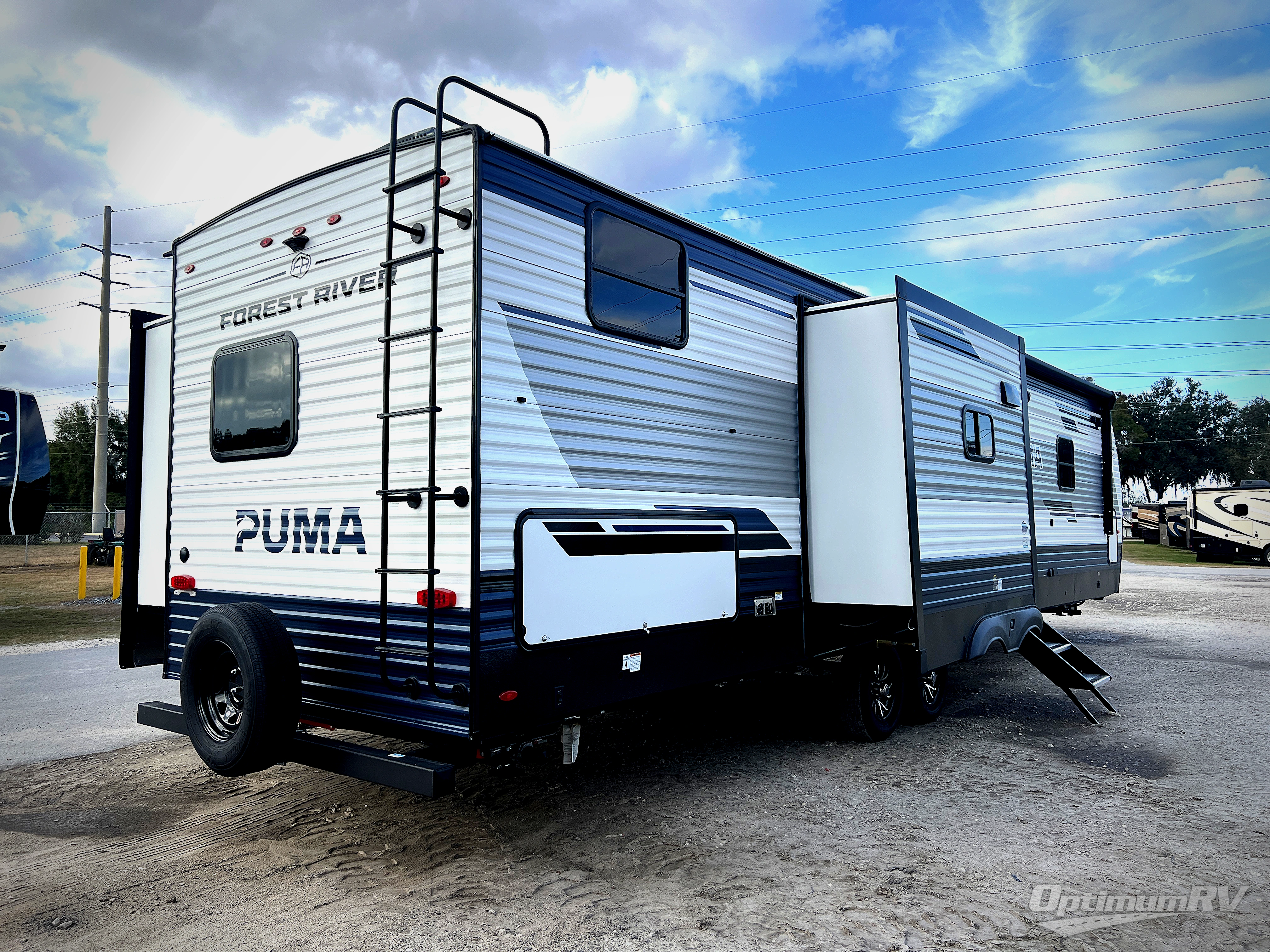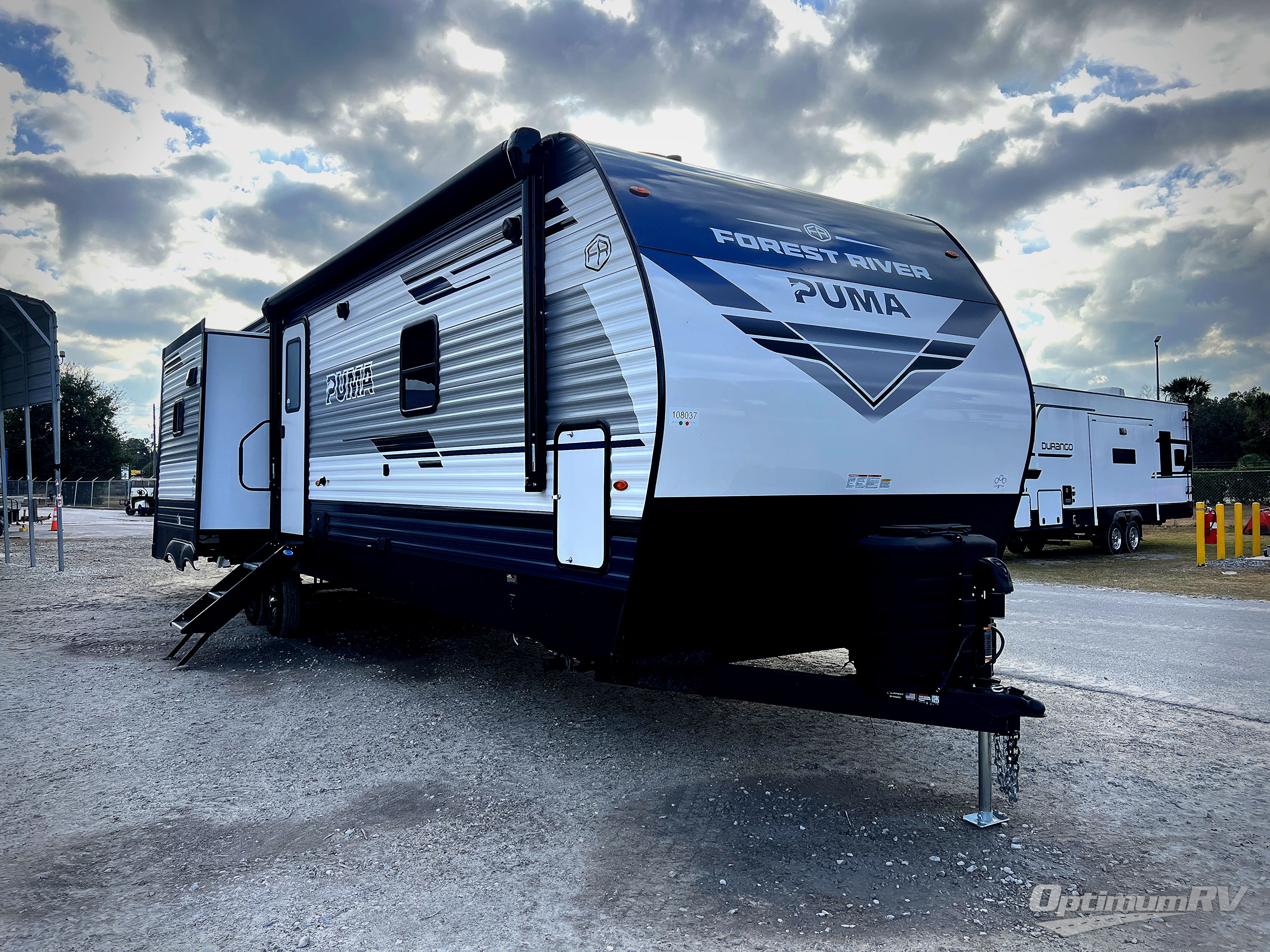 If you're looking for family-fun adventures, then you need one of these Forest River Puma travel trailers! They are built rugged, easy to tow, and jam packed with features. The Darco wrapped underbelly will help protect your unit, and the roof and side mount solar prep gives you the option to add off-grid power. Inside, the Congoleum linoleum will be easy to keep clean, and the night roller shades will provide privacy when it's time to turn in. You'll also enjoy an electric awning with an LED light strip plus an AM/FM/Bluetooth stereo and two outside speakers to keep the party going!