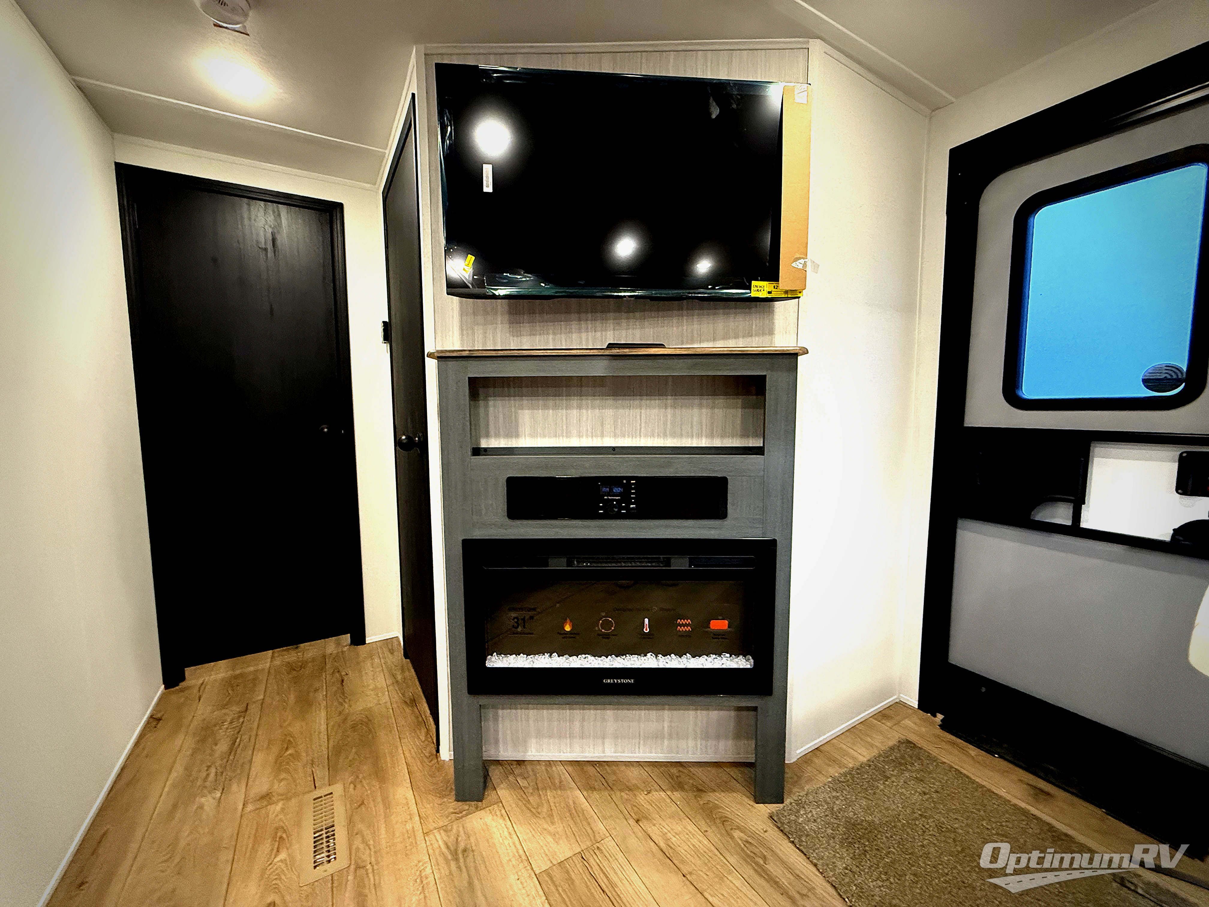With dual entry doors and a bath and a half, you will have the ultimate in convenience with this travel trailer! The bedroom also has a front closet to keep your clothes looking their best and a queen bed slide for you to sleep your best. Everyone can freshen up in the full bathroom with the 34" x 34" radius shower and fill their bellies with scrambled eggs cooked with the stainless steel oven and range. Enjoy your meals, play games, and even sleep at the booth dinette or relax on the sofa while watching a movie with the entertainment center and fireplace. And your guests will love the rear private bunkhouse with three bunks, a jiffy sofa, and a slide out for more space! This model also includes an optional outside mini kitchen with a griddle!