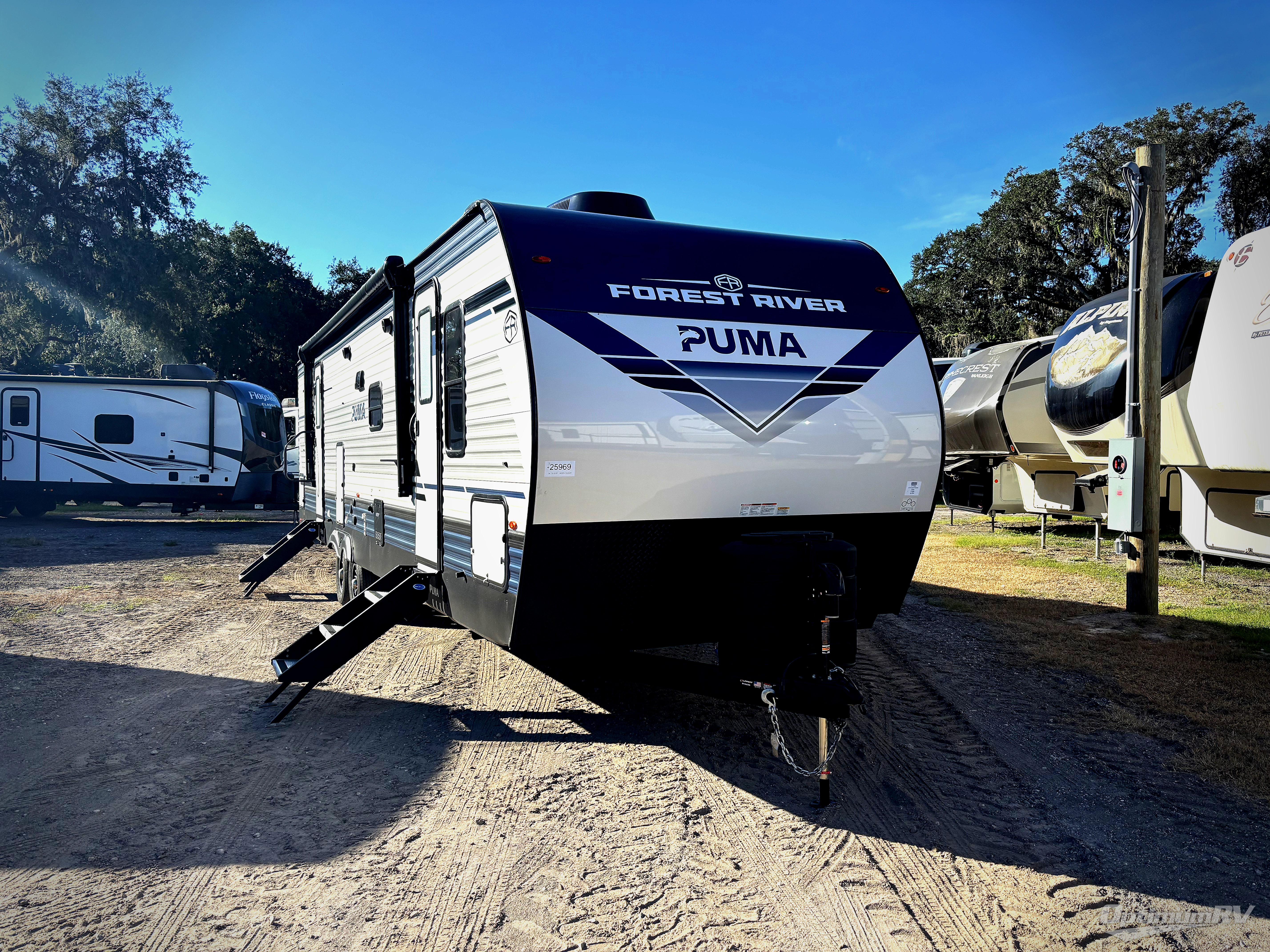 If you're looking for family-fun adventures then you need one of these Palomino Puma fifth wheels or travel trailers! They are built rugged, easy to tow, and jam packed with features. The Darco wrapped underbelly will protect your units vitals and the AlphaPly roofing membrane covers it. They also have new aluminum wheels and a powder coated steel I-beam frame. Inside, the Congoleum linoleum will be easy to keep clean, and the night roller shades will provide privacy when it's time to turn in. You'll also enjoy an electric awning with an LED light strip plus an AM/FM/Bluetooth stereo and two outside speakers to keep the party going!