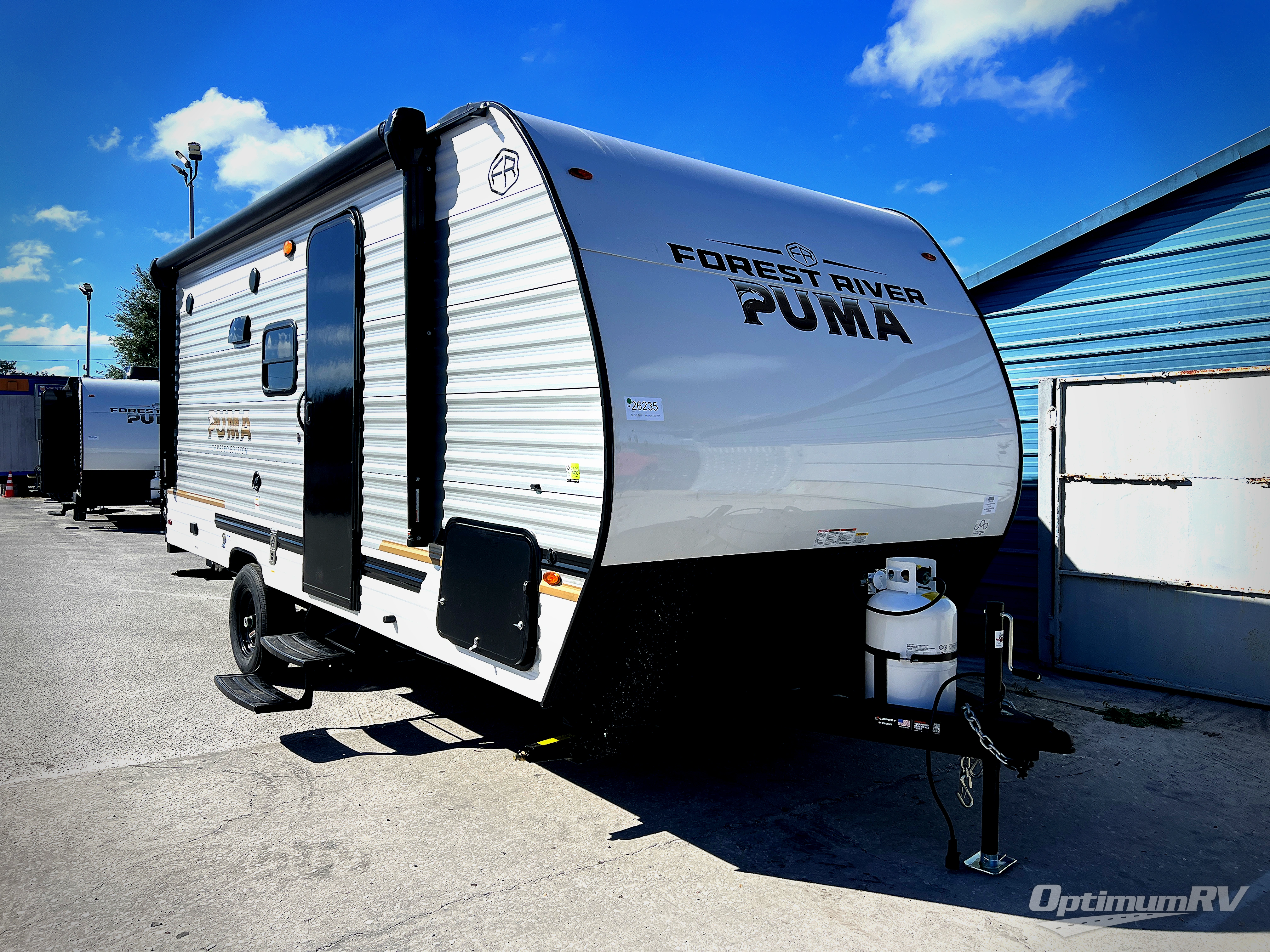 The Puma Camping Edition by Palomino offer an affordable travel trailer for rookie campers or seasoned RVers! They are built with 5/8" tongue and groove plywood flooring and a front diamond plate for added protection. There are also exterior clamp style door latches, back up camera prep, and 20 lb. LP bottles. Head inside to find Thermofoil countertops with a smooth drop edge, bedroom USB ports and outlets, and a GE appliance and kitchen package.