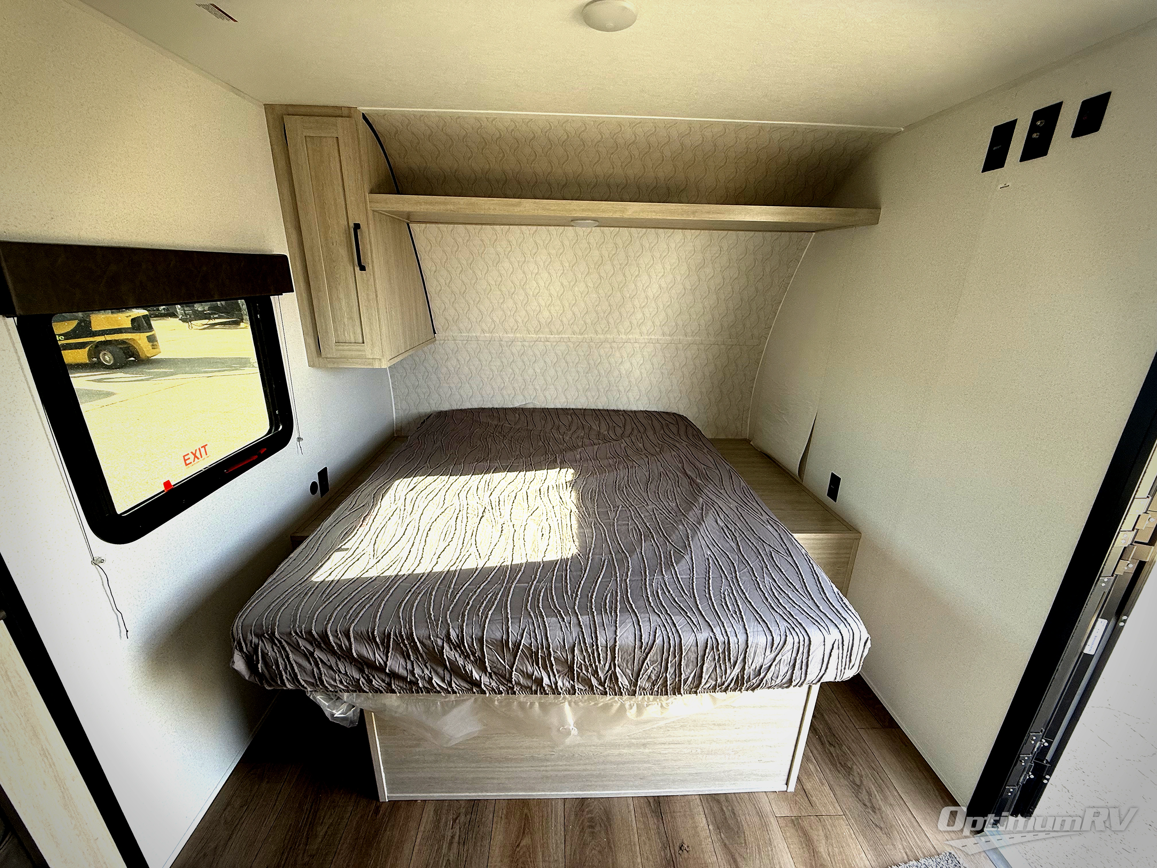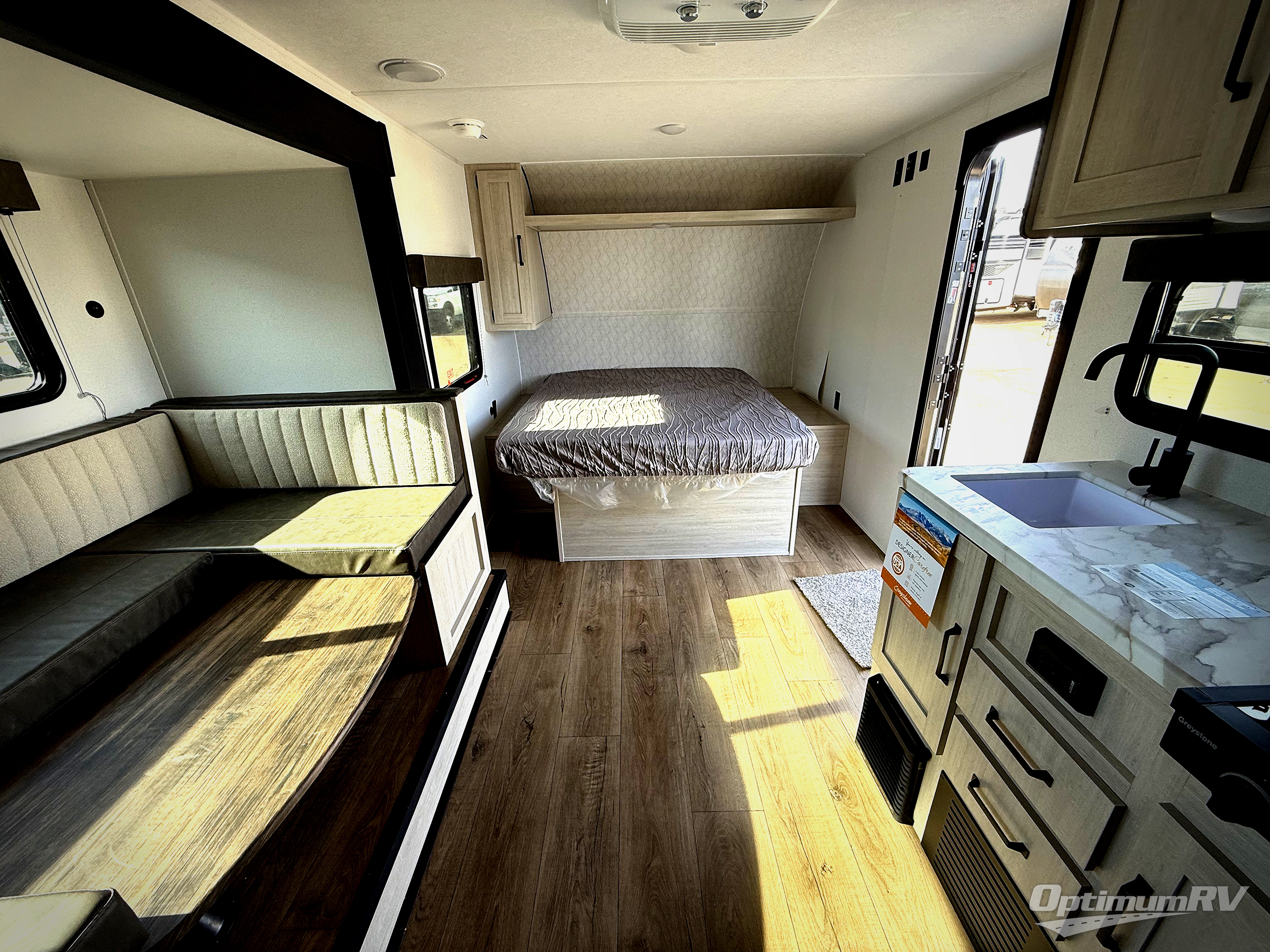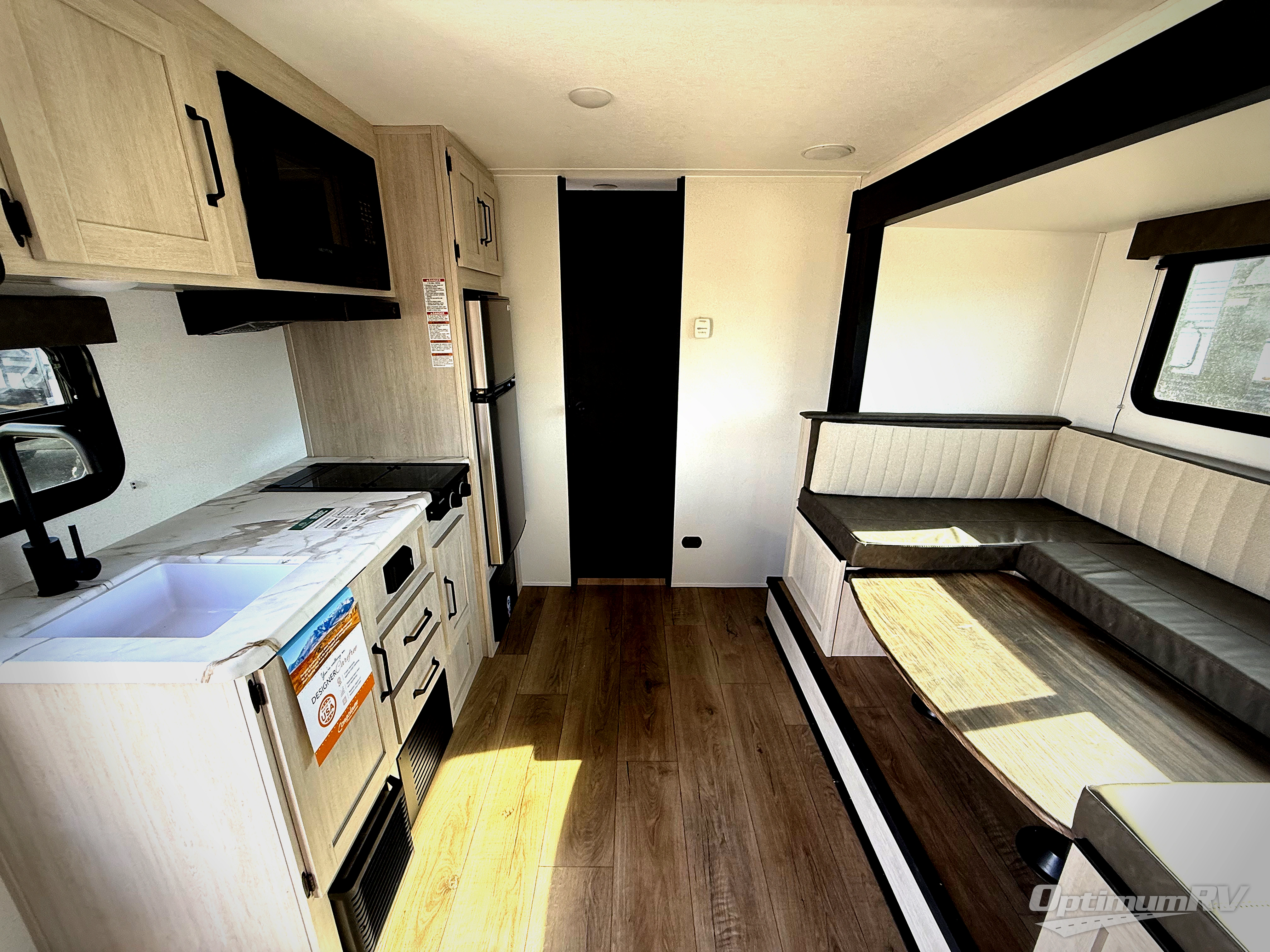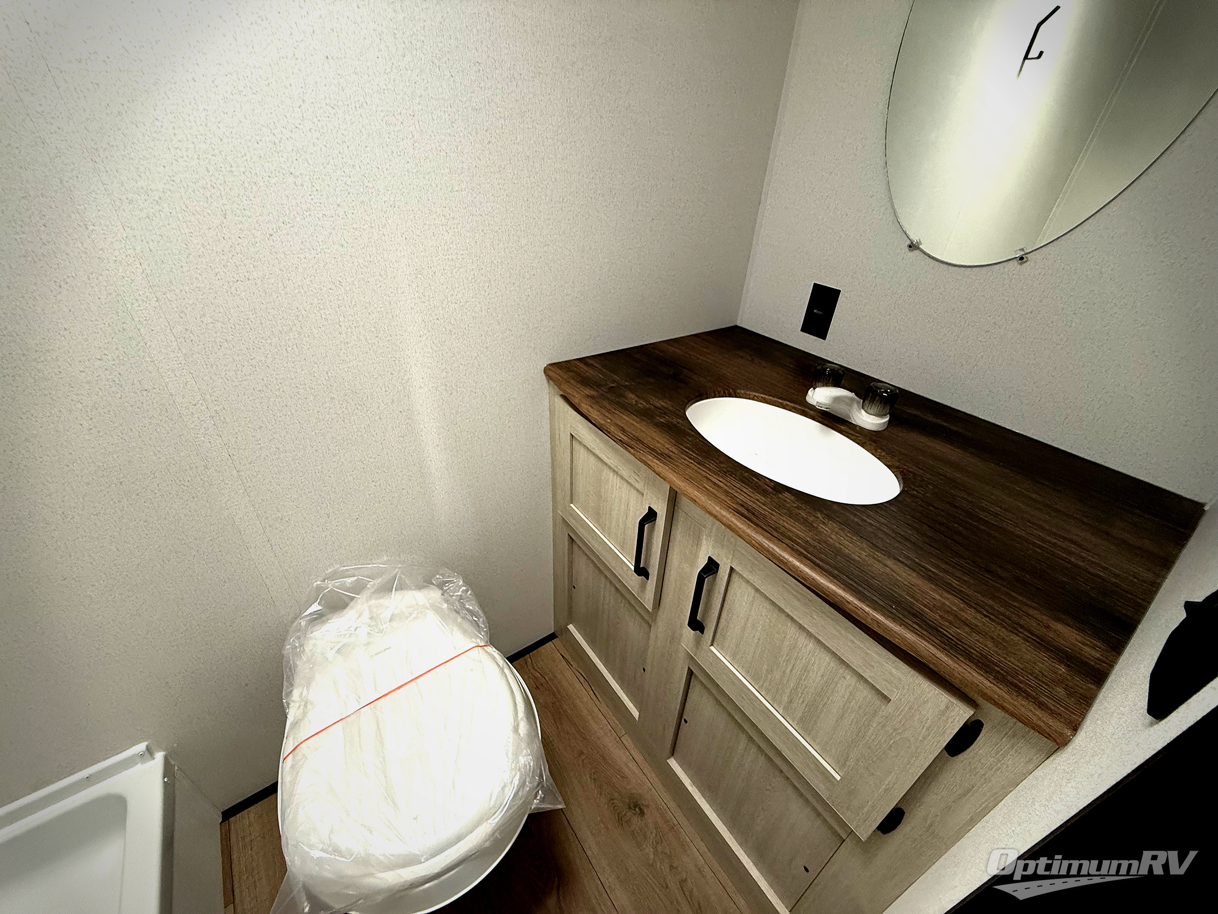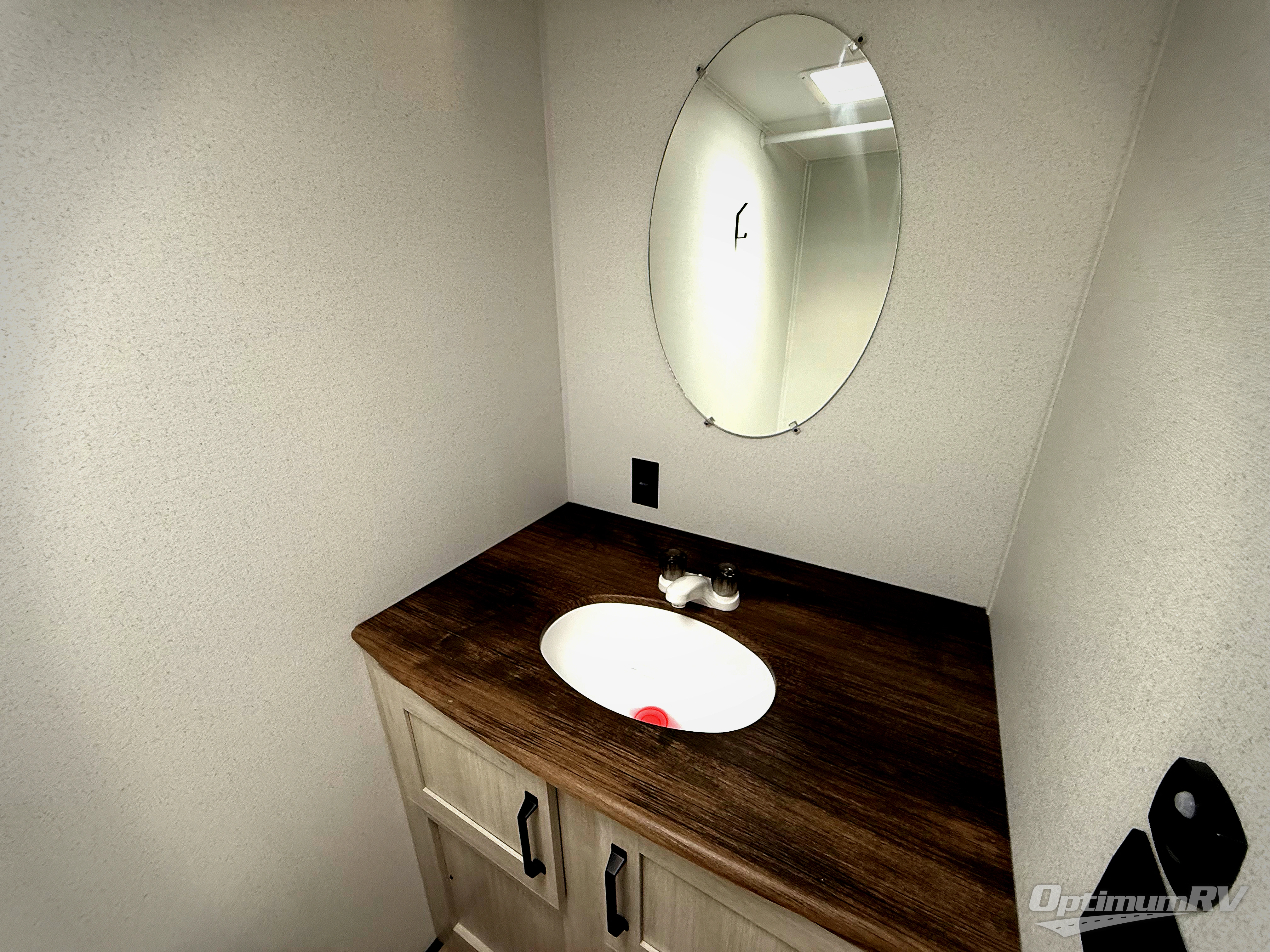 This travel trailer includes everything you need for camping trips at the lake. You'll sleep great each night on the front RV queen bed, or you can choose the optional Murphy bed with a sofa if you need more seating space during the day. The chef of your group can make meals on the two burner cooktop or in the microwave oven, then you can dine around the U-shaped dinette slide. A full rear bath includes a 36" x 30" shower, a toilet, vanity, plus a medicine cabinet to keep your things organized.
