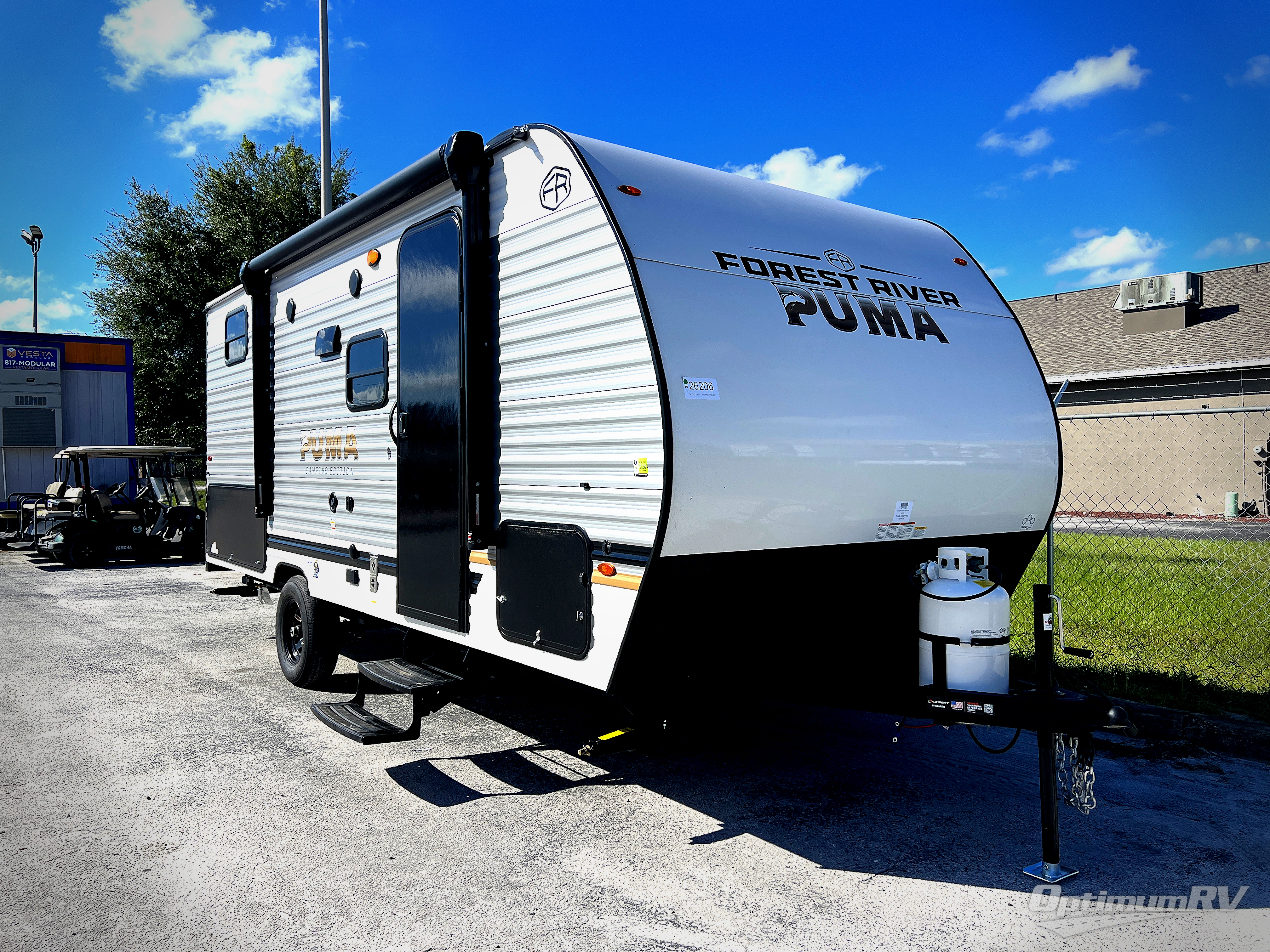 The Puma Camping Edition by Palomino offer an affordable travel trailer for rookie campers or seasoned RVers! They are built with 5/8" tongue and groove plywood flooring and a front diamond plate for added protection. There are also exterior clamp style door latches, back up camera prep, and 20 lb. LP bottles. Head inside to find Thermofoil countertops with a smooth drop edge, bedroom USB ports and outlets, and a GE appliance and kitchen package.