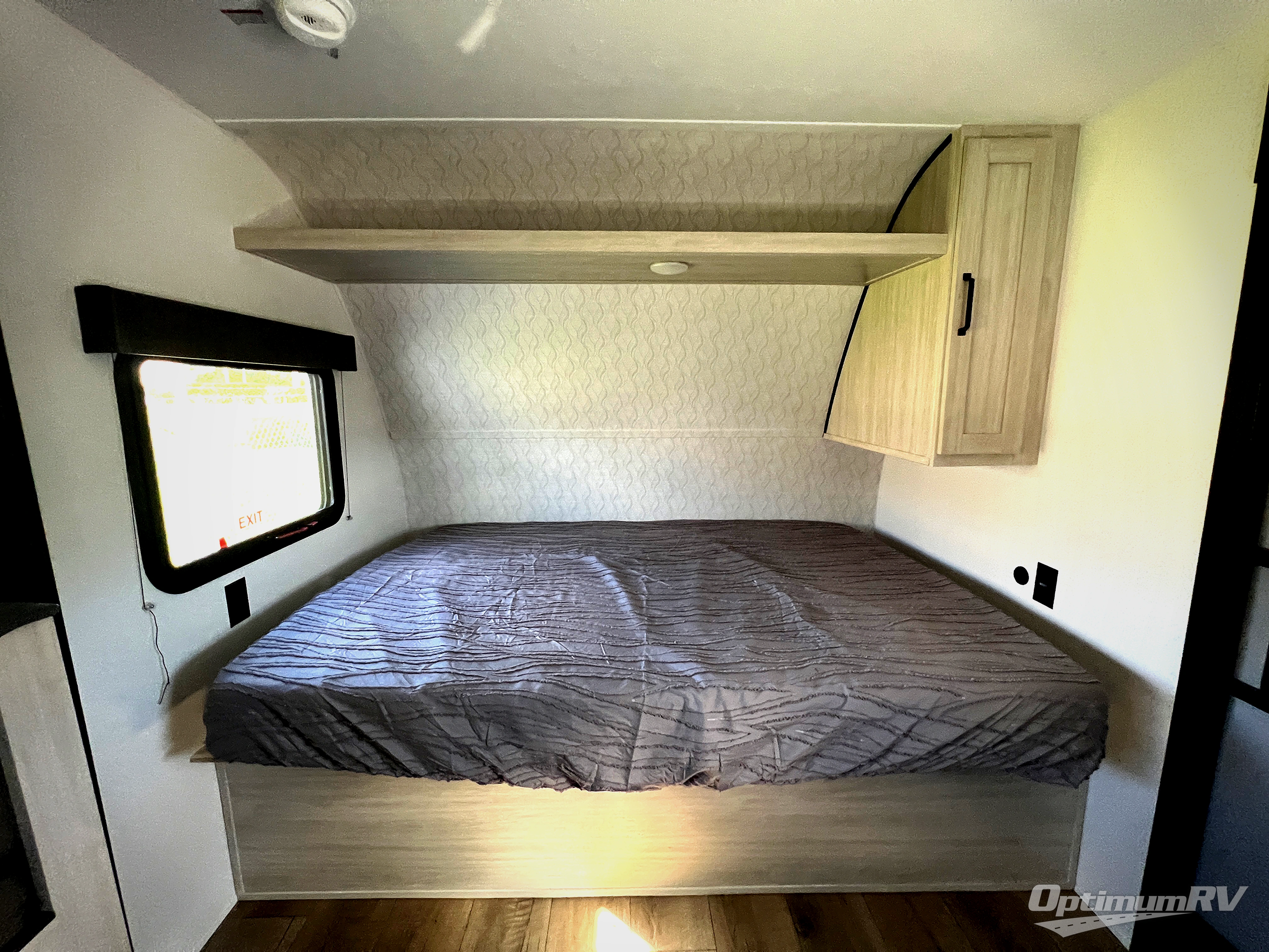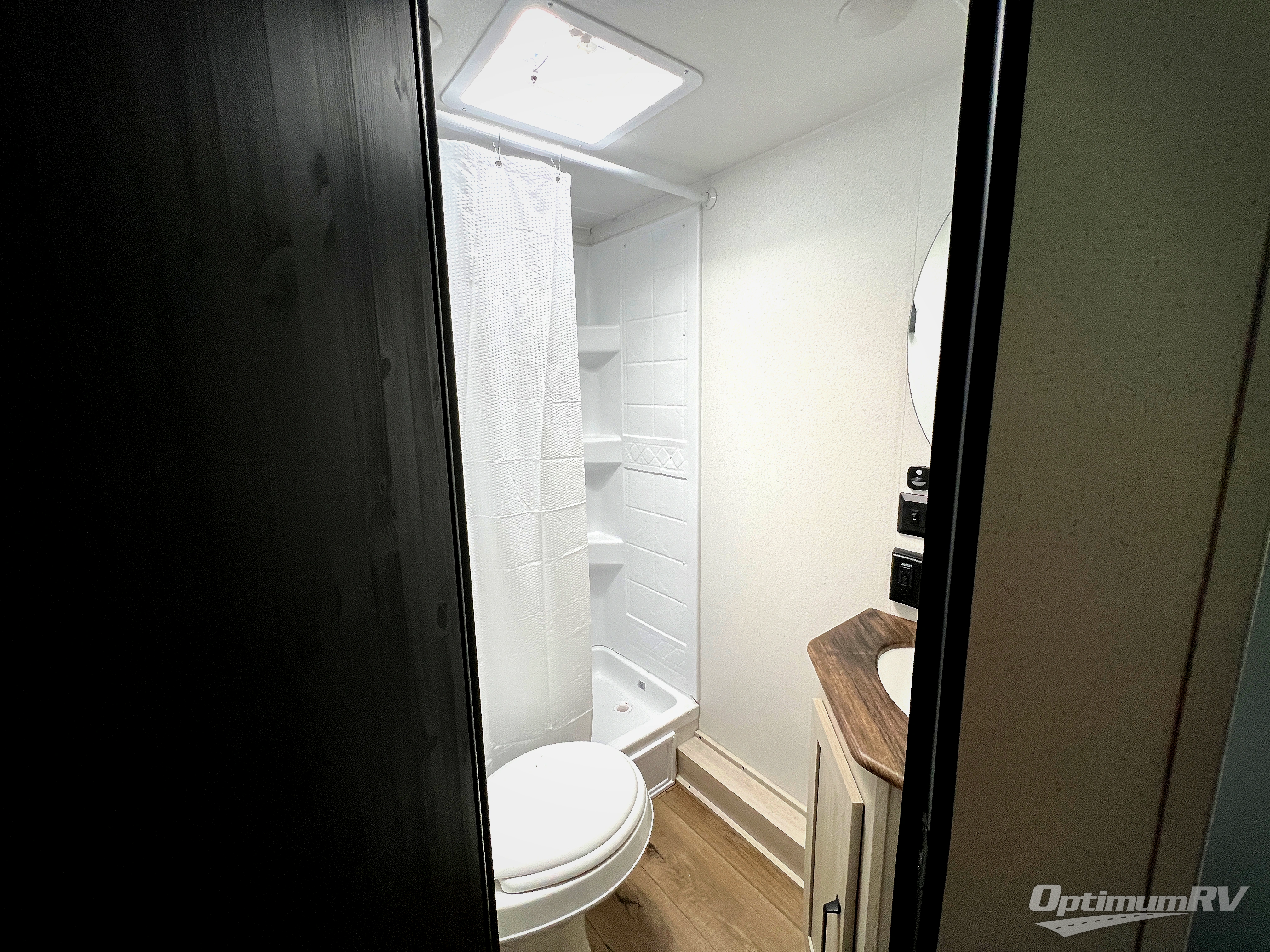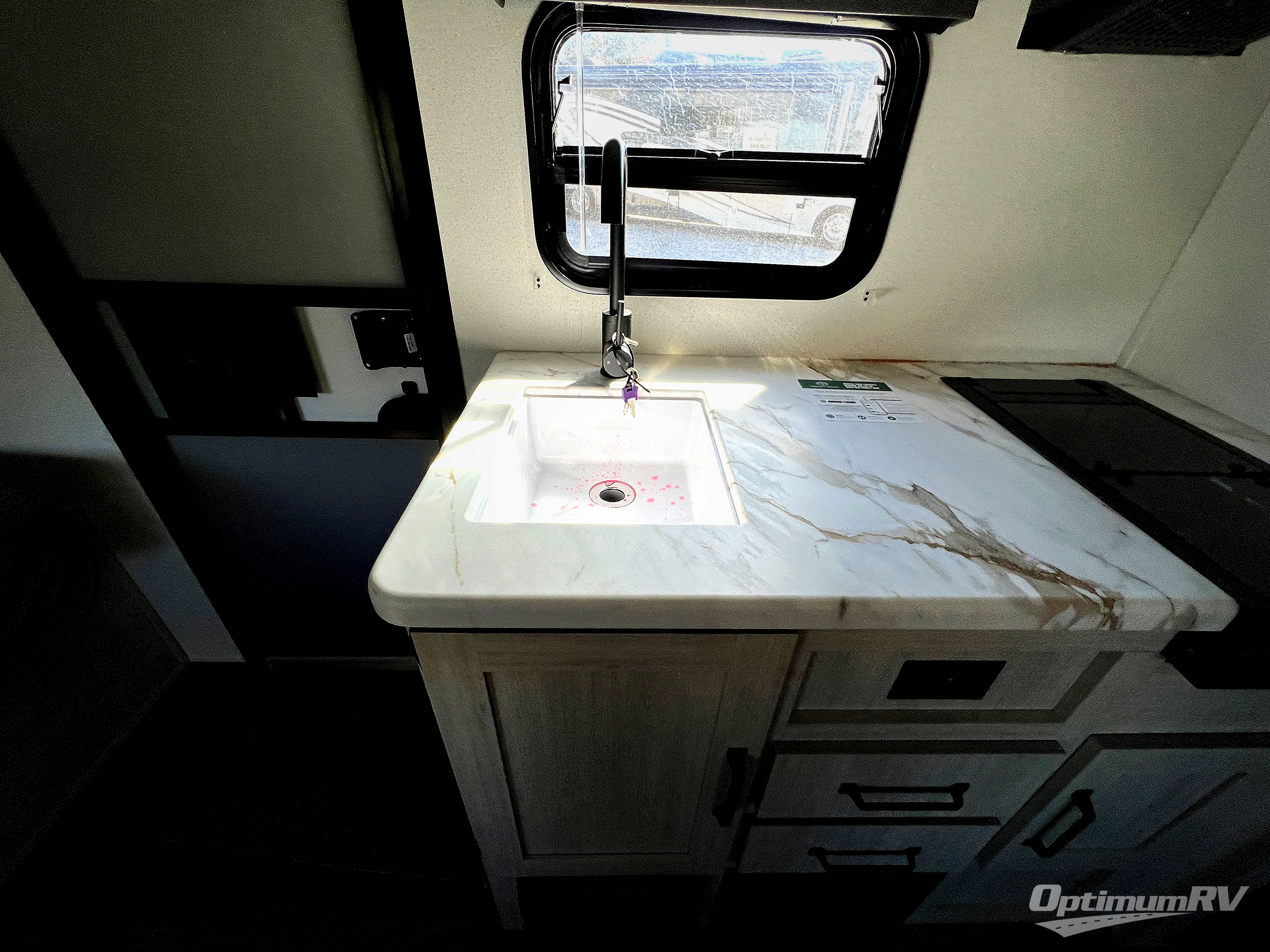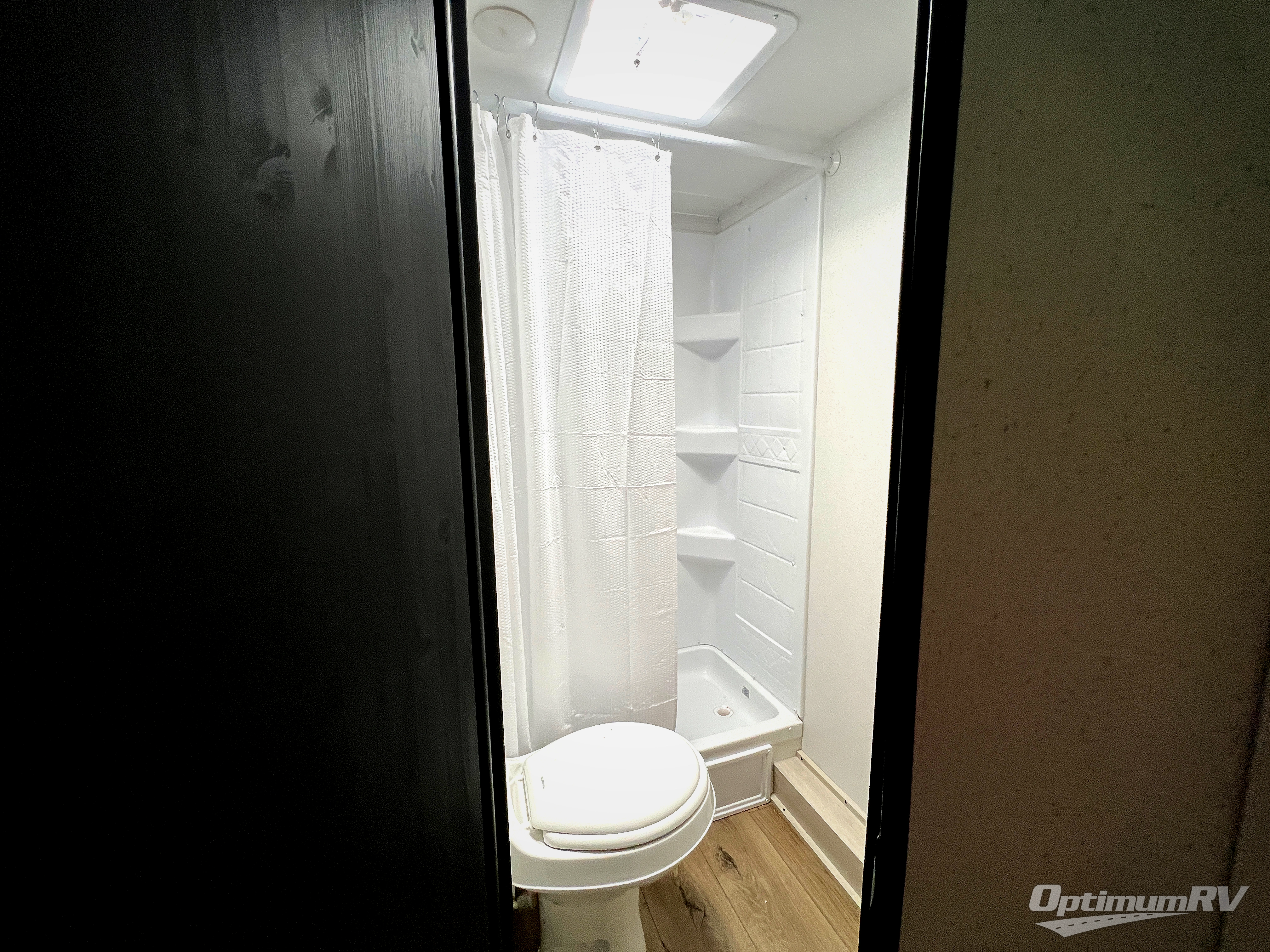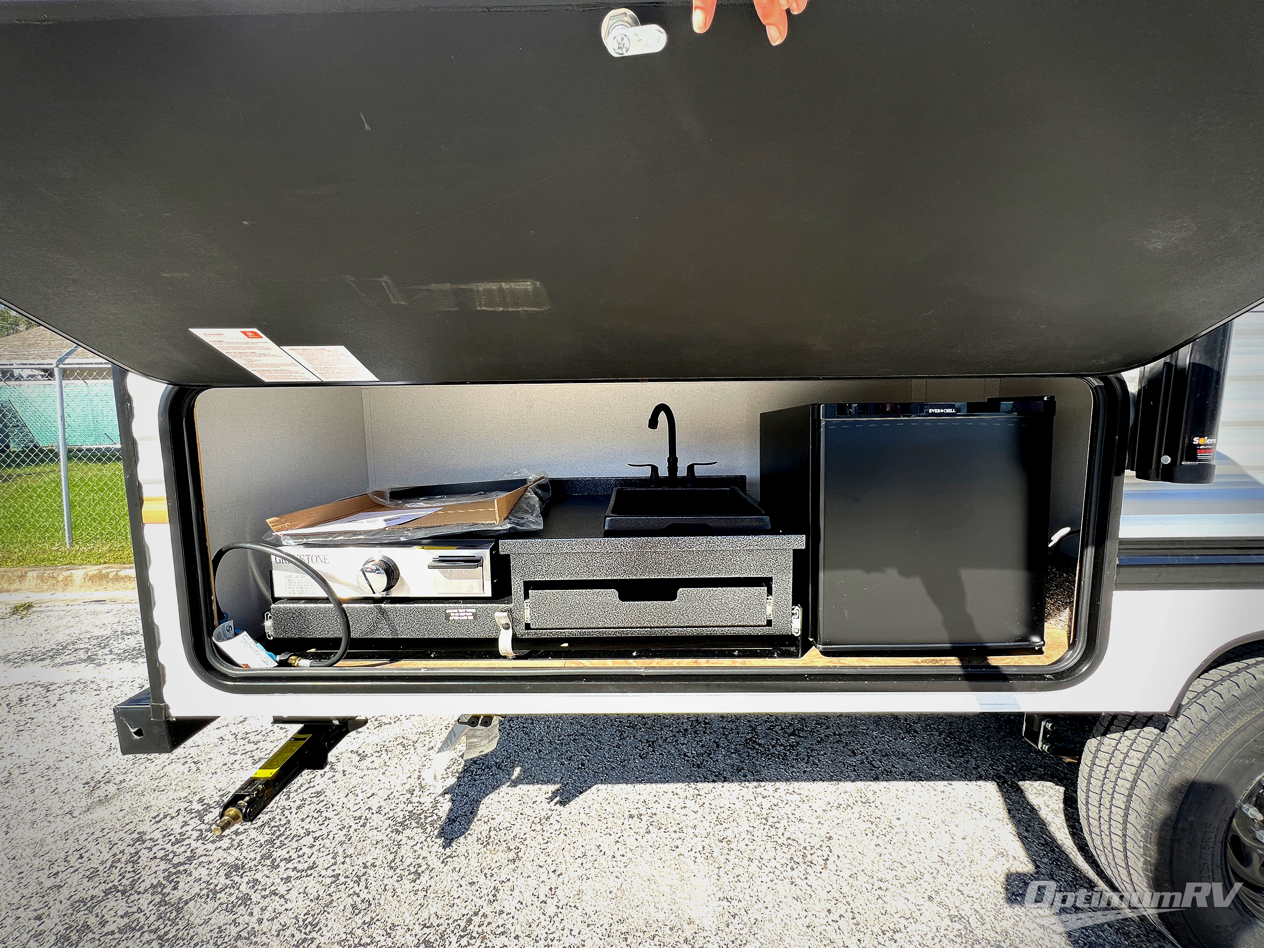 The whole gang will love camping in this travel trailer since there are double-size bunks for compact sleeping spaces and a slide out for more space to relax! The front RV queen bed is sure to provide a great night's rest, and you can choose the optional Murphy bed if you're needing more seating space during the day. Once you've made dinner on the two burner cooktop, you can dine around the U-shaped dinette. And an optional mini kitchen with a griddle is available if you'd rather cook outdoors! This unit includes ample storage space for your things, including exterior storage and storage under the bunks!