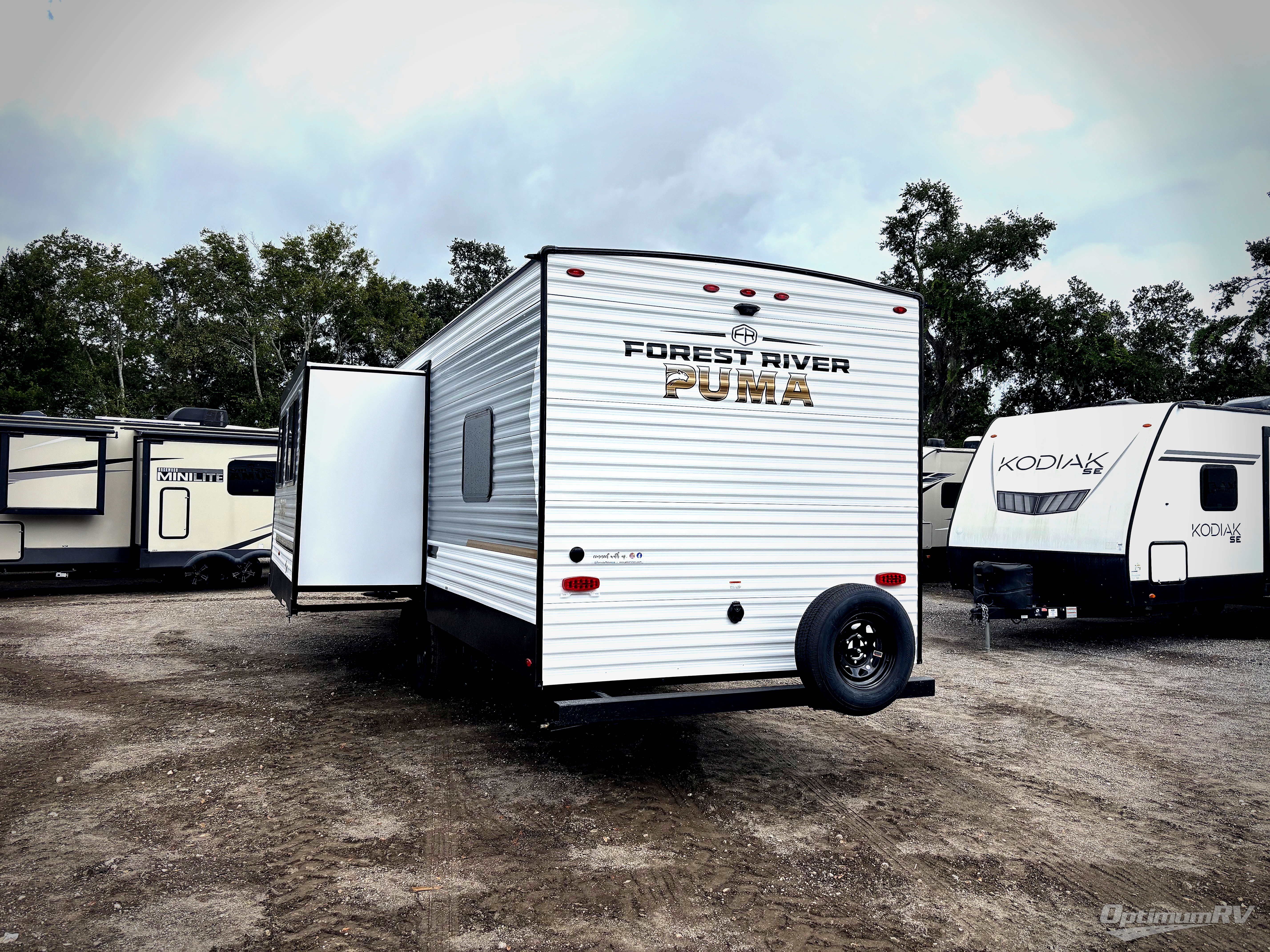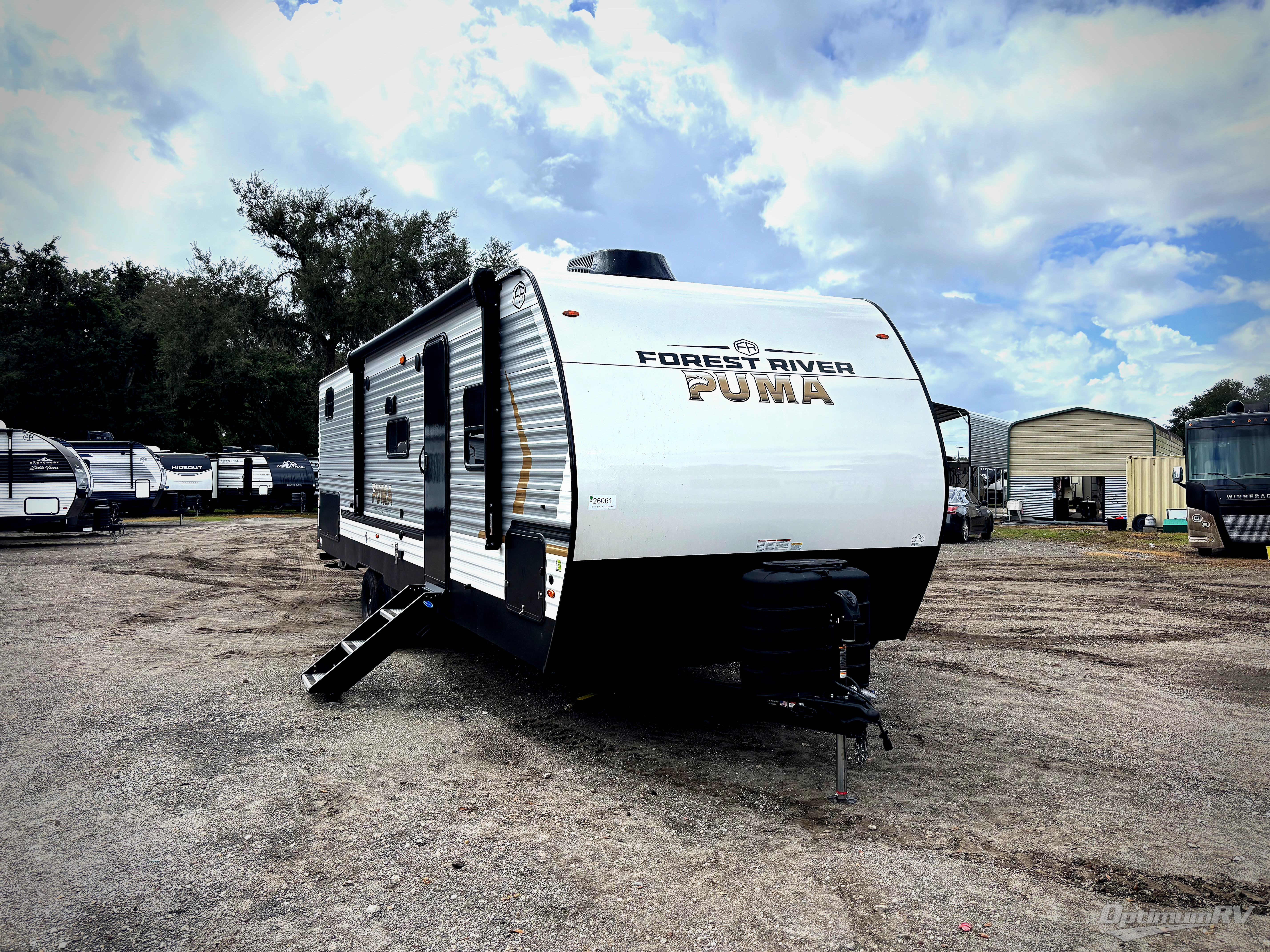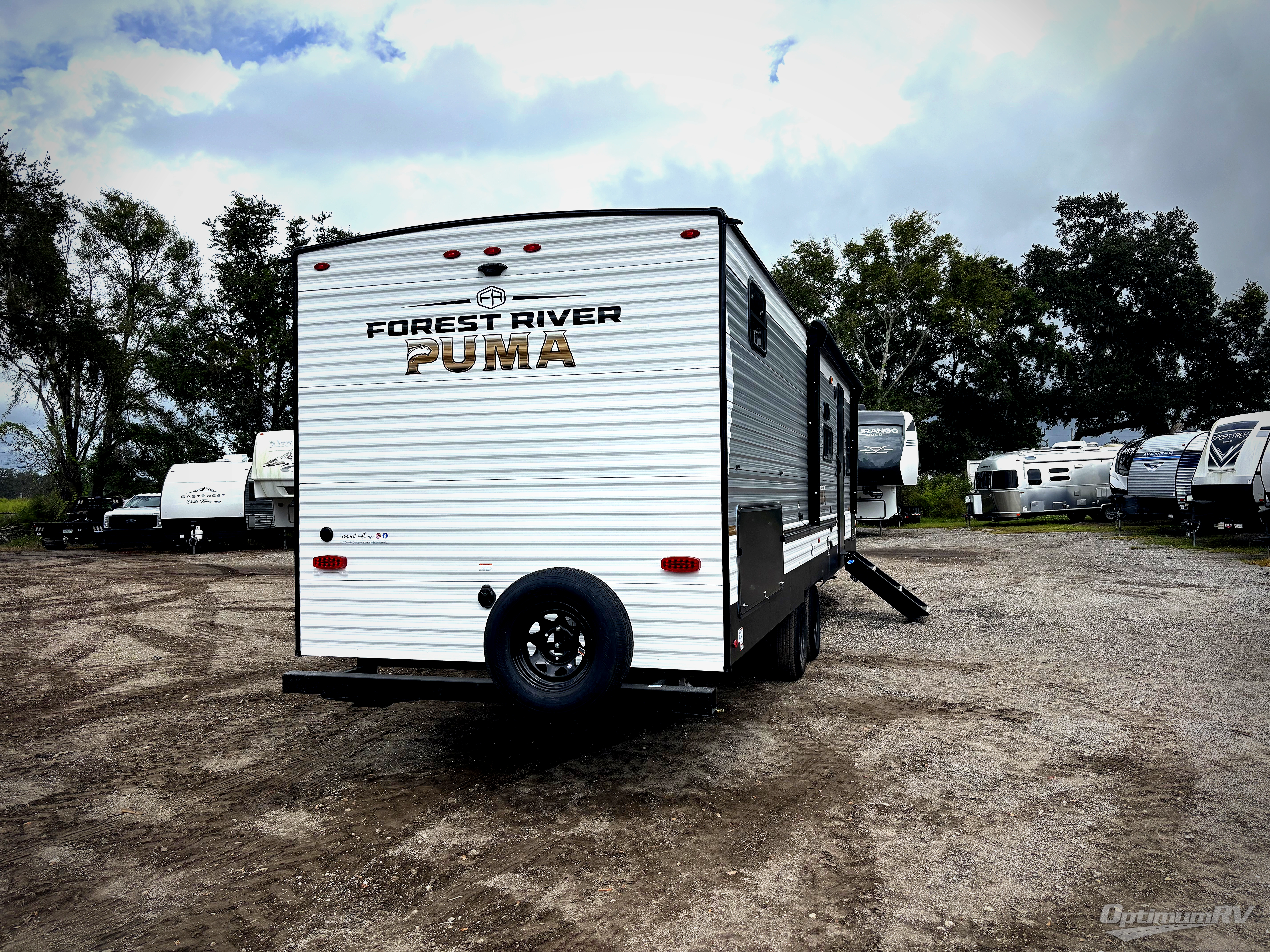 The Puma Camping Edition by Palomino offer an affordable travel trailer for rookie campers or seasoned RVers! They are built with 5/8" tongue and groove plywood flooring and a front diamond plate for added protection. There are also exterior clamp style door latches, back up camera prep, and 20 lb. LP bottles. Head inside to find Thermofoil countertops with a smooth drop edge, bedroom USB ports and outlets, and a GE appliance and kitchen package.