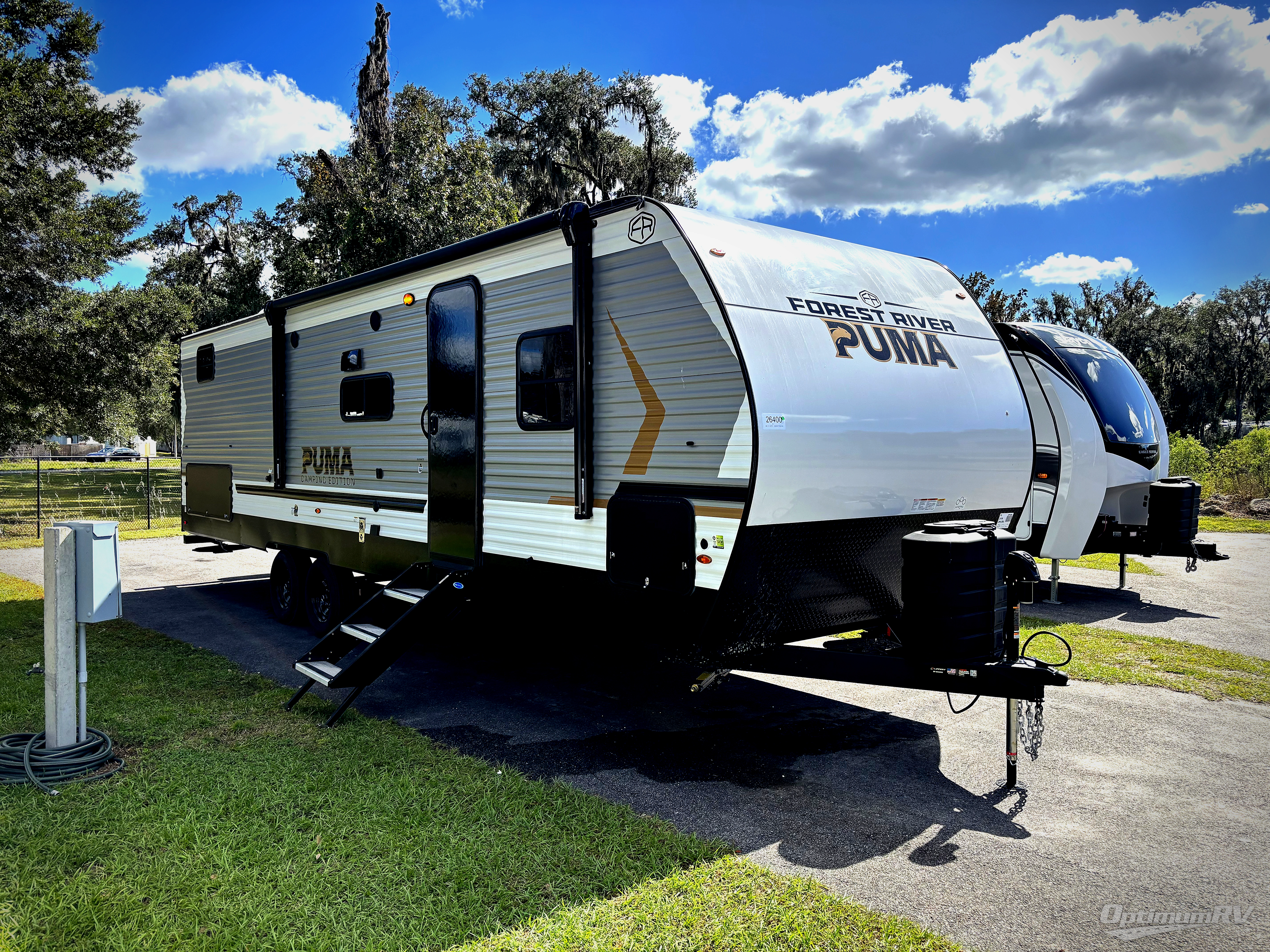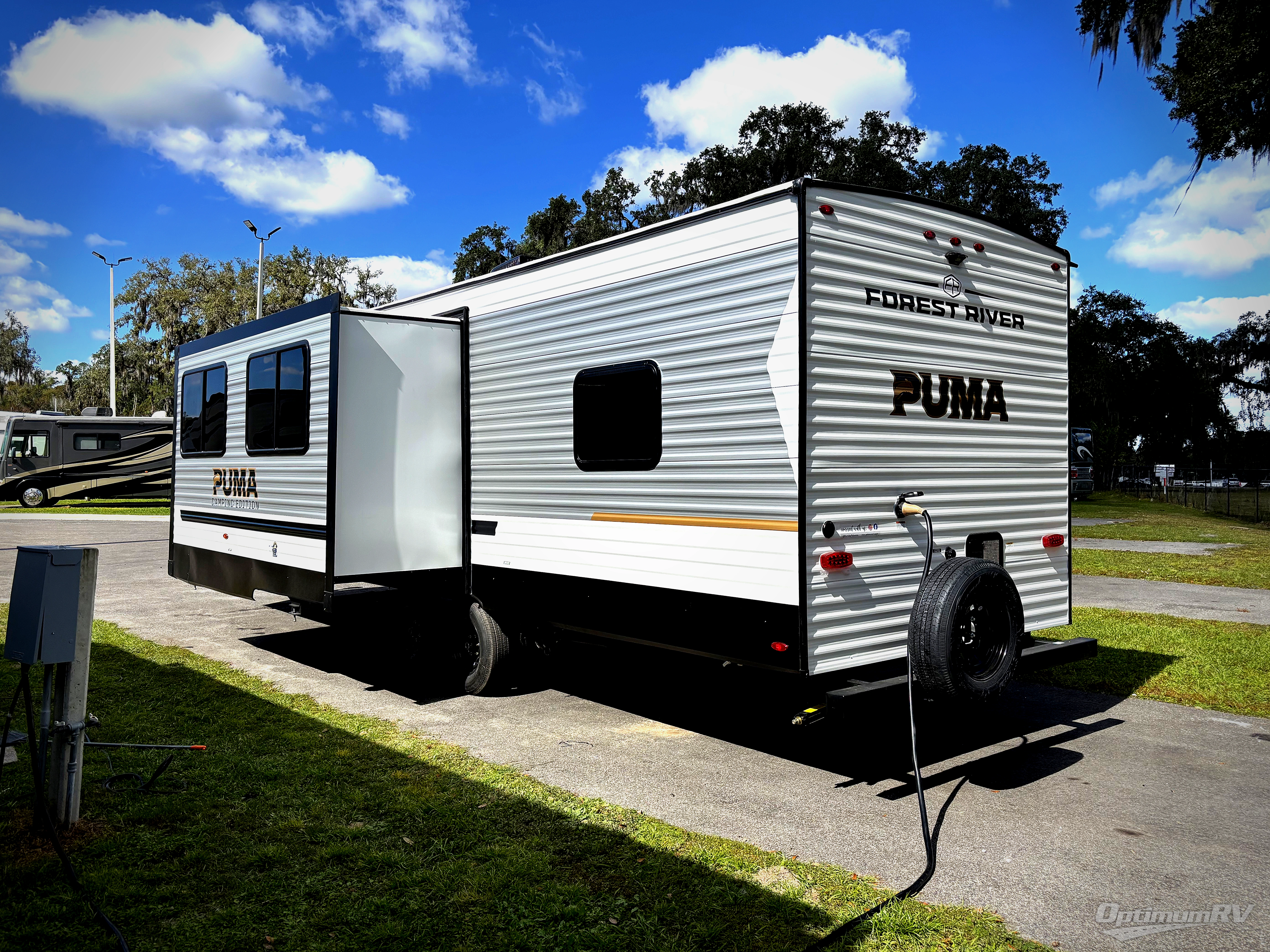 The Puma Camping Edition by Palomino offer an affordable travel trailer for rookie campers or seasoned RVers! They are built with 5/8" tongue and groove plywood flooring and a front diamond plate for added protection. There are also exterior clamp style door latches, back up camera prep, and 20 lb. LP bottles. Head inside to find Thermofoil countertops with a smooth drop edge, bedroom USB ports and outlets, and a GE appliance and kitchen package.
