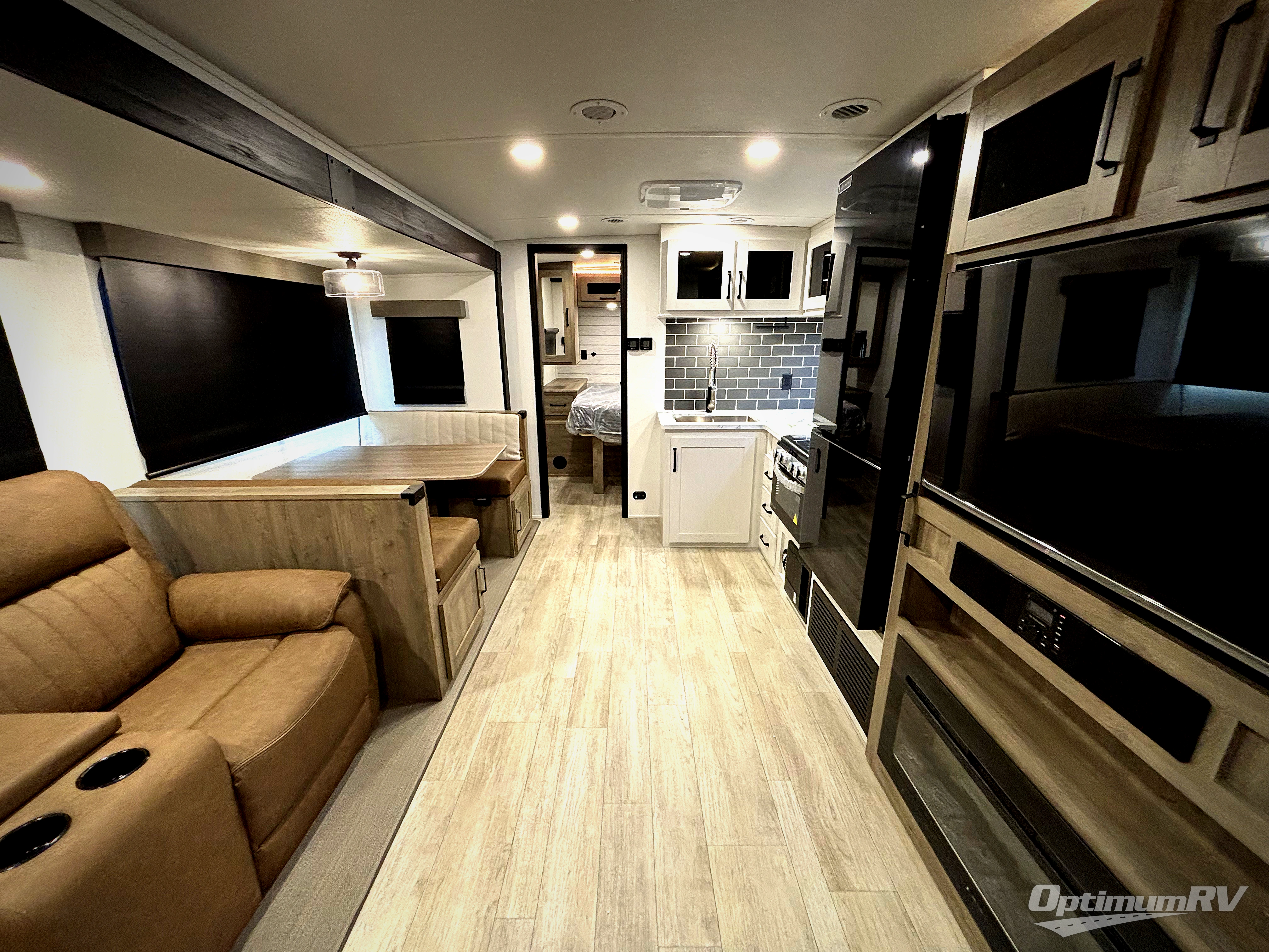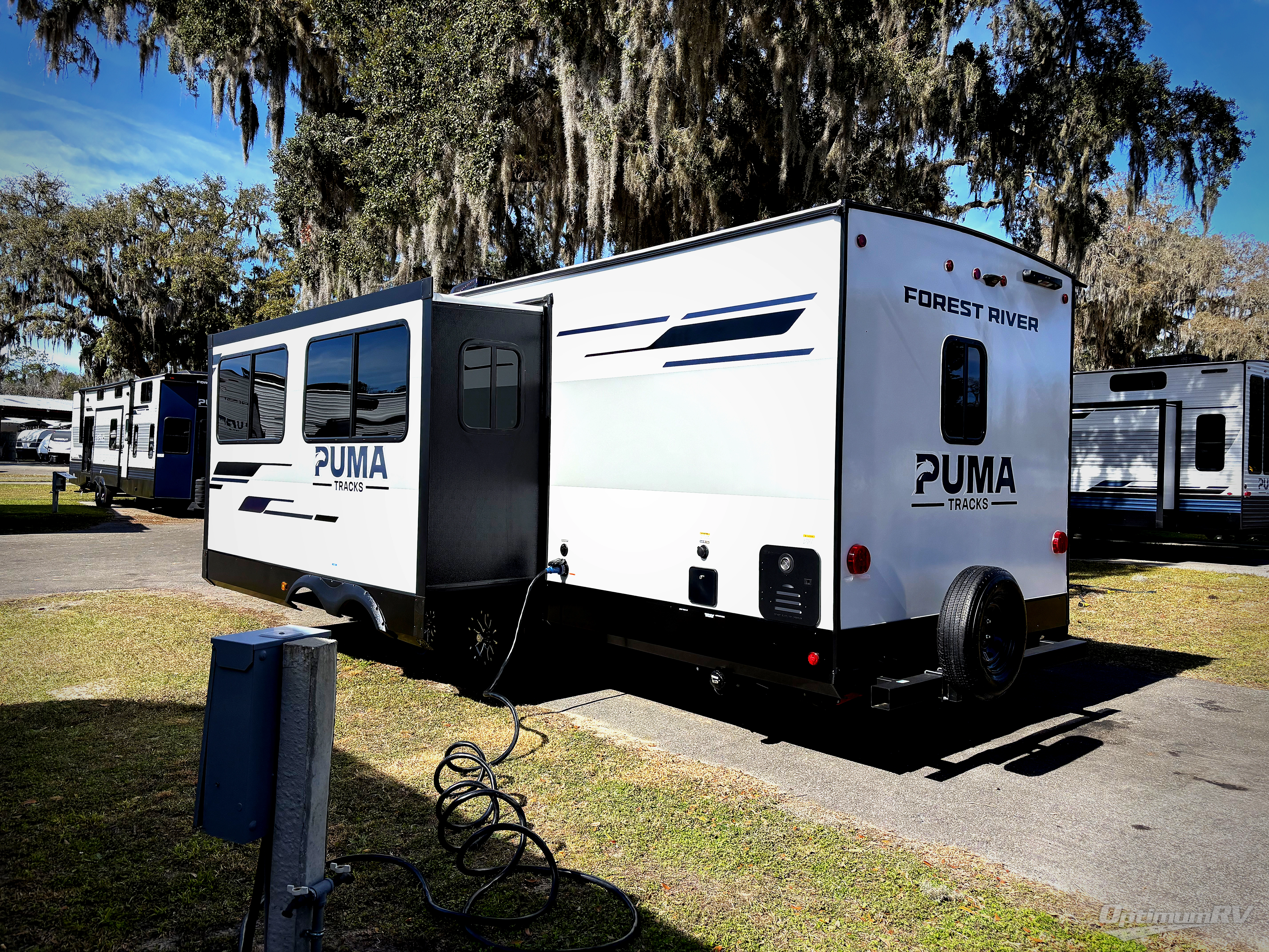 Each Puma Tracks travel trailer by Forest River is constructed with a fully enclosed/heated underbelly for added protection against the elements, plus a fully laminated roof and rear wall for durability. The slam latch baggage doors with magnets will make it easier than ever to pack up your camp gear, and the power awning with LED lights will provide shade during the day and inviting ambiance at night. Head inside to enjoy the roller shades, smoked glass kitchen cabinet doors, stainless-steel sink, and LED lights to keep your space well lit. Some of the available options include a bedroom A/C, a Wi-Fi booster, heated holding tanks, and more!