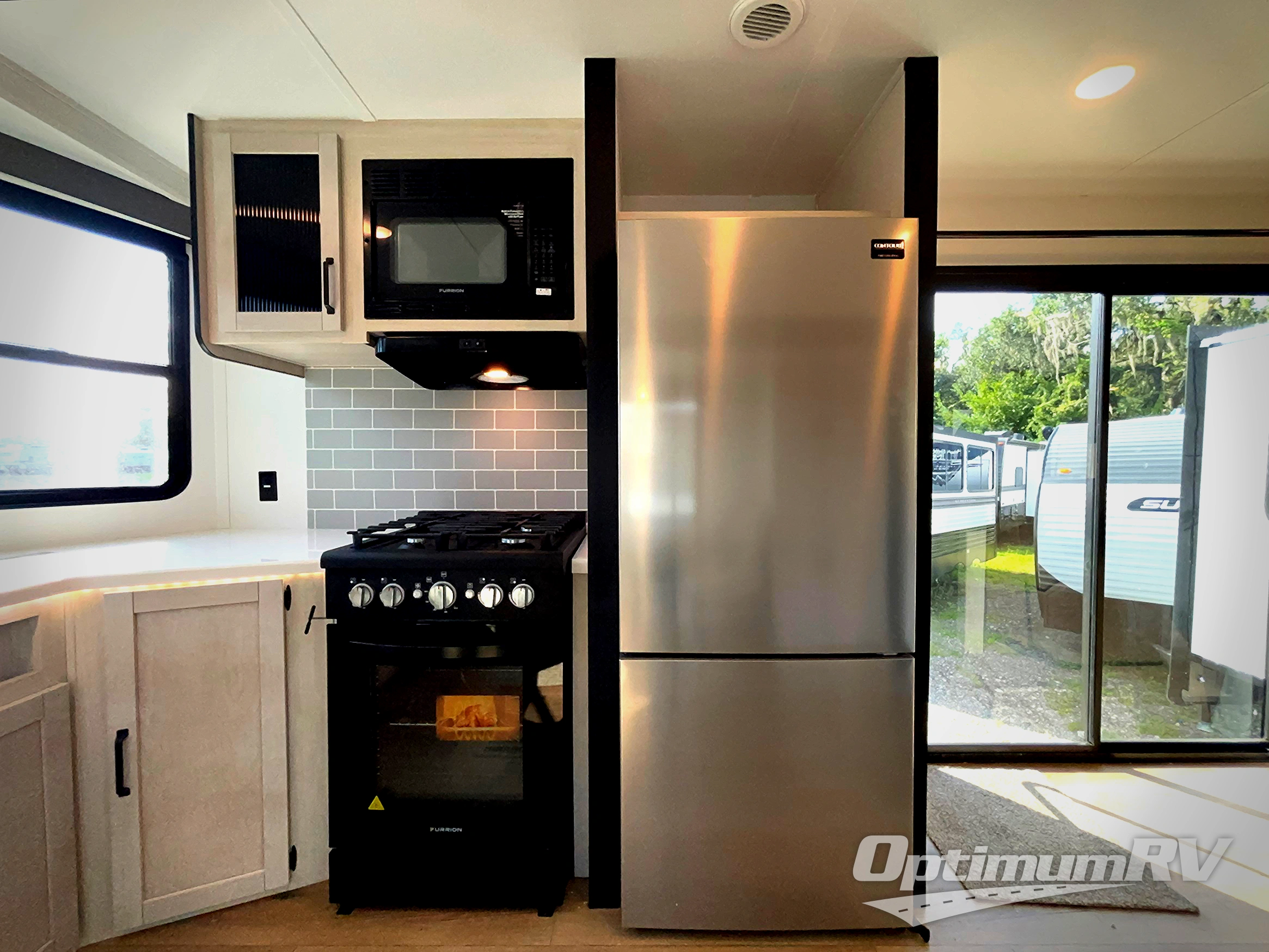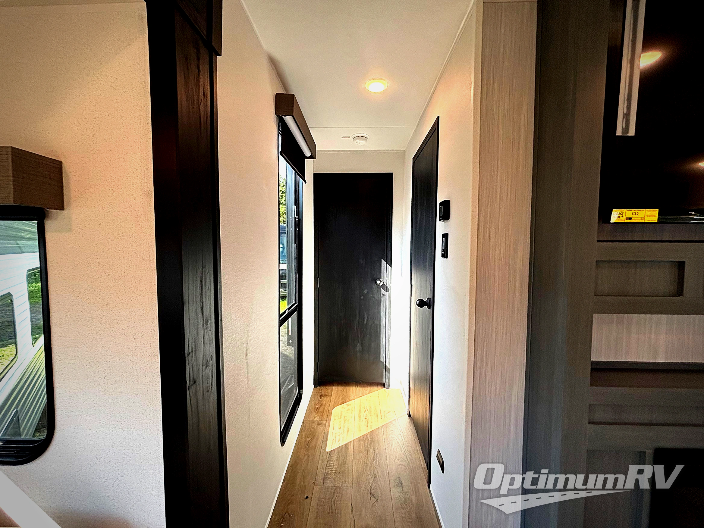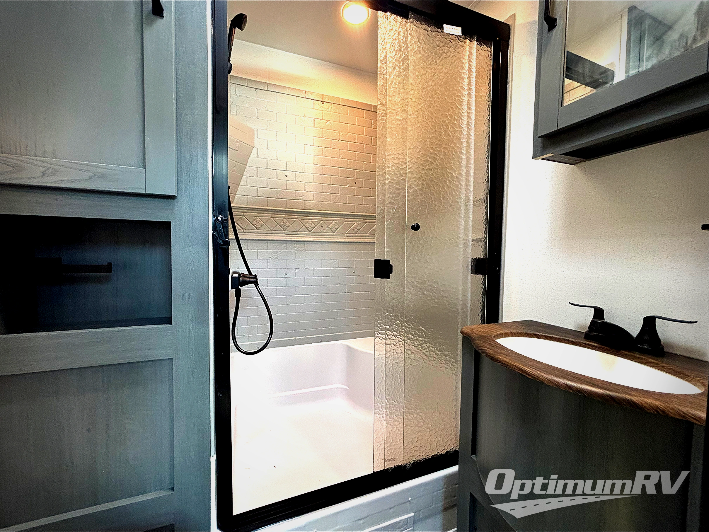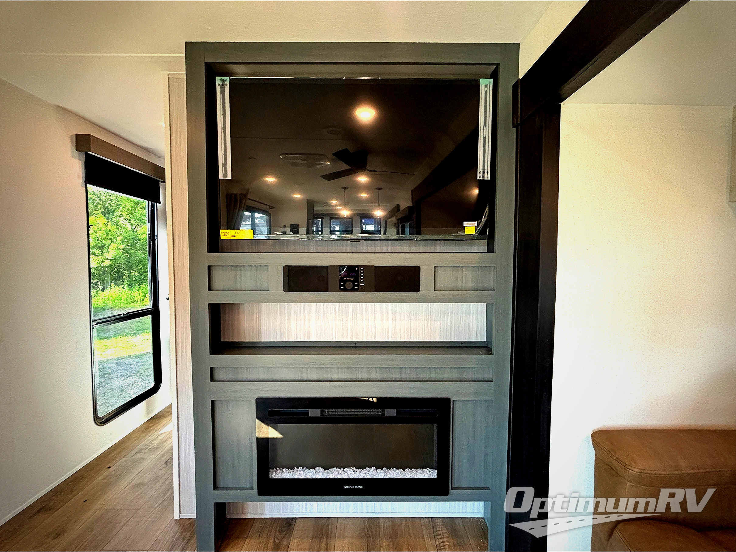 If you are looking for your own space in your next destination trailer, you have found it! With a front separate kitchen, a middle separate living area, a full bathroom and a rear bedroom, you can call one of these spaces your own. The cook will love the front counter space and appliances, and you can dine at the booth dinette or the breakfast nook. Someone can be visiting with friends and family while sitting on the two sofa slides or the two recliners, while another is getting ready in the full bathroom. You will sleep soundly on the king bed slide out, and the closet with washer and dryer prep option will make full-time RV living easier than ever.