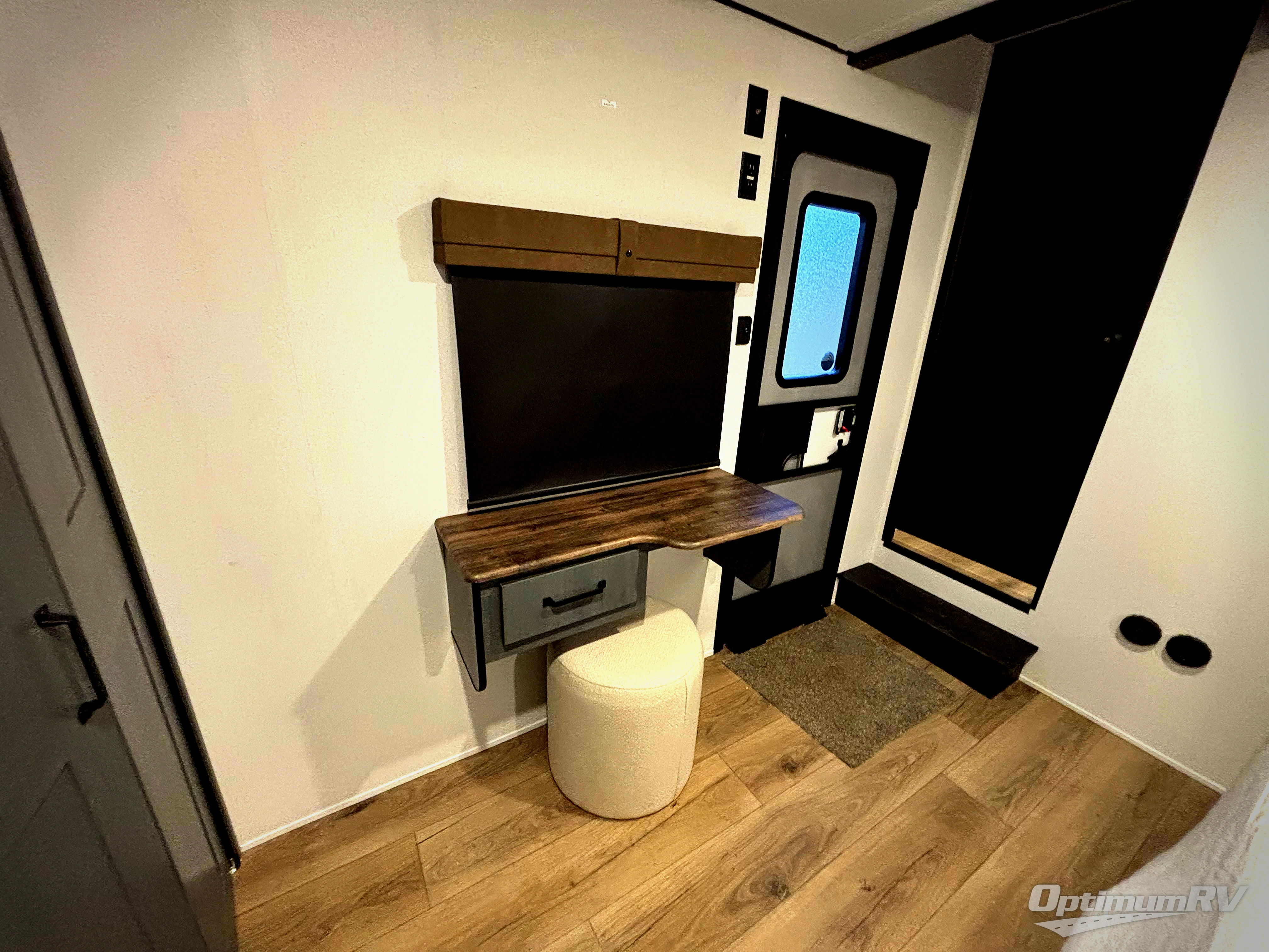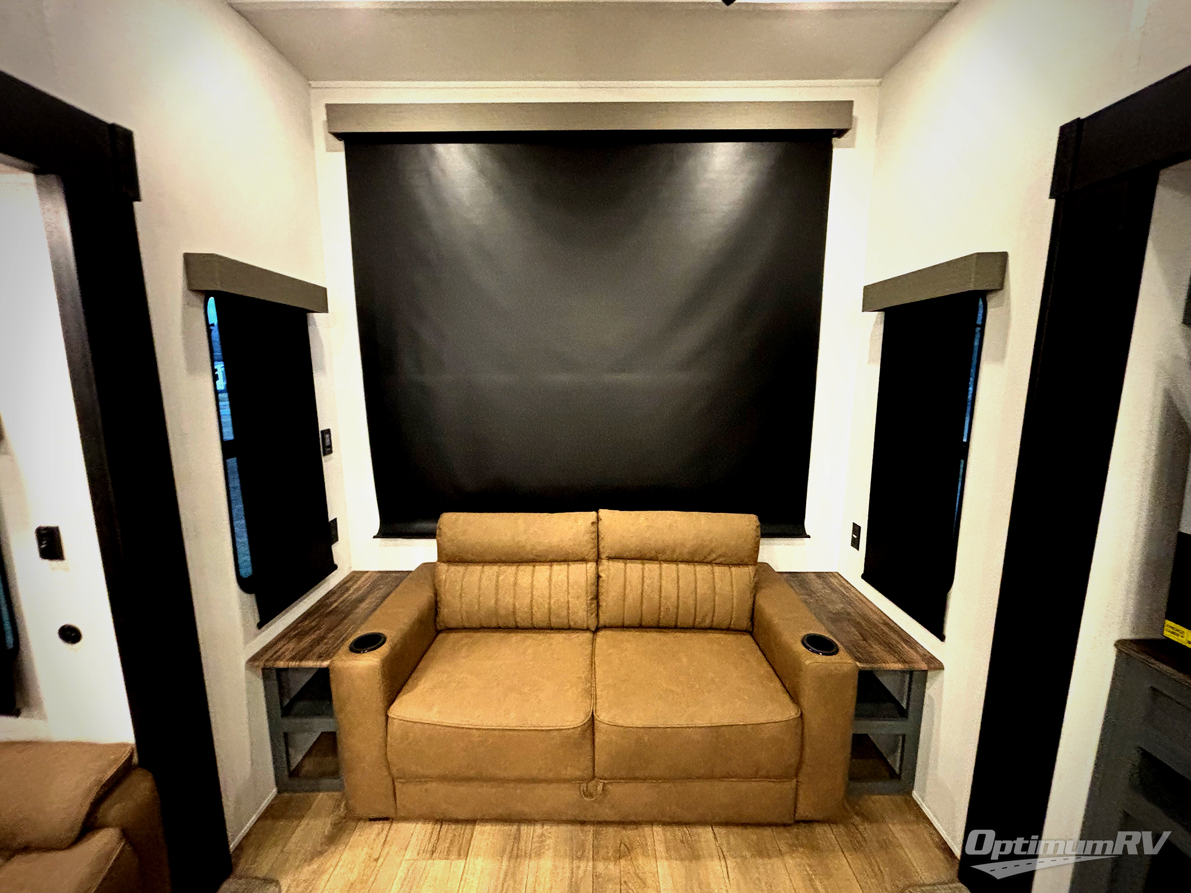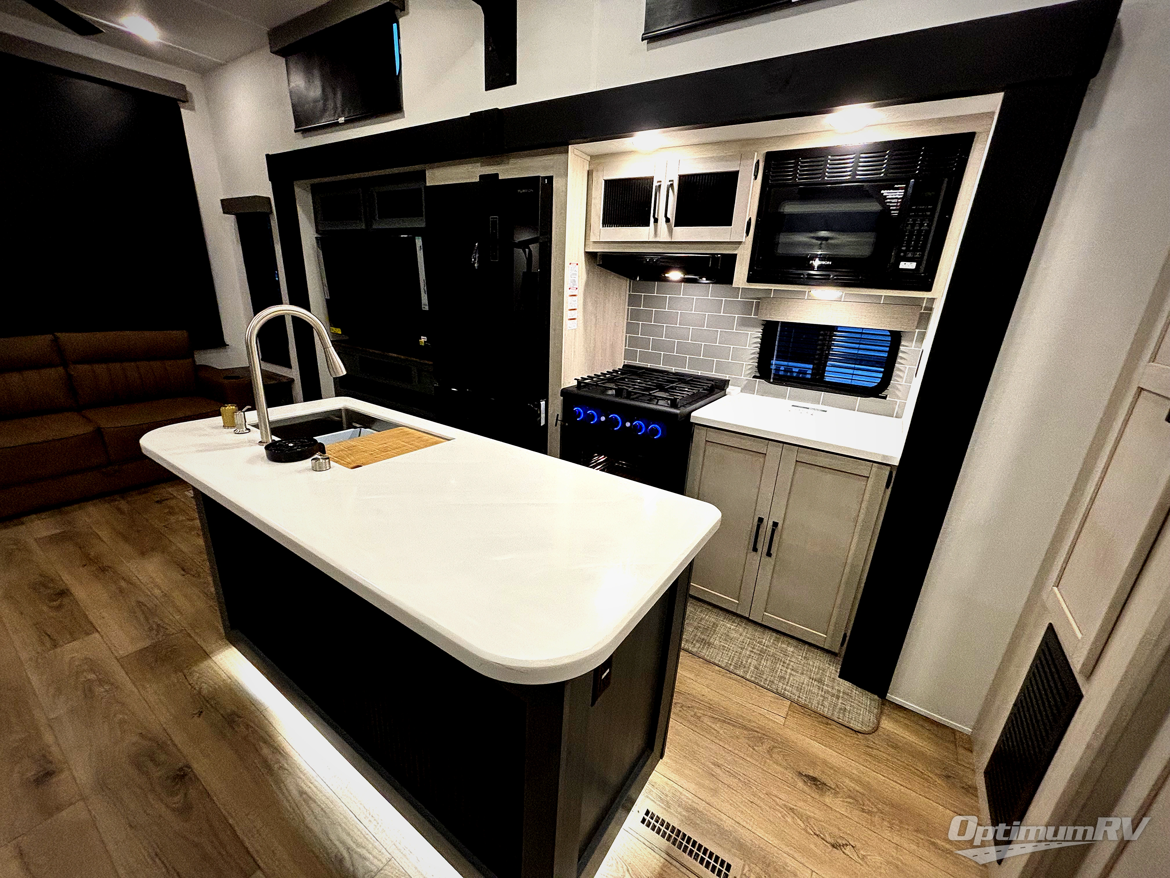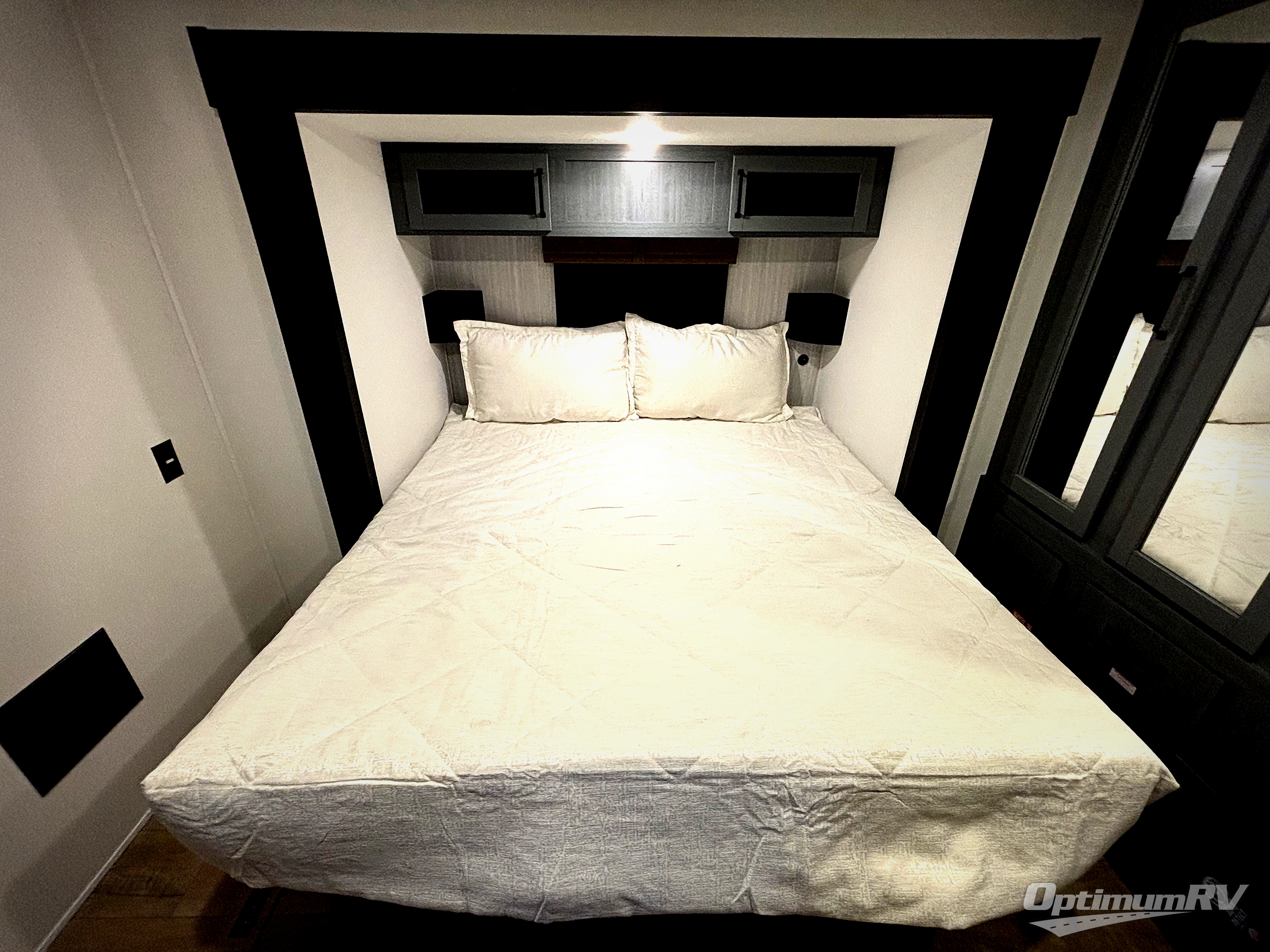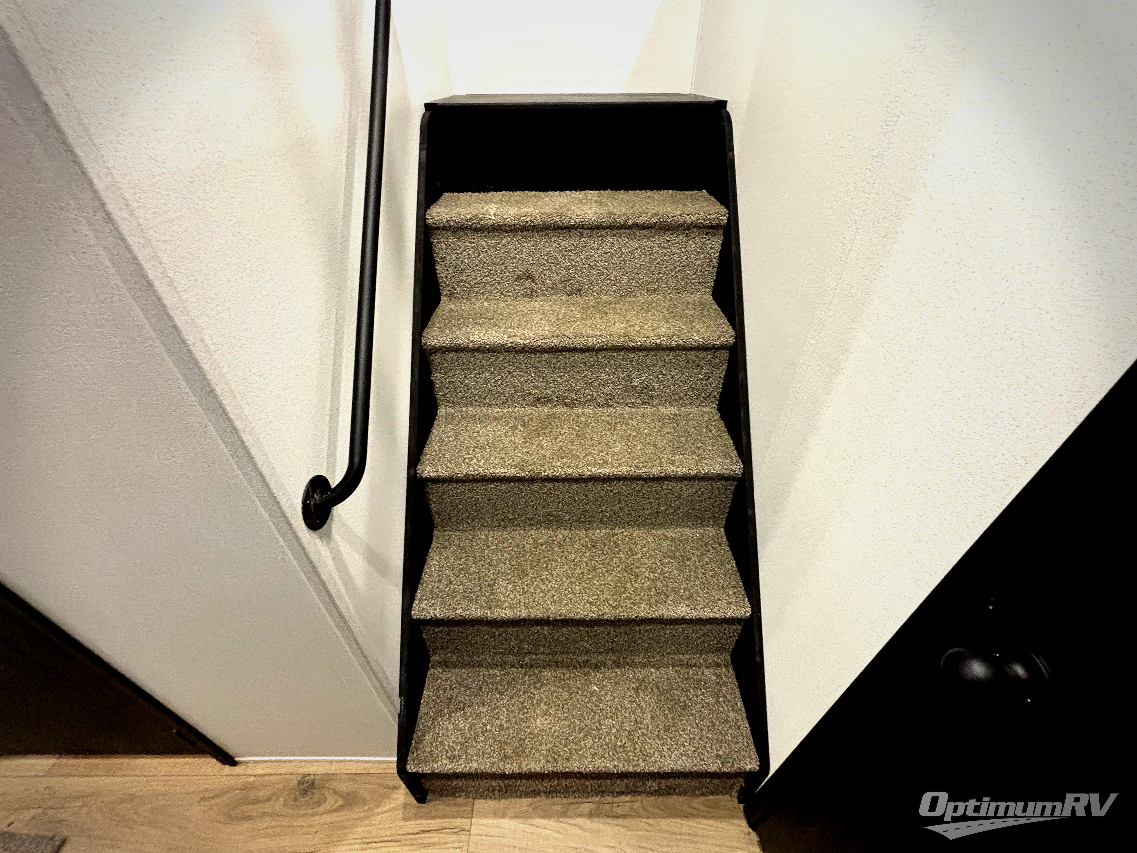 Wherever your destination may be, you can be sure to enjoy it to the fullest with this trailer in tow! With two entry doors, you can enter in through the front private bedroom or the main living area. The bedroom includes a king bed slide out, a desktop if you need to work from home, and a wardrobe/closet to keep your clothes organized. There is also a closet with the washer and dryer prep if you plan to add these appliances. Just outside this room are steps that lead to the large loft area with a 58" x 58" bunk mat and a cabinet on one side, plus two 32" x 80" bunk mats on the other. There is also a front cabinet and a wardrobe/closet for plenty of storage space. Once you've headed back downstairs, you can relax on the theater seating, rear sofa, or table and chairs with bench seating. And the chef of your group will love the kitchen with its residential style refrigerator and pantry, kitchen island, and four burner cooktop!