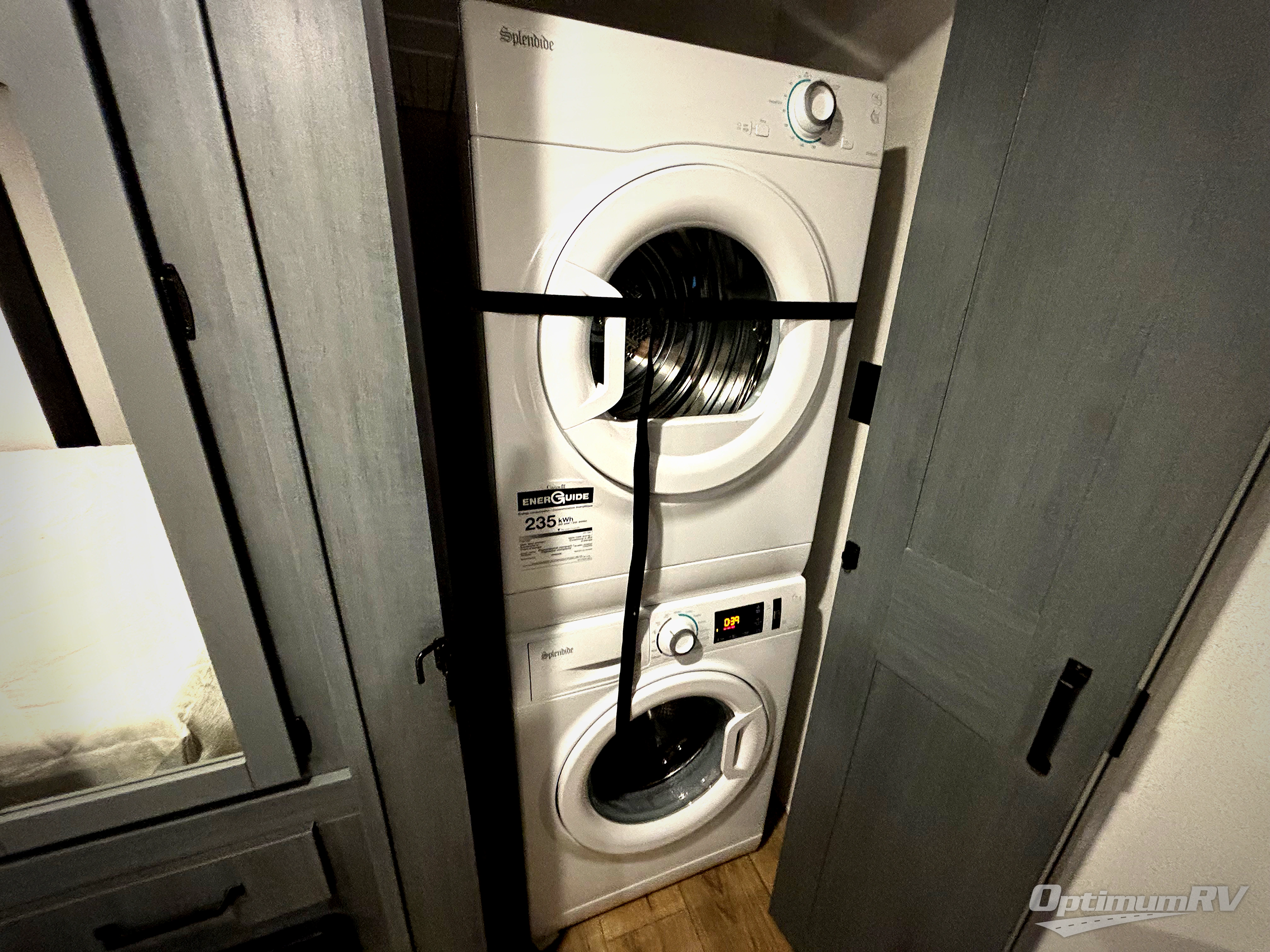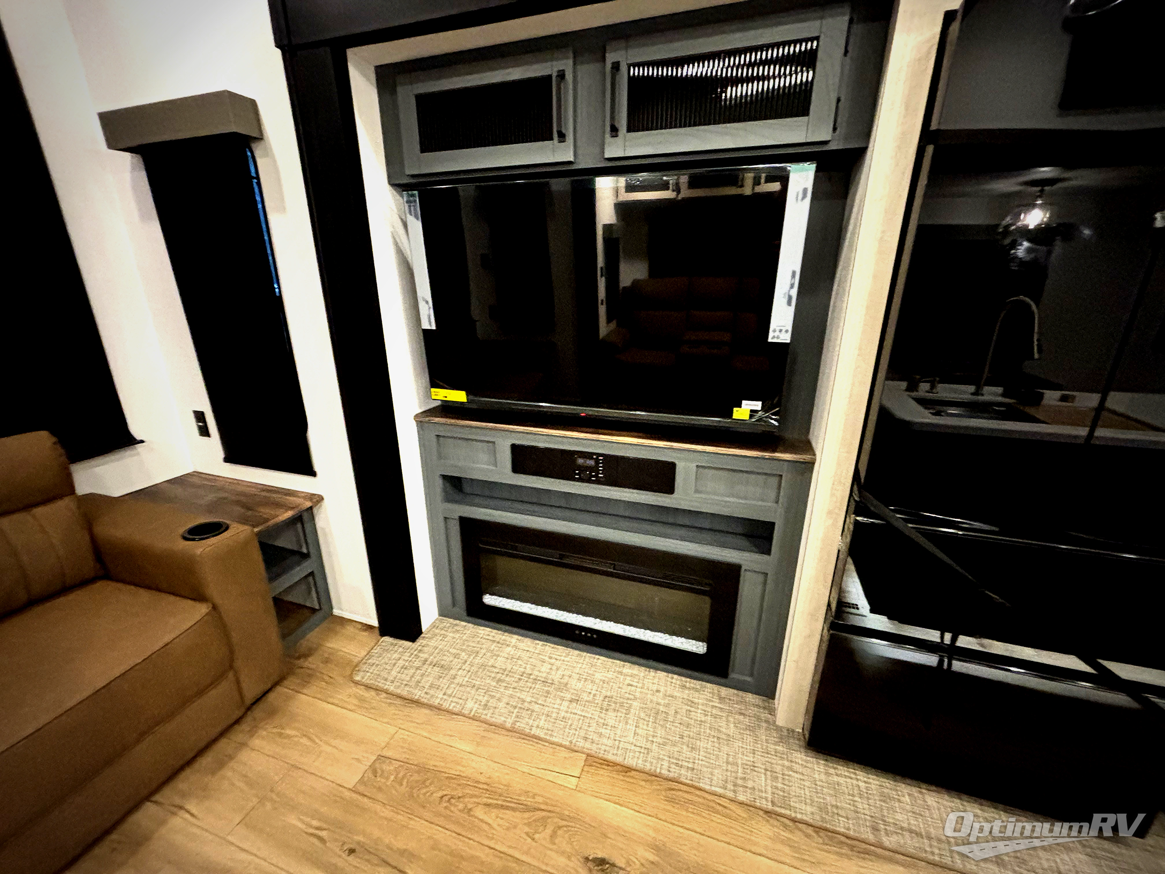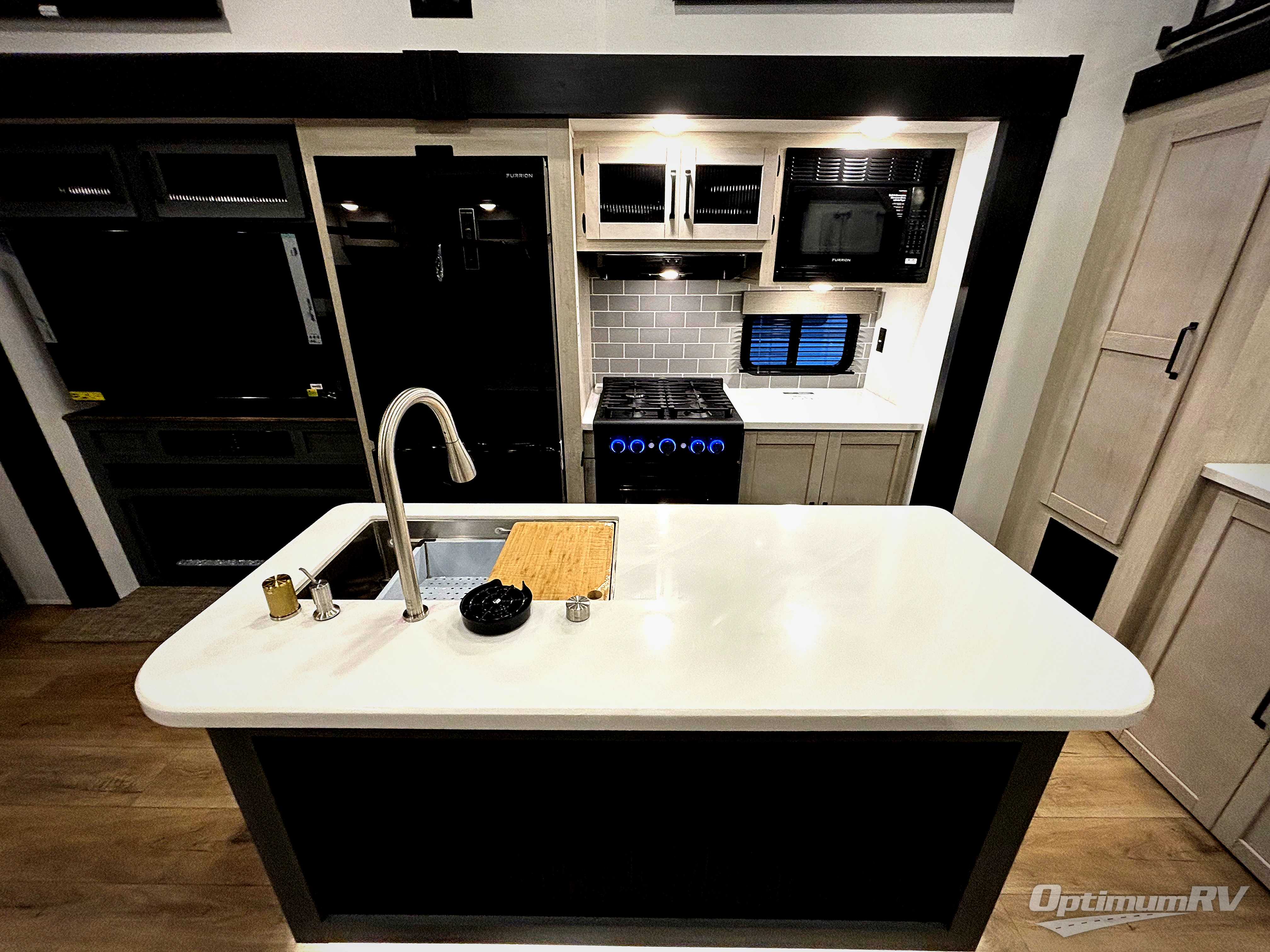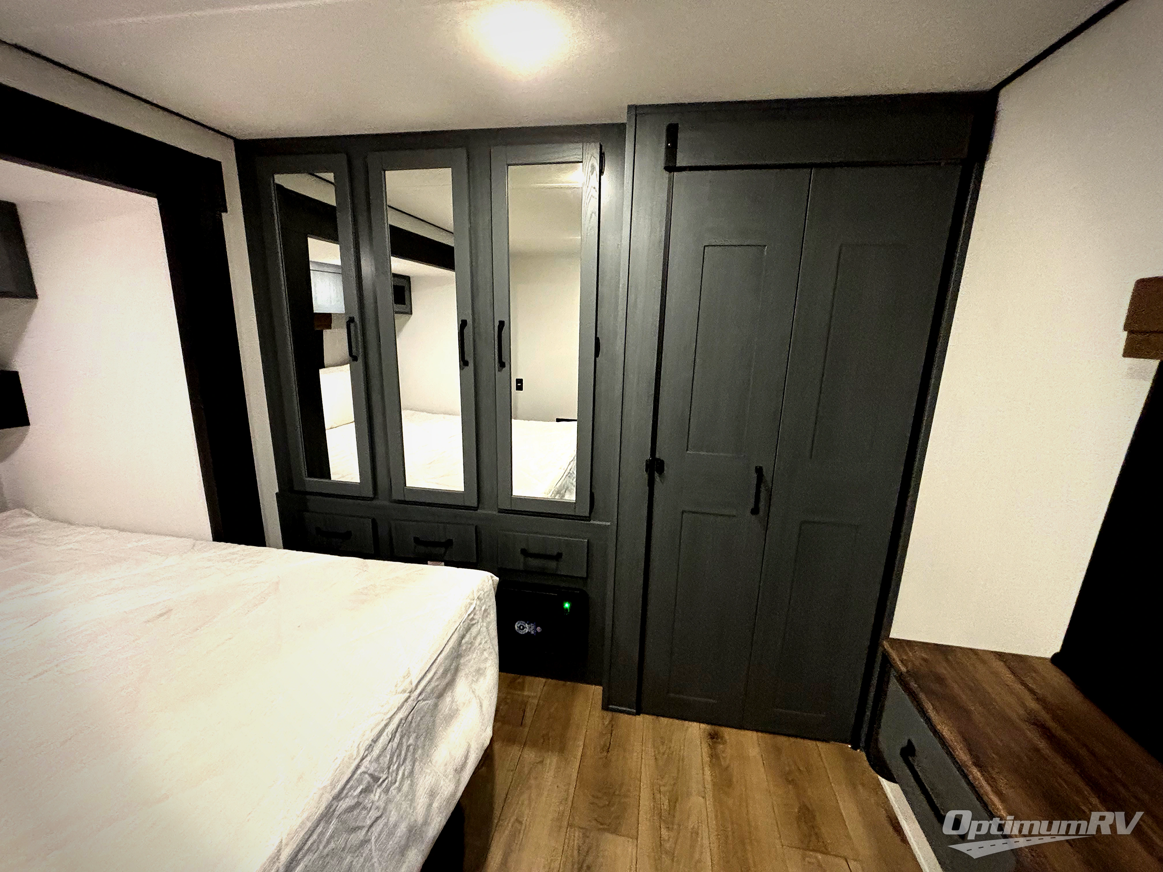 Wherever your destination may be, you can be sure to enjoy it to the fullest with this trailer in tow! With two entry doors, you can enter in through the front private bedroom or the main living area. The bedroom includes a king bed slide out, a desktop if you need to work from home, and a wardrobe/closet to keep your clothes organized. There is also a closet with the washer and dryer prep if you plan to add these appliances. Just outside this room are steps that lead to the large loft area with a 58" x 58" bunk mat and a cabinet on one side, plus two 32" x 80" bunk mats on the other. There is also a front cabinet and a wardrobe/closet for plenty of storage space. Once you've headed back downstairs, you can relax on the theater seating, rear sofa, or table and chairs with bench seating. And the chef of your group will love the kitchen with its residential style refrigerator and pantry, kitchen island, and four burner cooktop!