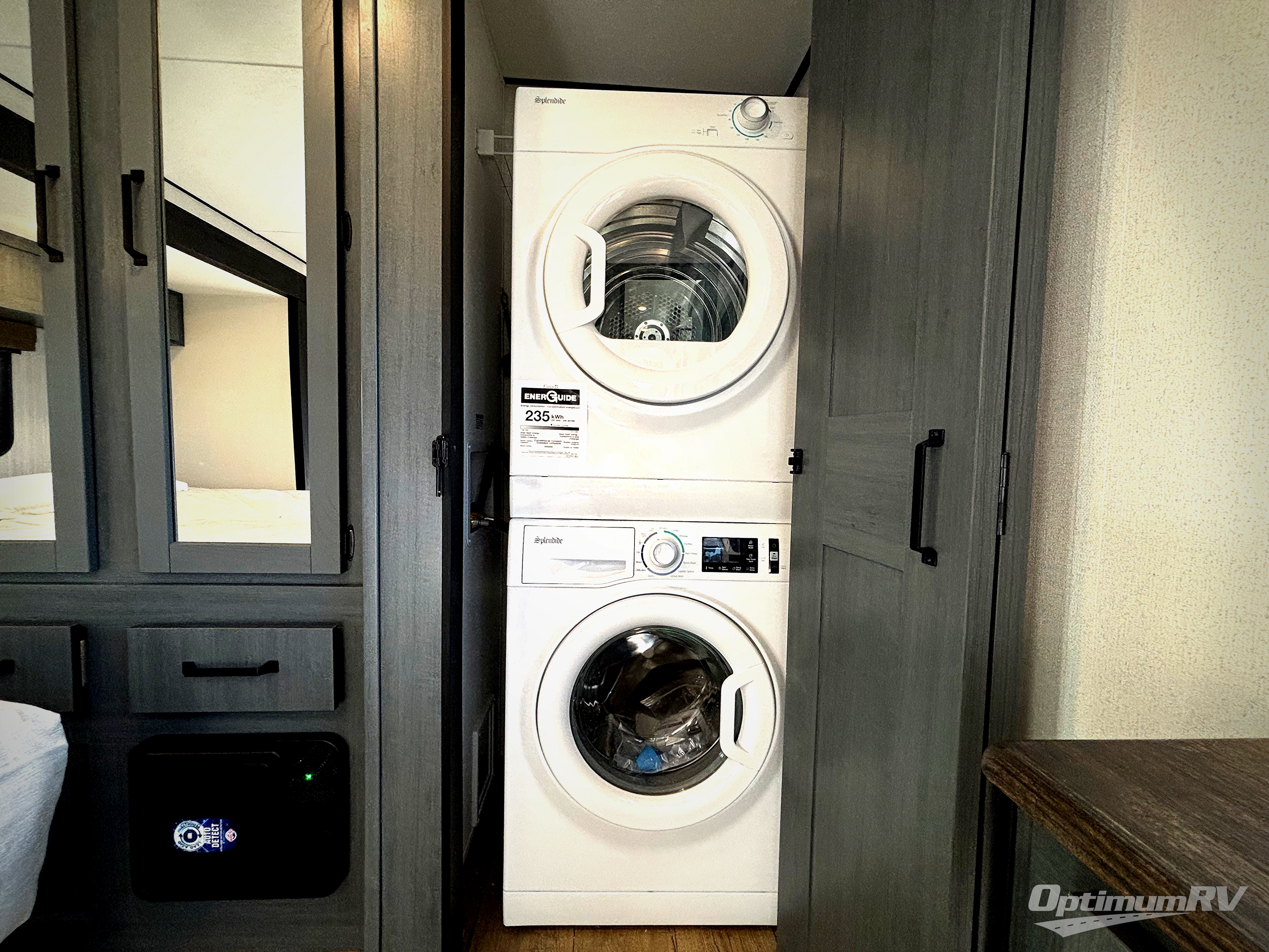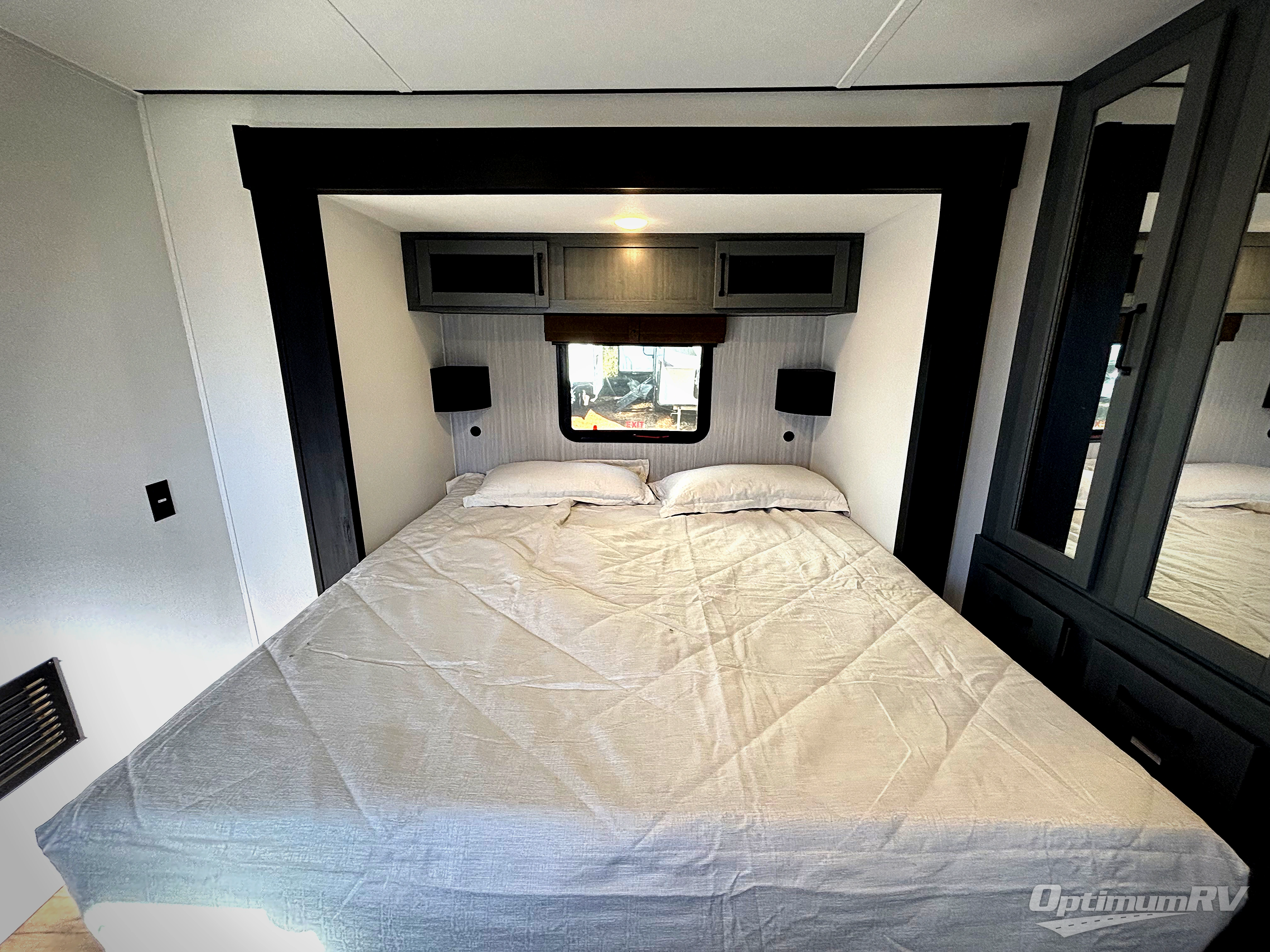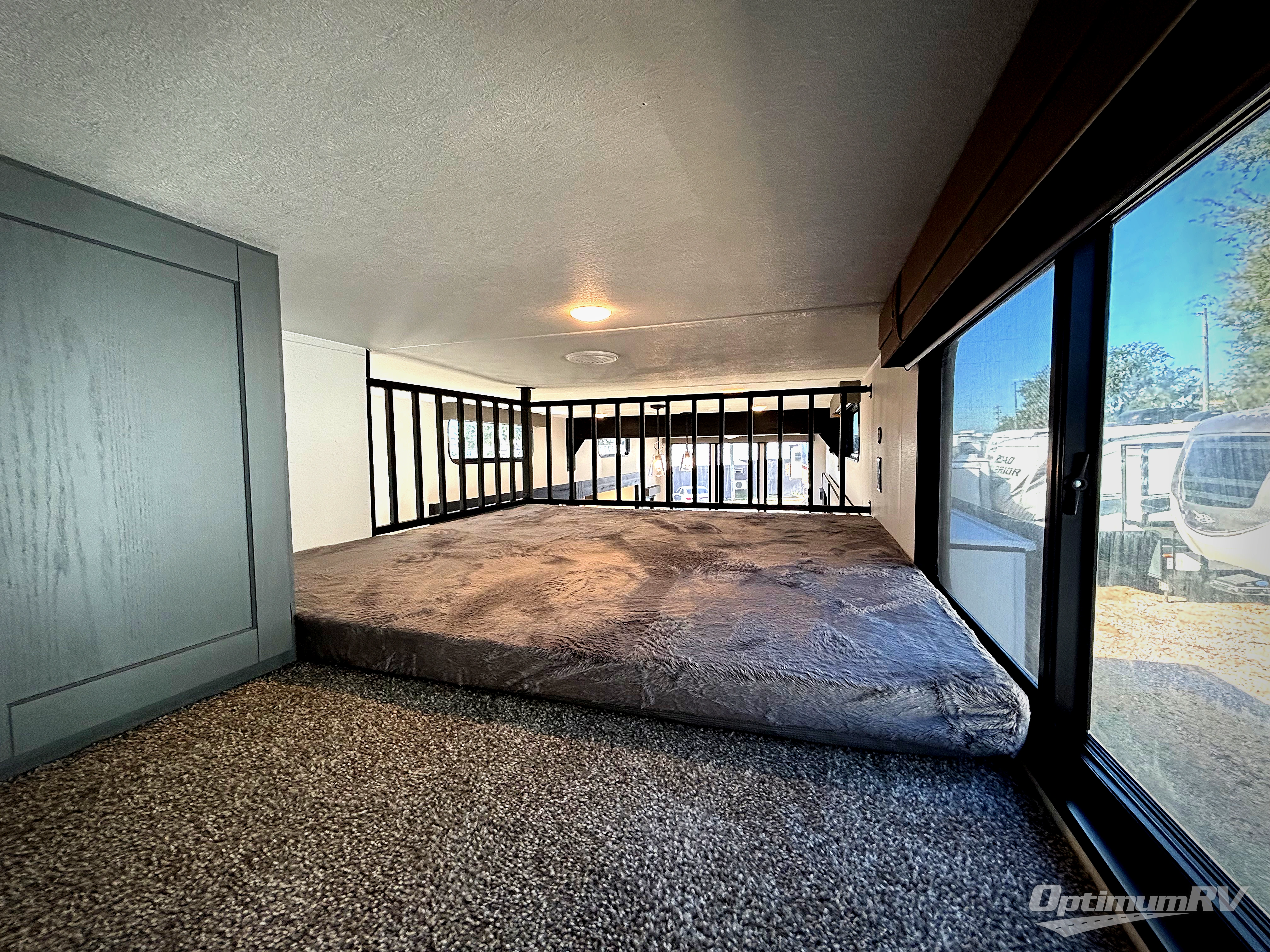 Wherever your destination may be, you can be sure to enjoy it to the fullest with this trailer in tow! With two entry doors, you can enter in through the front private bedroom or the main living area. The bedroom includes a king bed slide out, a desktop if you need to work from home, and a wardrobe/closet to keep your clothes organized. There is also a closet with the washer and dryer prep if you plan to add these appliances. Just outside this room are steps that lead to the large loft area with a 58" x 58" bunk mat and a cabinet on one side, plus two 32" x 80" bunk mats on the other. There is also a front cabinet and a wardrobe/closet for plenty of storage space. Once you've headed back downstairs, you can relax on the theater seating, rear sofa, or table and chairs with bench seating. And the chef of your group will love the kitchen with its residential style refrigerator and pantry, kitchen island, and four burner cooktop!