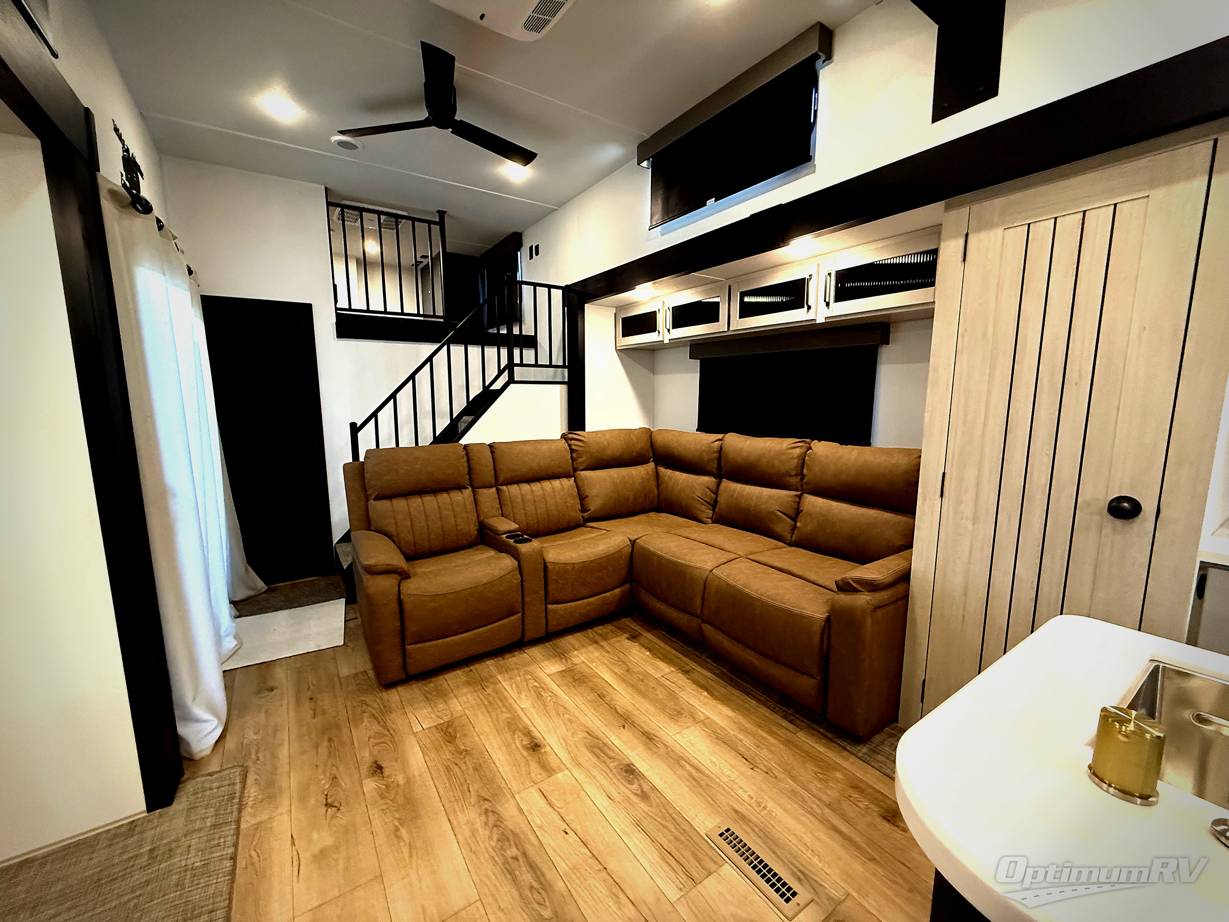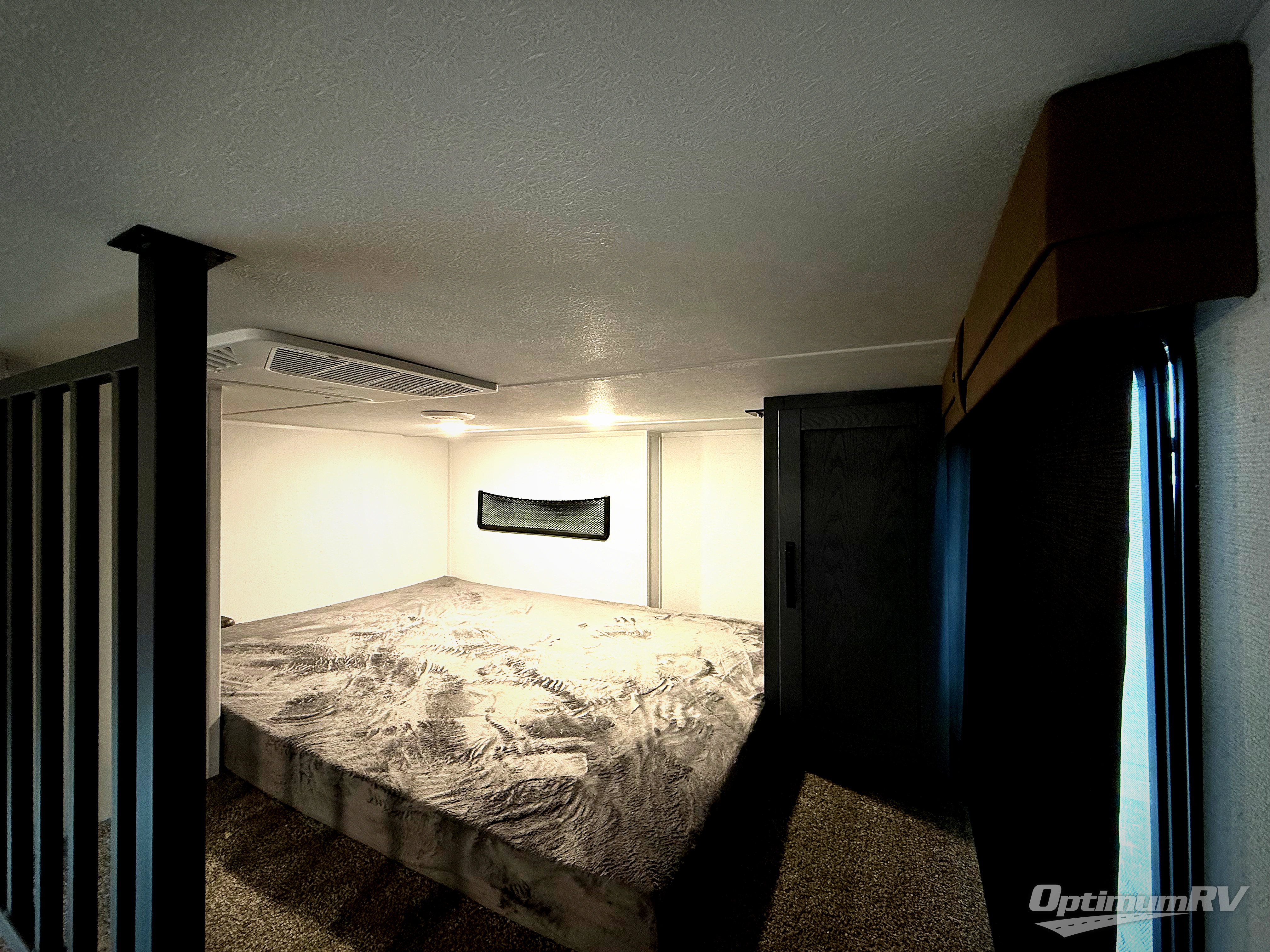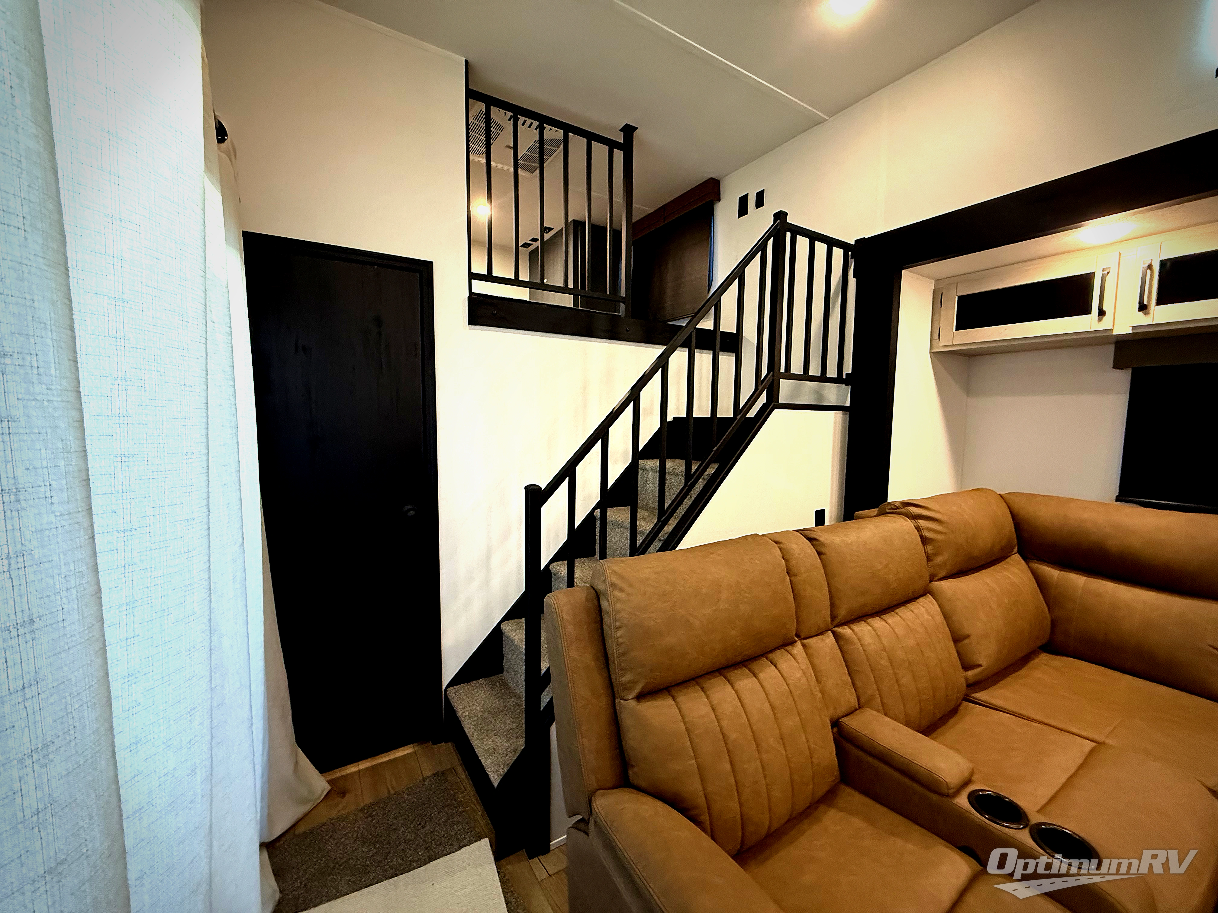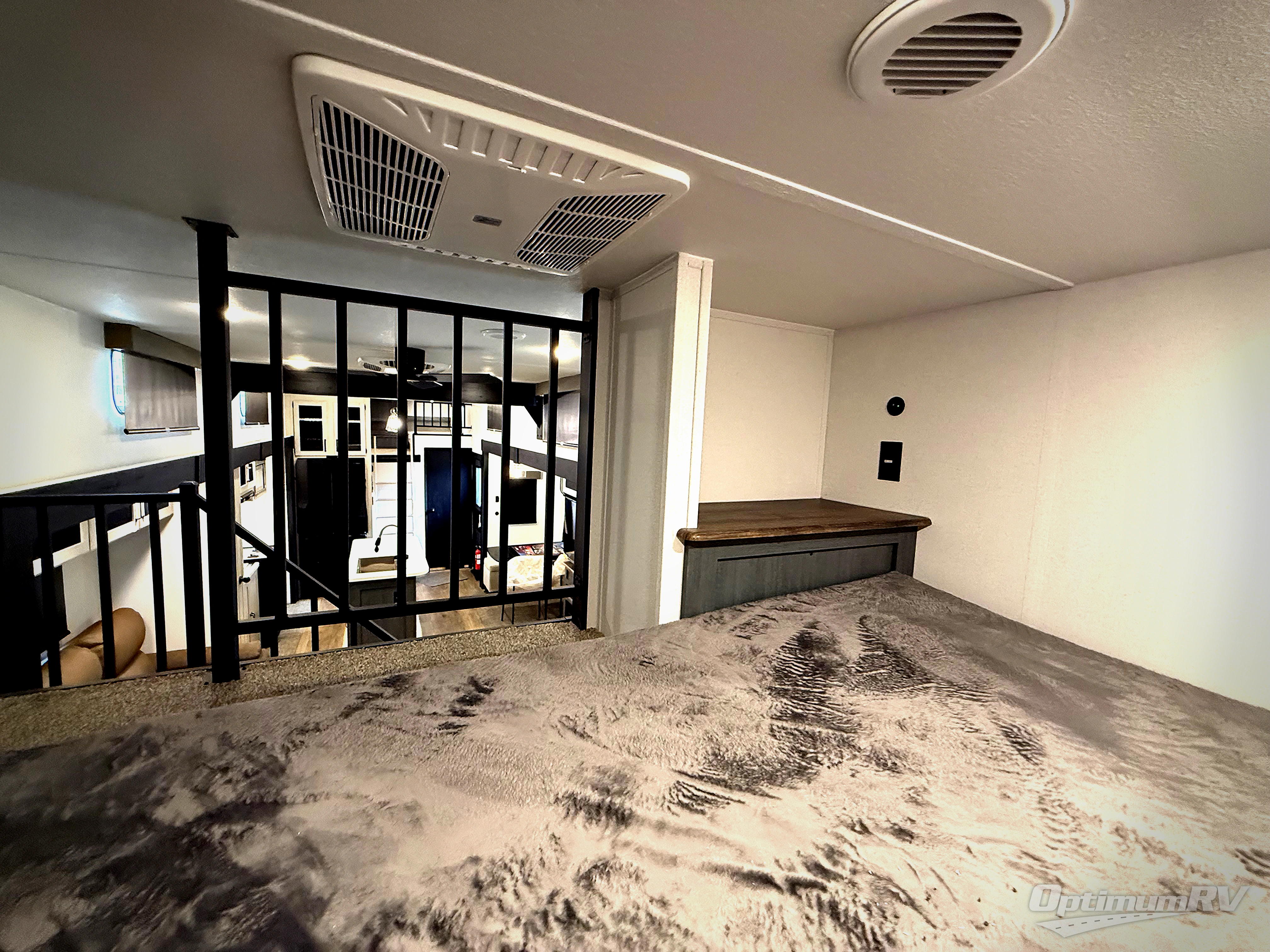 Head to your favorite spots with this destination trailer! With two entry doors, you can easily enter or exit the unit. The front private bedroom includes a king bed slide out, a wardrobe and dresser to keep your clothes organized, plus a countertop for your books or jewelry. Just outside this room is the ladder that leads to the large loft area with two 32" x 80" bunk mats, a cubby, a counter, a nightstand, and cabinets. Once you've headed back downstairs, you can relax on the L-shaped sofa across from the entertainment center with a fireplace and slide-out cabinet or the table and chairs with bench seating. And the chef of your group will love the kitchen with its residential style refrigerator and pantry, kitchen island, and four burner cooktop. The full rear bathroom not only has a 32" x 40" shower with a seat to freshen up in, and a closet with washer/dryer prep, but is also below the second loft with a 32" x 80" bunk mat and closet for storage!