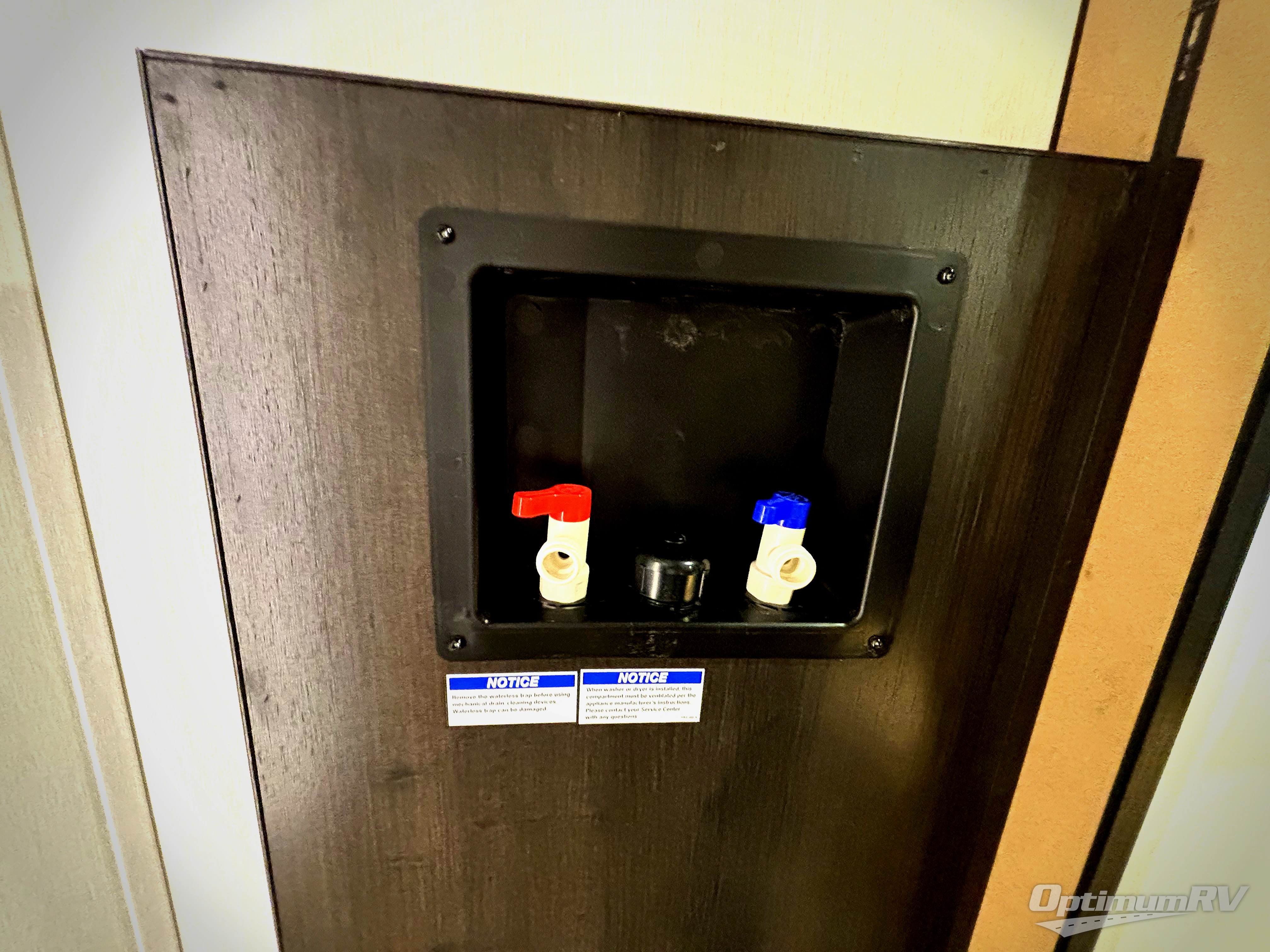 This is the perfect fifth wheel if you enjoy camping with friends and family! You'll have the front private bedroom with a camper king bed slide all to yourselves, while your guests take the rear den. There is a tri-fold sofa here, along with a wardrobe with a desk, additional shelves plus a loft above this room for even more sleeping or storage space! The main living room features an L-shaped sectional sofa, a fireplace and an entertainment center. And the patio deck with a 12' awning is right off of this room so you can visit with friends indoors or outdoors! There is generous counter space in the full kitchen, along with a pull-out storage drawer and a versatile dinette/desk. There are many more stand-out features found in this fifth wheel, including washer and dryer prep in the front bedroom, a 70" projector screen in the rear den, a second power awning, and the list goes on!