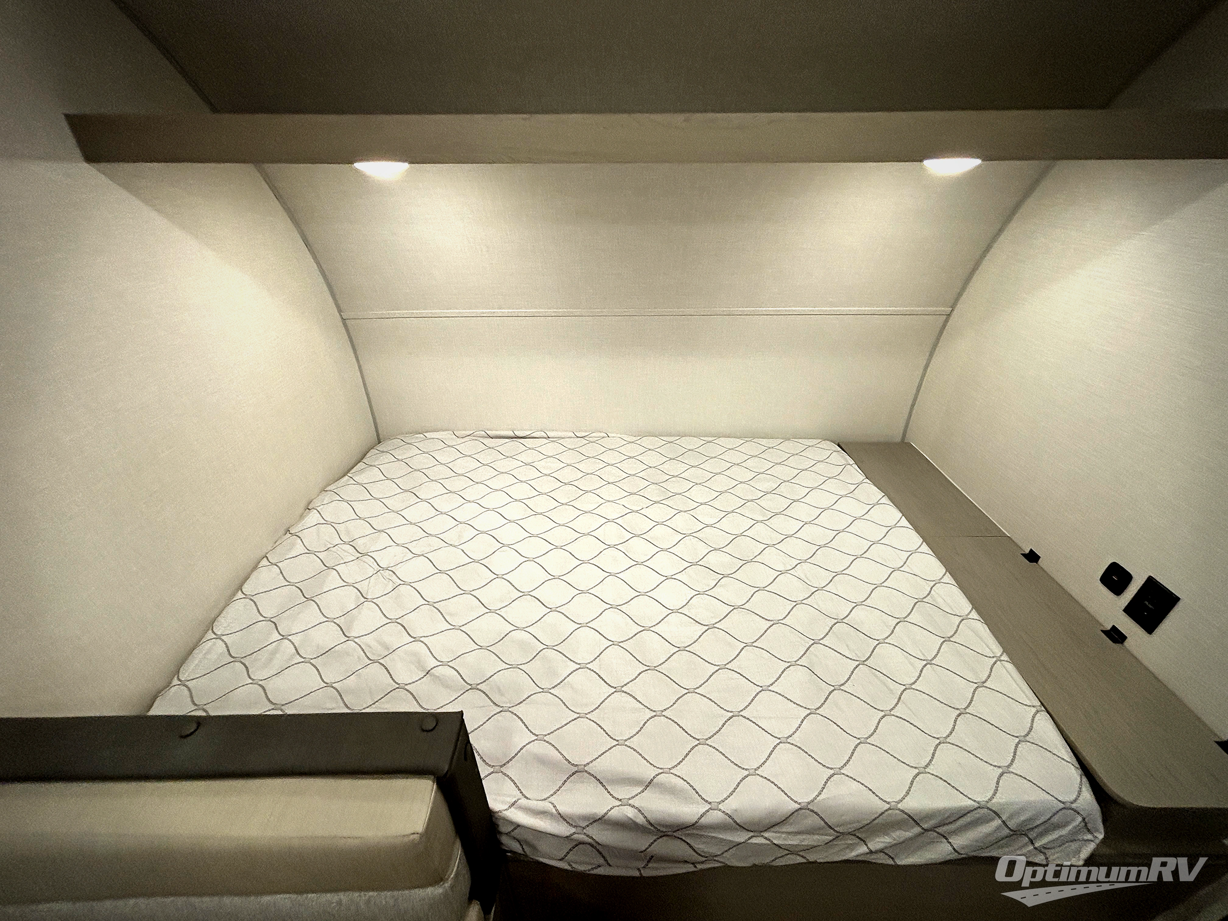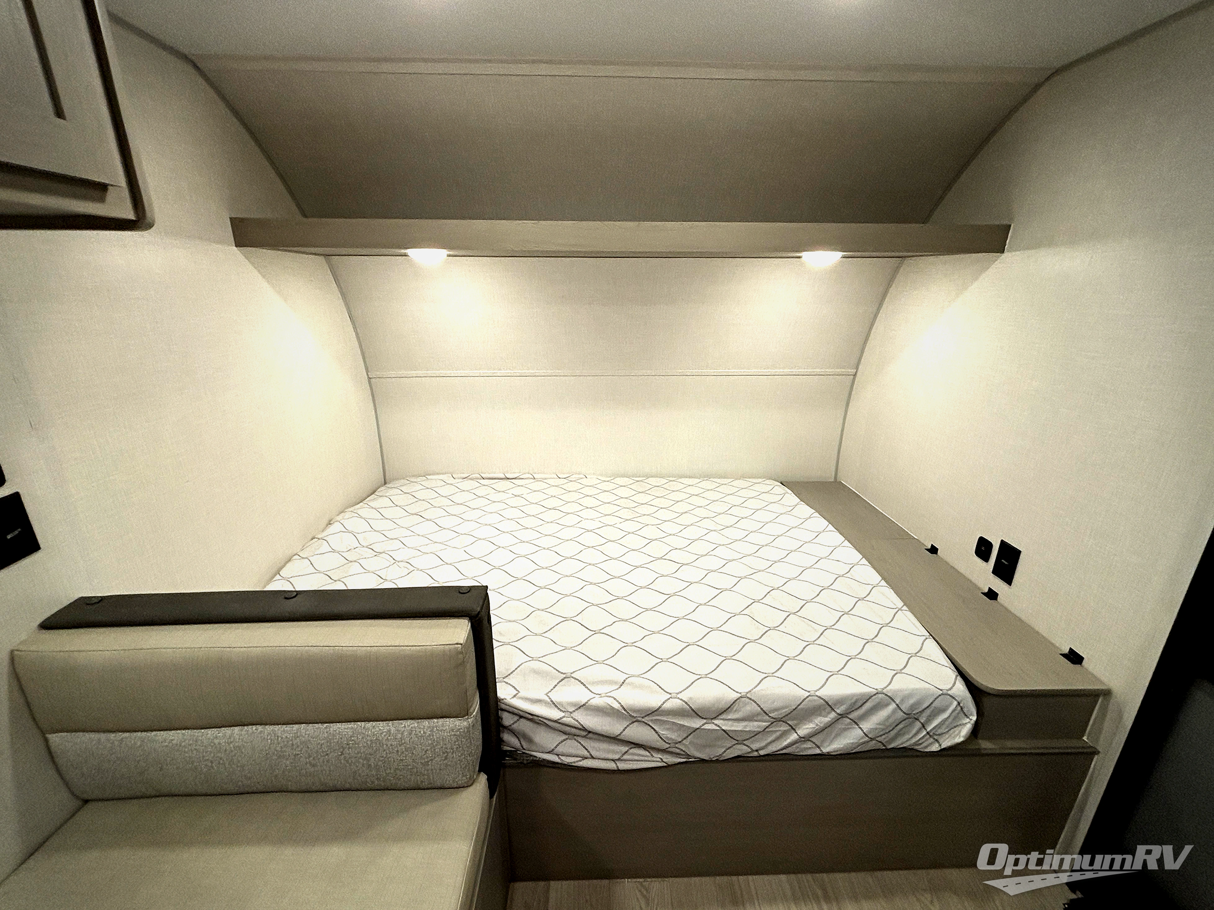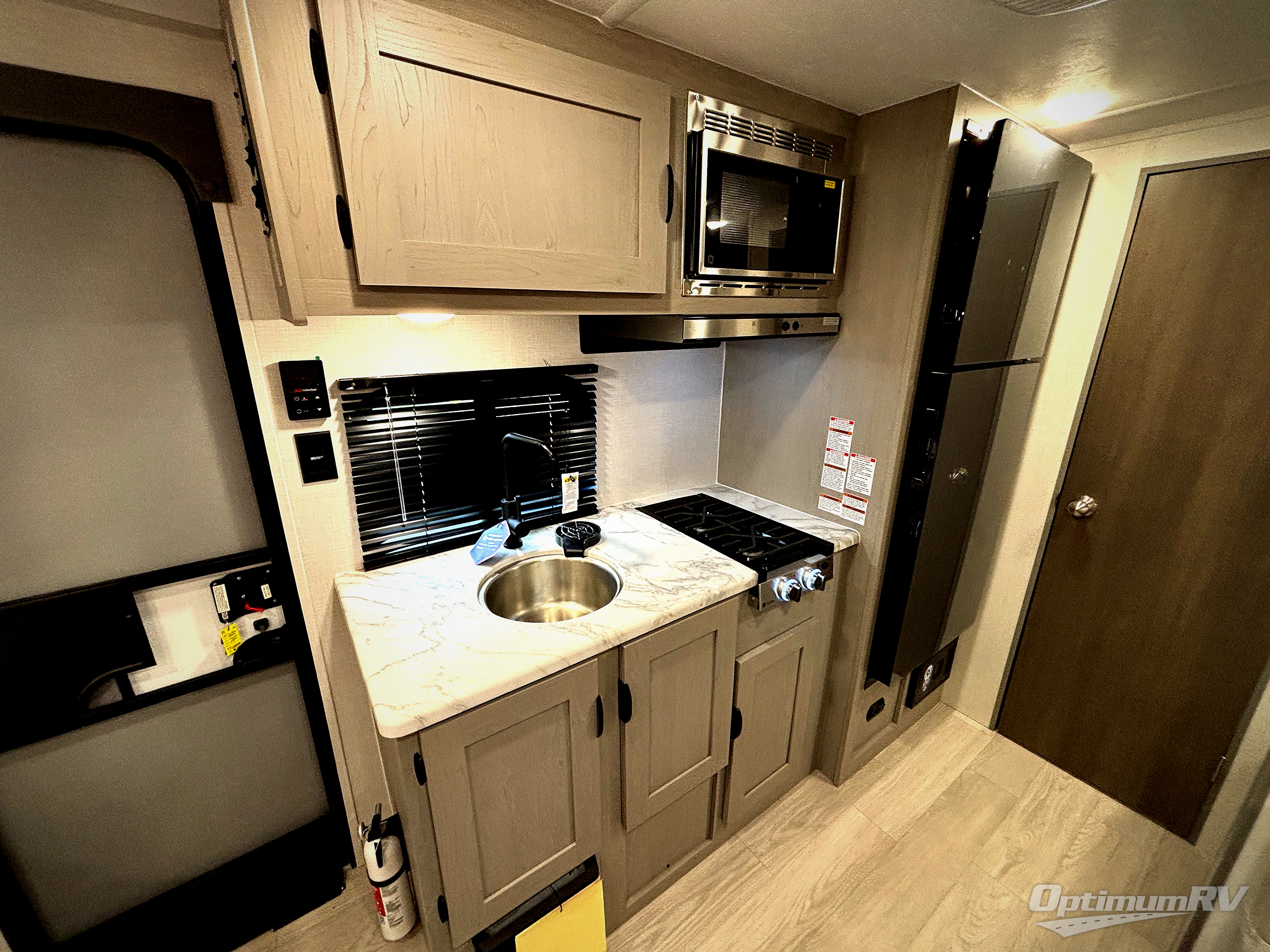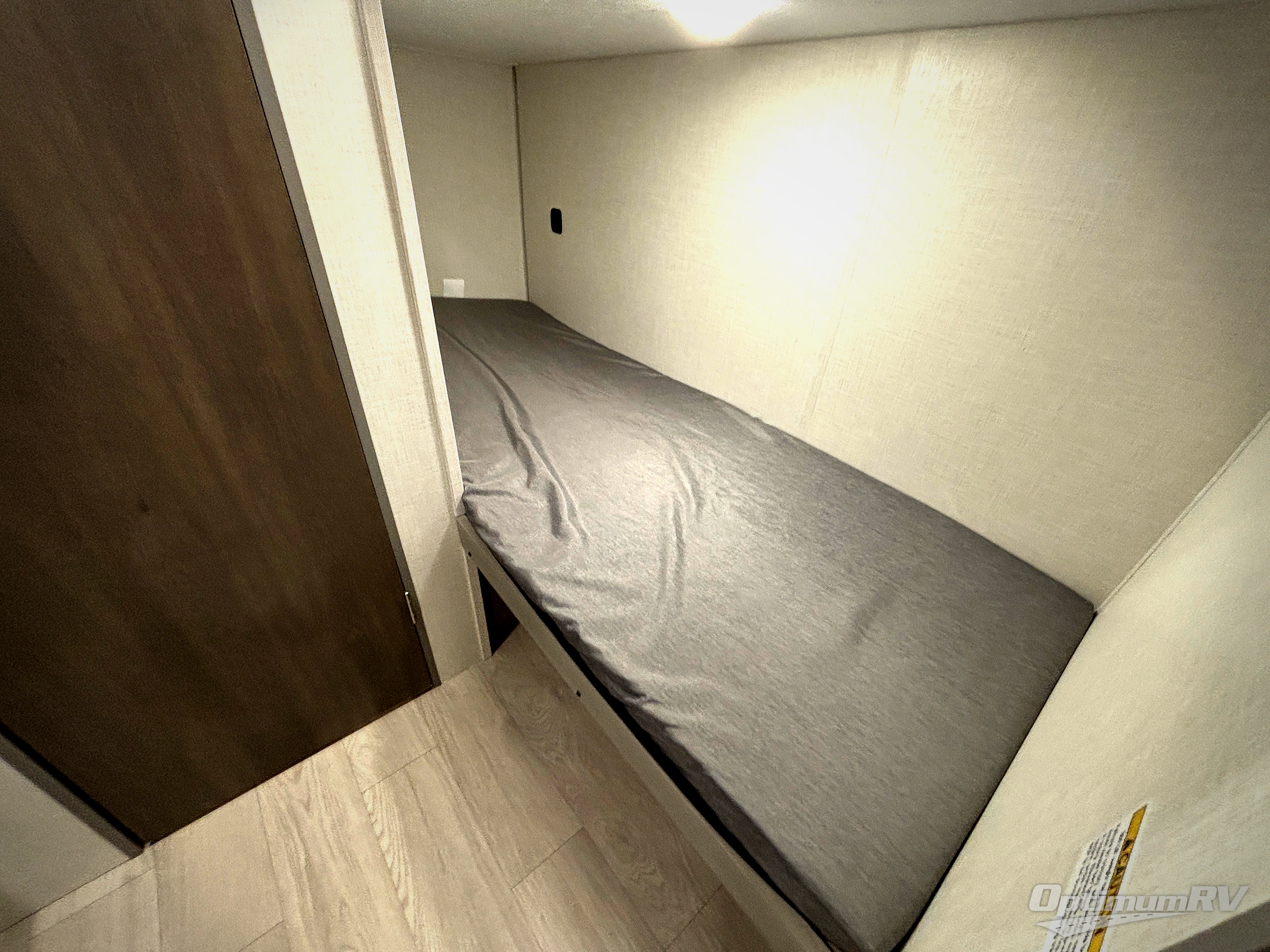 This is the perfect travel trailer for a family of four or five since it includes bunk beds for the kids, and a queen bed up front as well as a booth dinette that can be converted to sleep one more. There is an induction cooktop to cook meals on, and a sink to easily clean up each day. You can dine at the booth dinette or take your plate outdoors to sit under the 10' power awning with LED lighting. This model also includes a 24" x 36" shower to get cleaned up each day. Get an early start on family vacations with this travel trailer in tow!