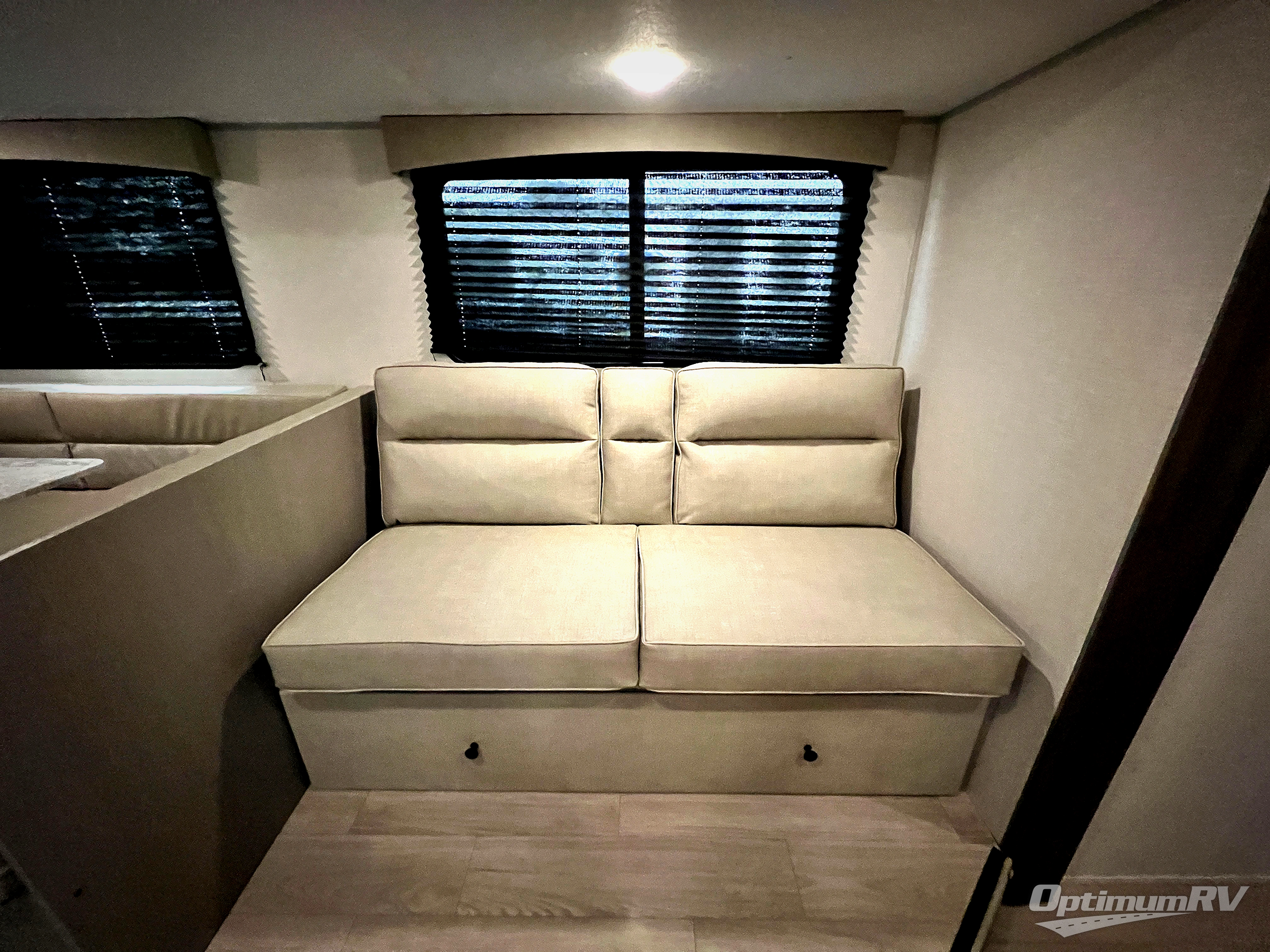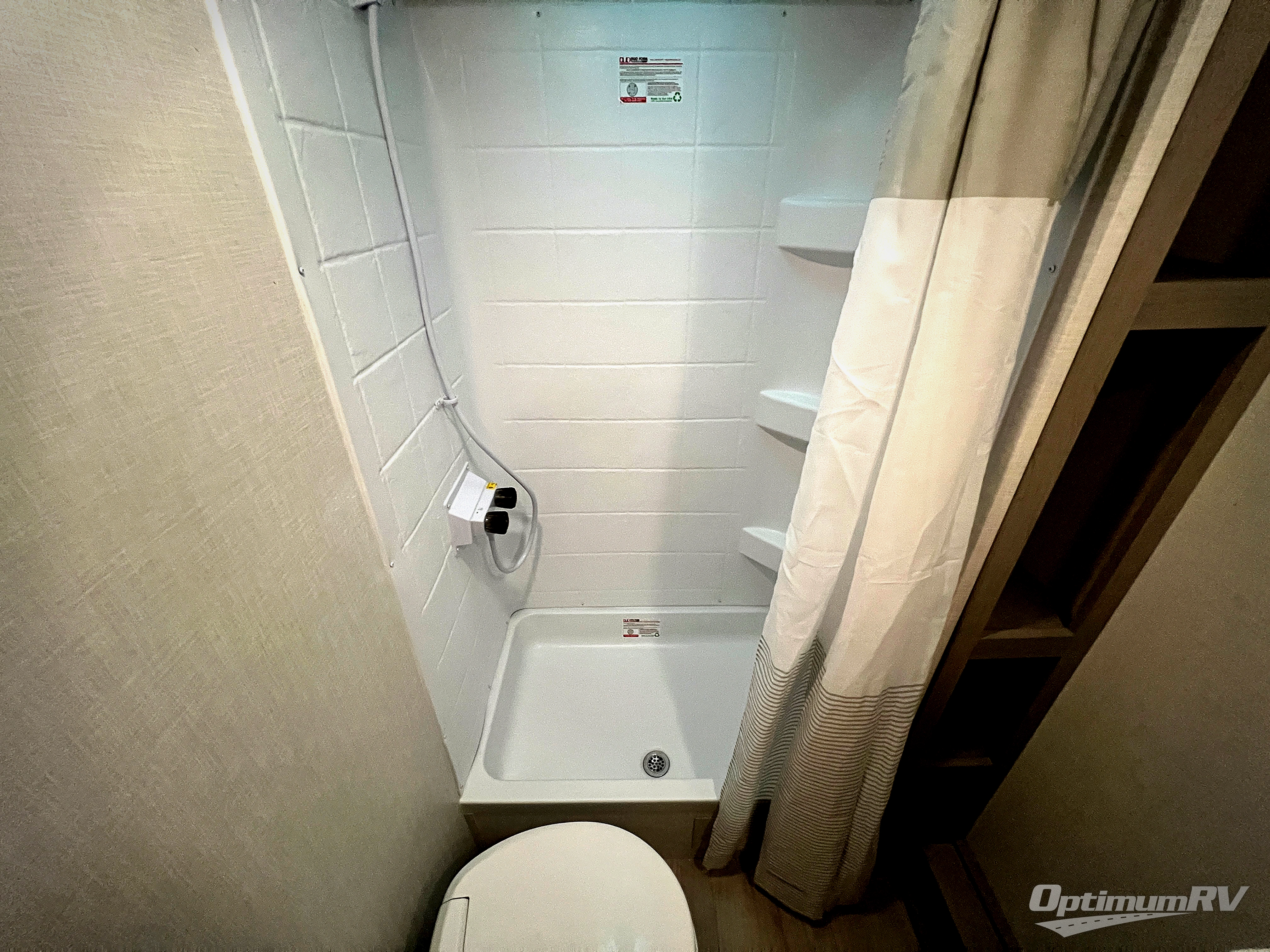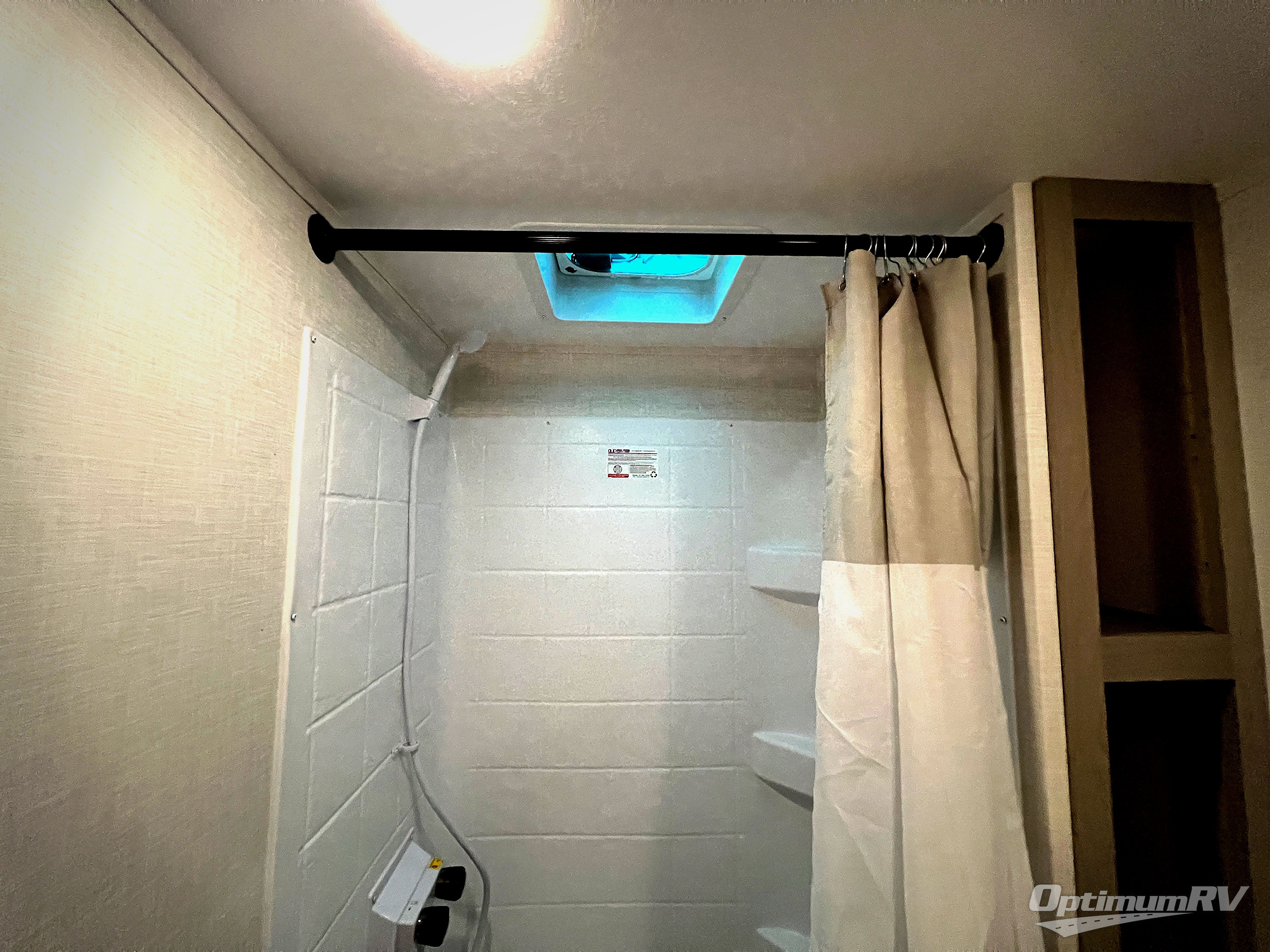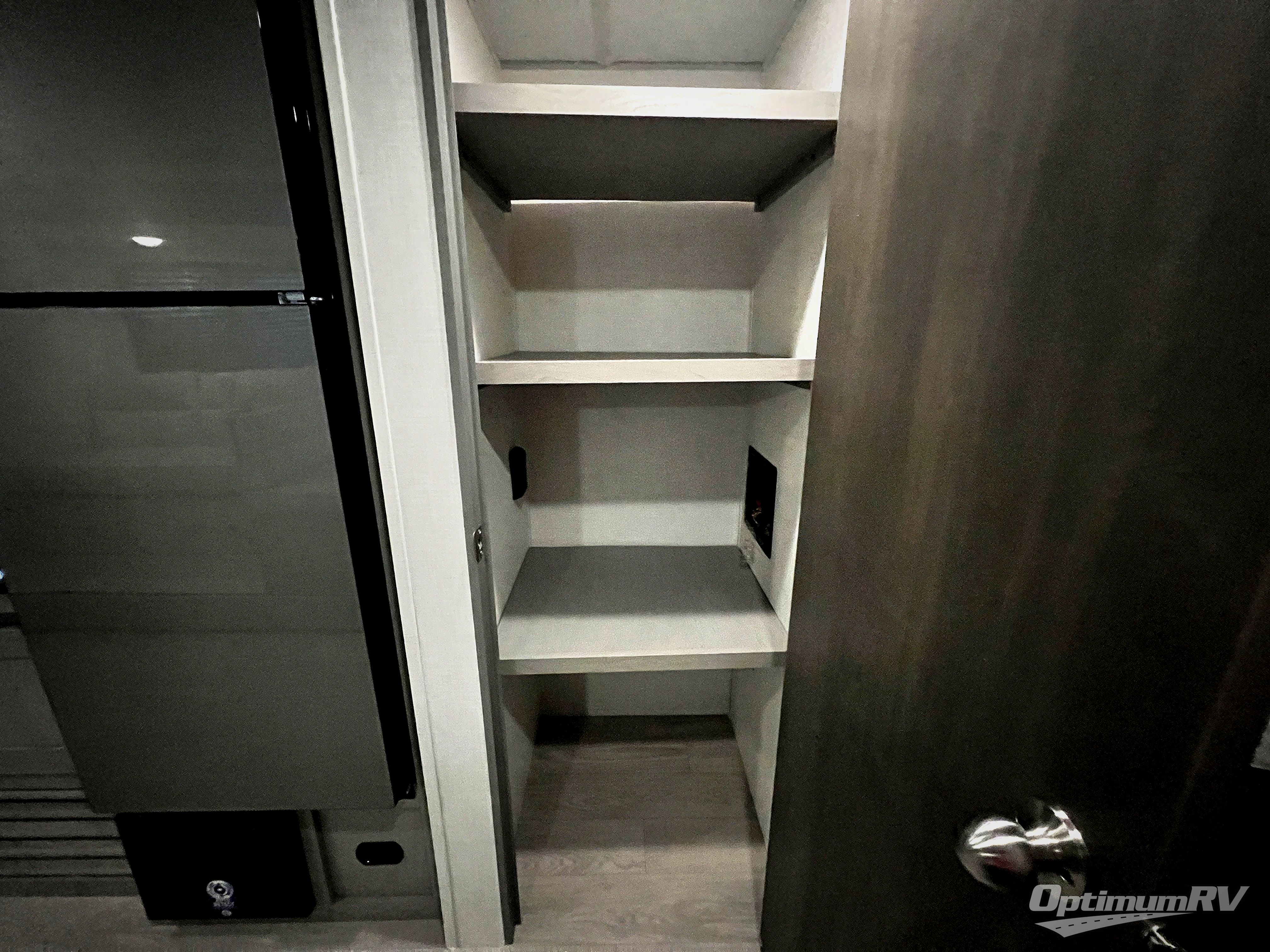 Pack your bags and head to the campground in this spacious travel trailer for the whole gang! The owners will love having their own space in the front private bedroom, complete with an RV queen bed and dual wardrobes and shelves. There are double-size bunks in the rear corner, with the full bath in the other rear corner for easy nighttime use. Everyone can meet in the combined living area and kitchen while the cook makes breakfast. There is a sofa and dinette within the large slide out and an entertainment center with an optional fireplace if you want to make this space more cozy. This unit also includes a large pantry with washer and dryer prep, giving you the option to add these appliances, and an optional camp kitchen can be added for the cook who loves being outdoors!