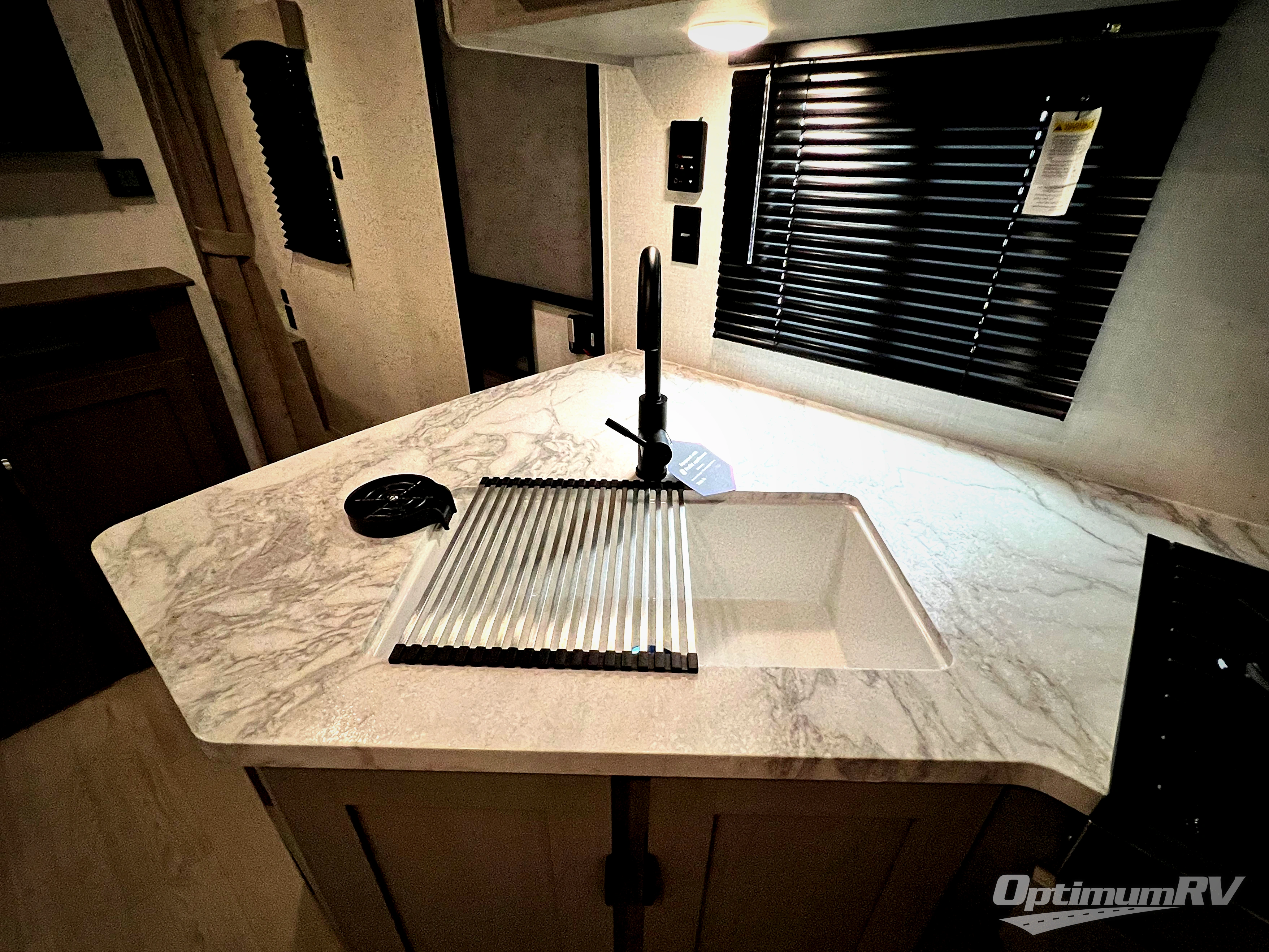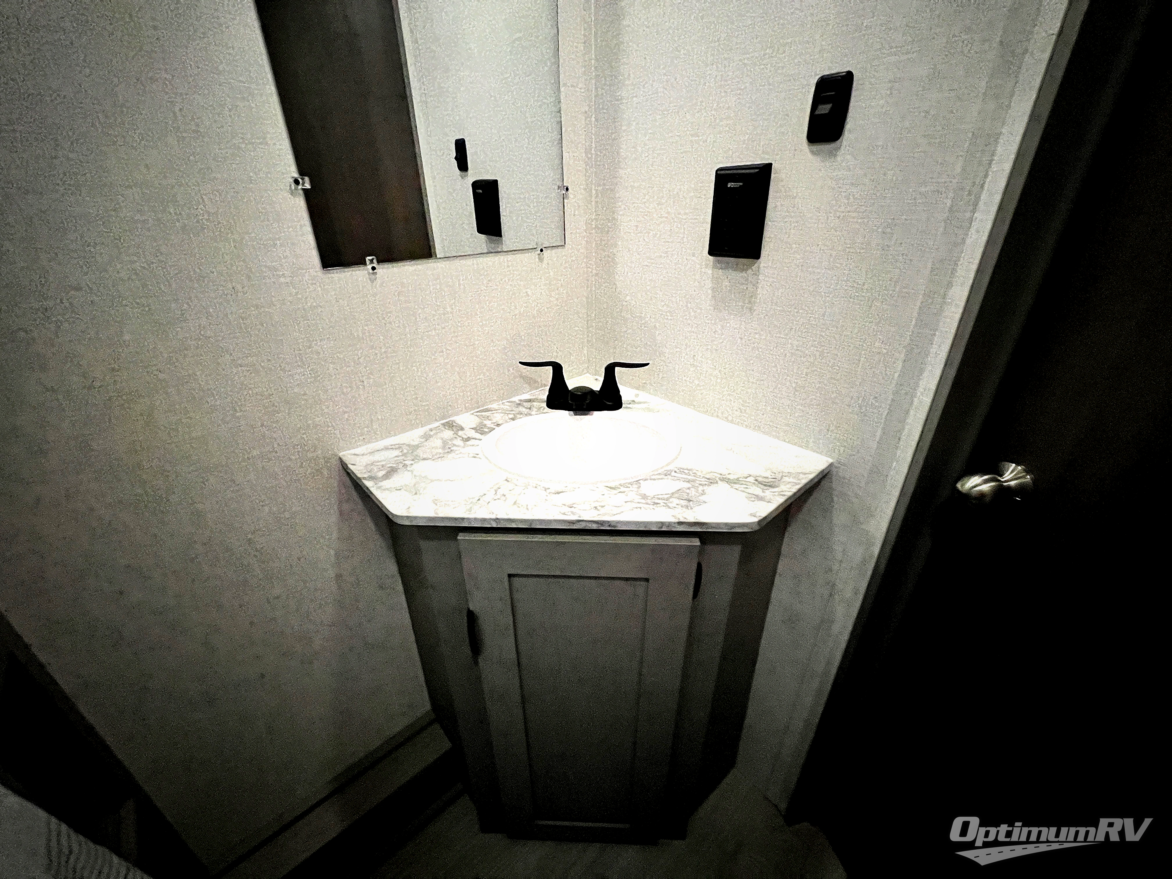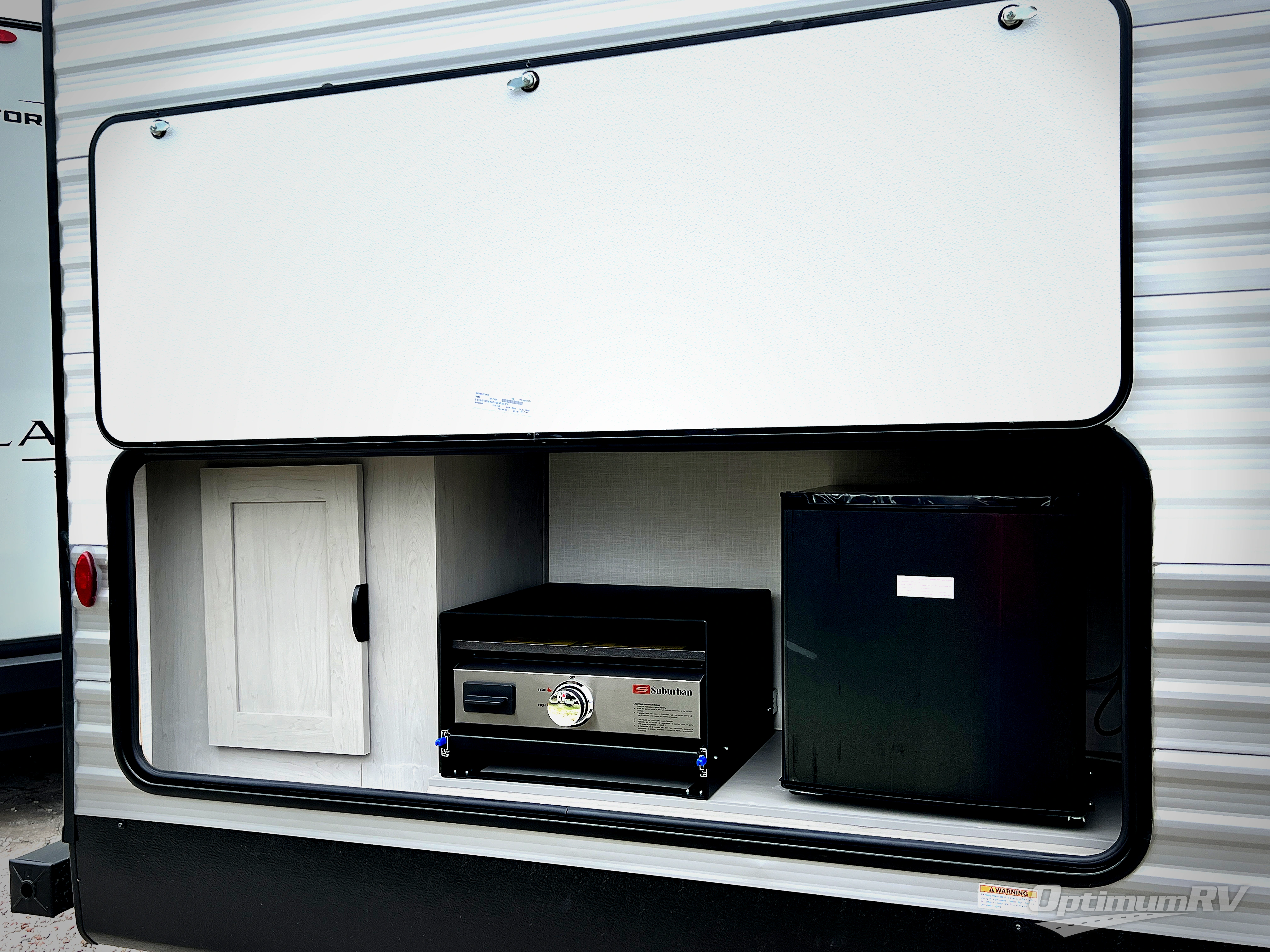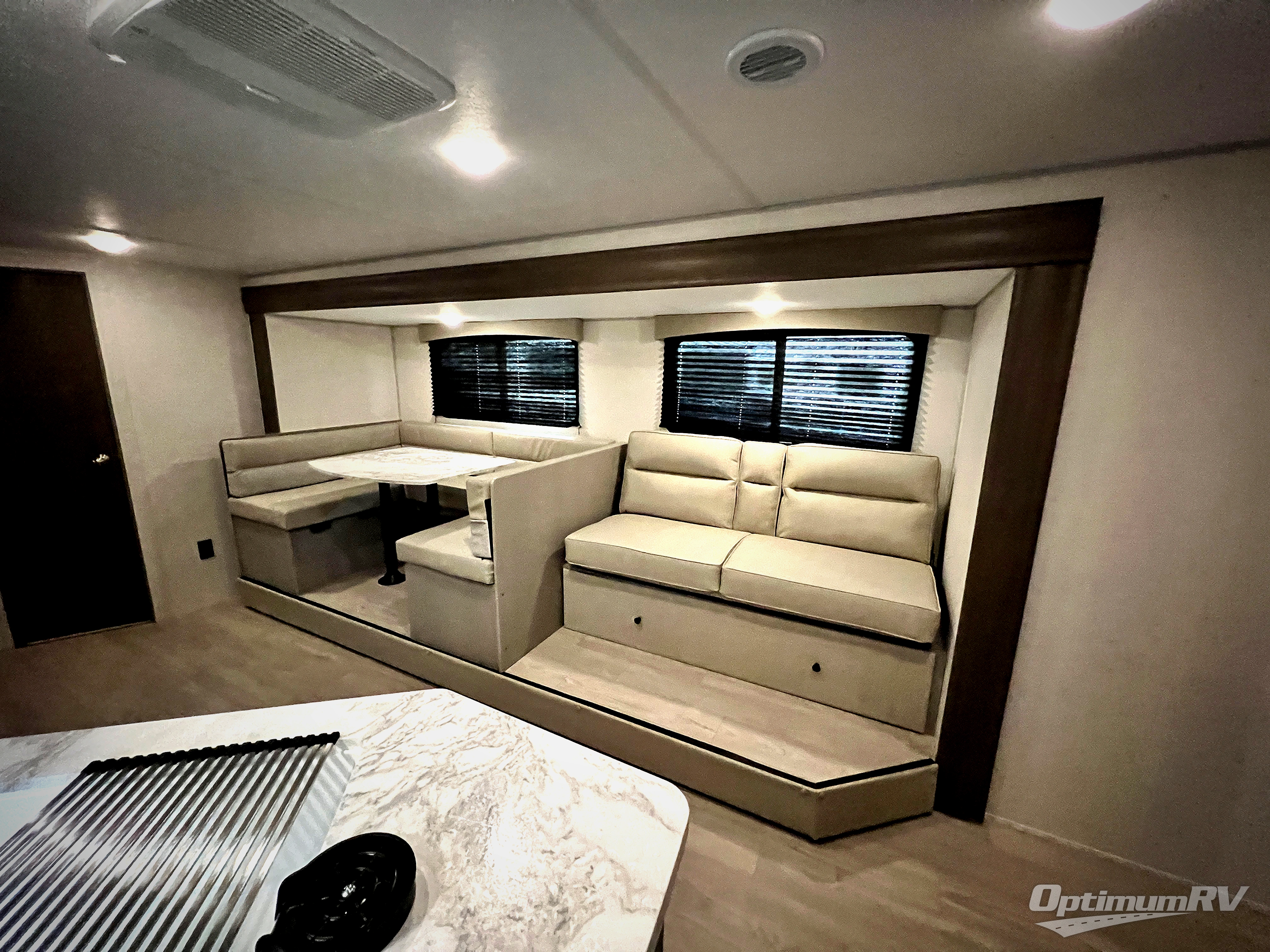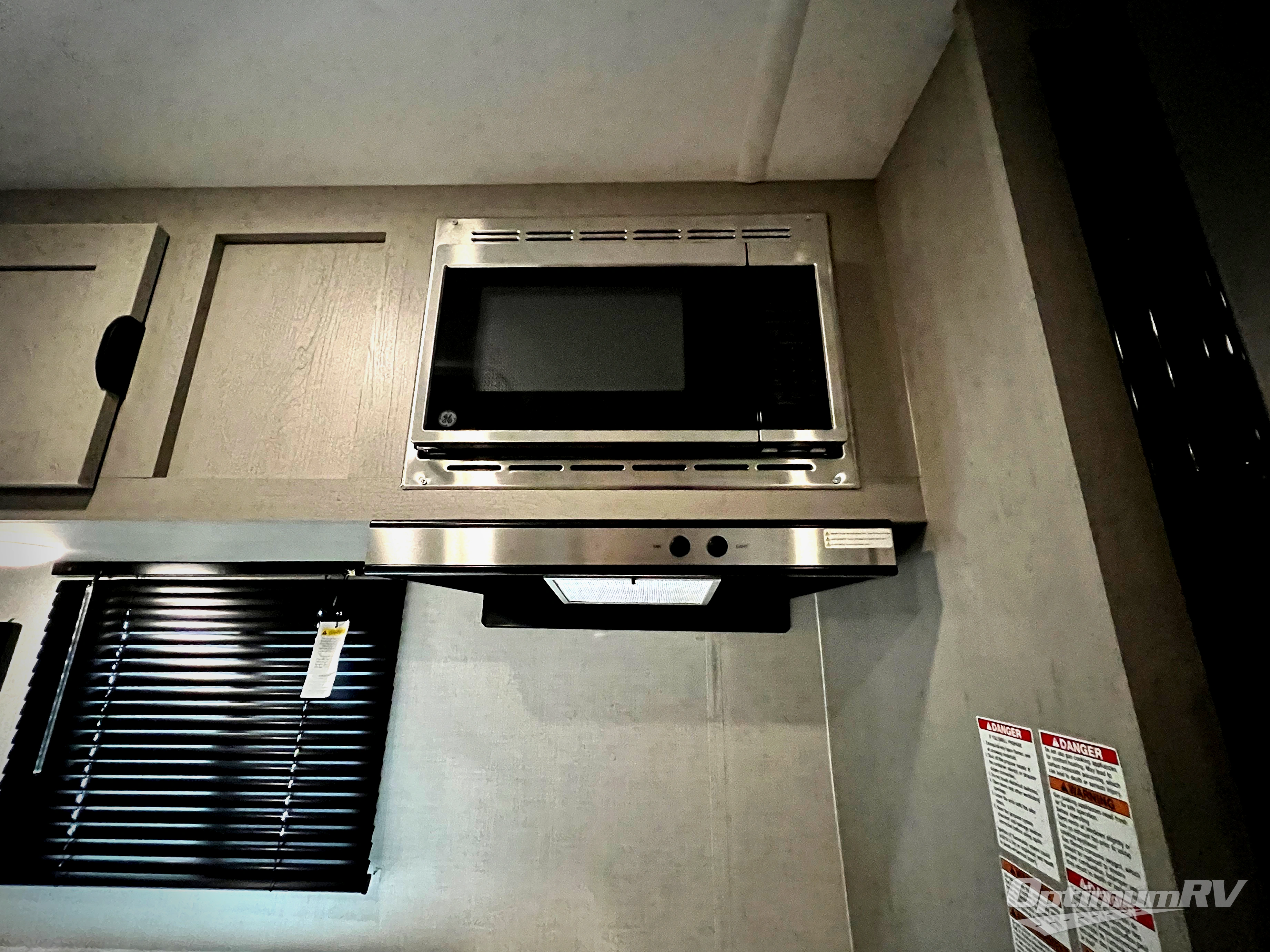 Pack your bags and head to the campground in this spacious travel trailer for the whole gang! The owners will love having their own space in the front private bedroom, complete with an RV queen bed and dual wardrobes and shelves. There are double-size bunks in the rear corner, with the full bath in the other rear corner for easy nighttime use. Everyone can meet in the combined living area and kitchen while the cook makes breakfast. There is a sofa and dinette within the large slide out and an entertainment center with an optional fireplace if you want to make this space more cozy. This unit also includes a large pantry with washer and dryer prep, giving you the option to add these appliances, and an optional camp kitchen can be added for the cook who loves being outdoors!