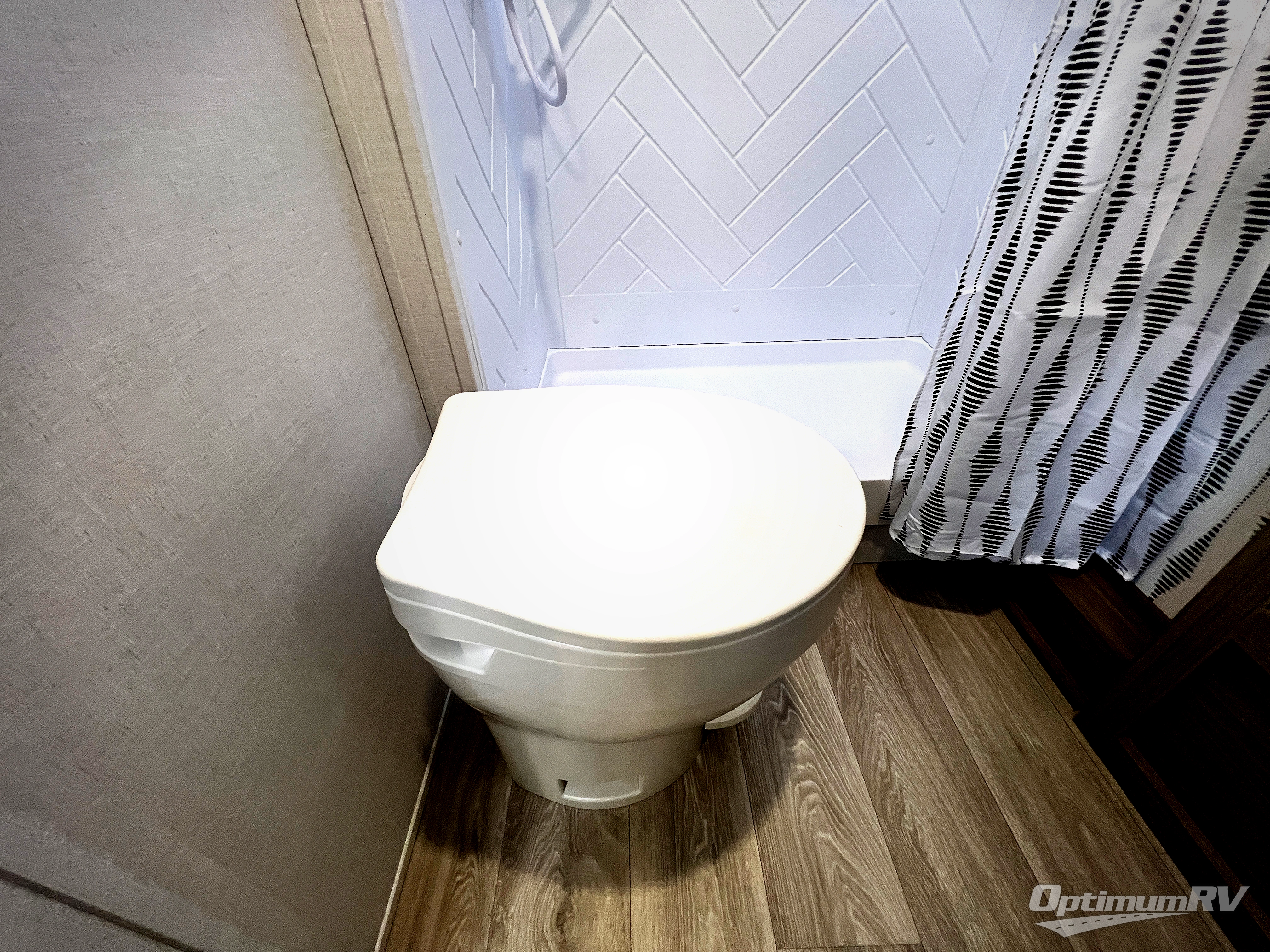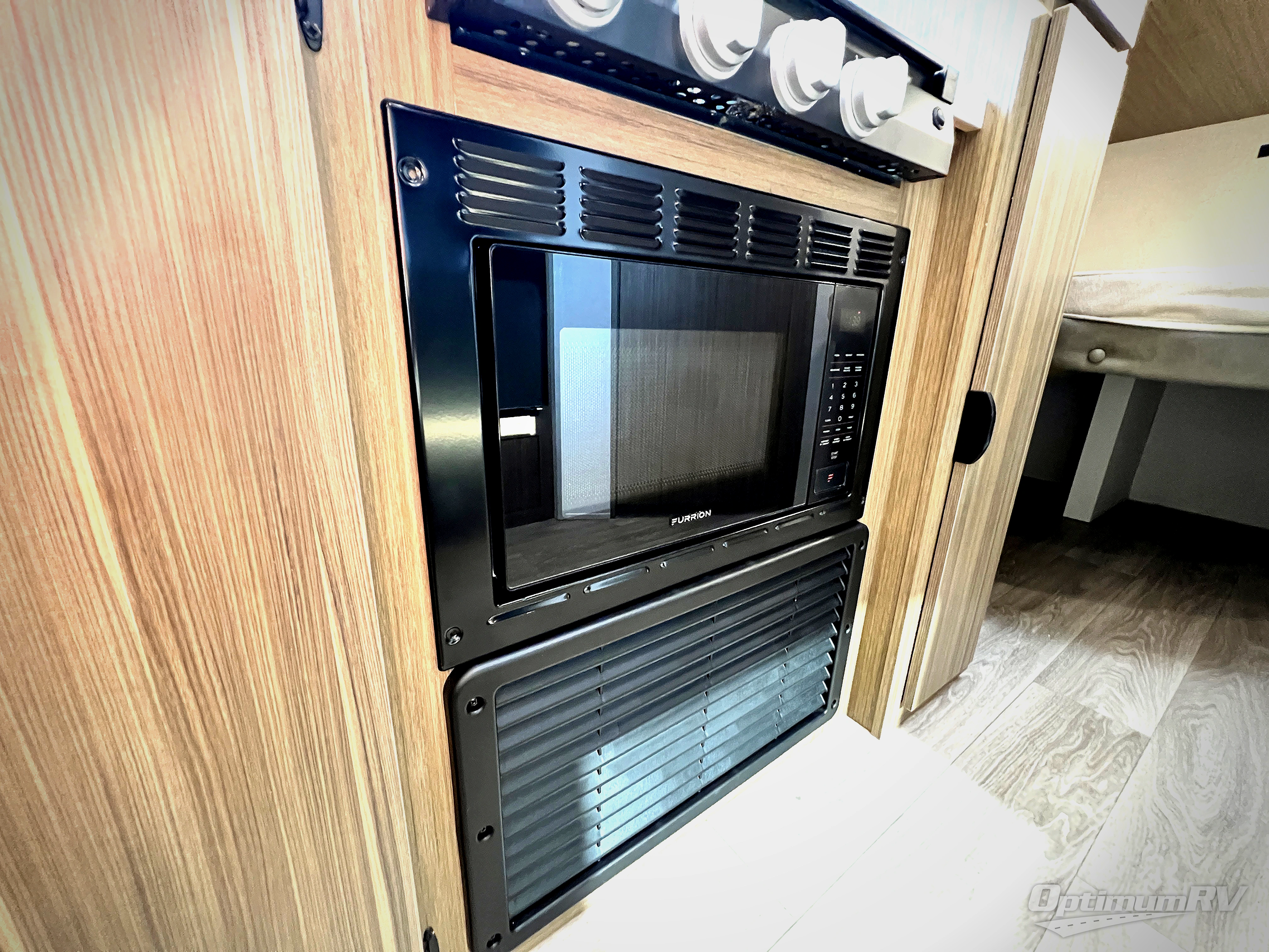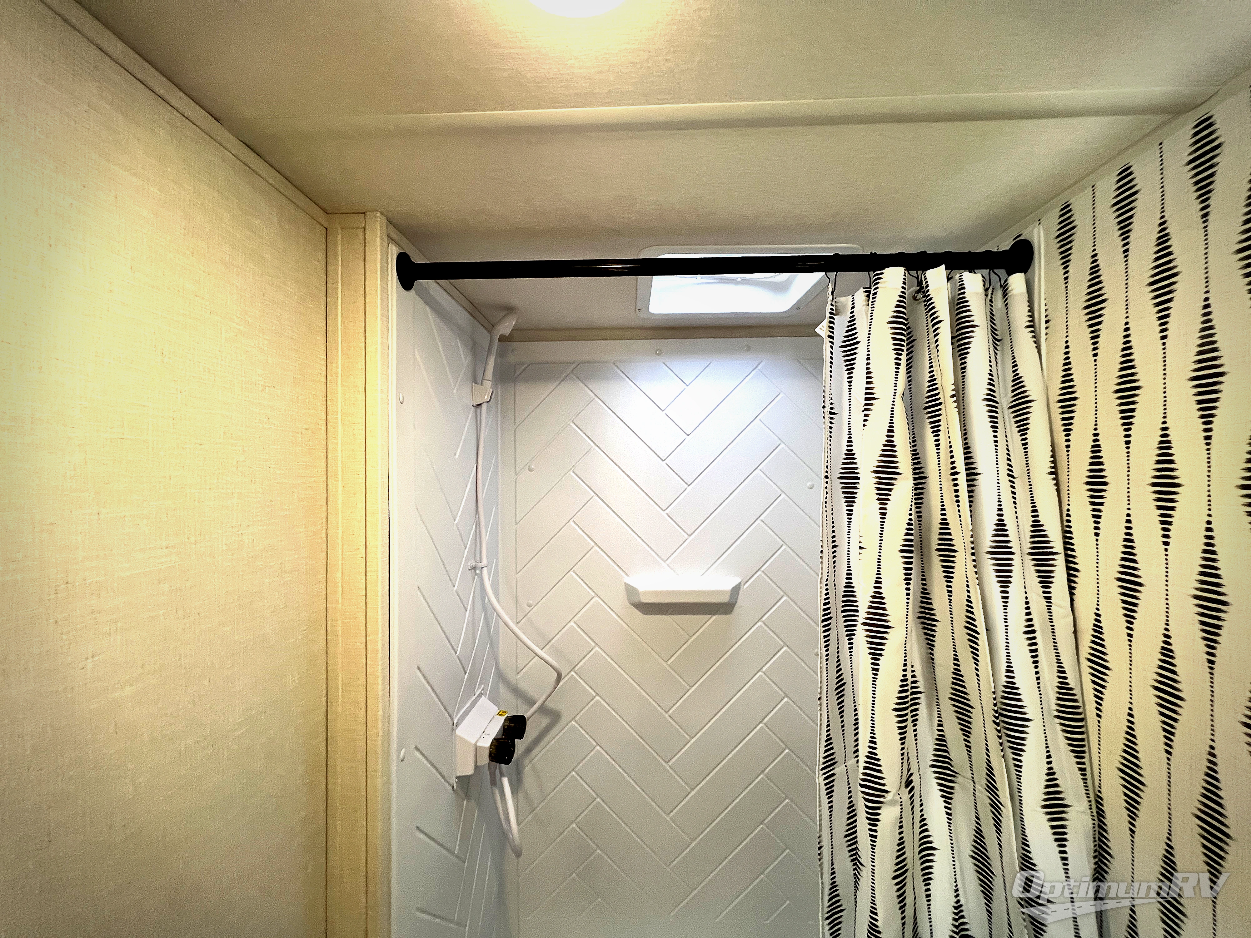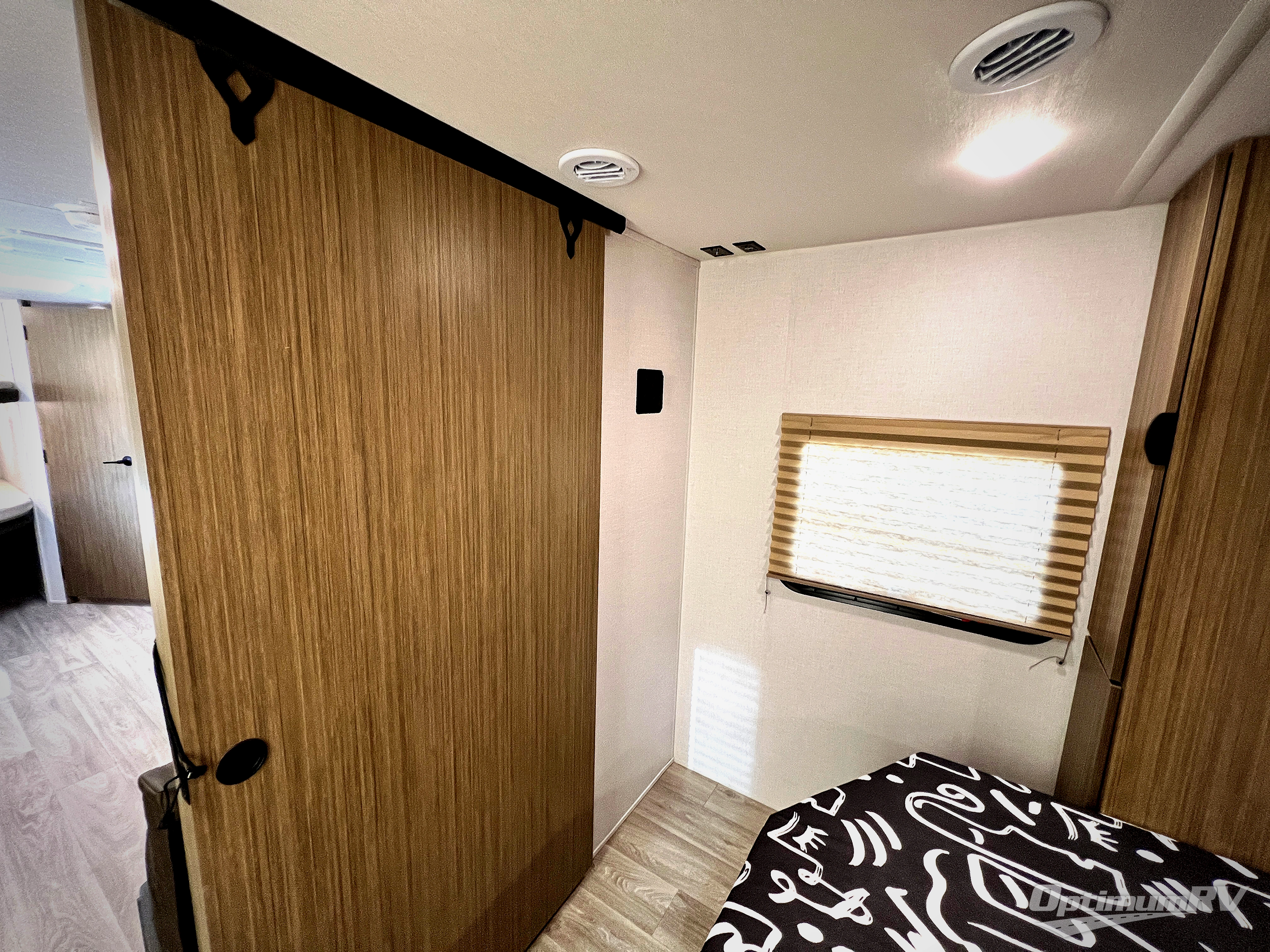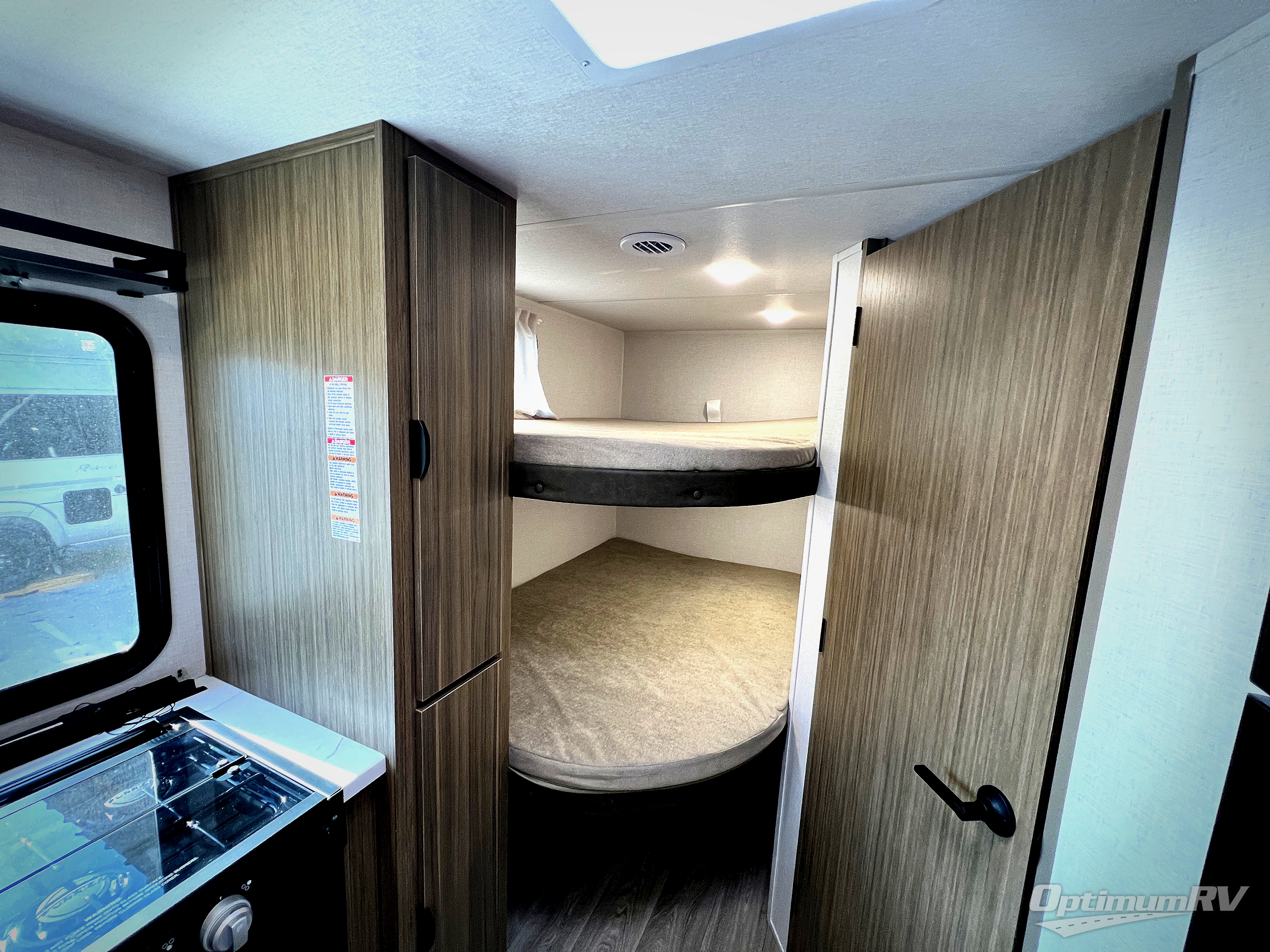 Camping is made easy in this travel trailer with more sleeping space and lots of comforts! The kids or your guests will enjoy the double-size bunks in the back, along with the full bath close by for easy nighttime use. You'll have the front private bedroom with a king bed all to yourselves, and there are dual bedroom wardrobes to keep your space neat and clean. Everyone can meet in the combined kitchen and living room to relax on the super U-lounge with a removable table while the chef of your group makes breakfast on the two-burner cooktop. There is also a microwave oven for quick meals, plus a pantry and large under counter refrigerator for food storage!
