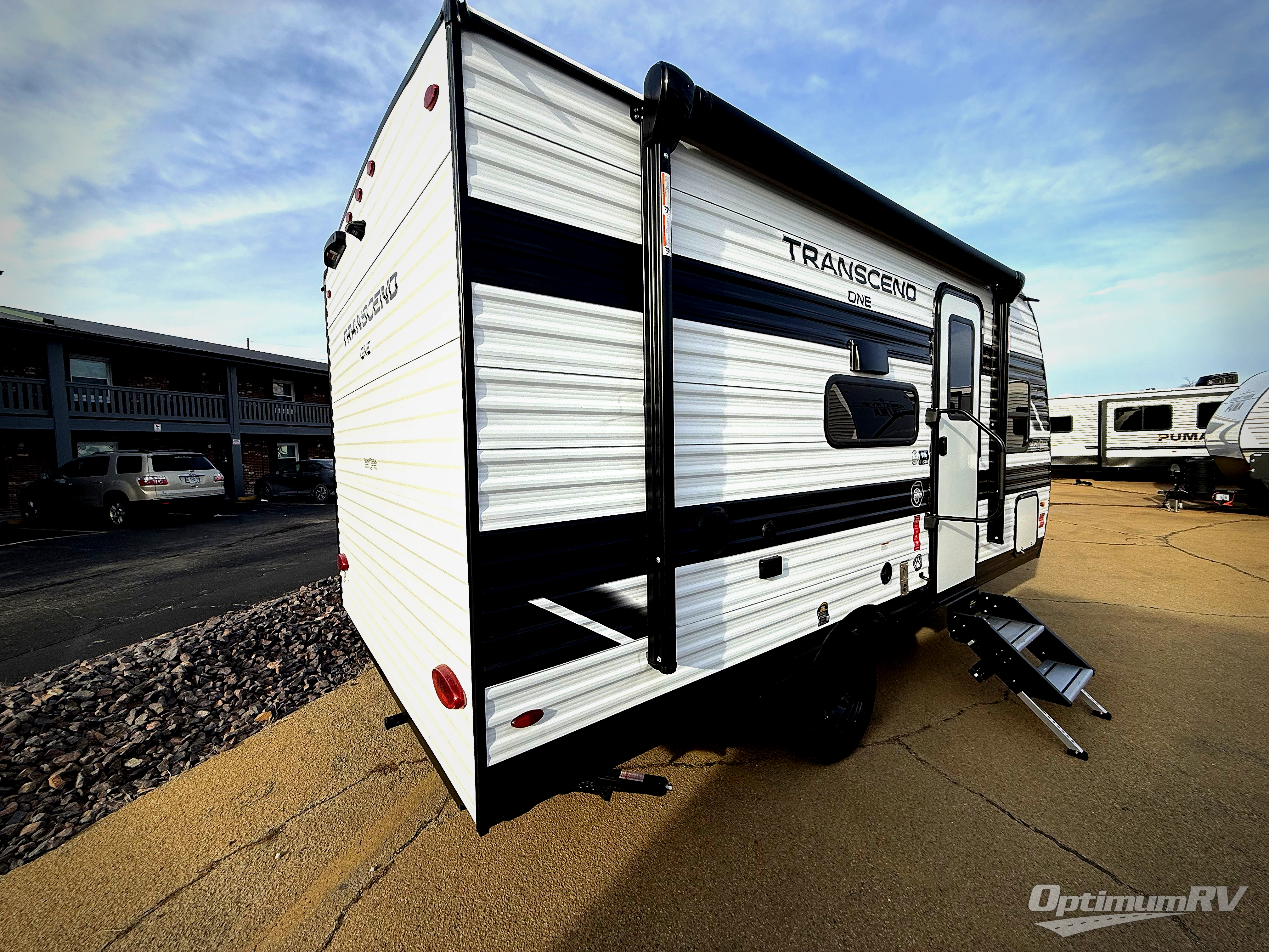 With any Transcend One travel trailer by Grand Design, you will enjoy lightweight towing thanks to their single-axle. There are many interior comforts to make camping easier than ever, such as recessed lighting, residential countertops, and a 6' 6" interior height. Each model is constructed with a heated and enclosed underbelly with suspended tanks, a moisture barrier floor enclosure, and Thermofoil over the roof and front cap for added protection. And a JBL sound system will let you listen to tunes as you visit under the power awning with a Fusion light!