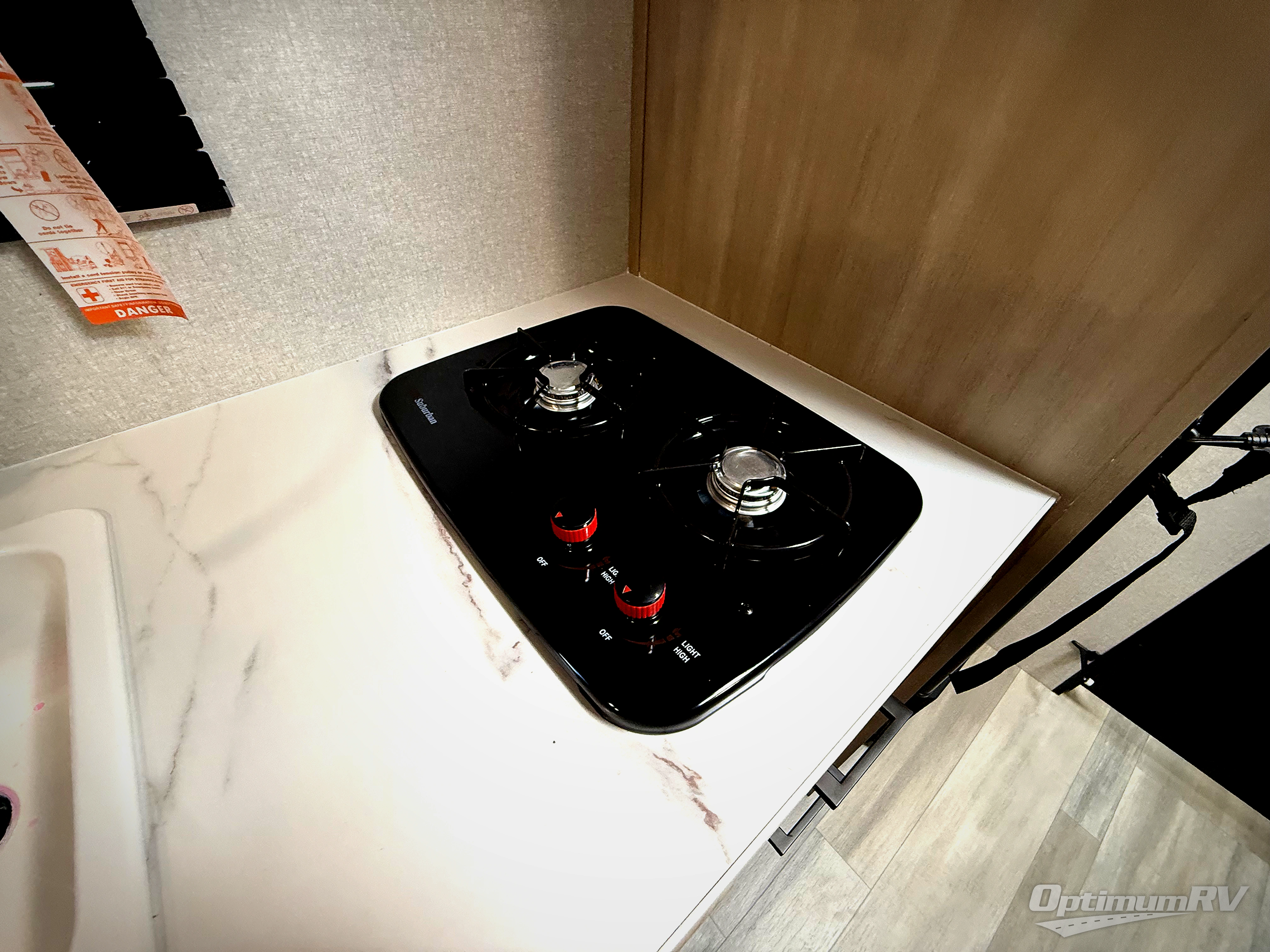 Camping trips are made easy in this Lynx Edition travel trailer with bunk beds for guests or little ones. You'll find the front queen bed for a great night's rest, along with a nightstand and wardrobe to keep your things tidy. The rear corner private bath includes a foot-flush toilet and a 24" x 36" shower, so you won't have to leave the camper in the middle of the night. A two-burner cooktop and microwave oven will let you make meals each day, and a 12V refrigerator will keep your food fresh!