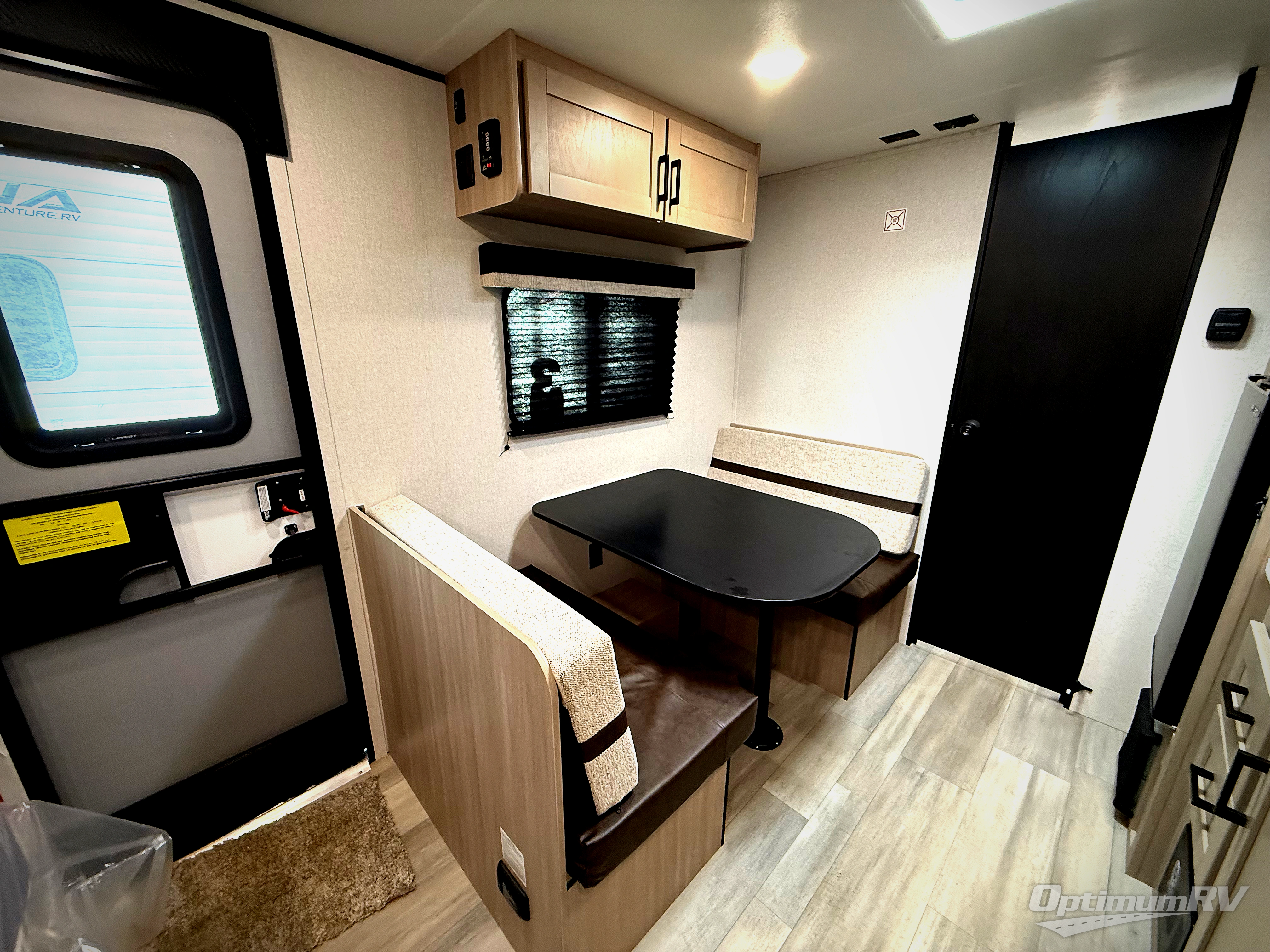 This travel trailer provides you with a little more privacy thanks to the rear bath, which also includes a bath linen closet and shelves for extra storage. The front bedroom includes a walk-around RV queen bed to make it easier to make the bed, and you'll find an overhead shelf for books or games. Once you've made lunch on the two-burner cooktop or in the microwave oven, you can dine at the booth dinette or take your plate outdoors to sit under the 10' power awning.
