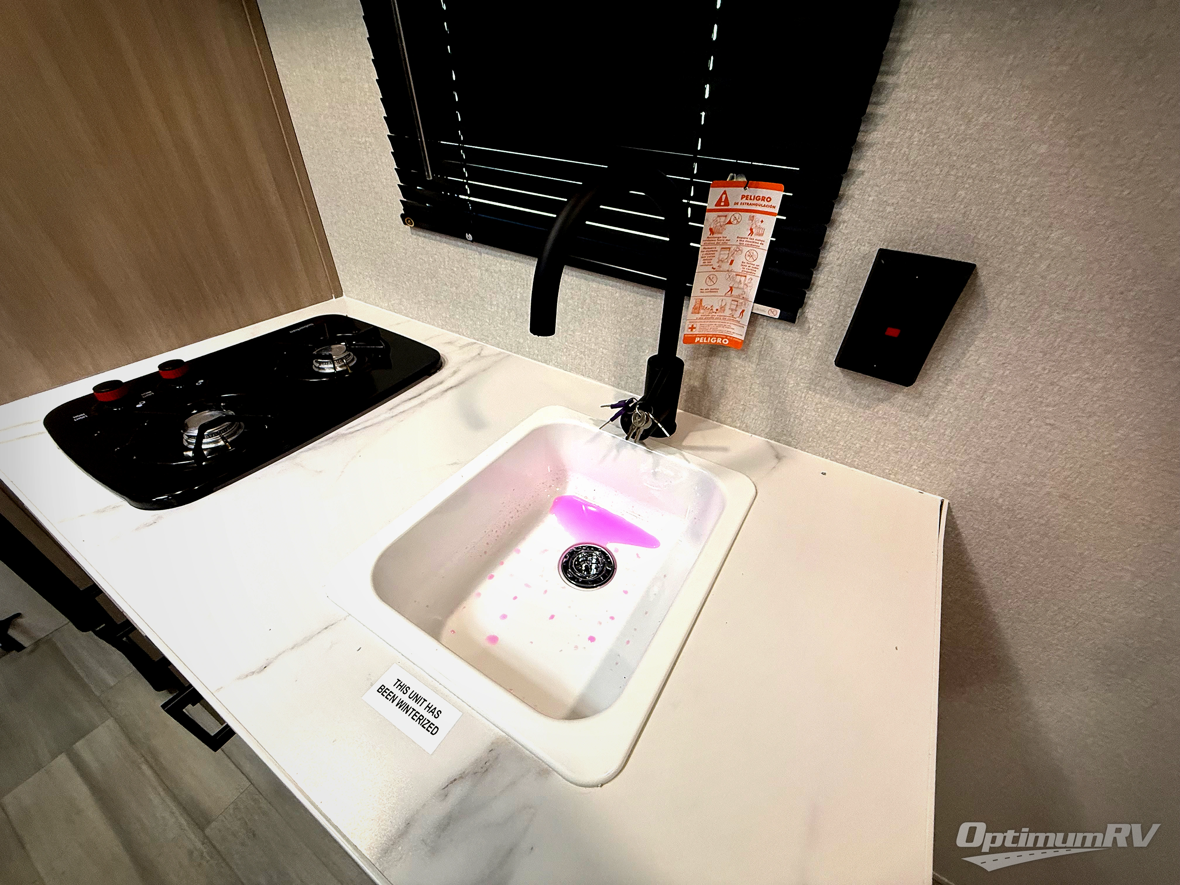 This travel trailer provides you with a little more privacy thanks to the rear bath, which also includes a bath linen closet and shelves for extra storage. The front bedroom includes a walk-around RV queen bed to make it easier to make the bed, and you'll find an overhead shelf for books or games. Once you've made lunch on the two-burner cooktop or in the microwave oven, you can dine at the booth dinette or take your plate outdoors to sit under the 10' power awning.