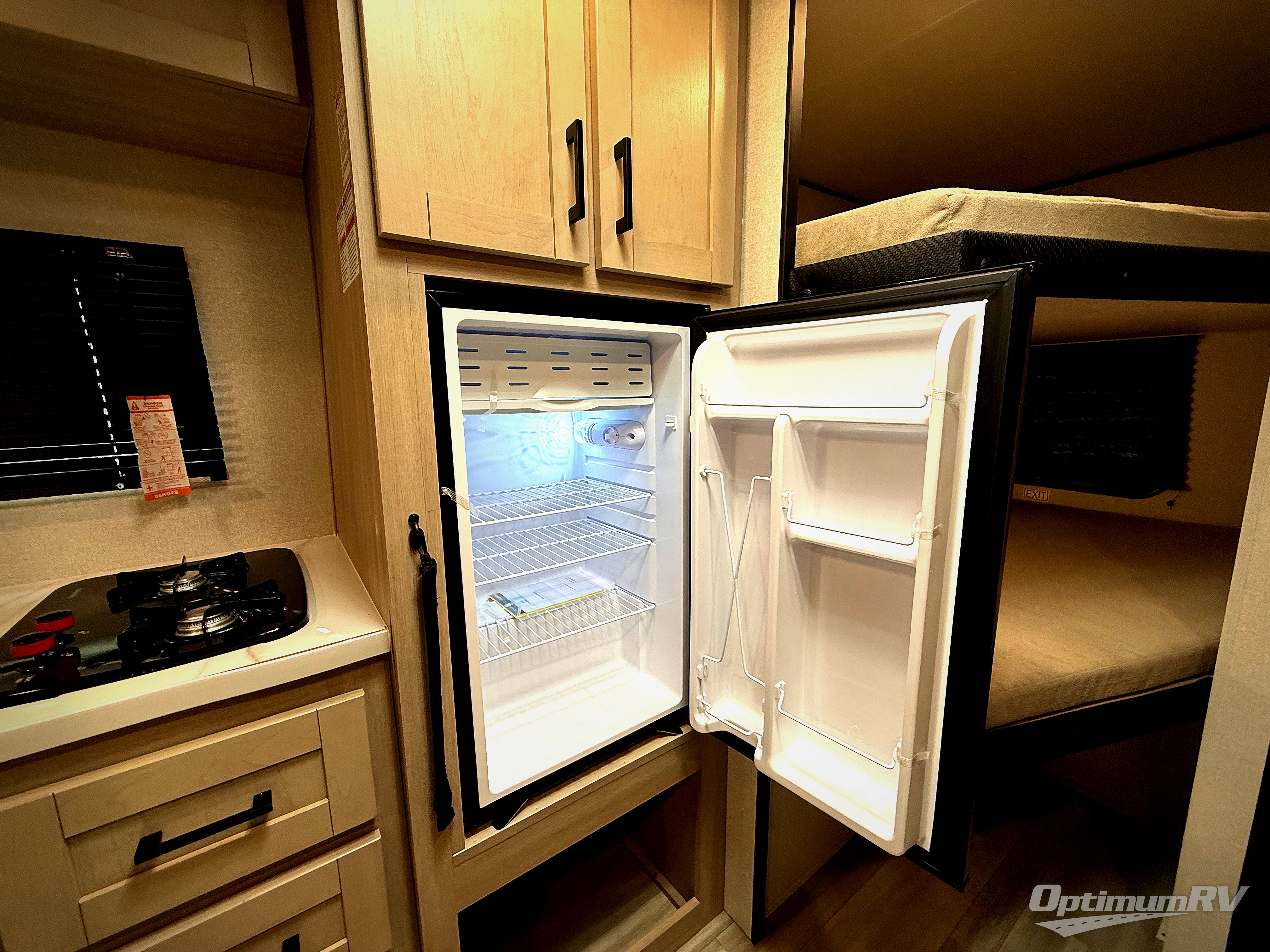 Camping trips are made easy in this Lynx Edition travel trailer with double-size bunk beds for guests or little ones. You'll find the front queen bed for a great night's rest, along with an overhead shelf and a wardrobe to keep your things tidy. The rear corner private bath includes a foot-flush toilet and a 24" x 40" shower, so you won't have to leave the camper in the middle of the night. A two-burner cooktop and microwave oven will let you make meals each day, and you can dine around the U-shaped dinette, which is also within a slide out for more space!