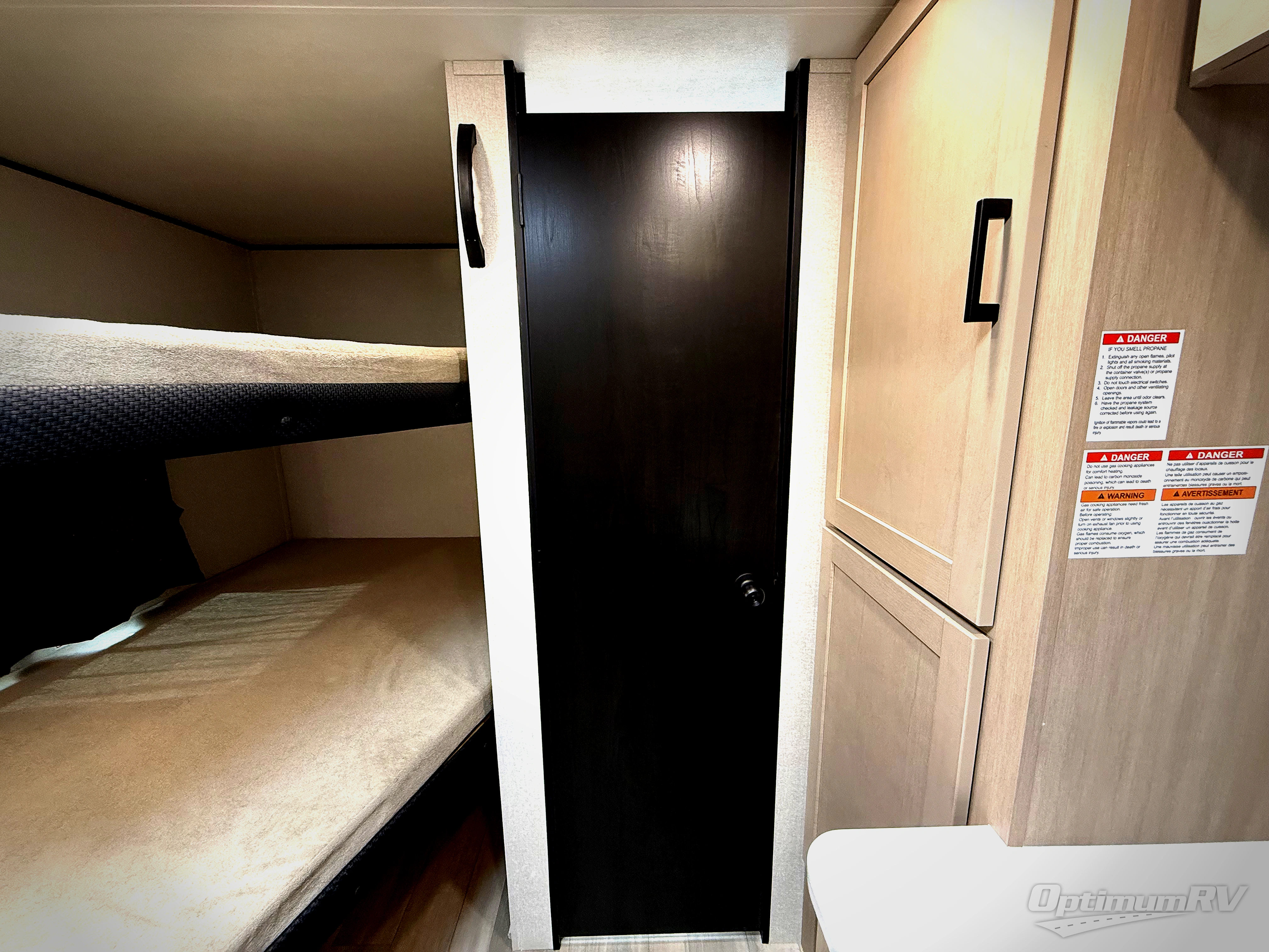 Camping trips are made easy in this Lynx Edition travel trailer with double-size bunk beds for guests or little ones. You'll find a front walk-around queen bed for a great night's rest, along with dual bedside wardrobes to keep your things tidy. The rear corner private bath includes a foot-flush toilet and a 40" shower, so you won't have to leave the camper in the middle of the night. A two-burner cooktop and microwave oven will let you make meals each day, and you'll find seating spaces at the booth dinette or on the sofa!