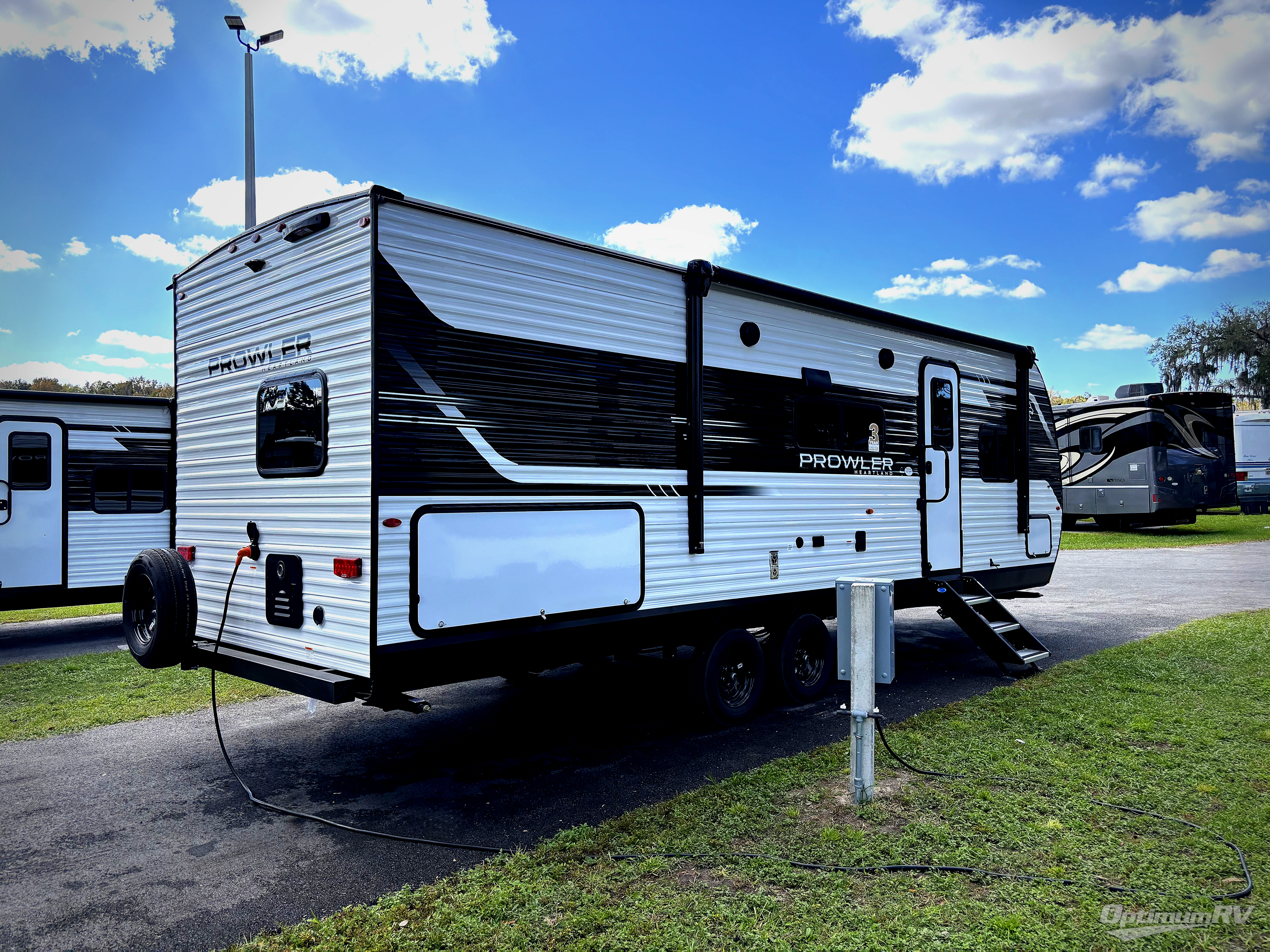 With any Prowler travel trailer, you will enjoy convenient amenities and at-home comforts wherever you decide to camp! Each one is built with a durable fully integrated A-frame, a TrussXL roof system, and galvanized wheel wells. And the self-adjusting brakes, easy-lube axles and nitrogen filled radial tires will provide smooth towing. Inside, you'll enjoy vinyl flooring throughout that will be easy to keep clean, durable, residential-inspired kitchen countertops, a residential-style high-rise kitchen faucet, and solid hardwood cabinet doors with hidden hinges and screwed stile construction. The mandatory Camping in Comfort Package includes a large folding entry door grab handle, MORryde Step Above entry steps, an on-demand tankless water heater, and stylish window shades. There are also available options that vary between single and double axle units that will allow you to customize your Prowler to fit your needs!