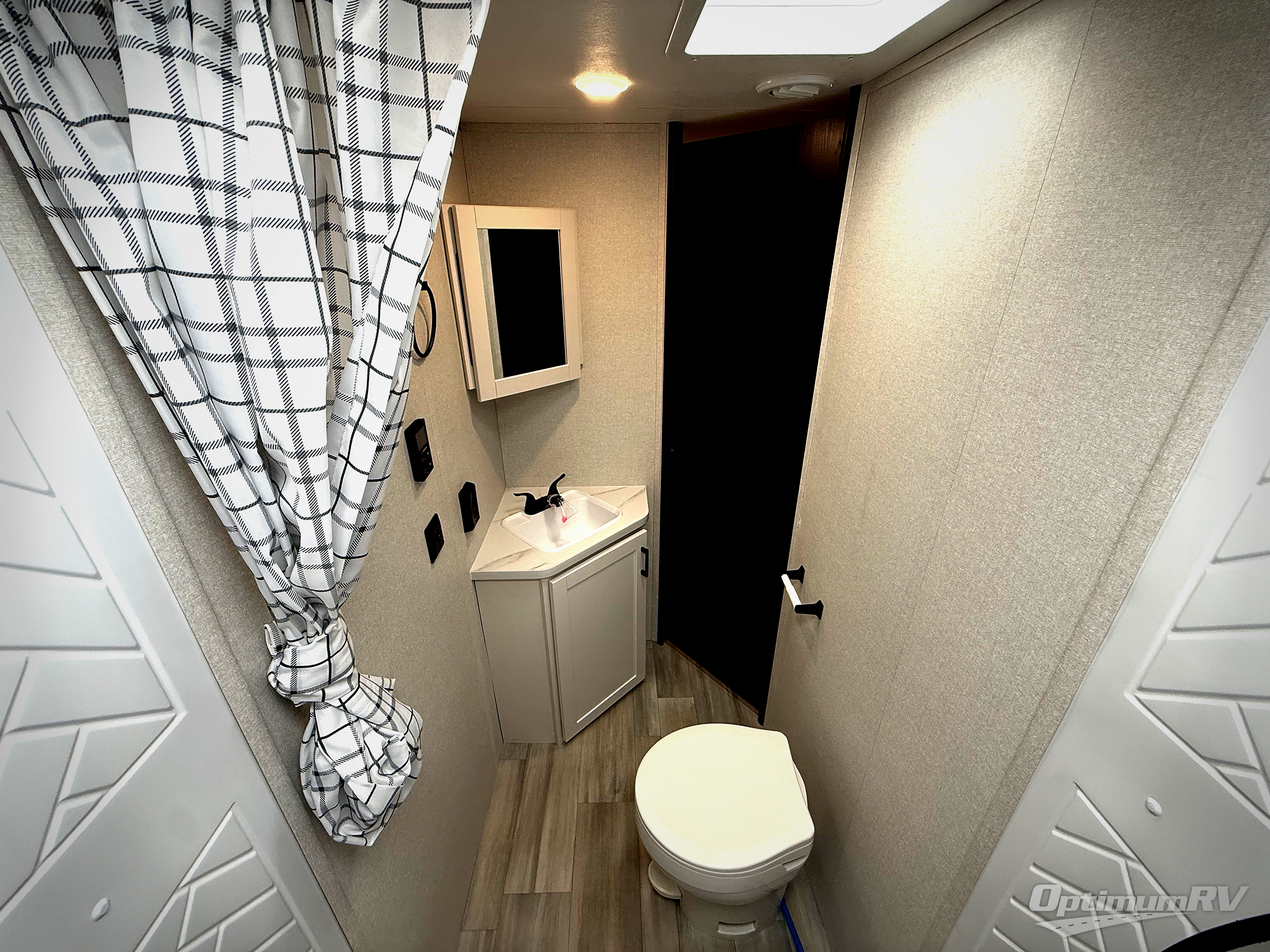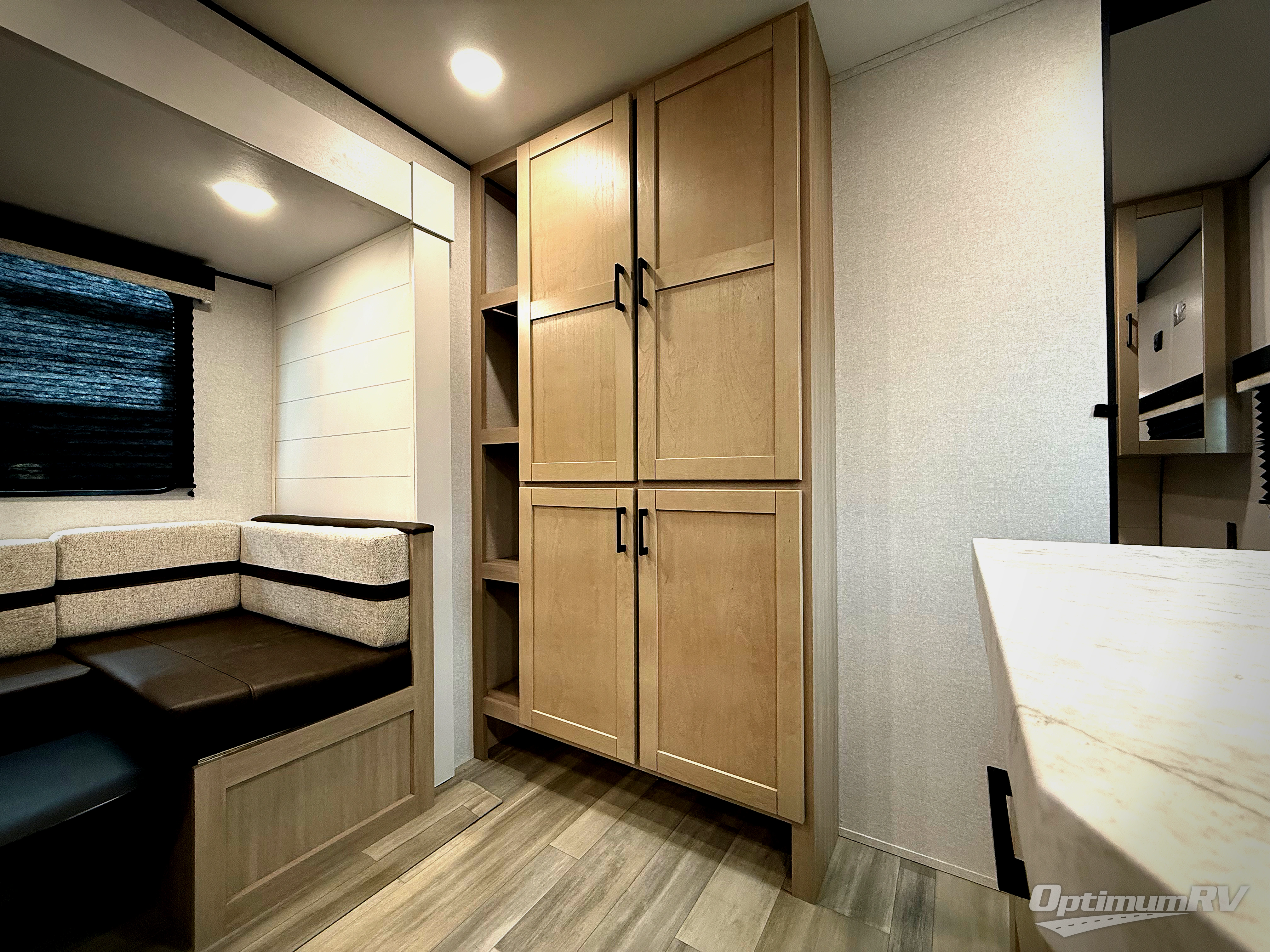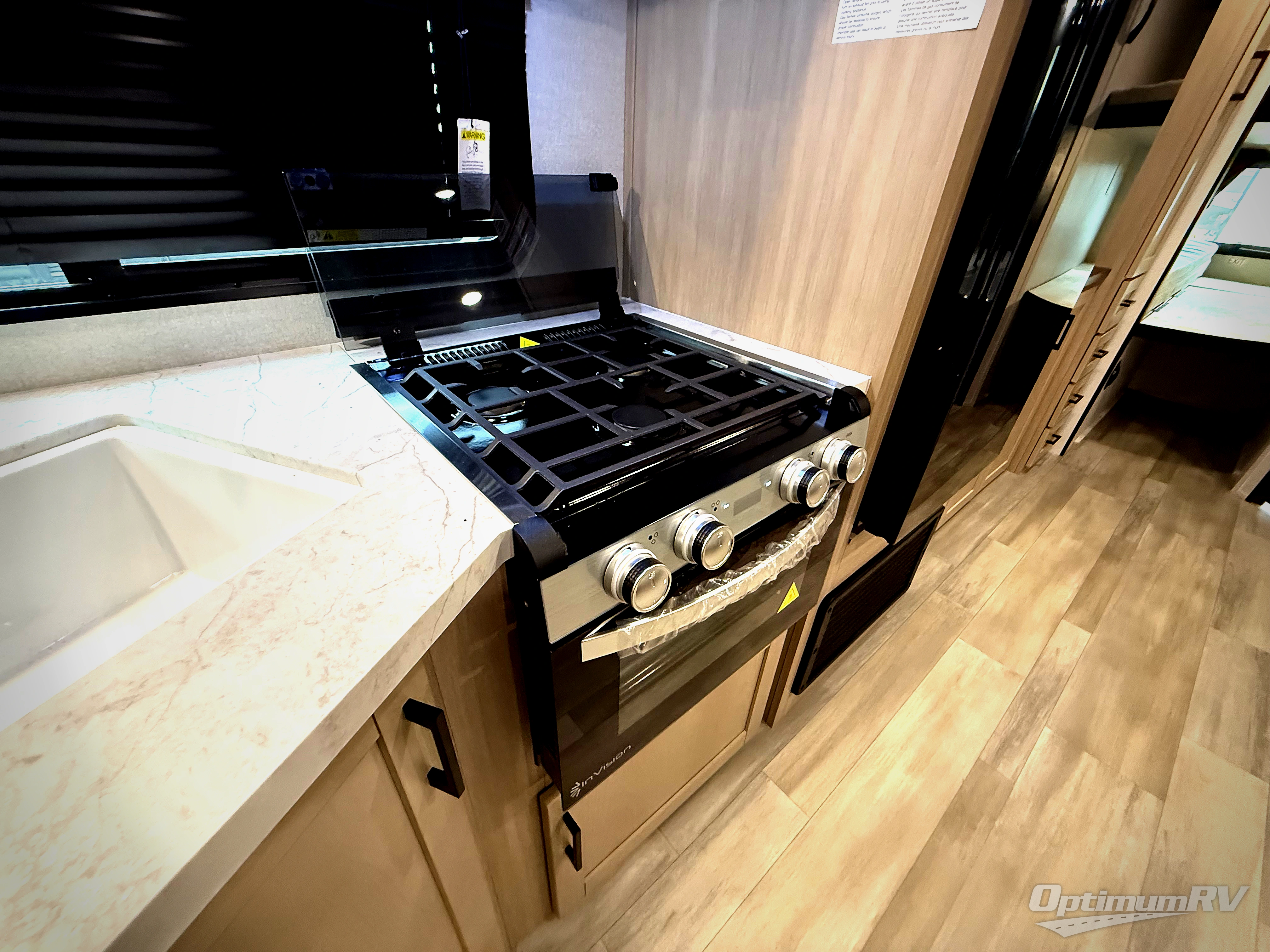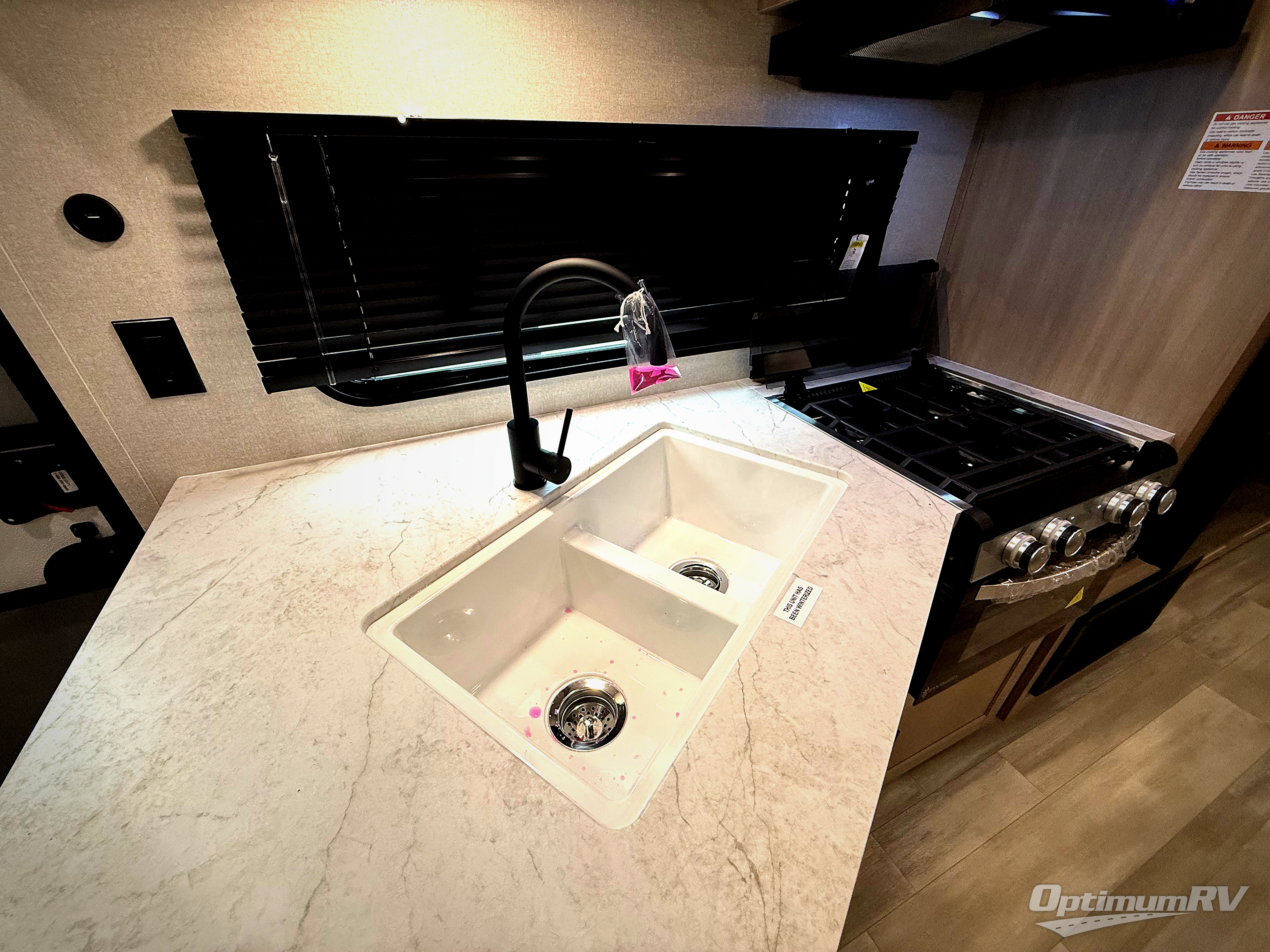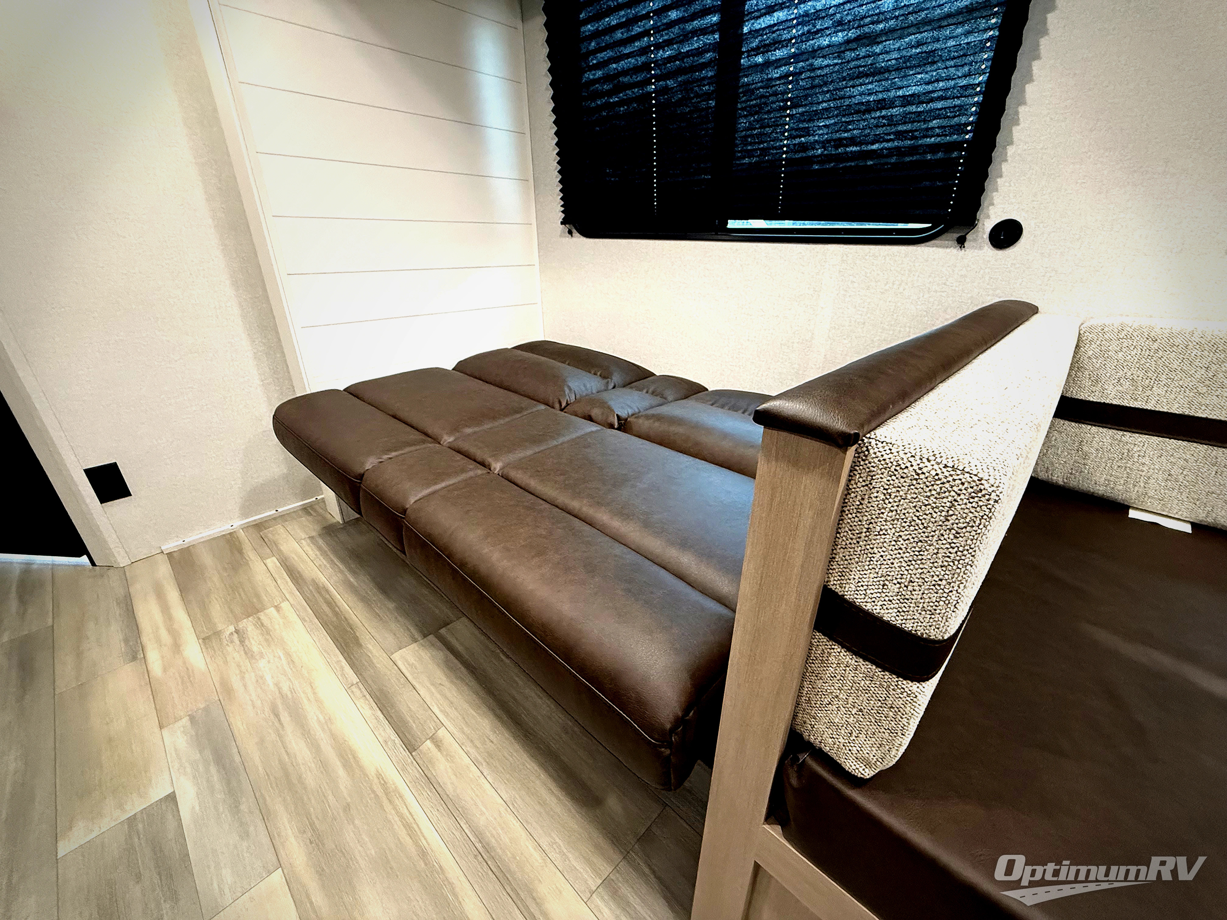 The whole gang will love weekends in the woods with this travel trailer in tow! There is a large slide out for added space, and here you'll find the jack-knife sofa and U-shaped dinette. There is also an entertainment center with a fireplace for cozy evenings indoors, and you'll appreciate the storage cabinet and shelves for board games, movies and more! You can claim the front private bedroom to yourselves, while your guests or little ones take the double-size bunks. A full kitchen is complete with a three-burner cooktop and microwave oven to make meals each day, plus a 12V refrigerator for food storage. This unit also includes an outdoor kitchen with a refrigerator to keep cold drinks ready to enjoy!